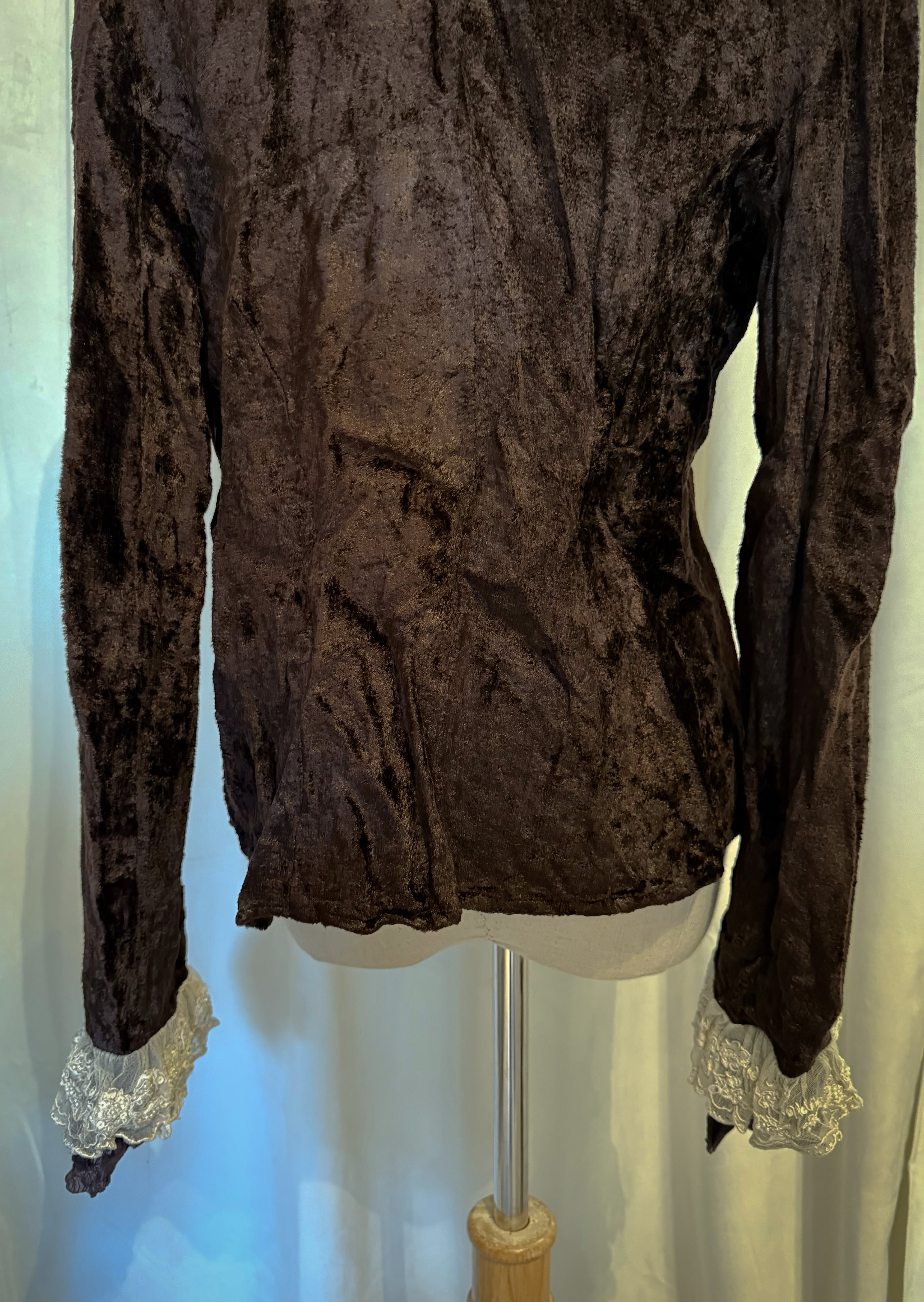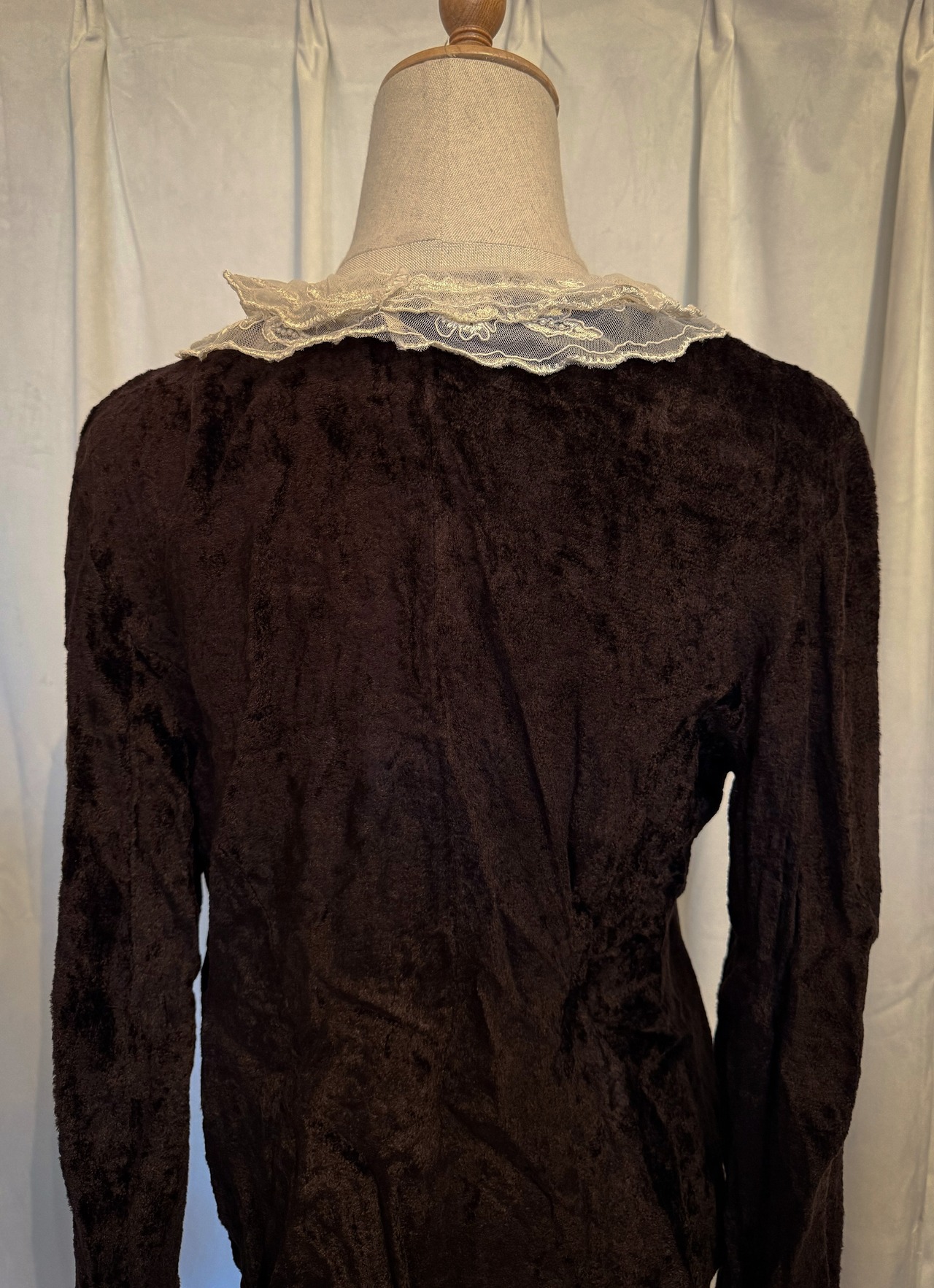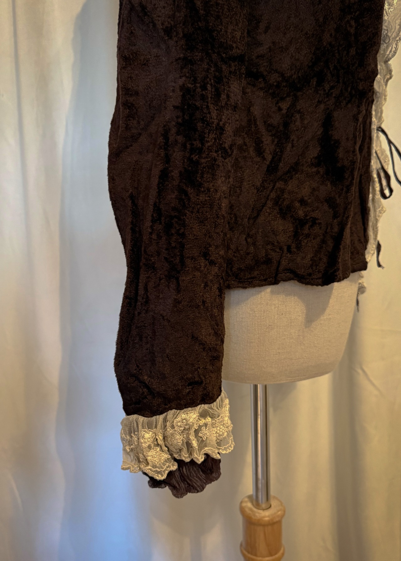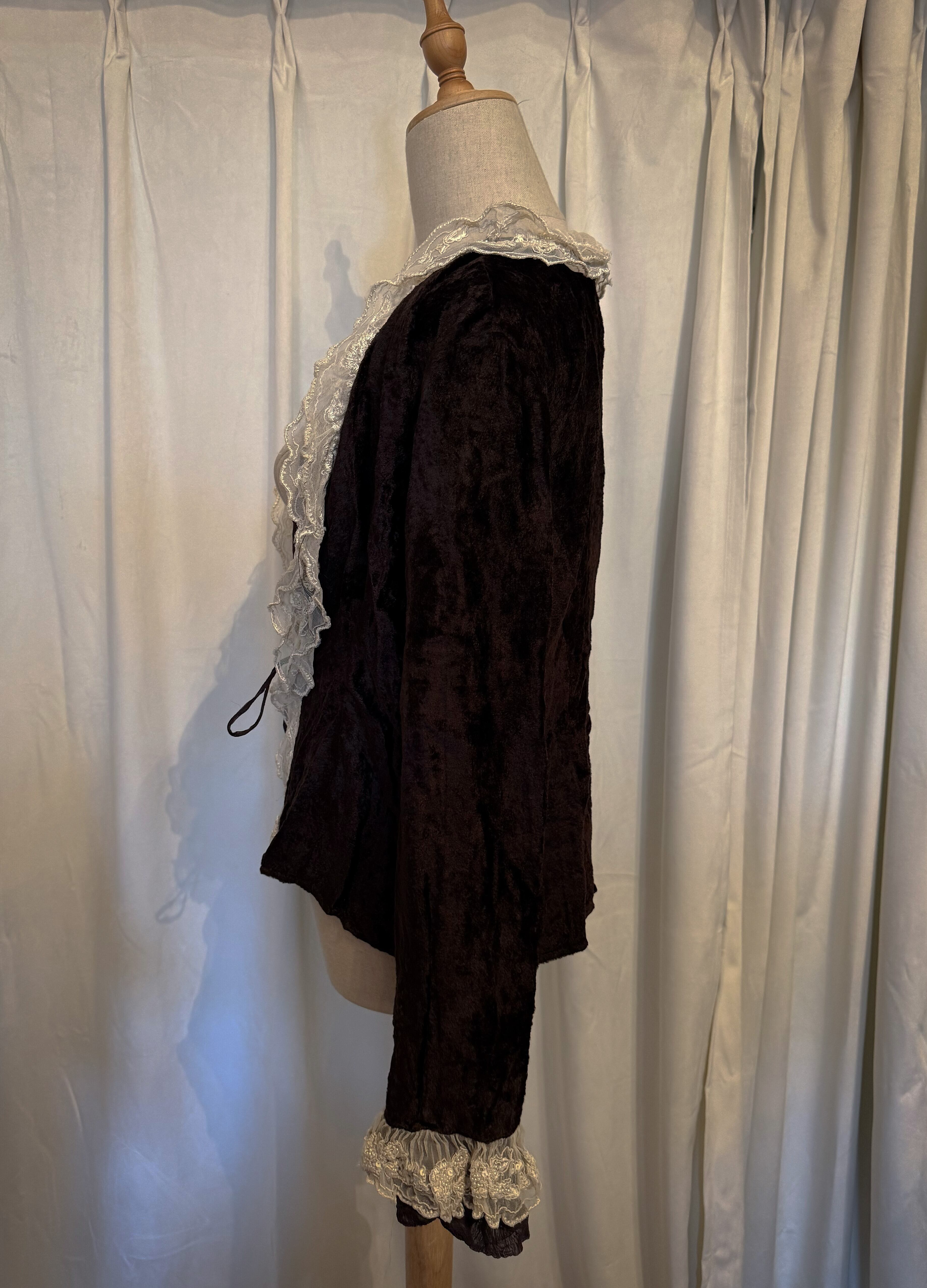 Brown Velour Frill Lace Cardigan