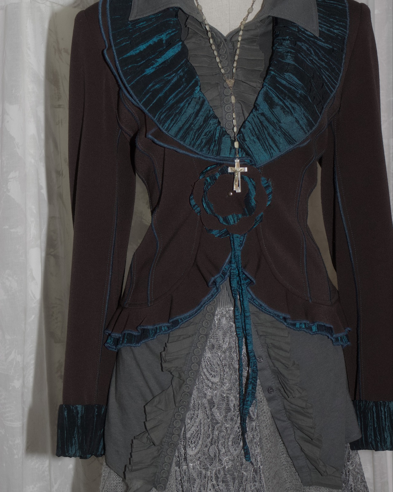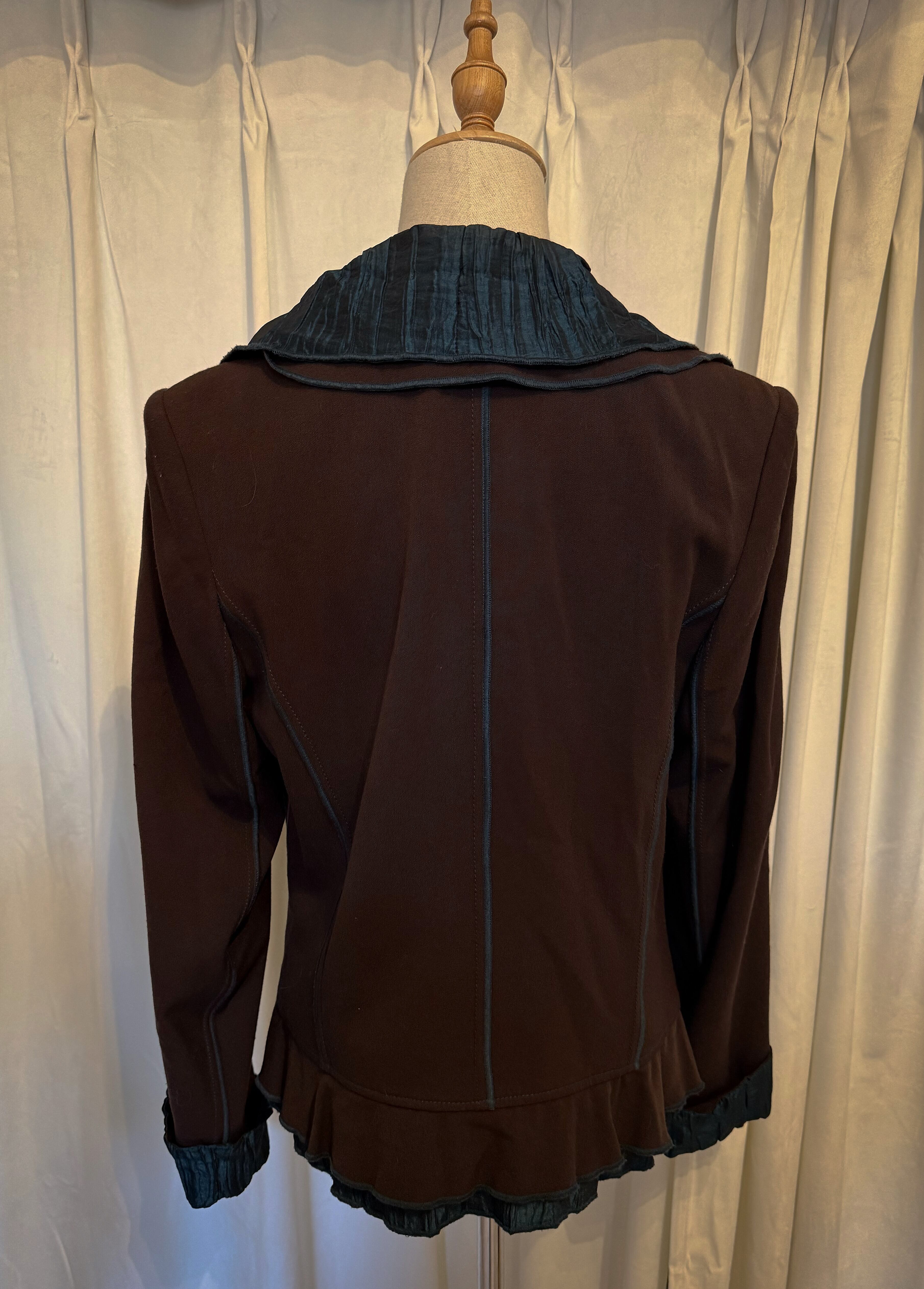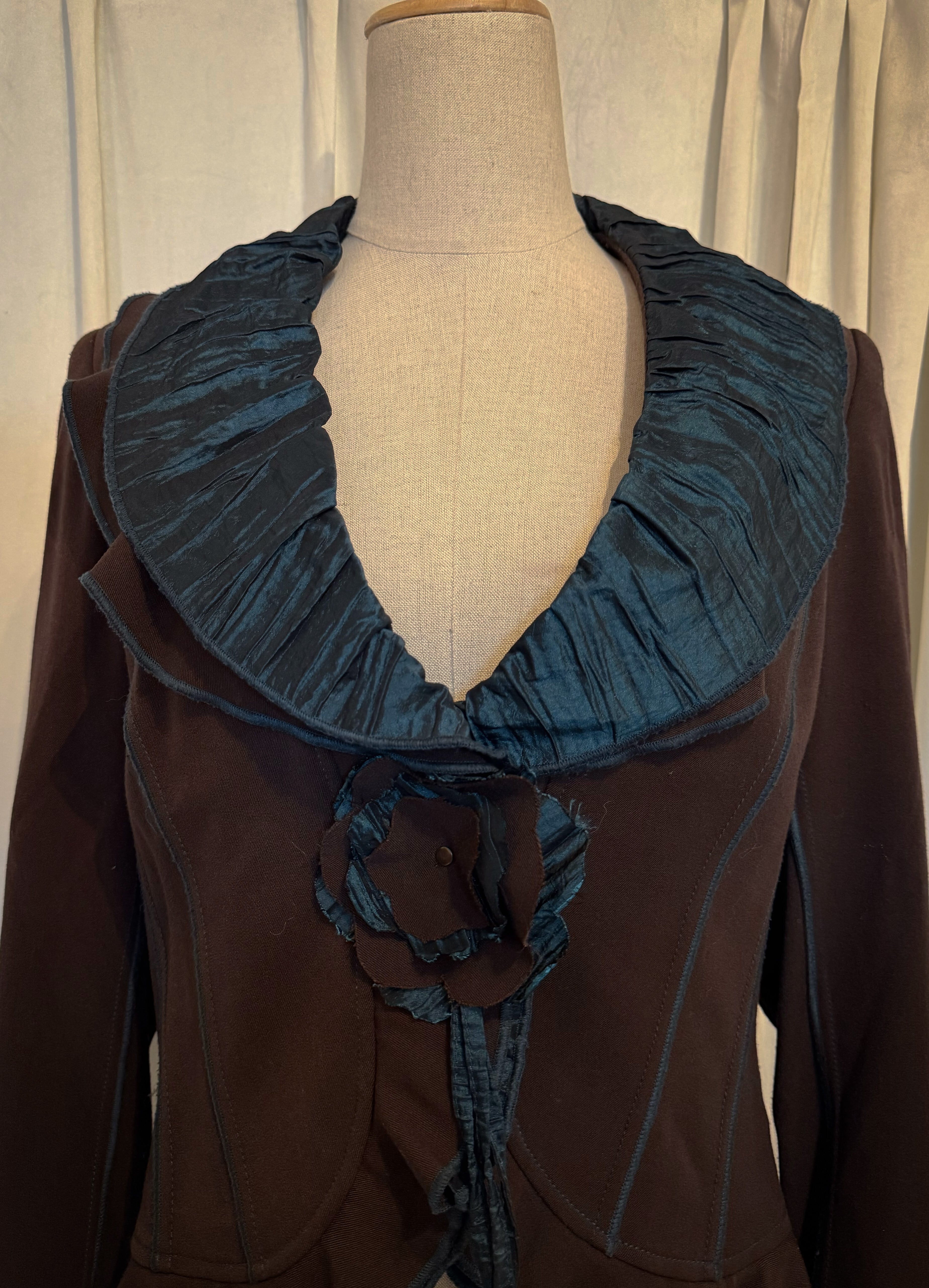 Blue Round Collar Flower Button Jacket