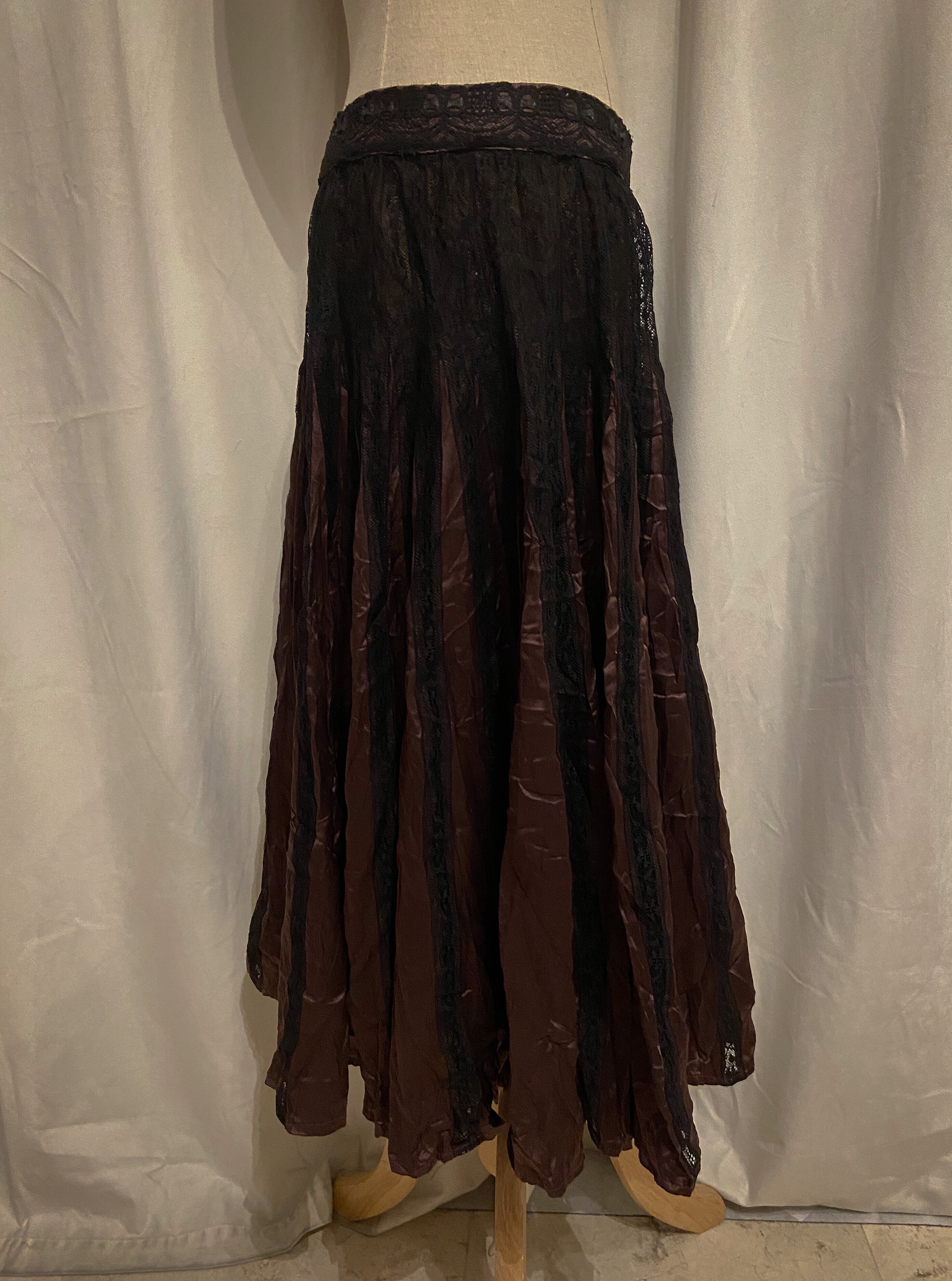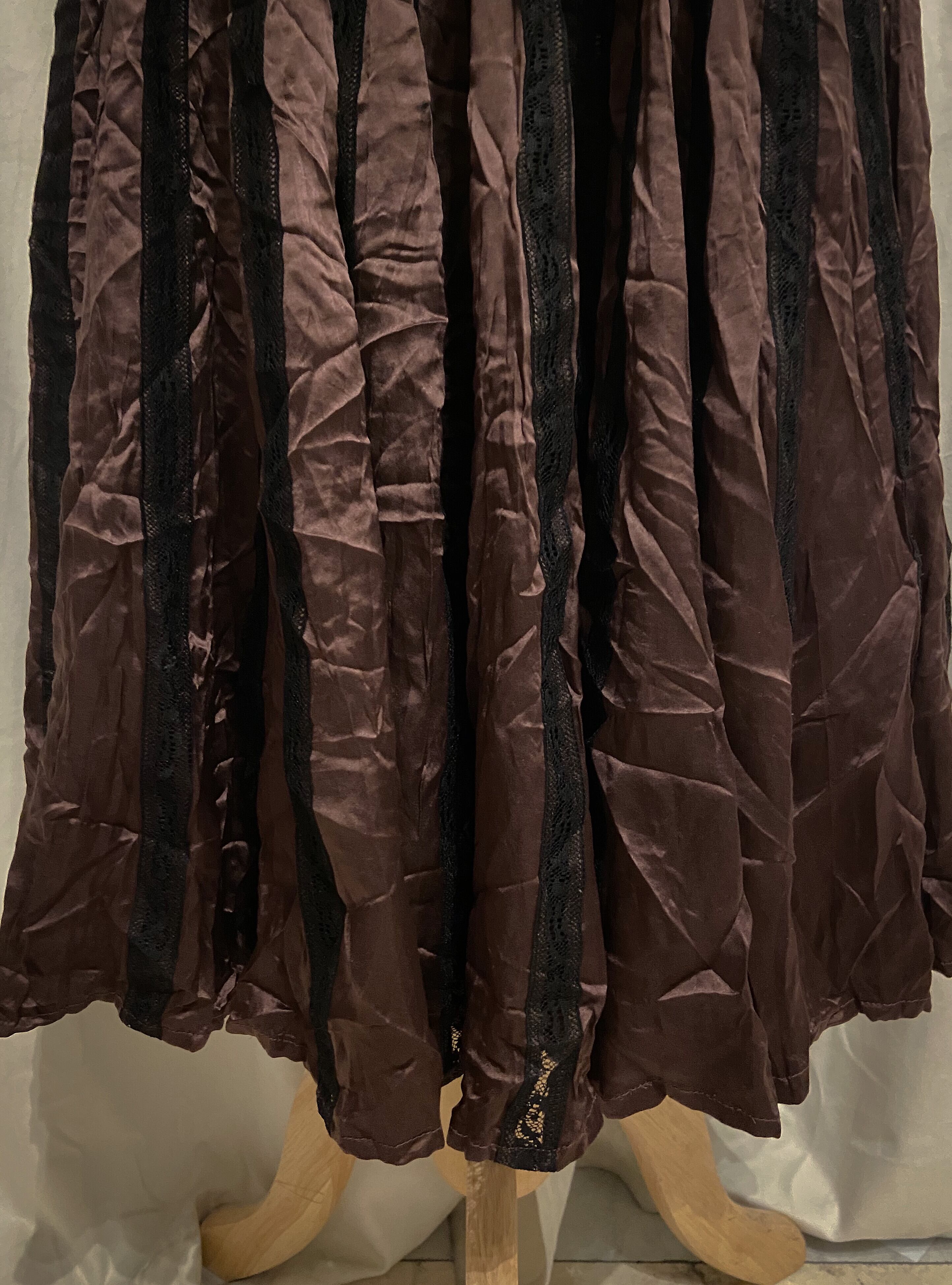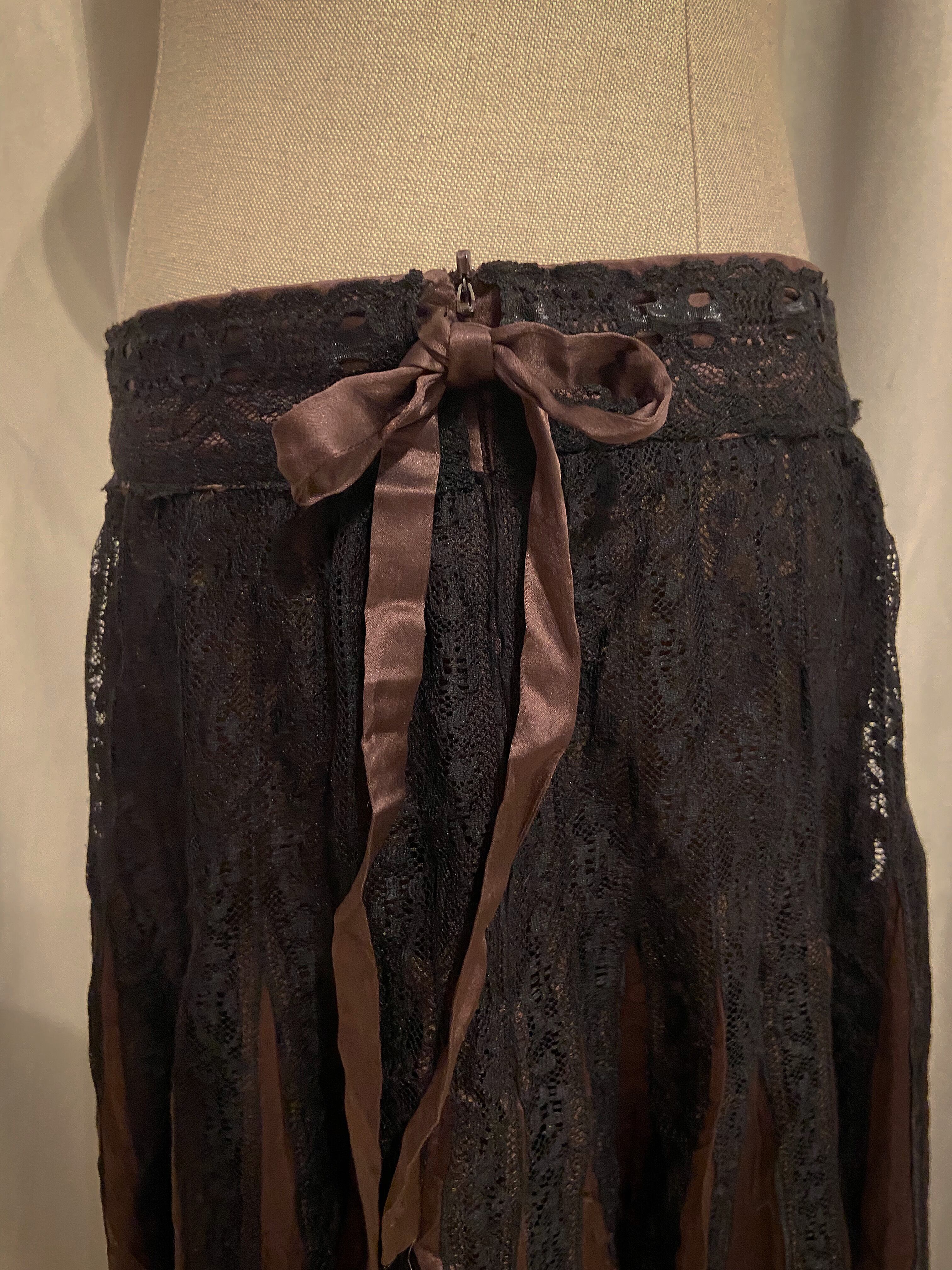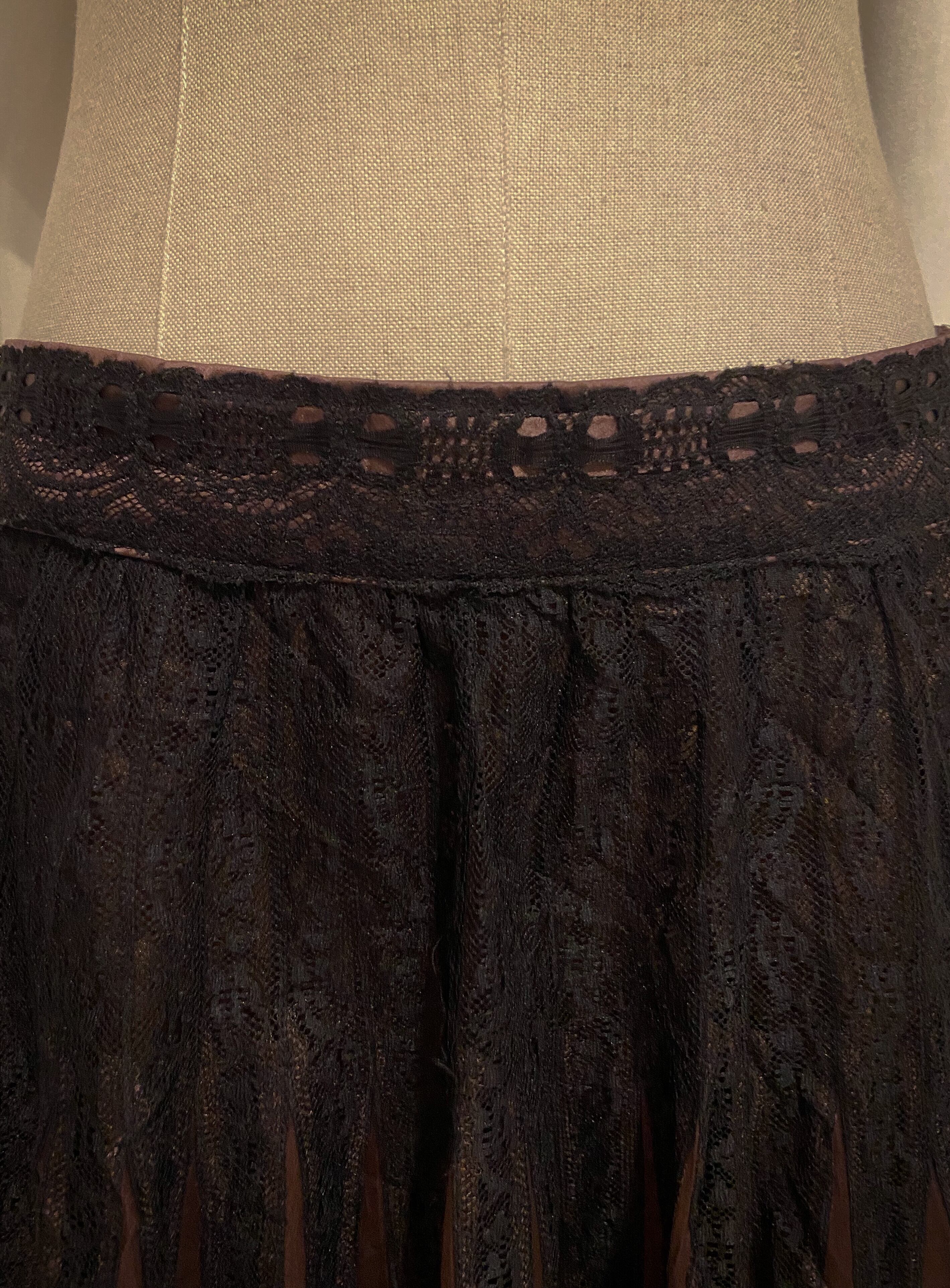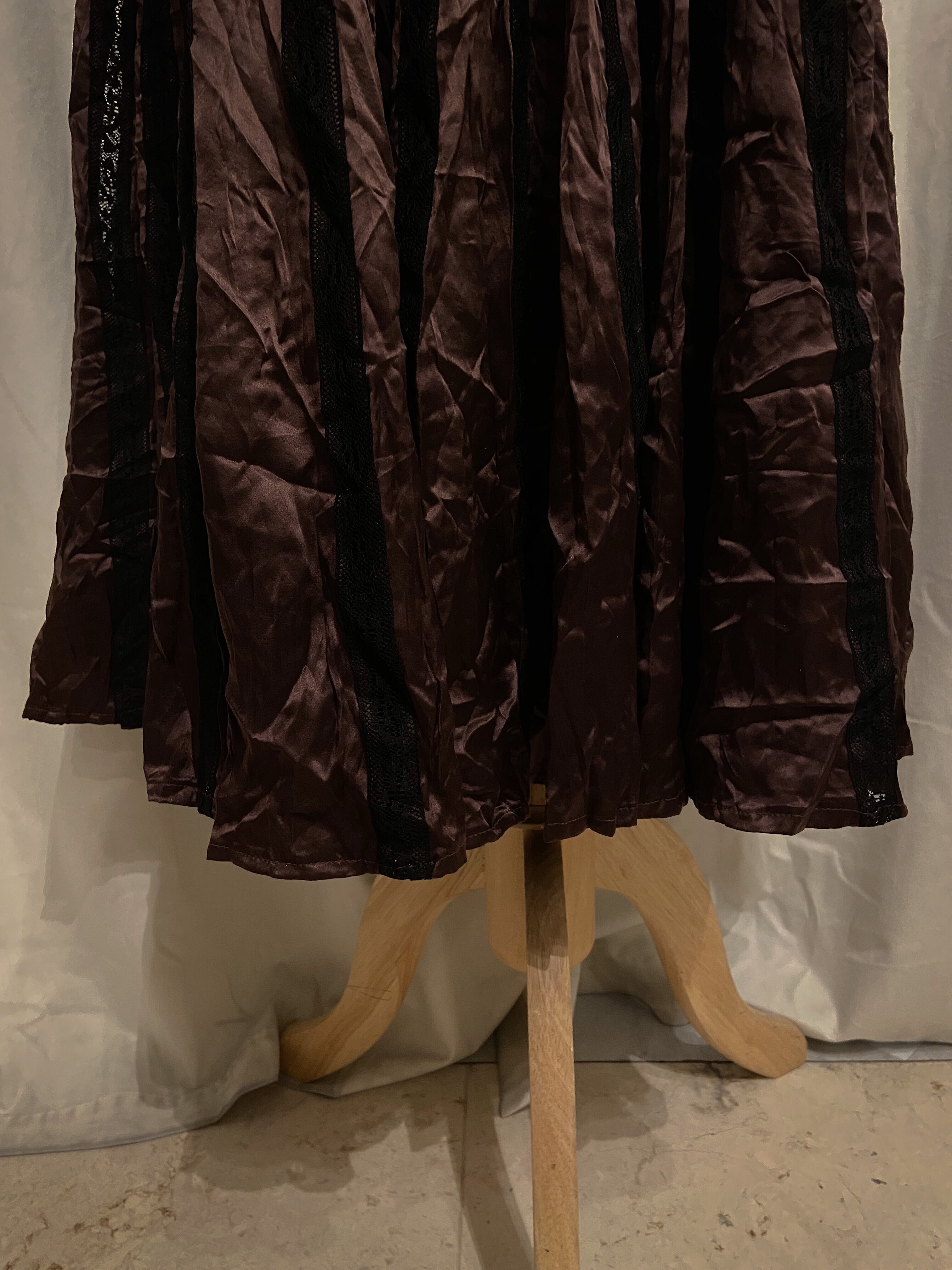Brown Gold Black Lace Pleated Skirt