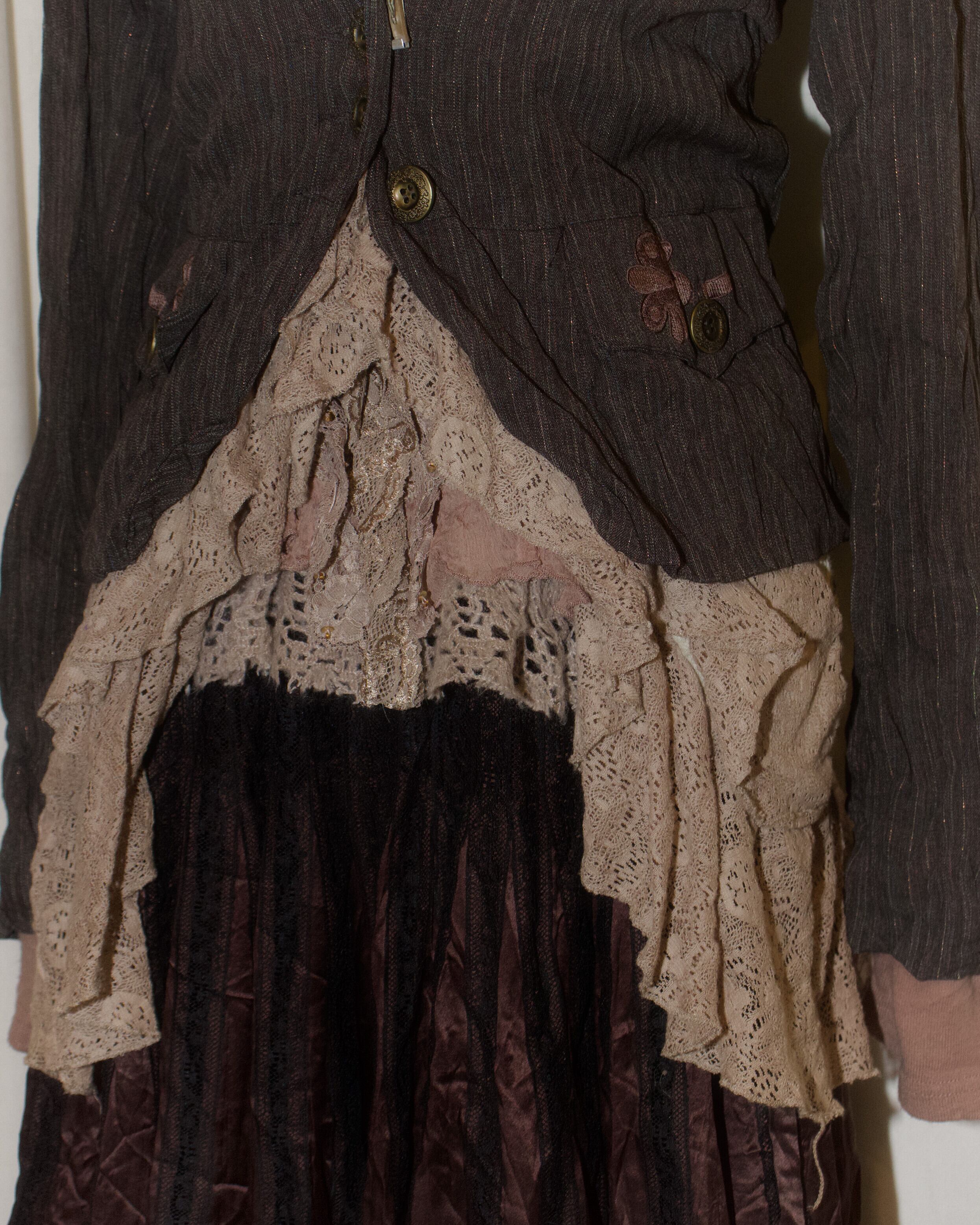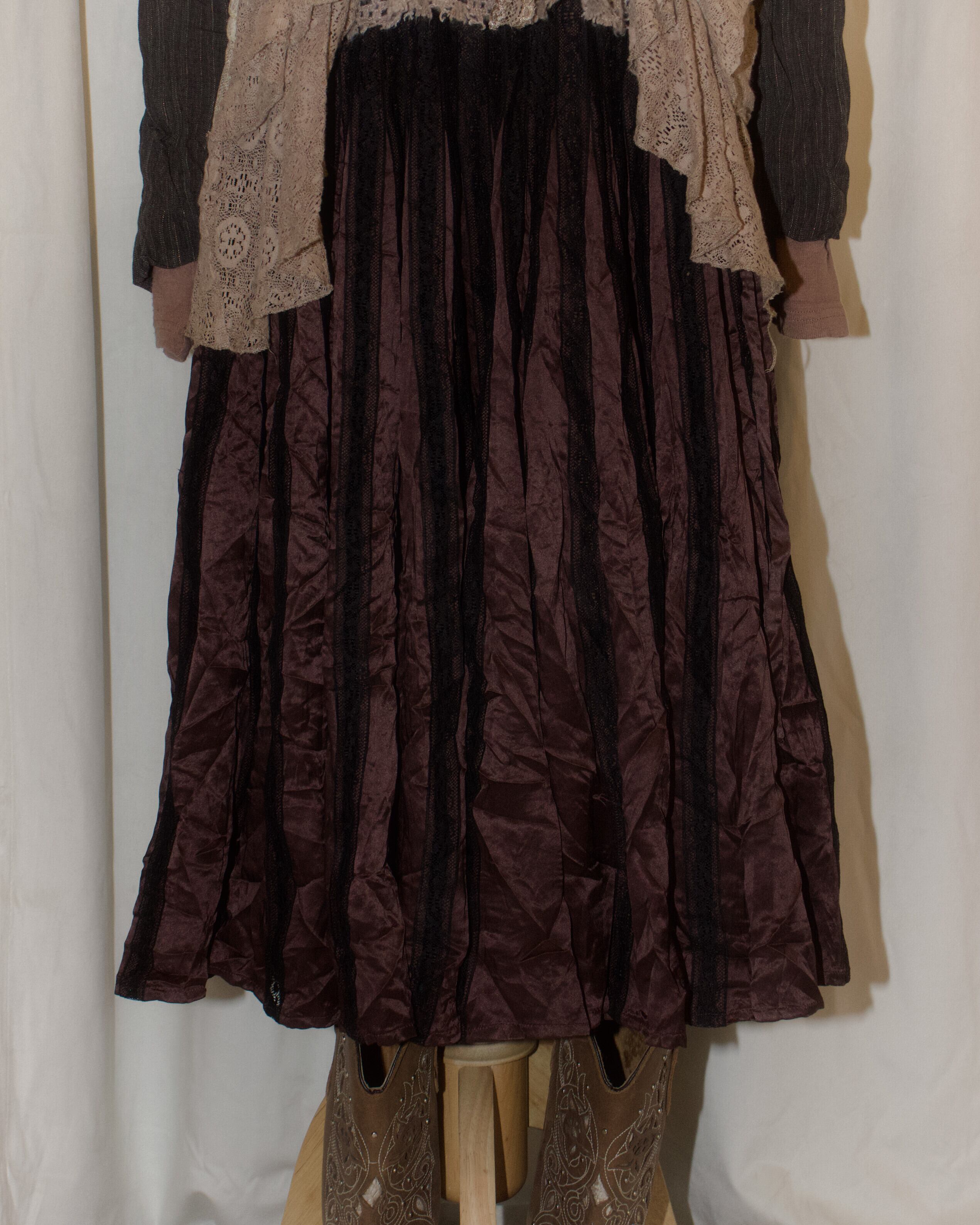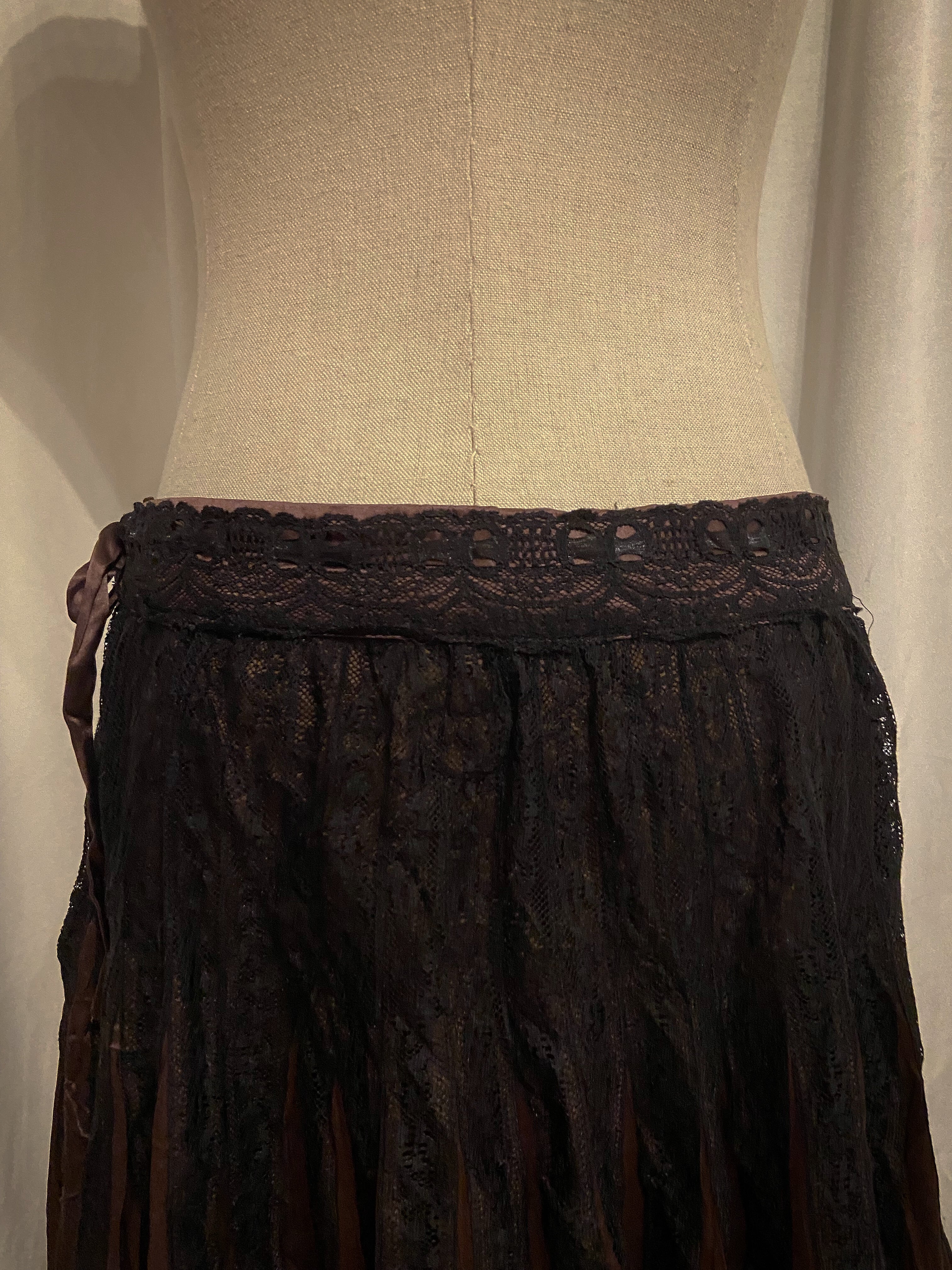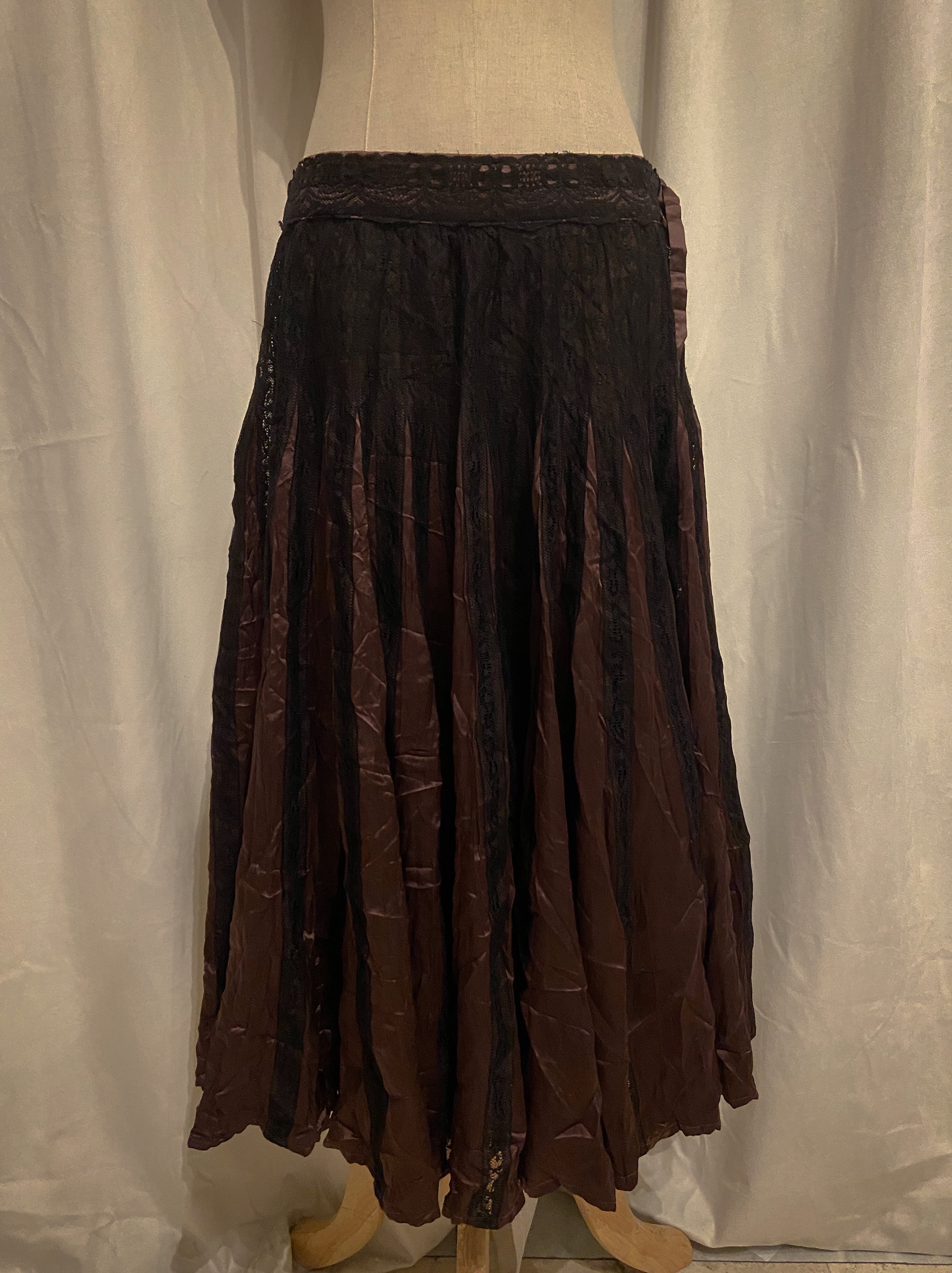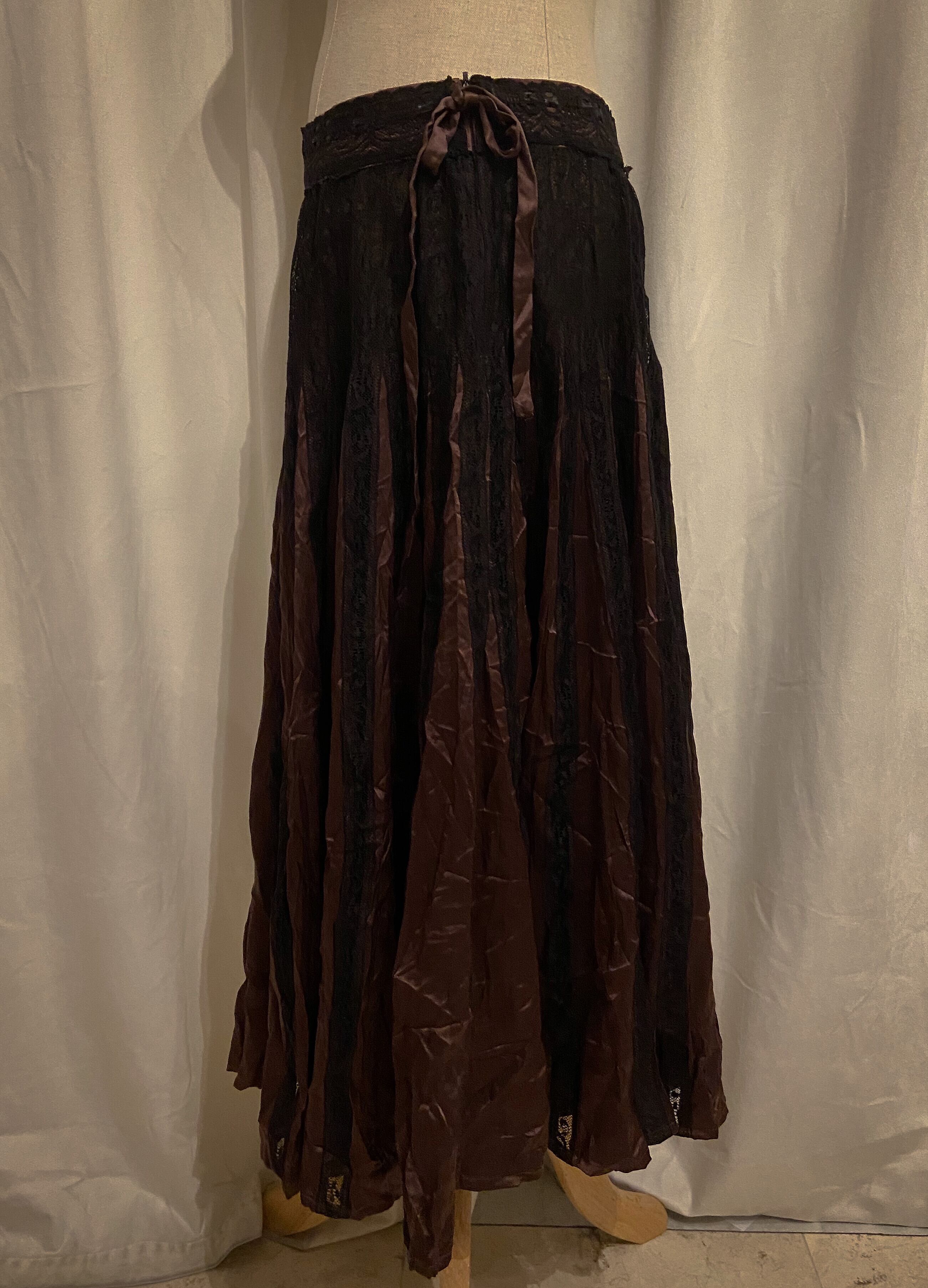 Brown Gold Black Lace Pleated Skirt