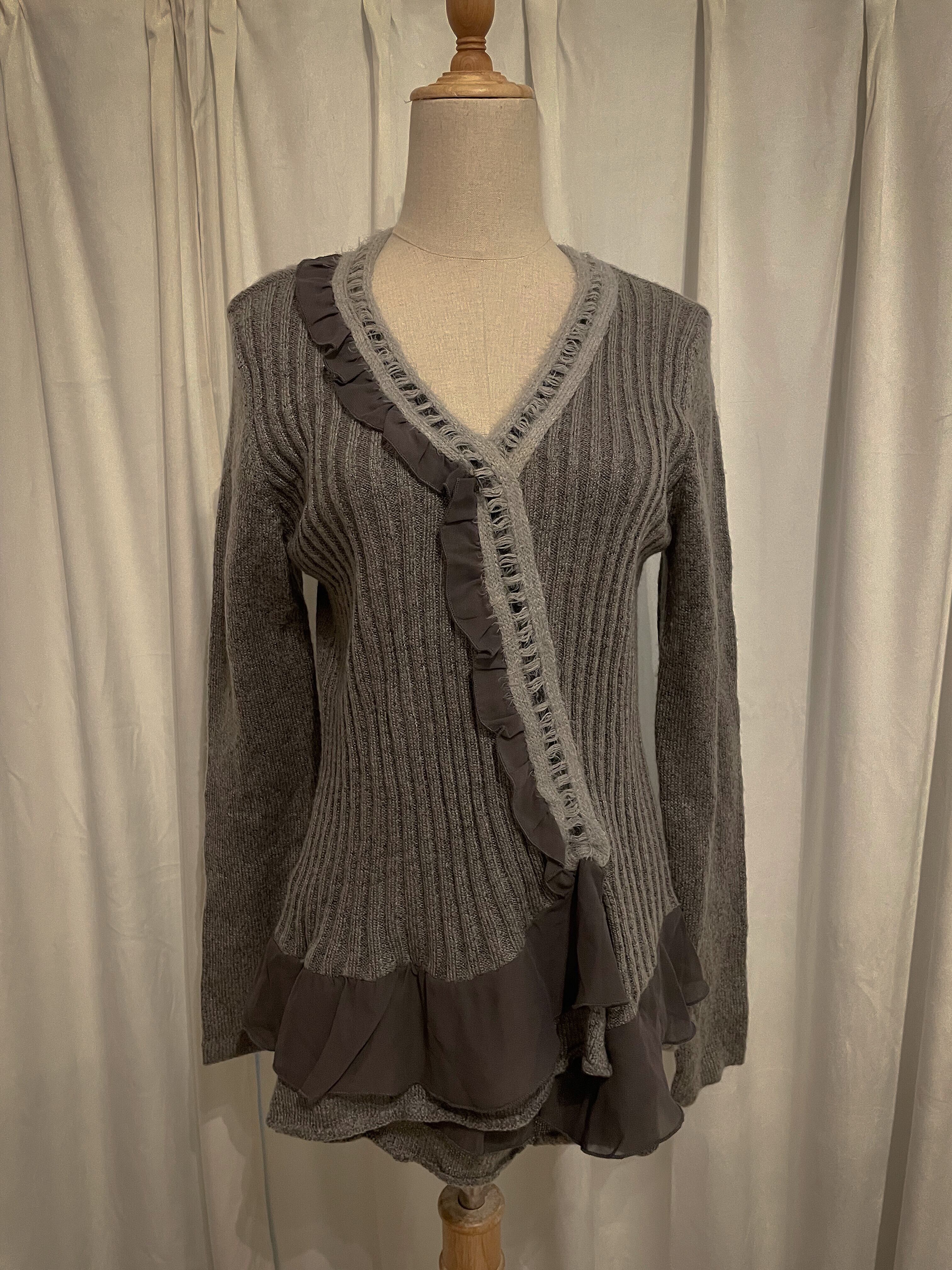 Knit Diagonal Gray&Purple Mini Dress