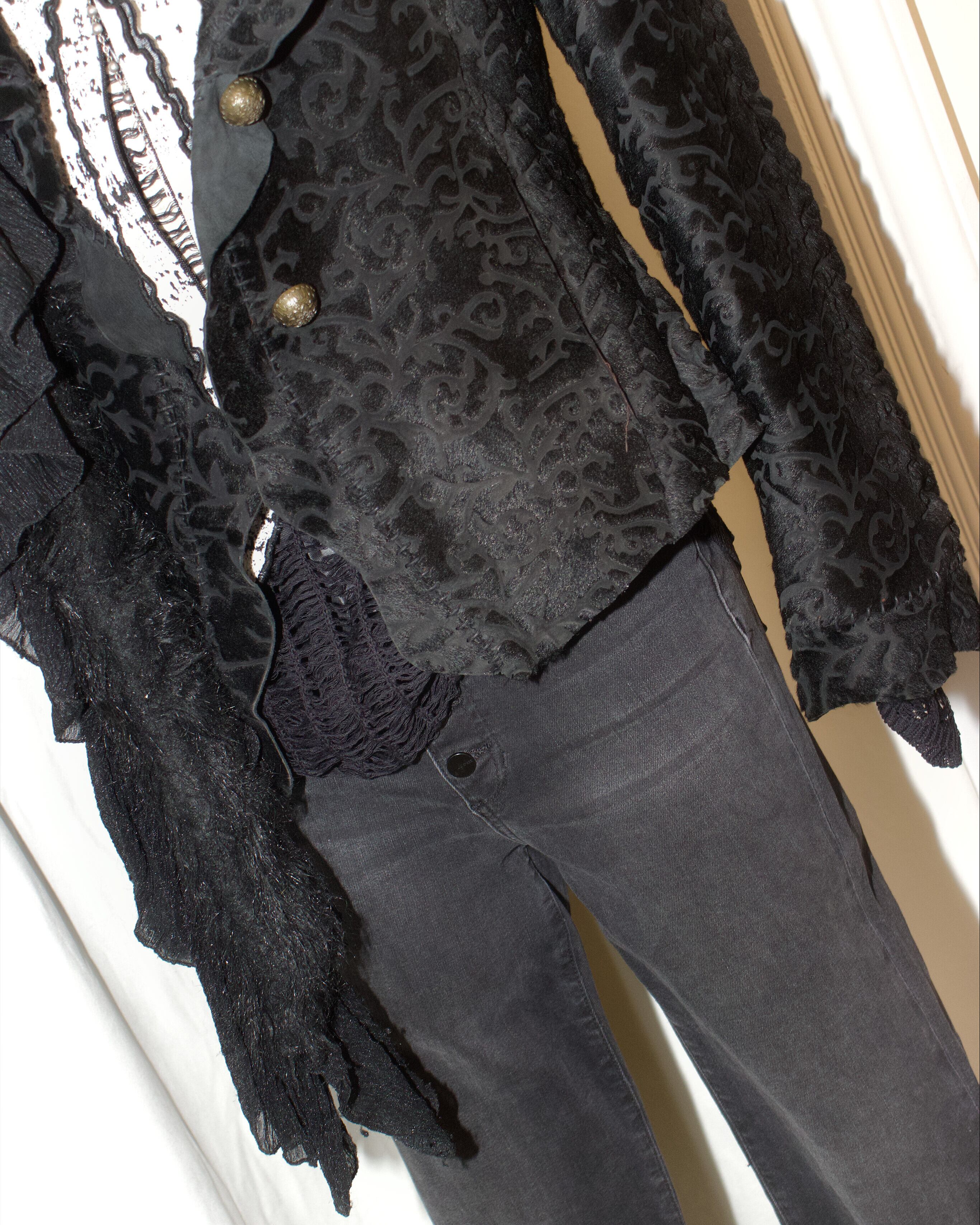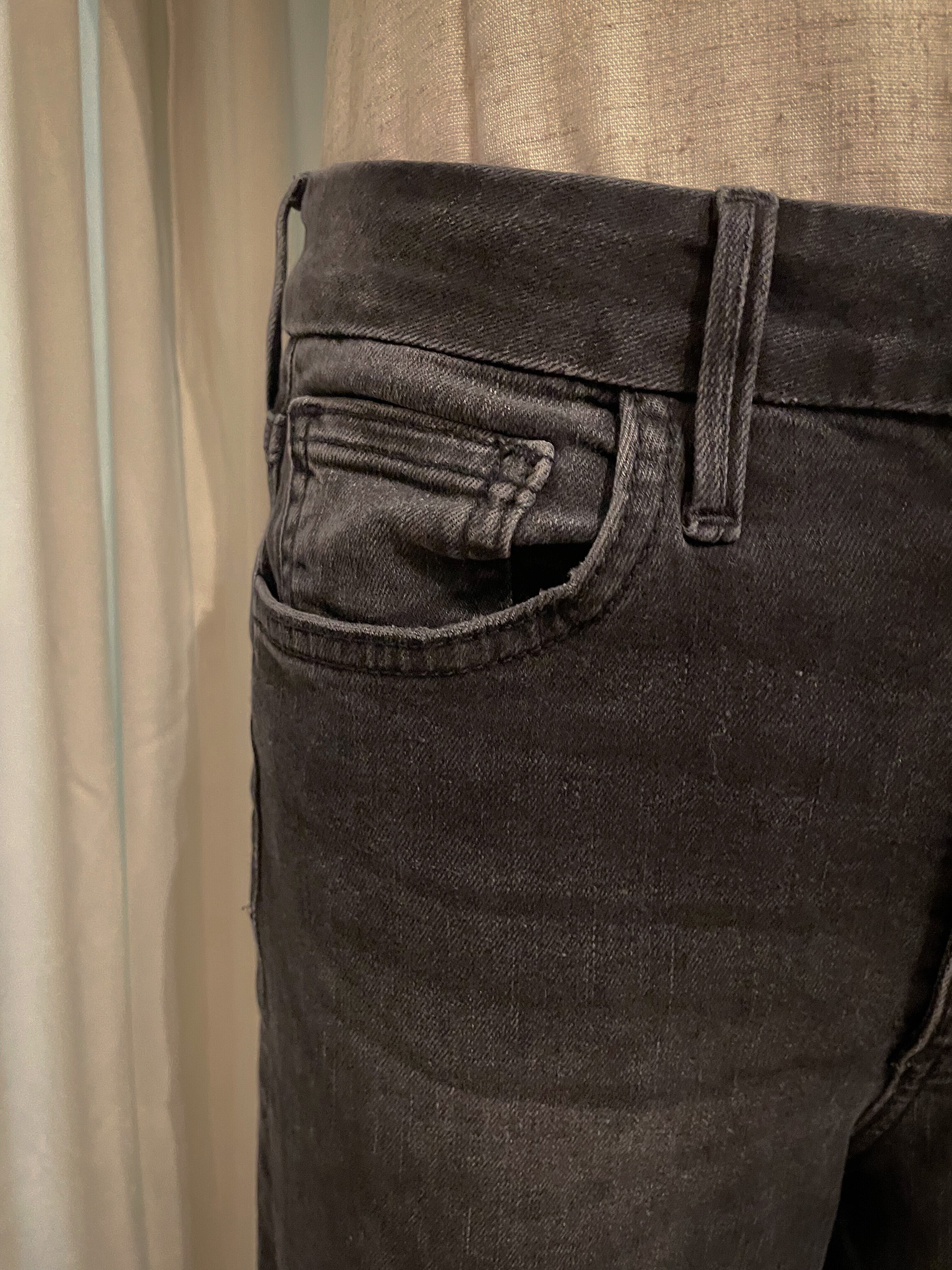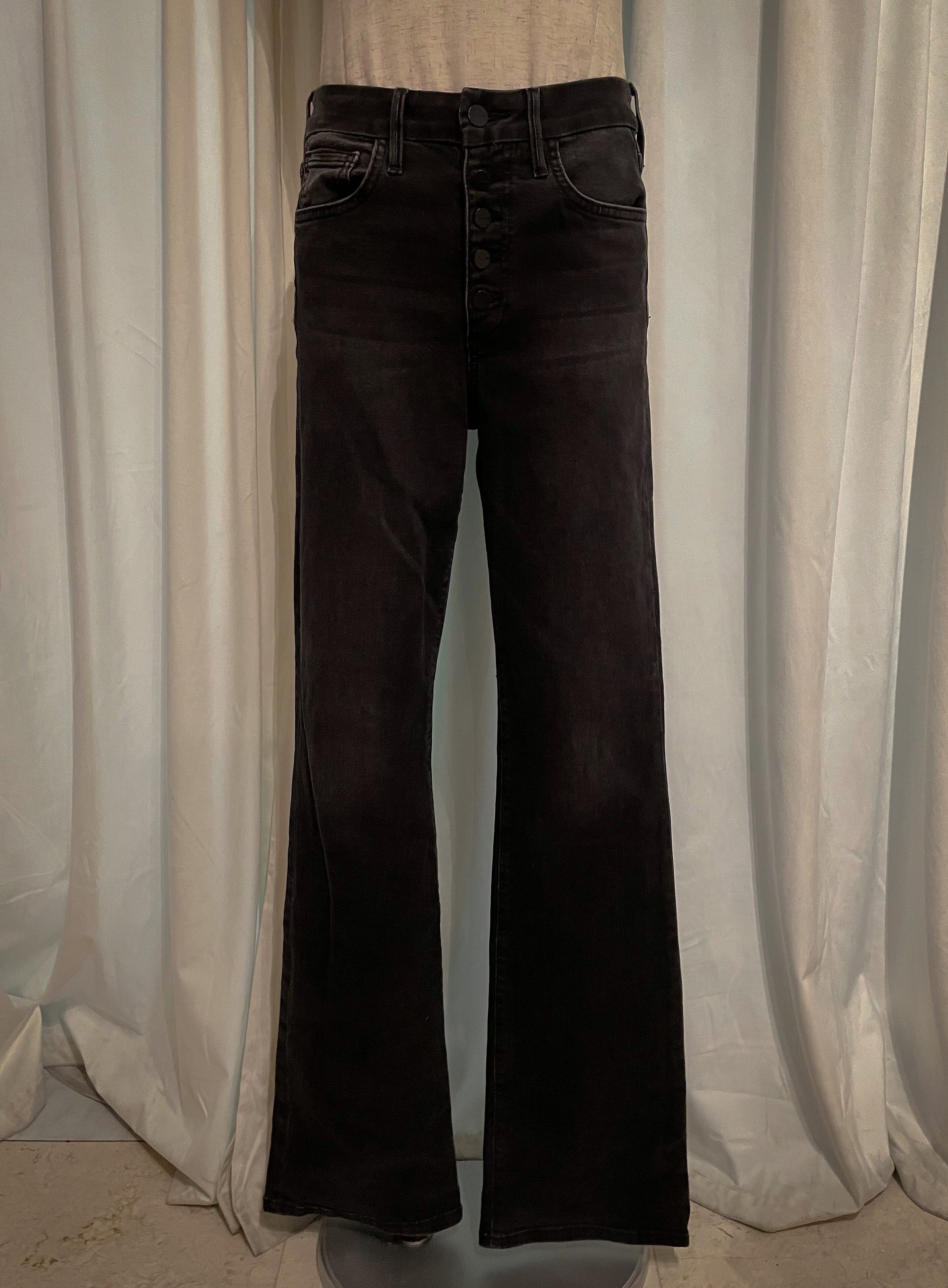 Gray Front Button Fly Denim Pants
