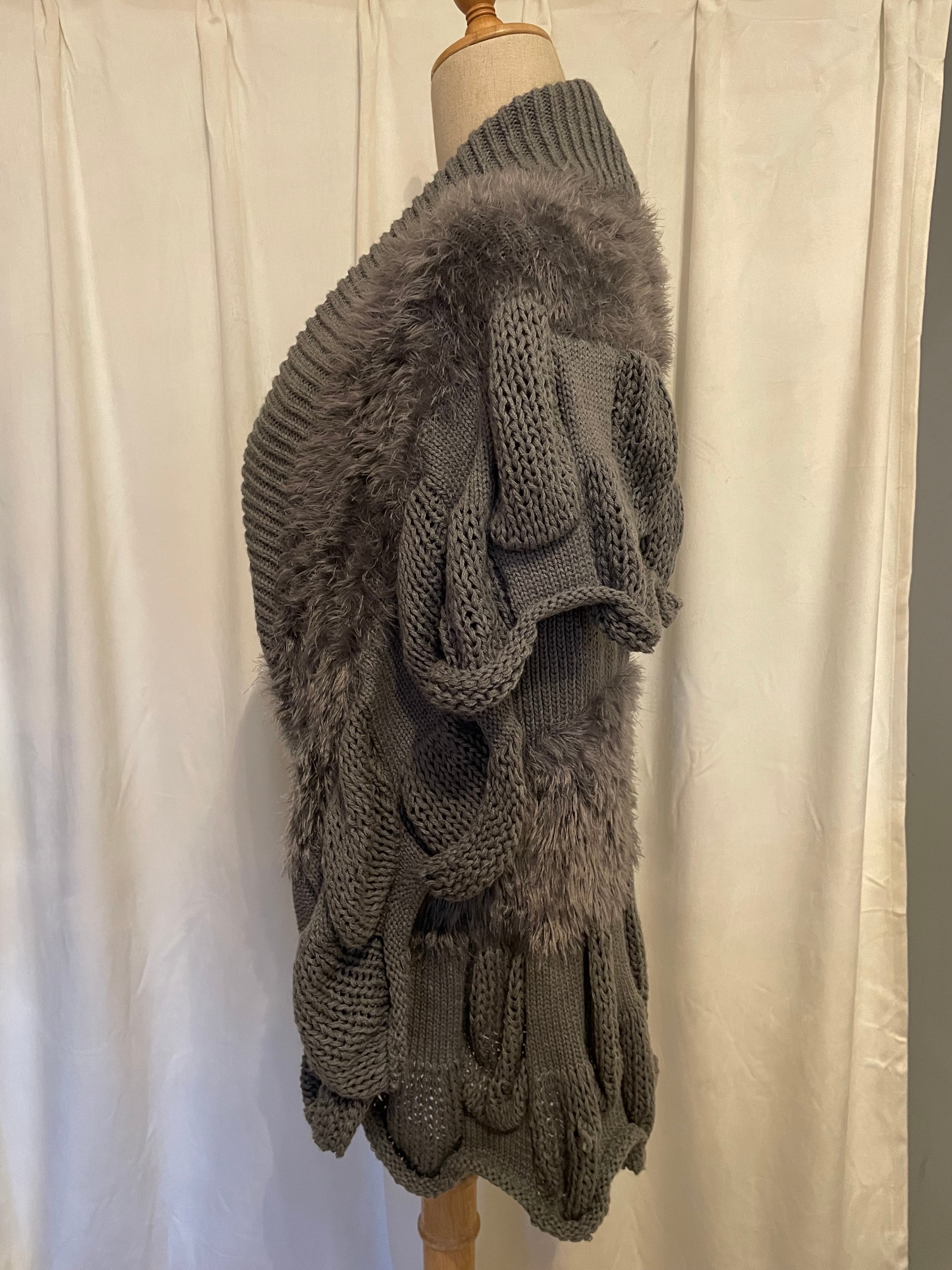 Fluffy Gray Flying Squirrel Knit Cardigan
