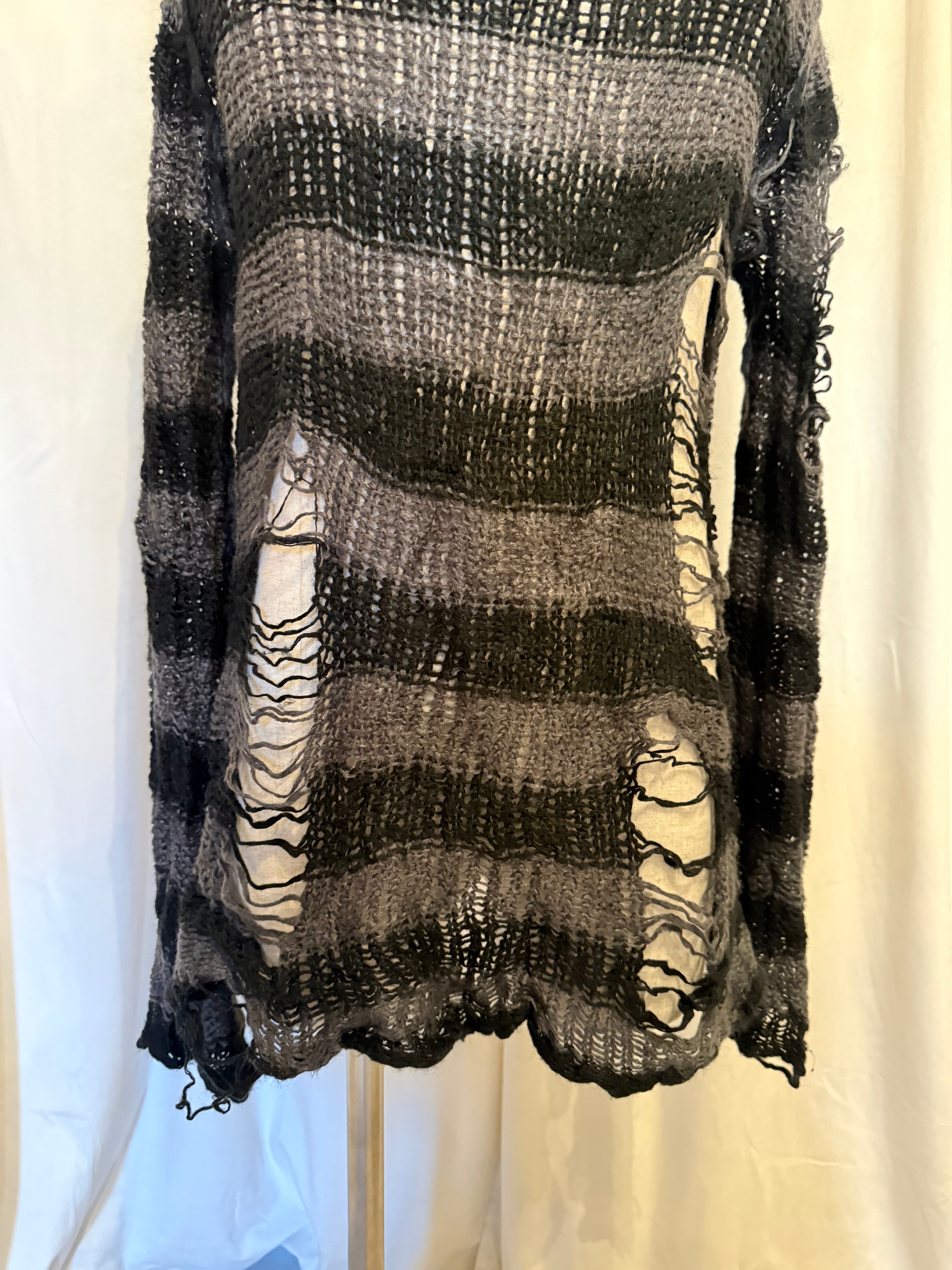 Purple Gray Border Knit Long Tee