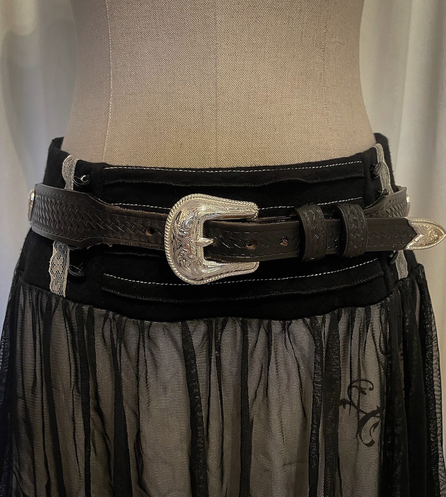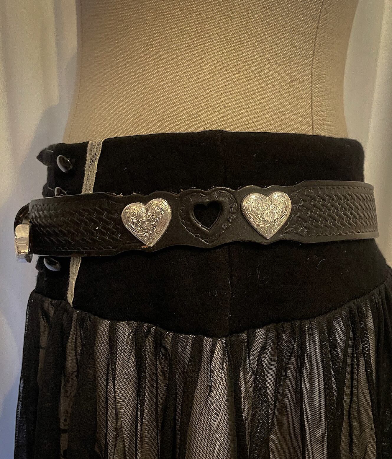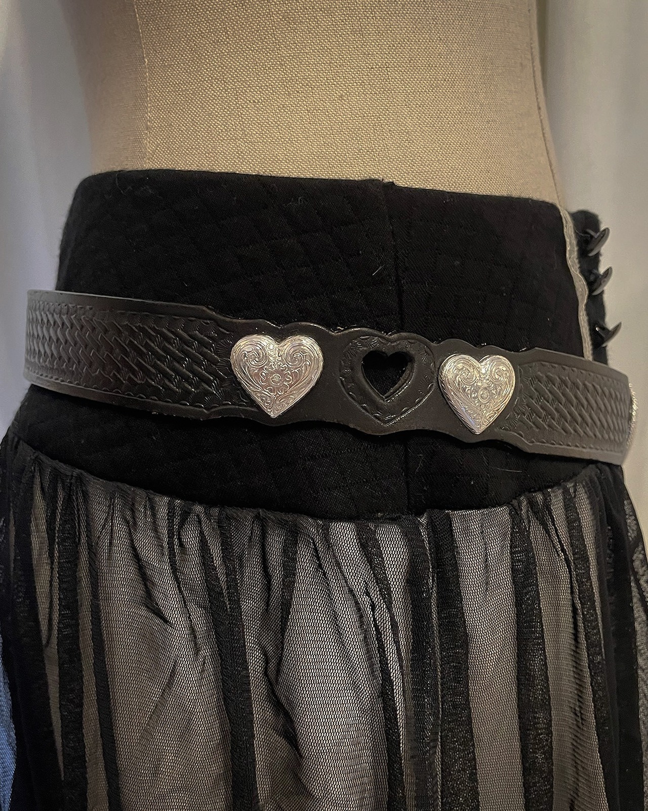 Heart Silver Black Thin Belt