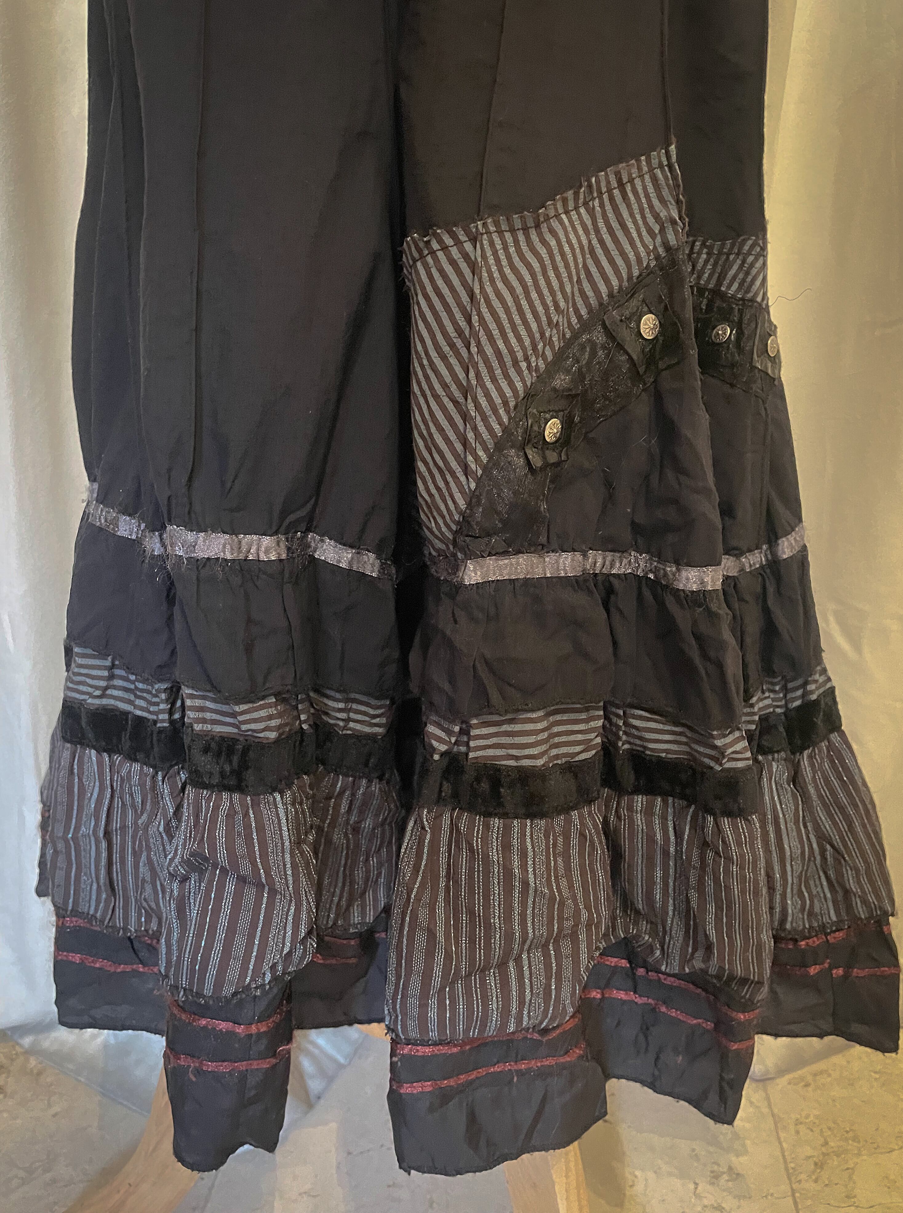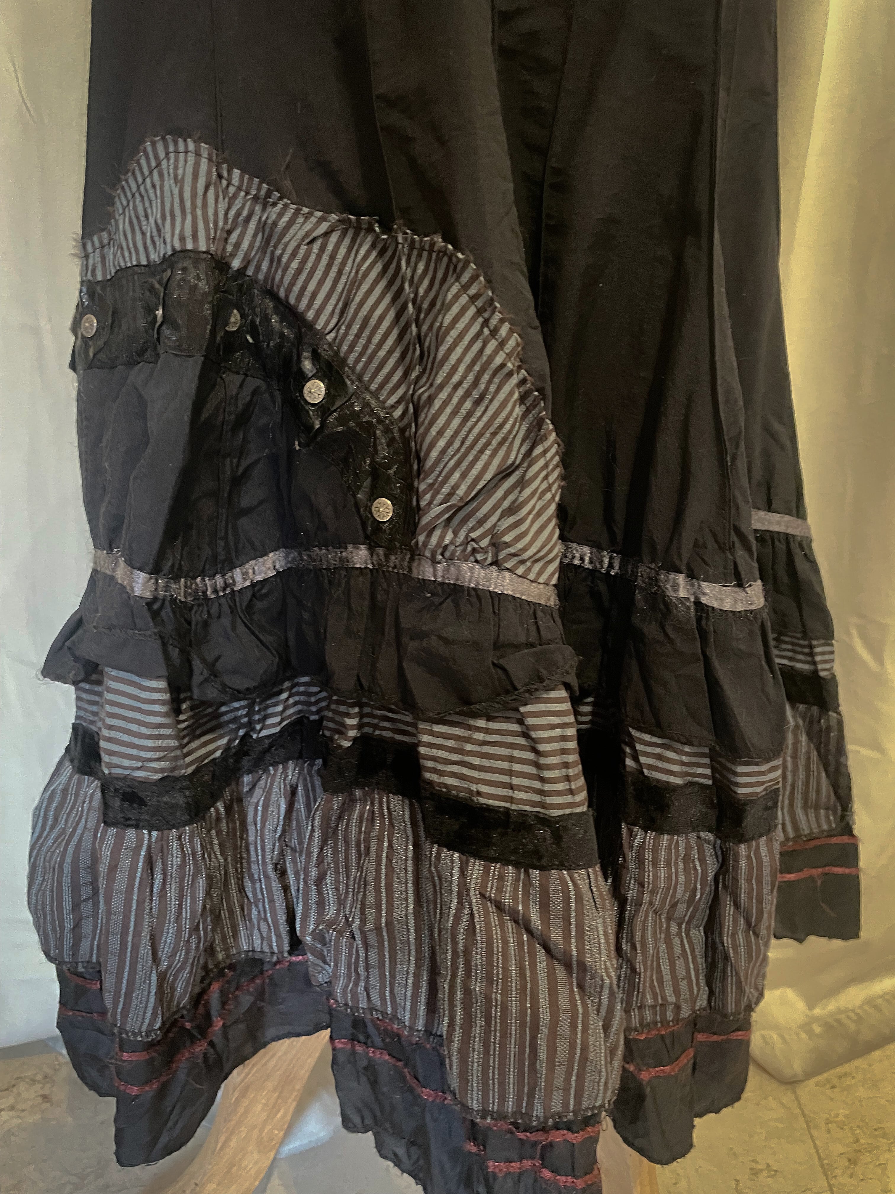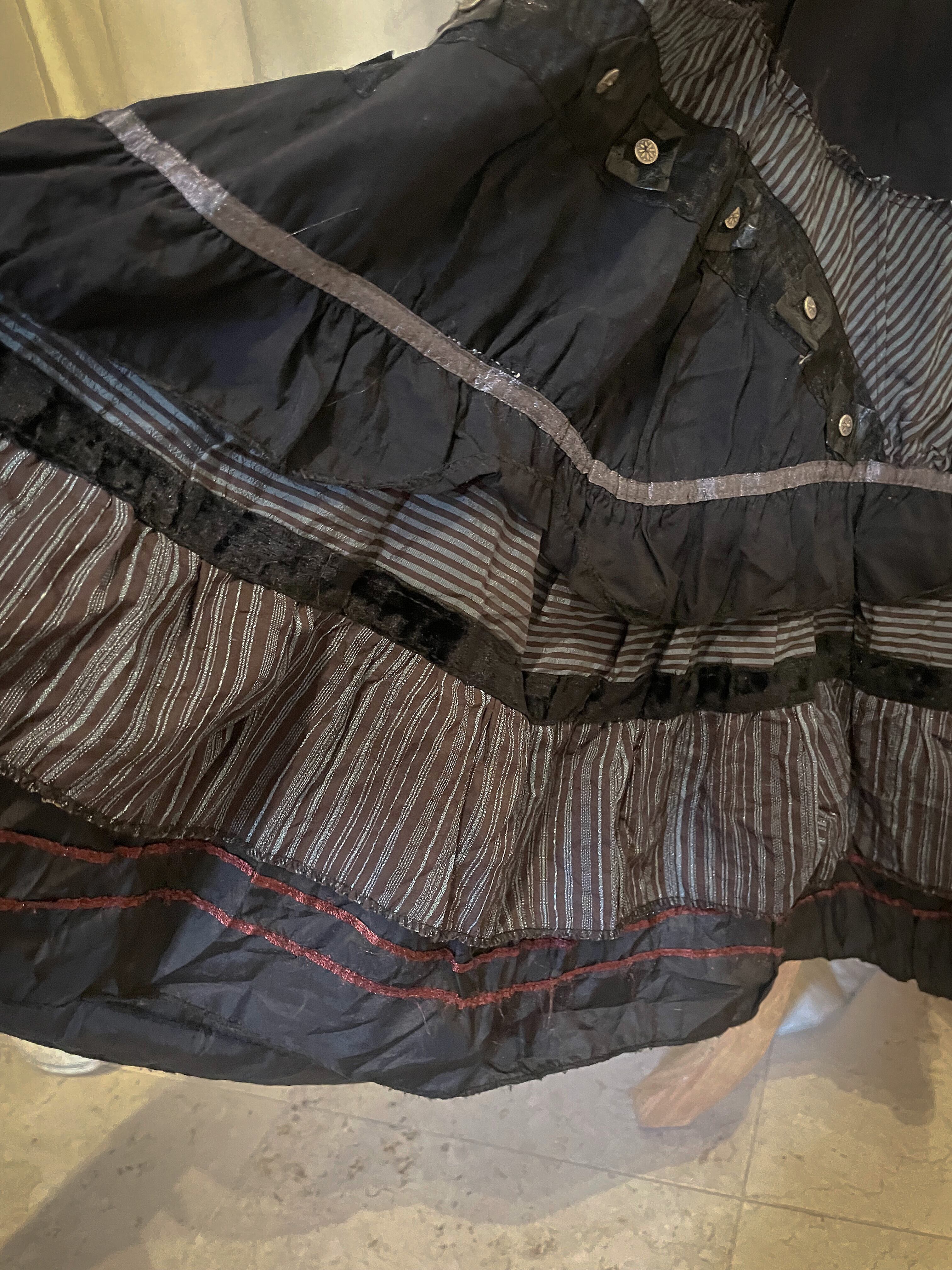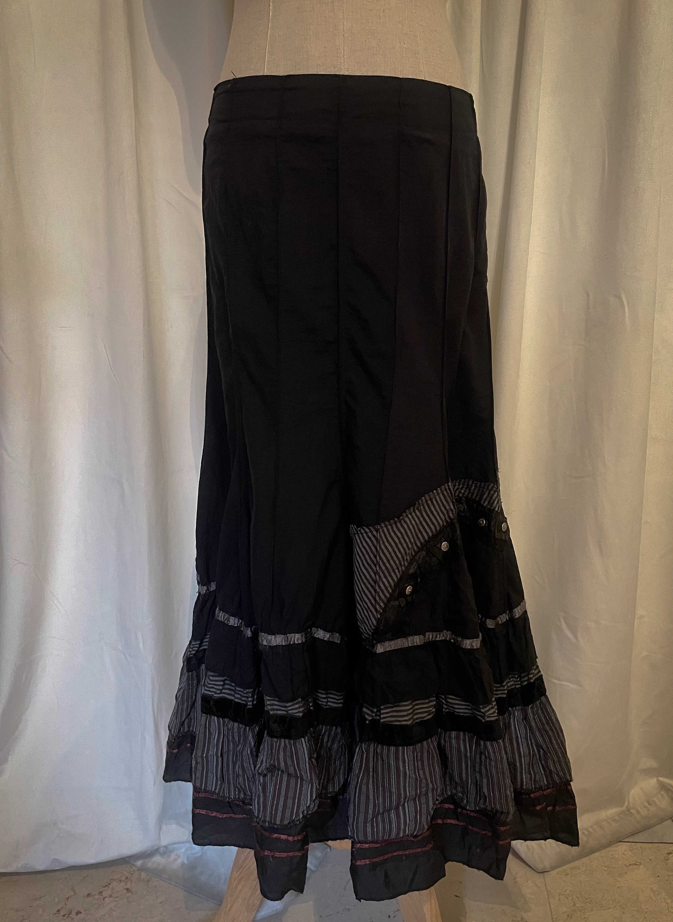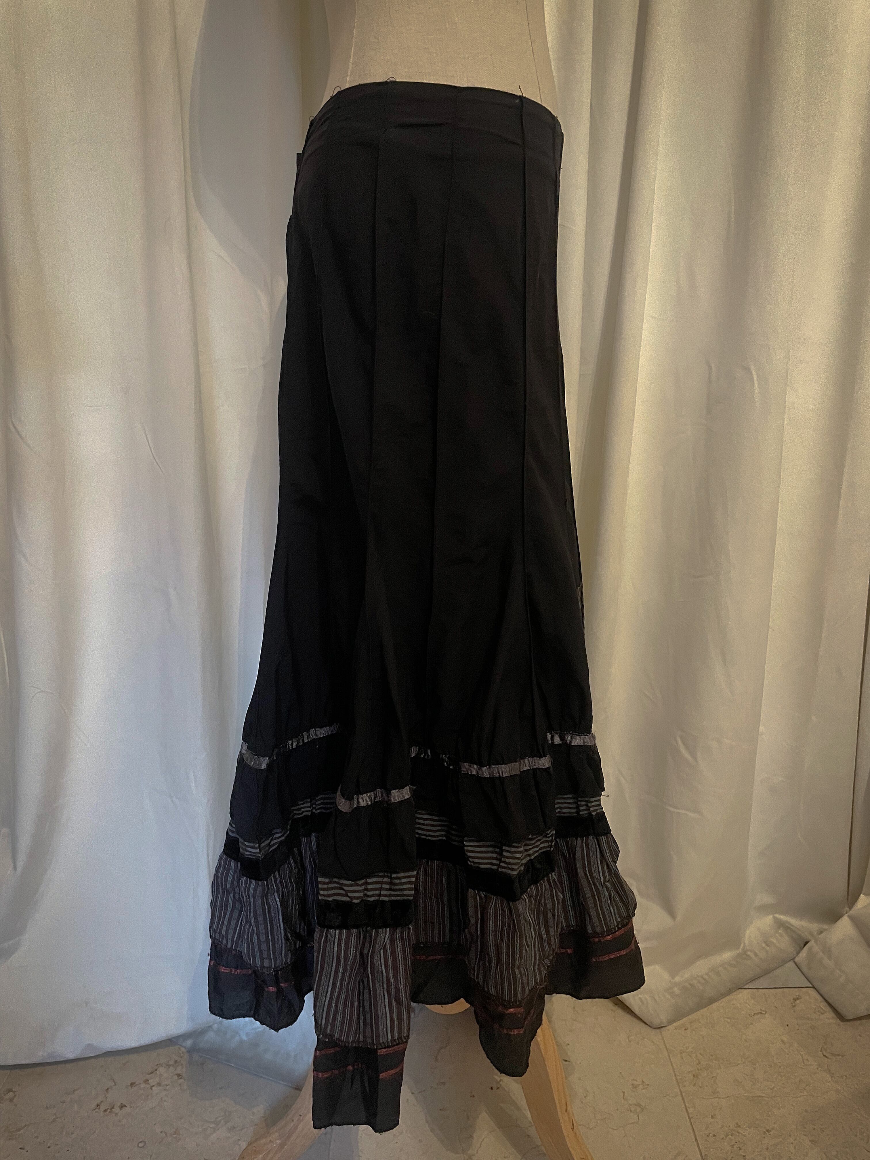Black Deconstructed Stripe Long Skirt [France]