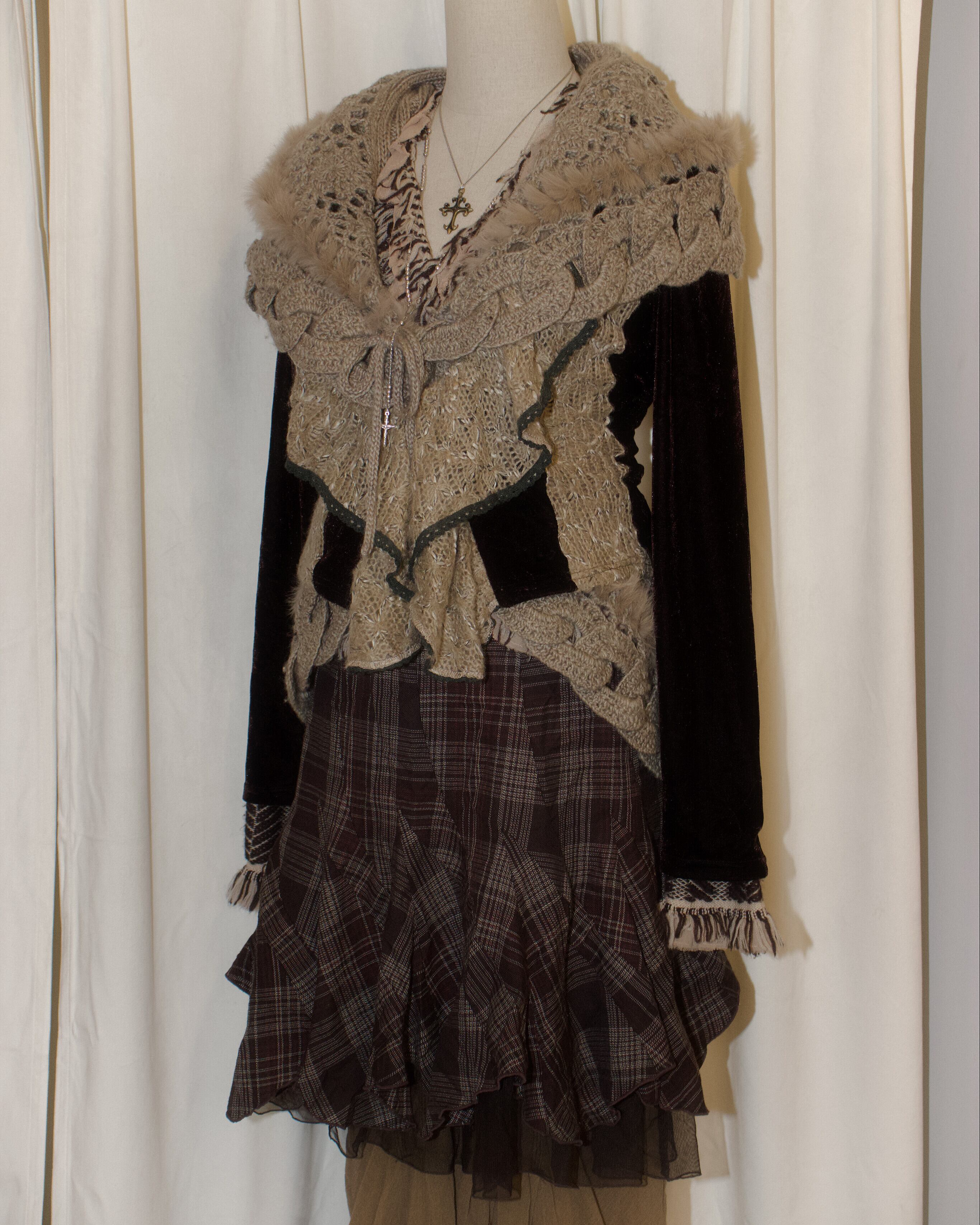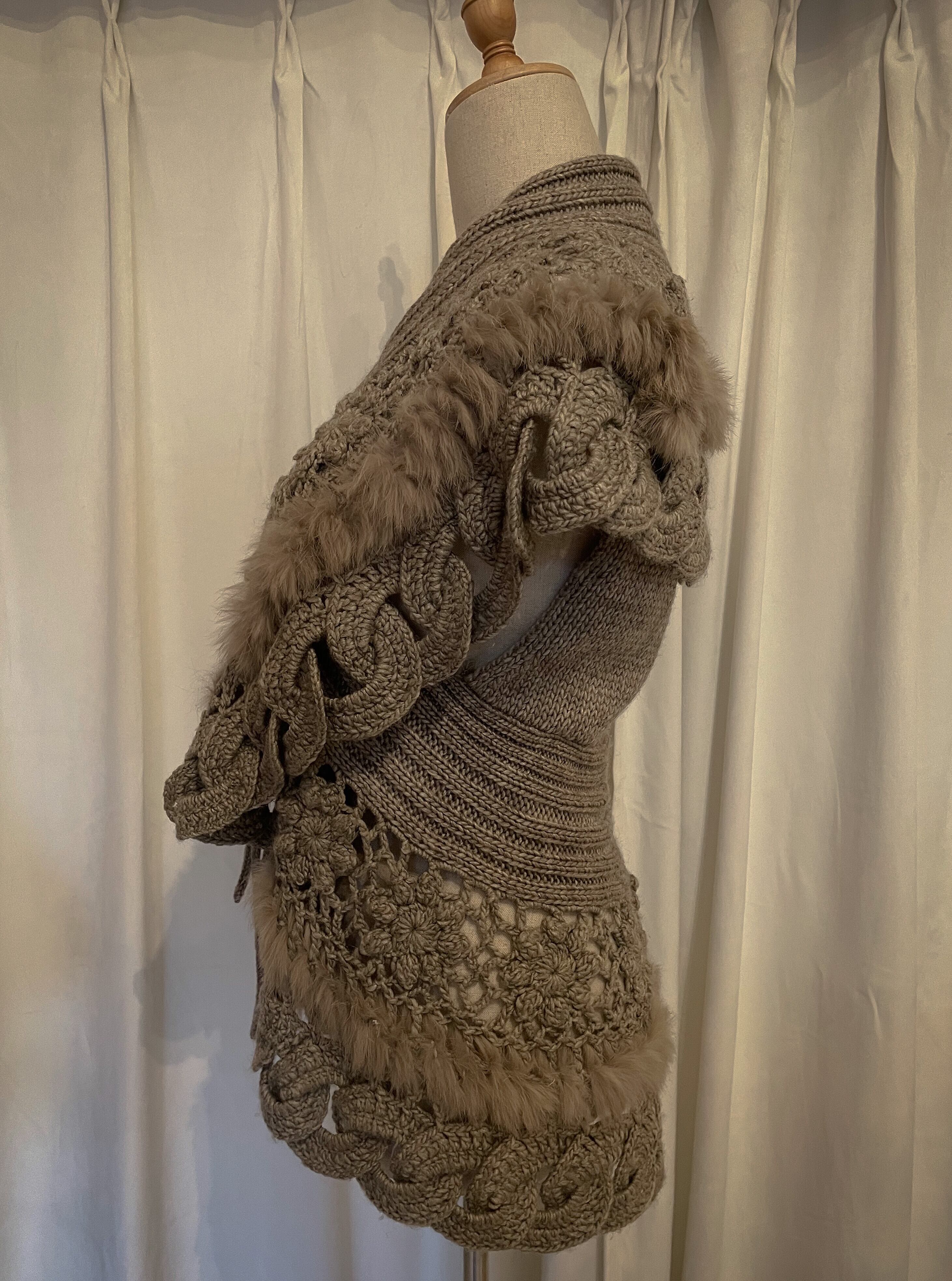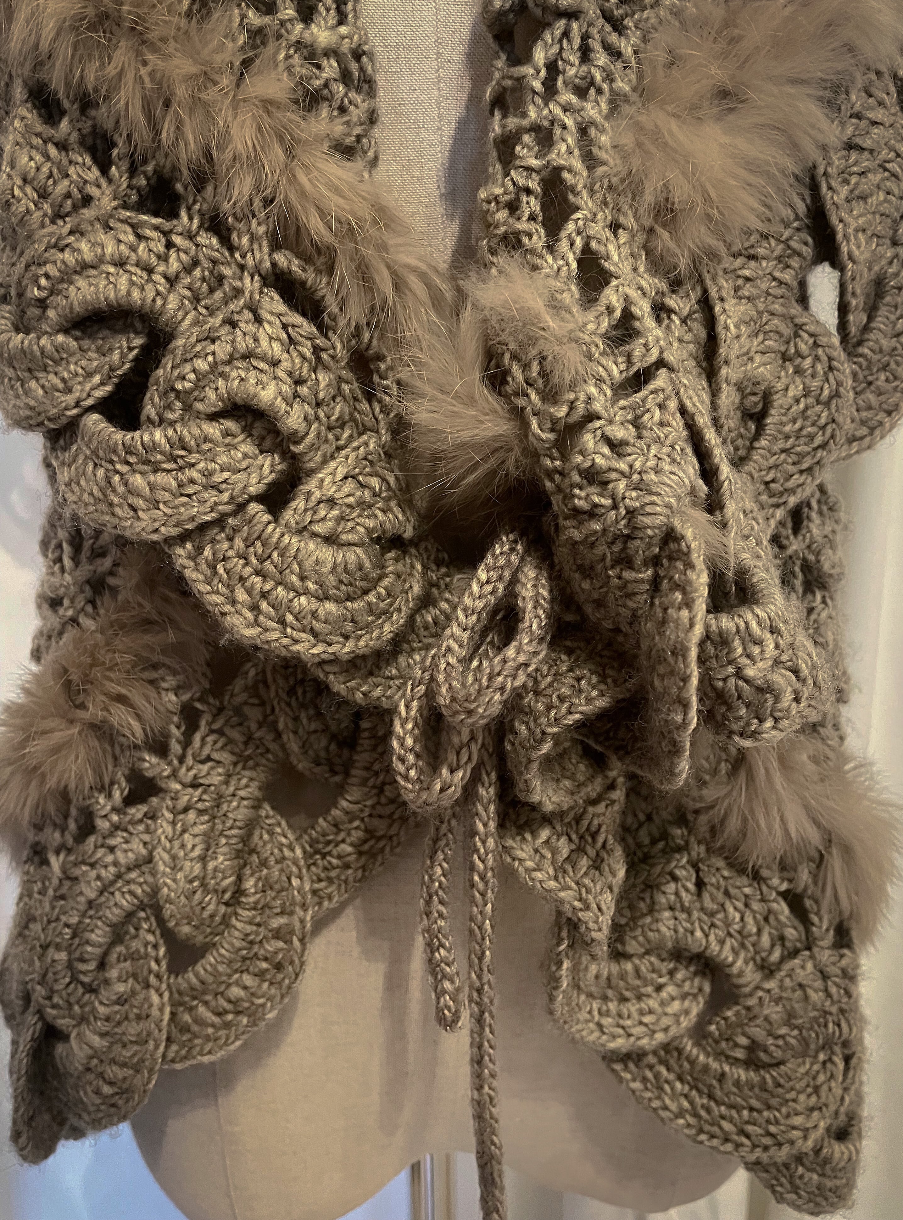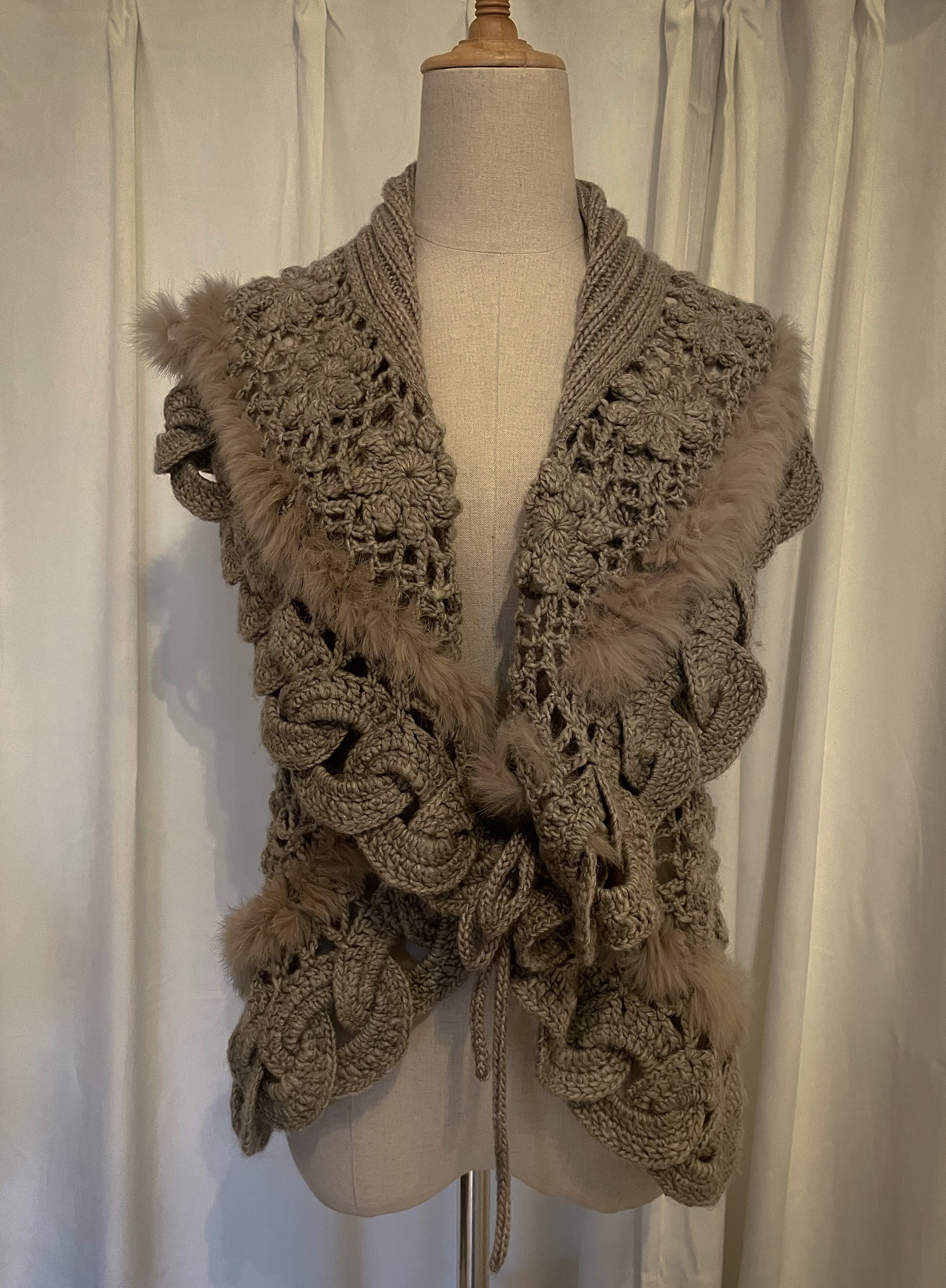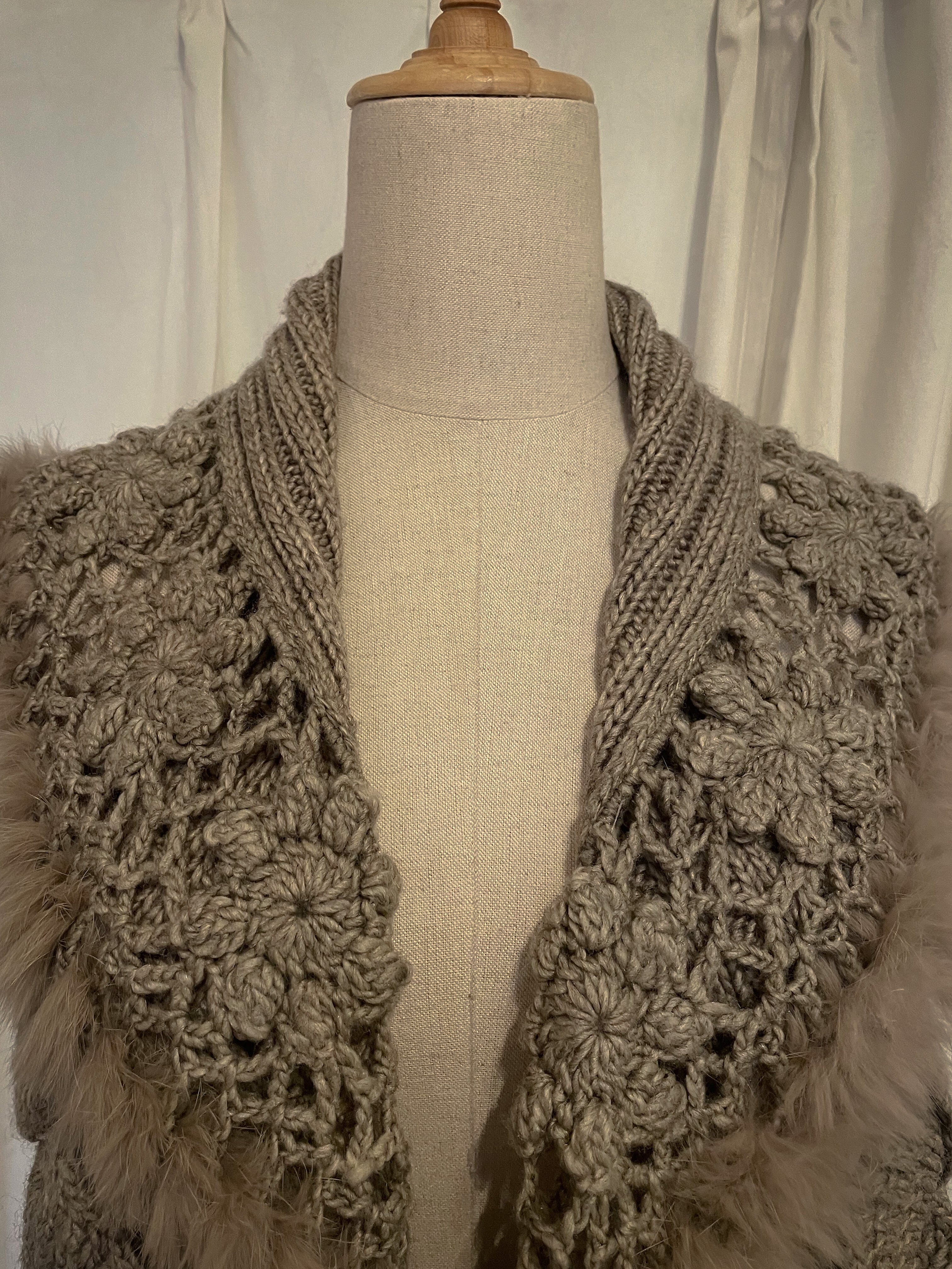 Intricate Cable Frill Fur-Trim Vest