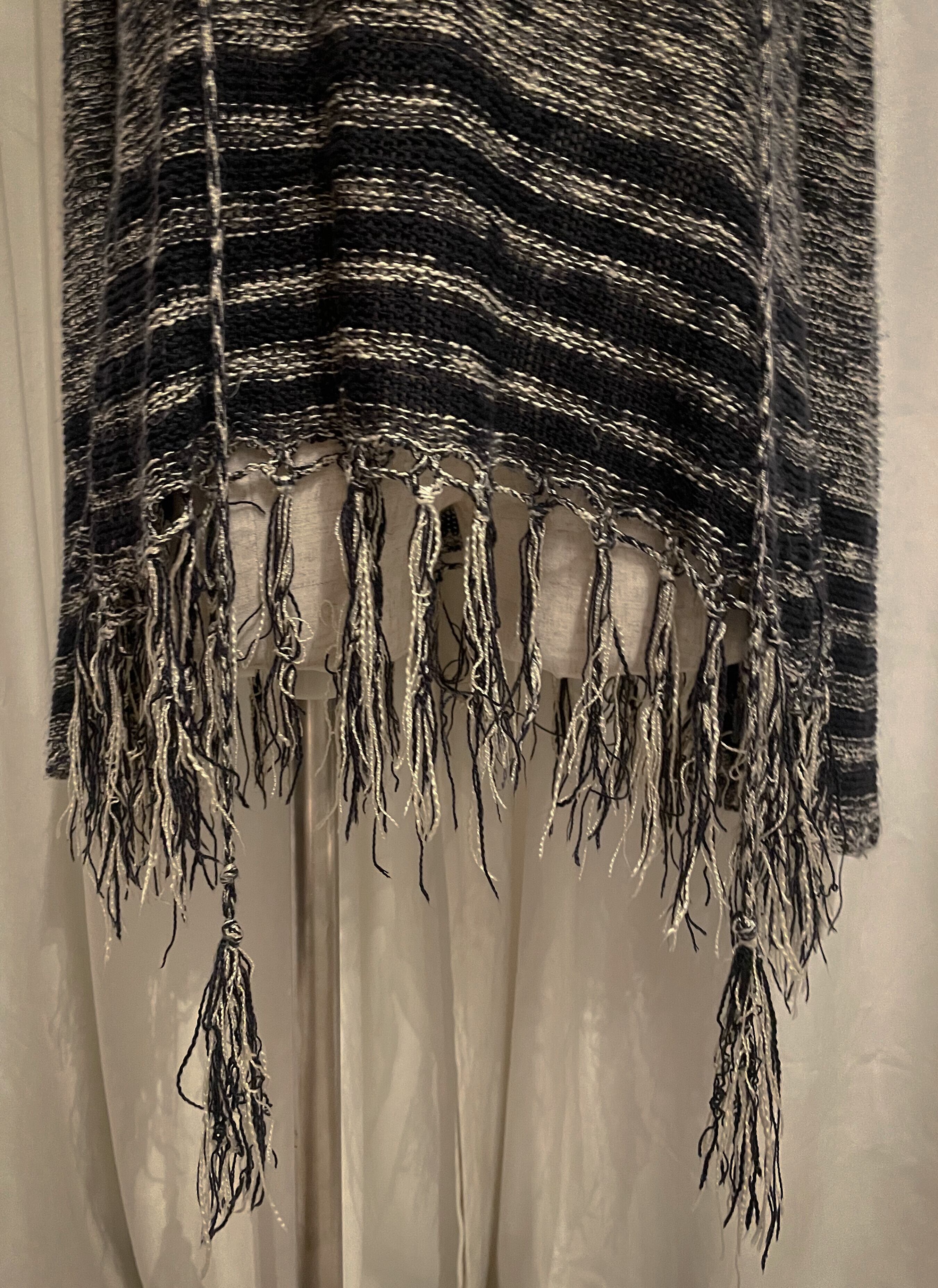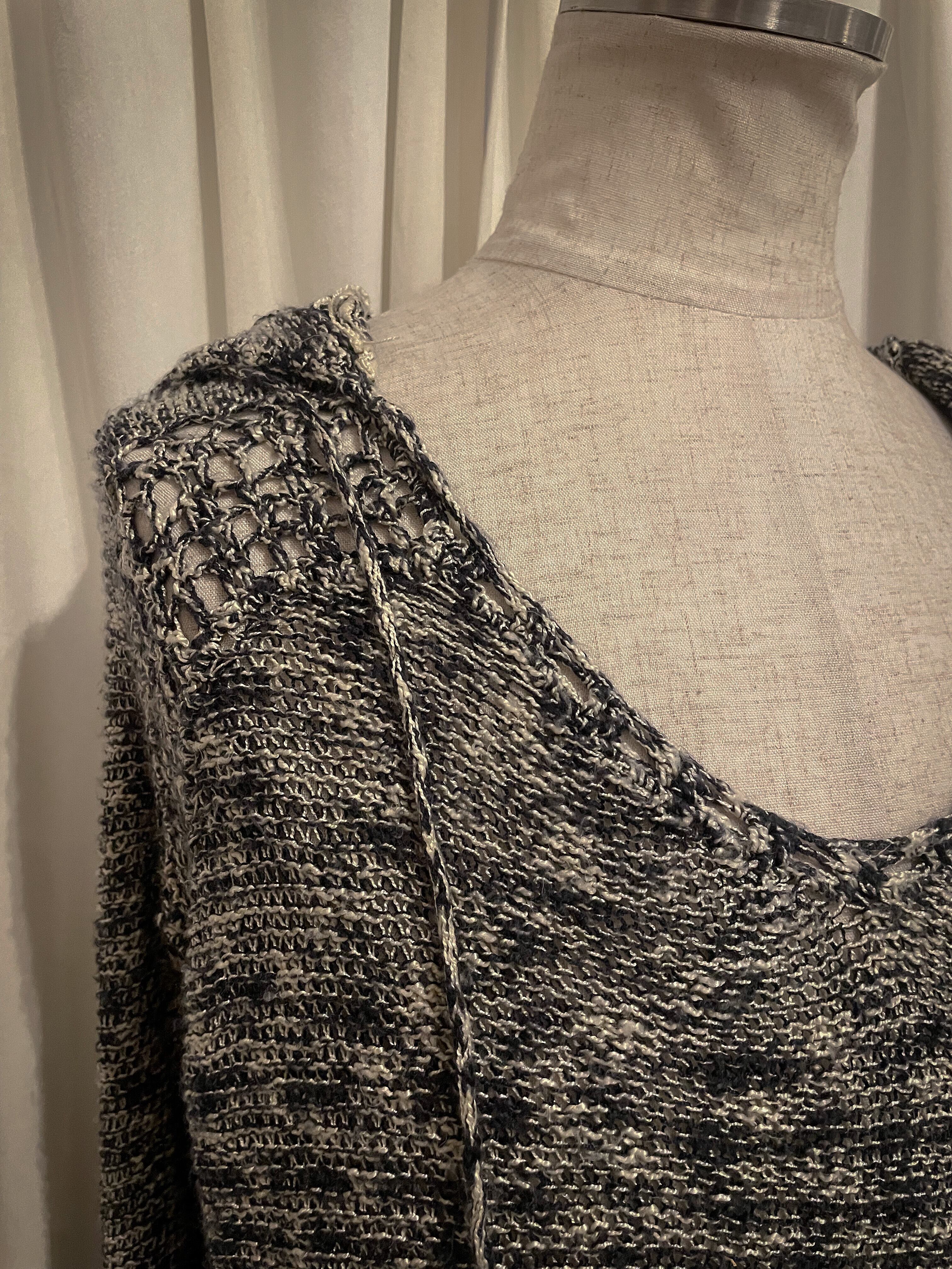 Fringed Hem Border Knit Hoodie
