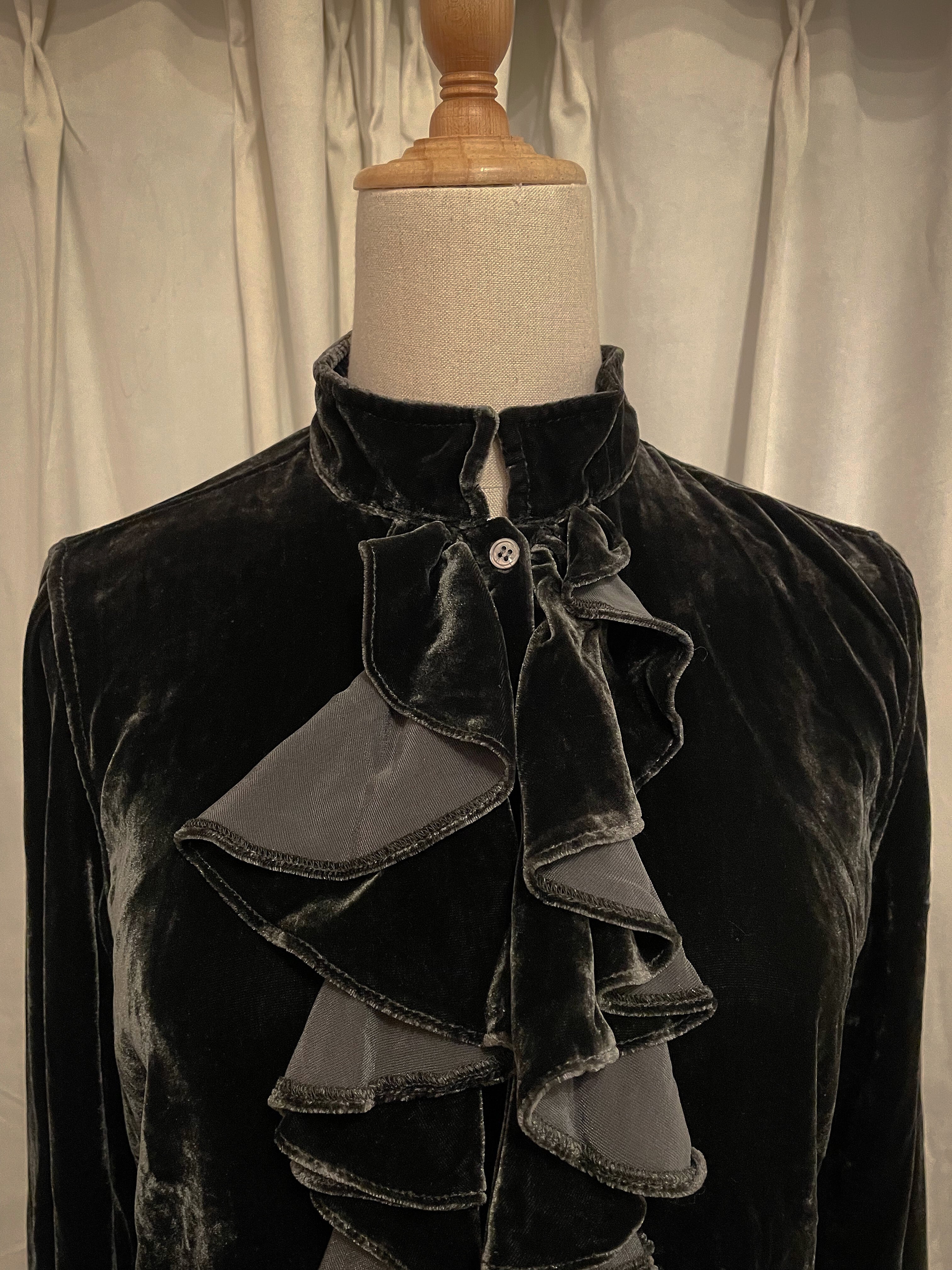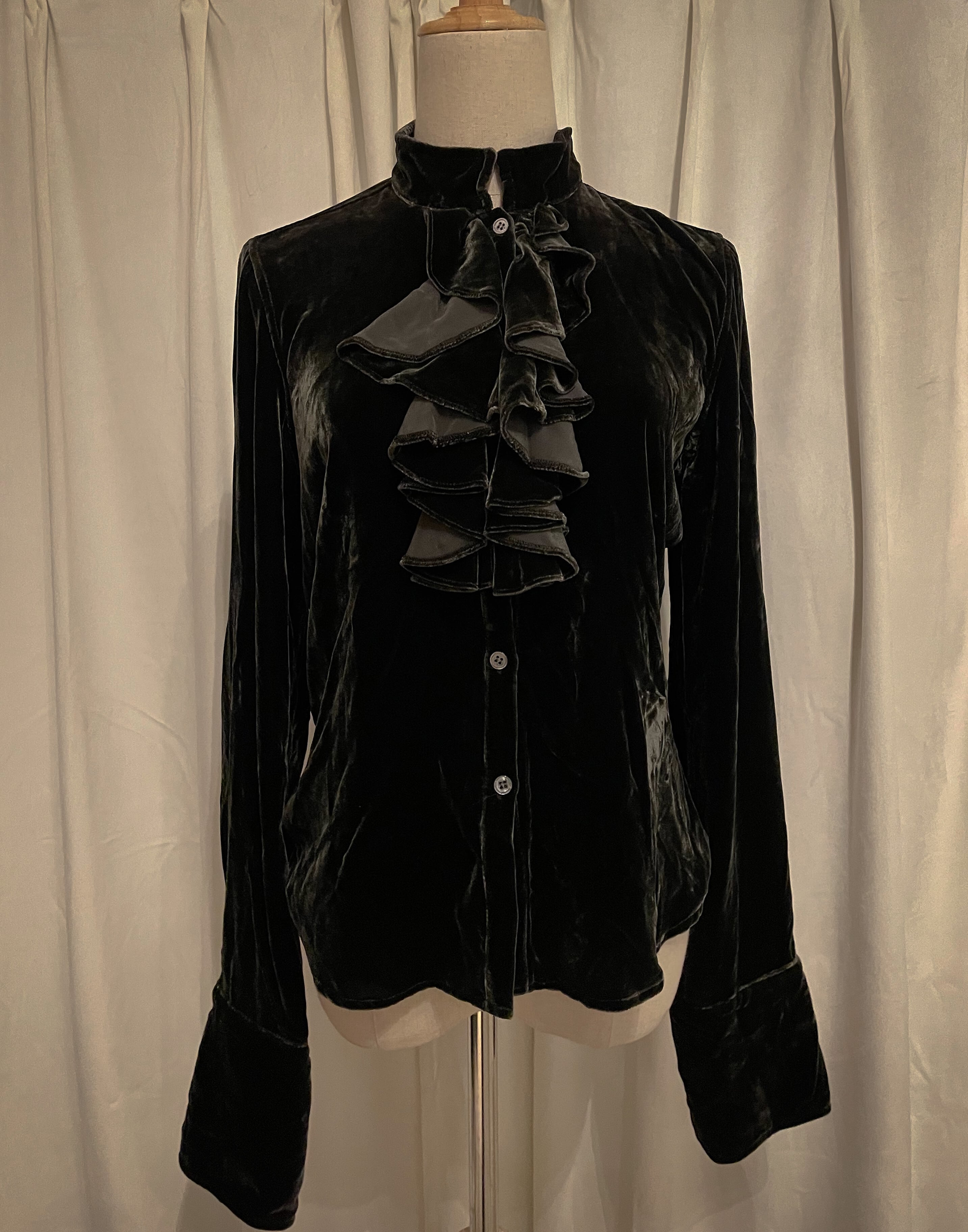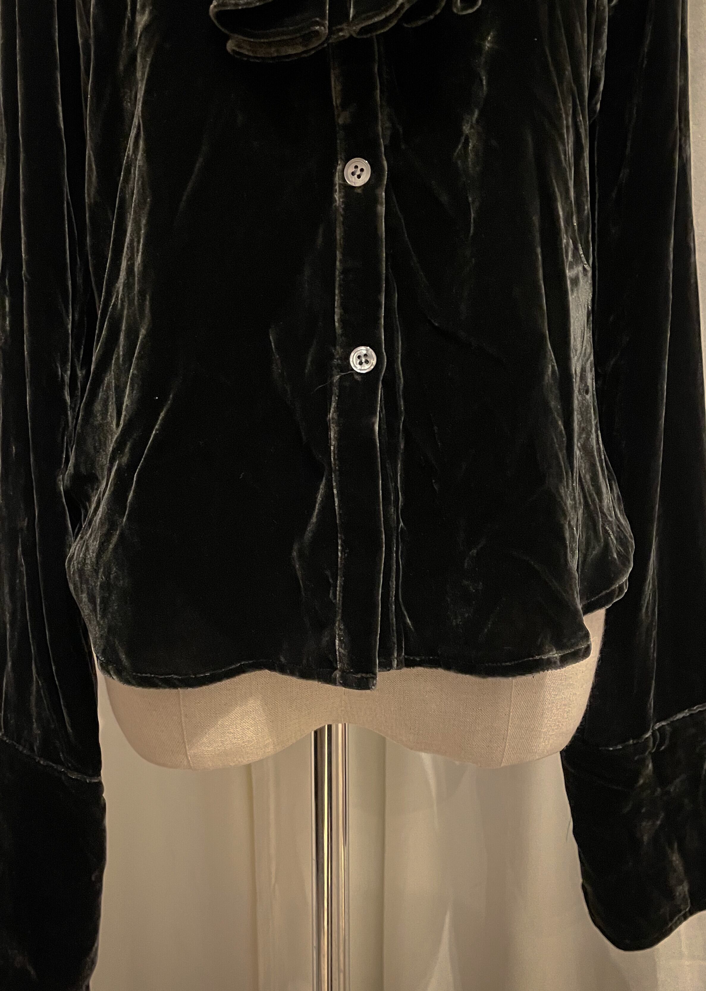 Dark Green Velour Frill Shirt