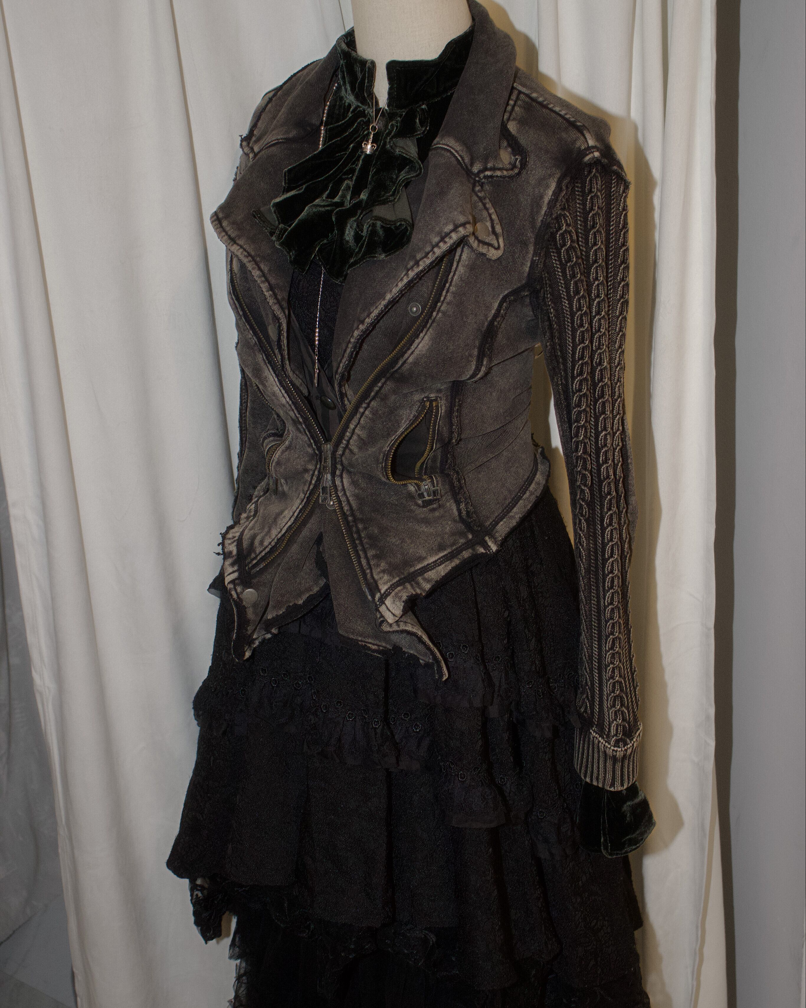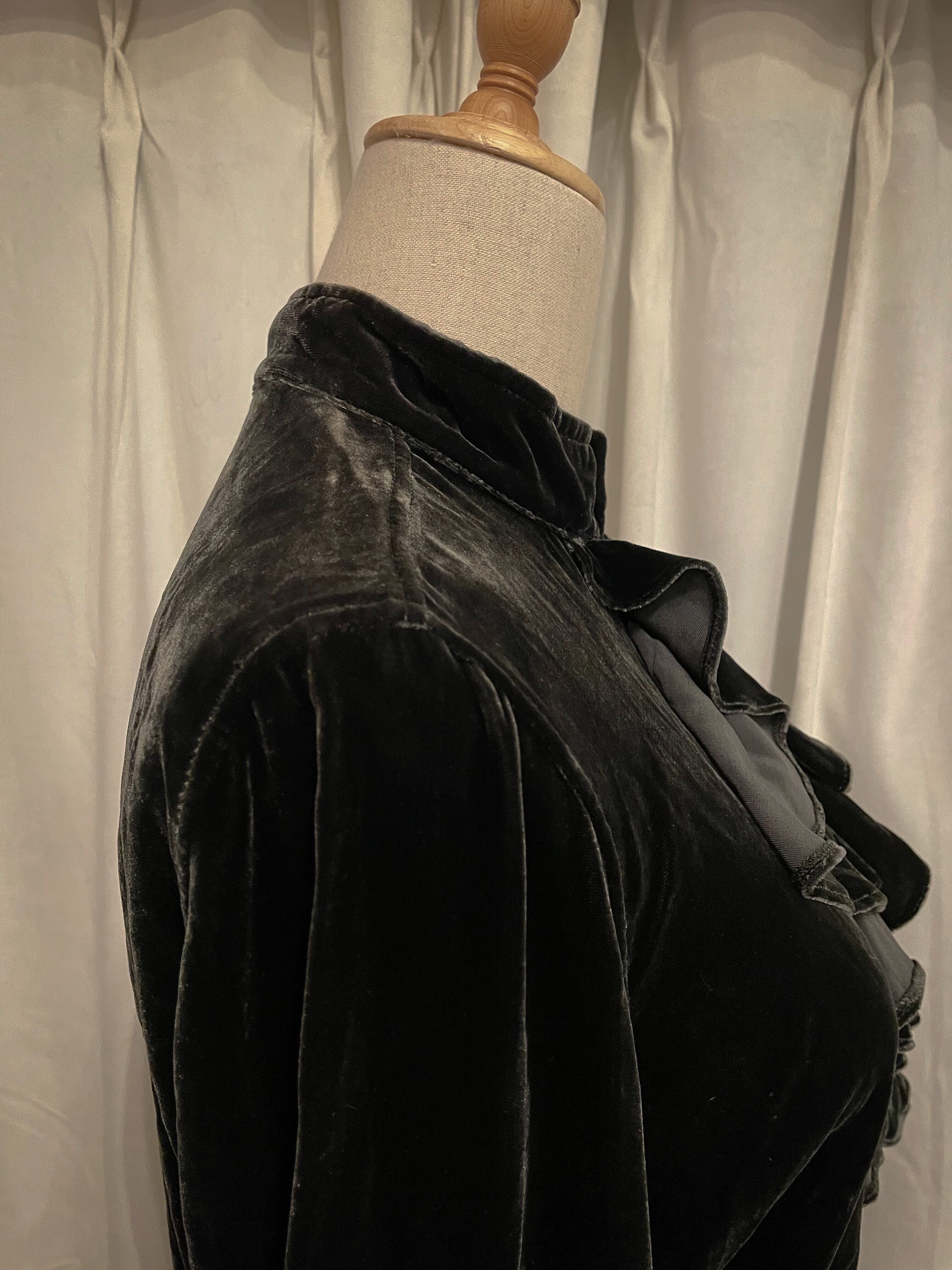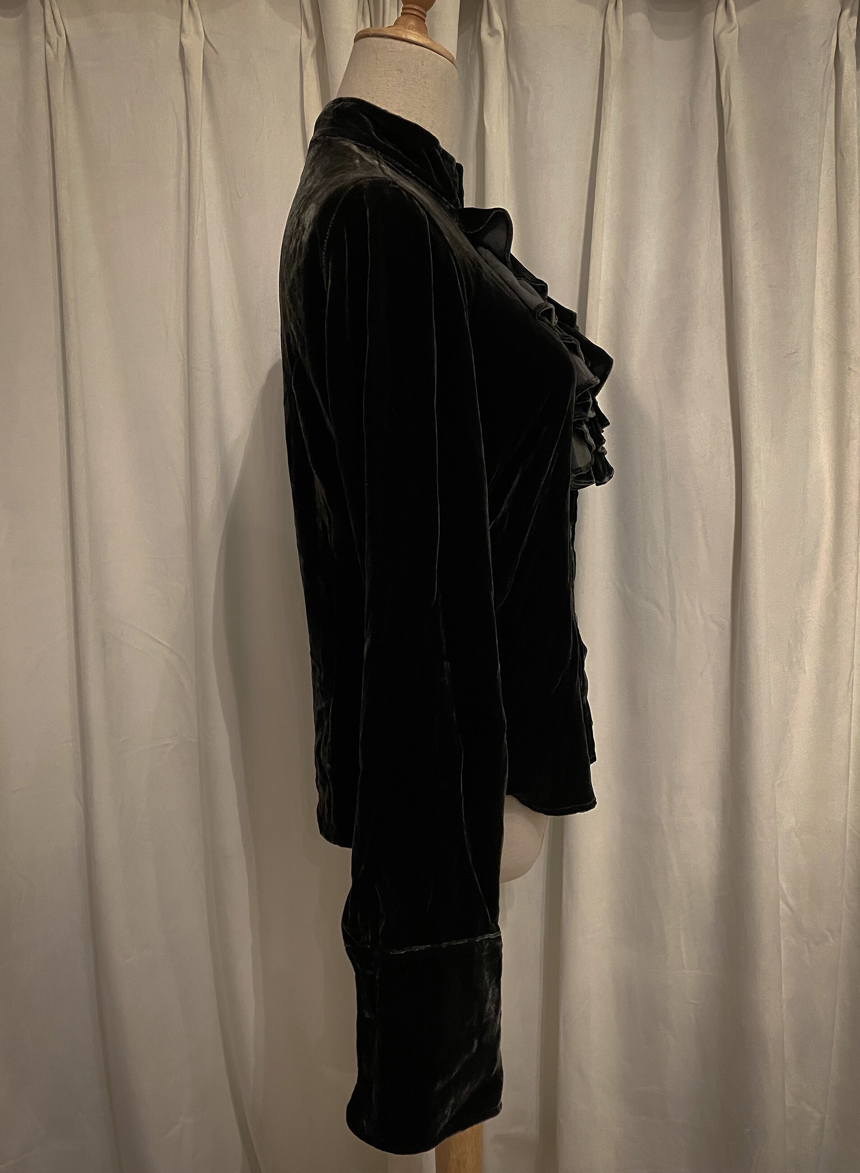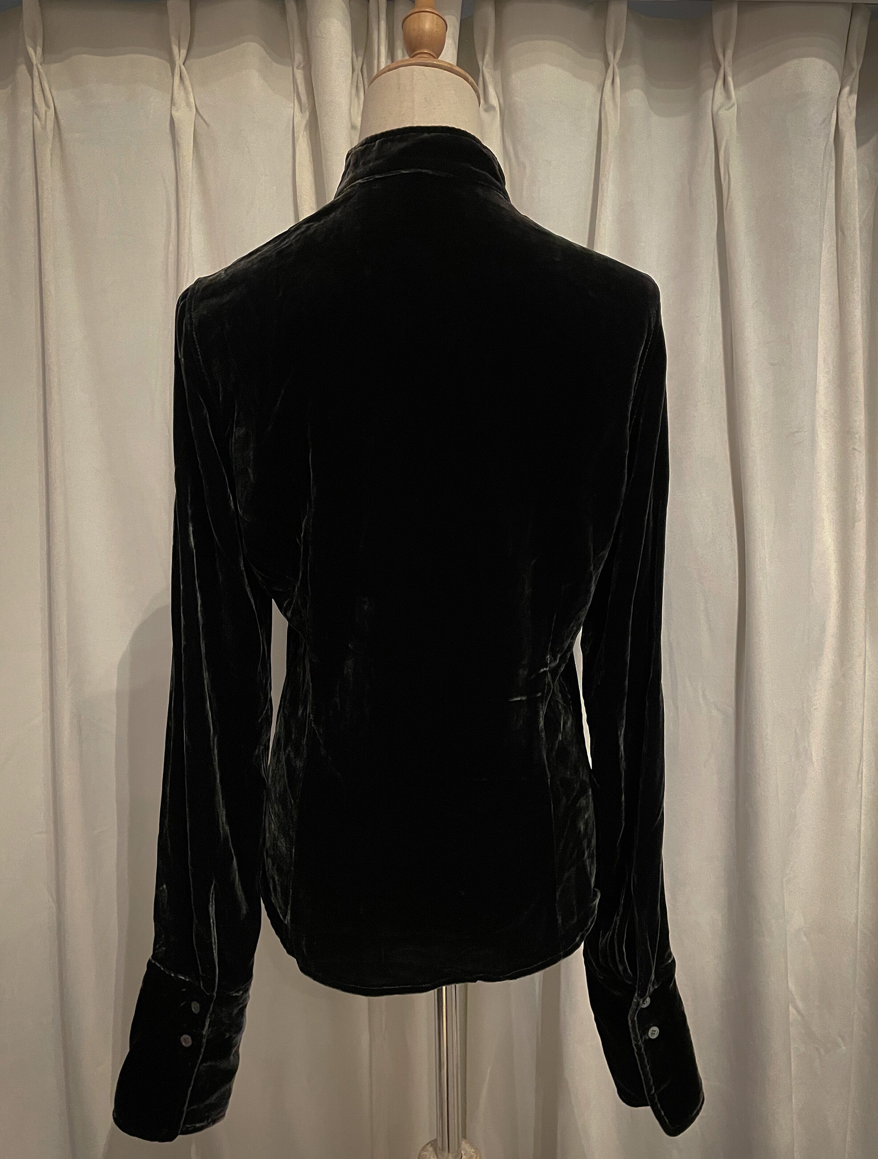 Dark Green Velour Frill Shirt