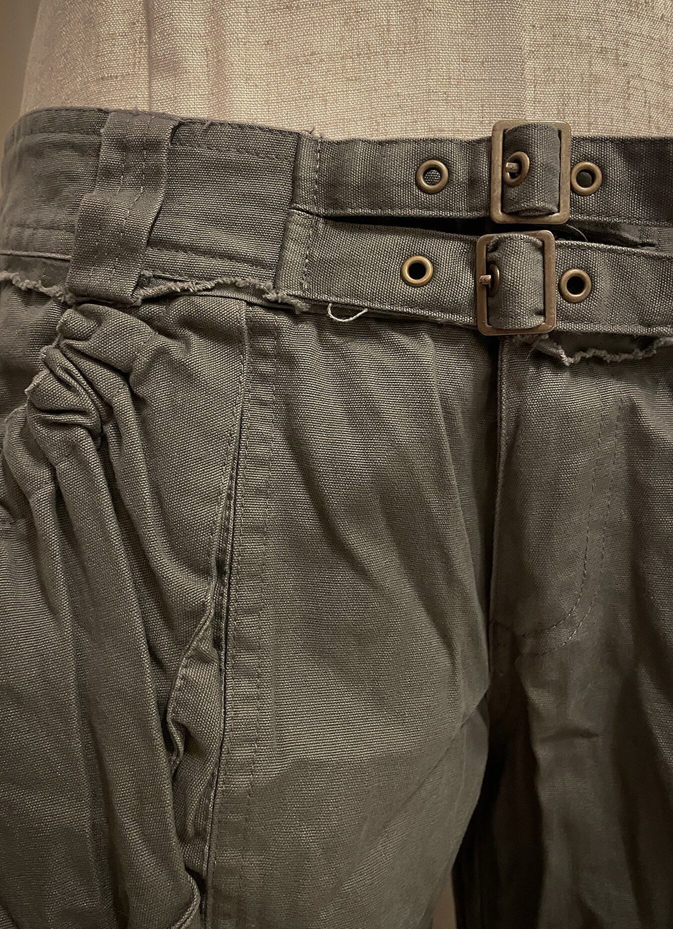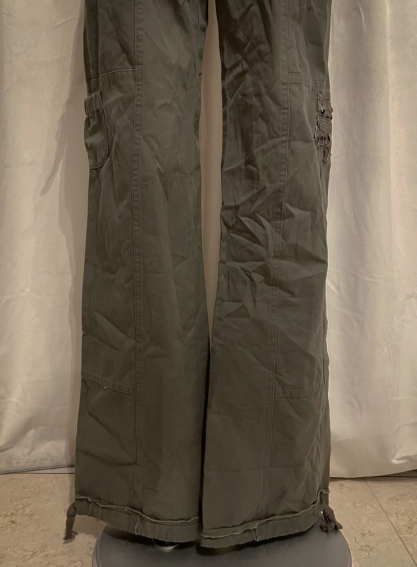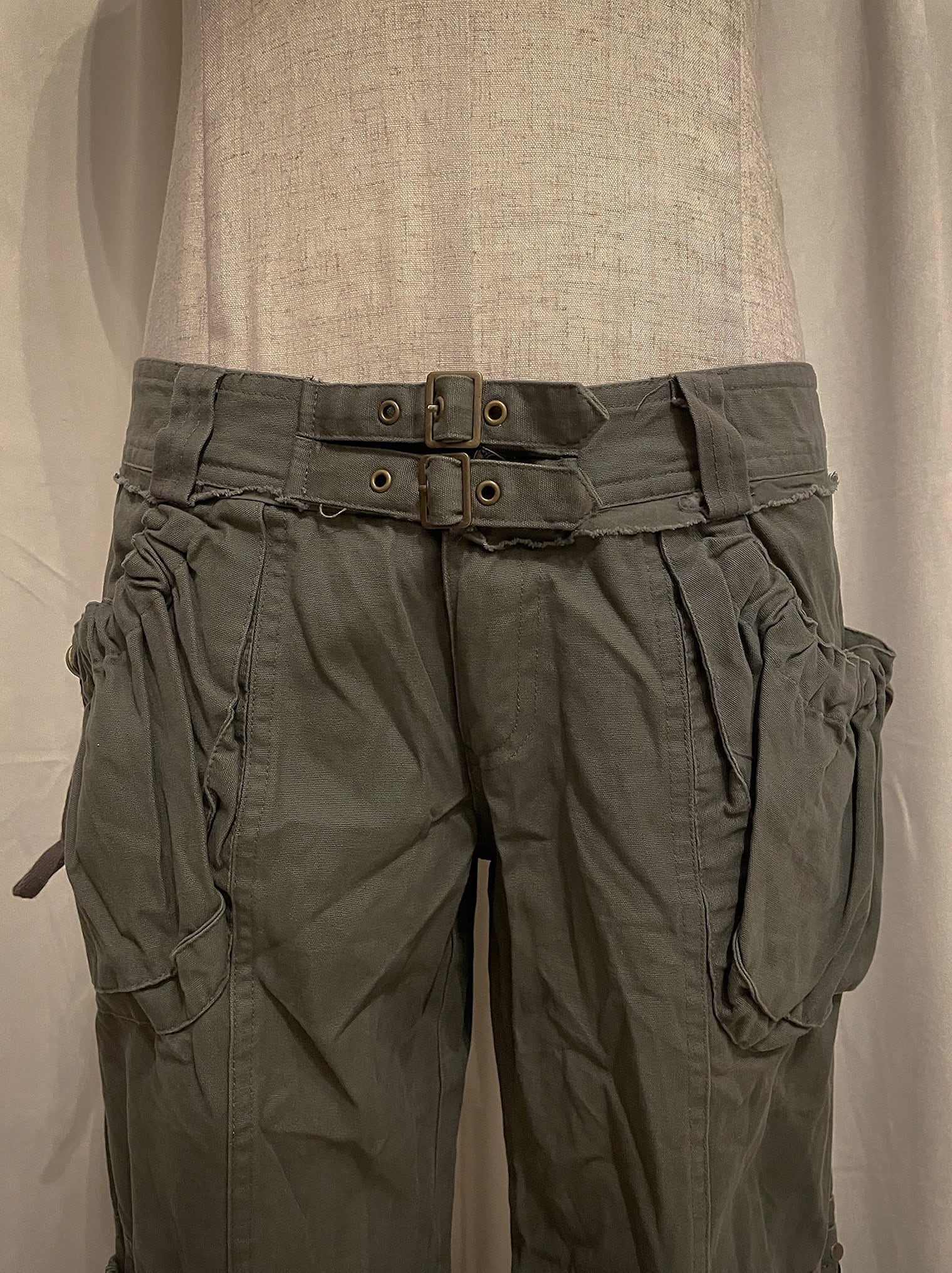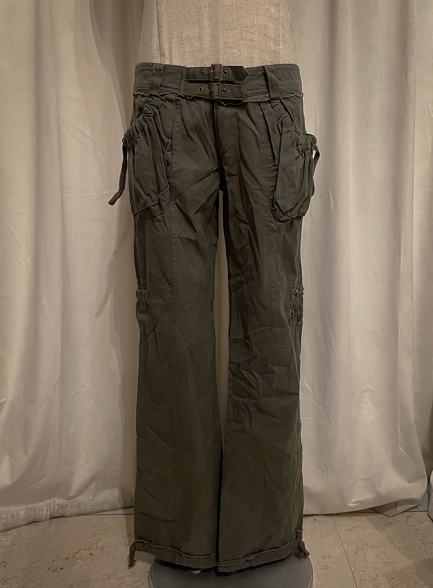 Khaki Cargo Double Belt Charm Pants