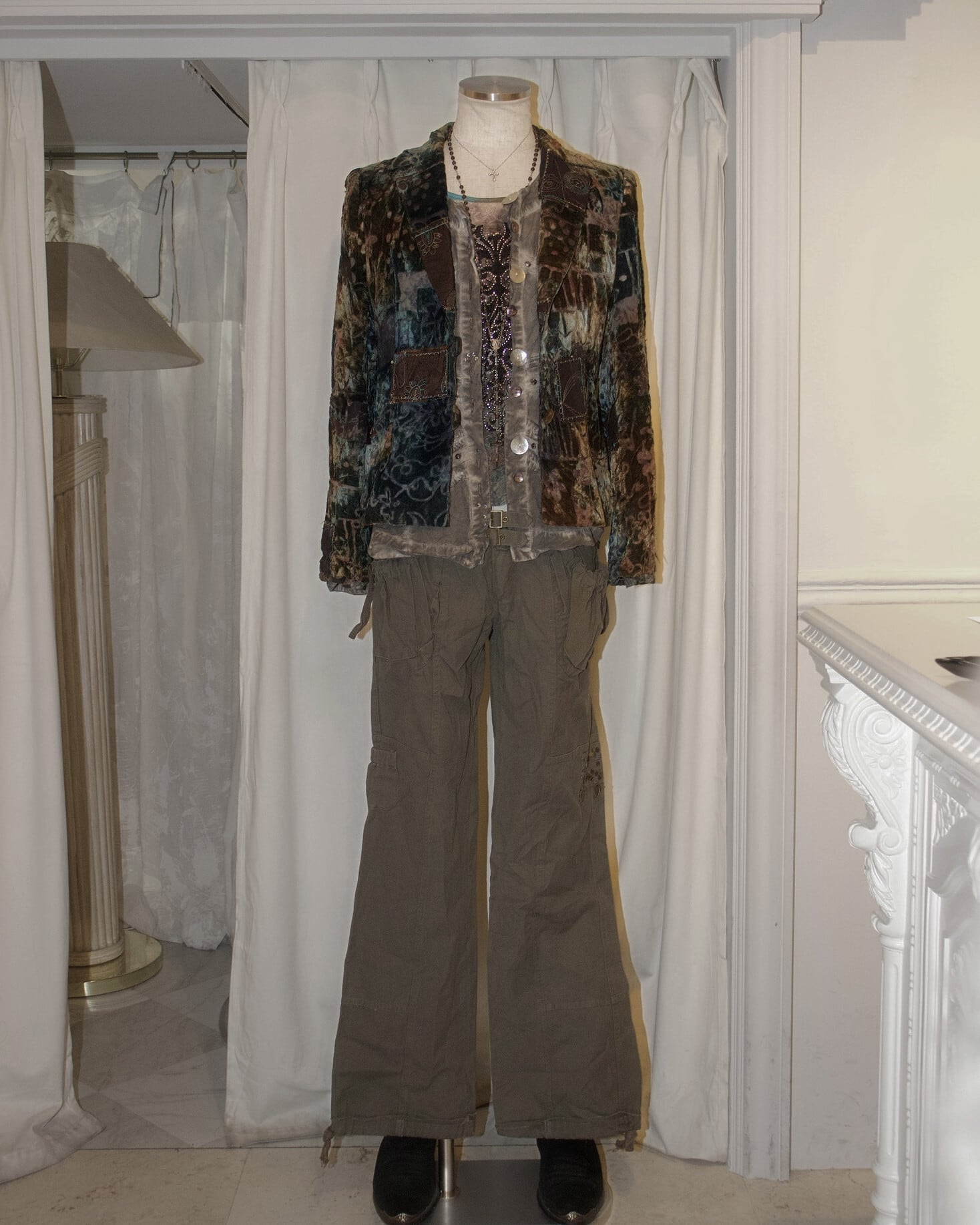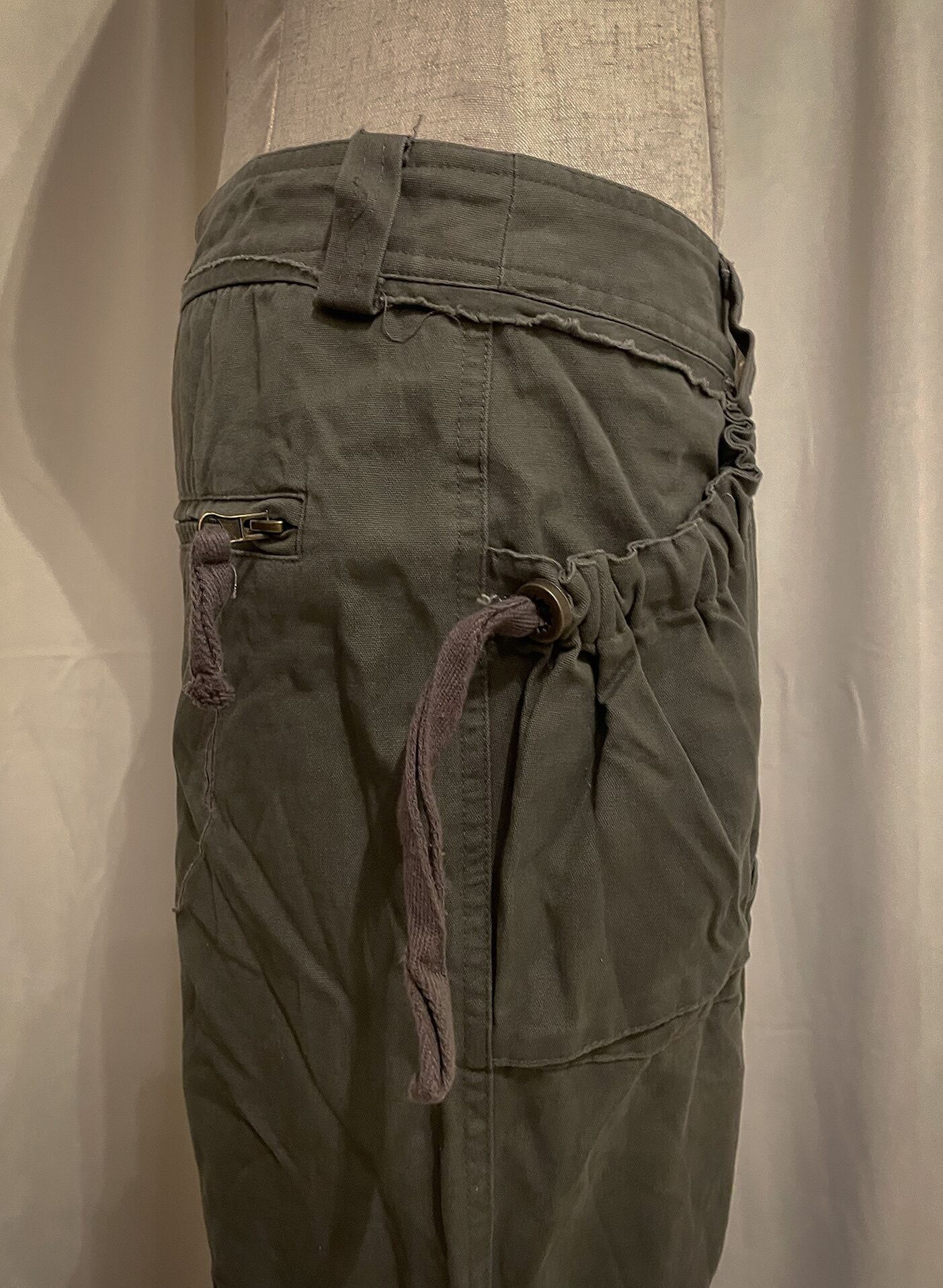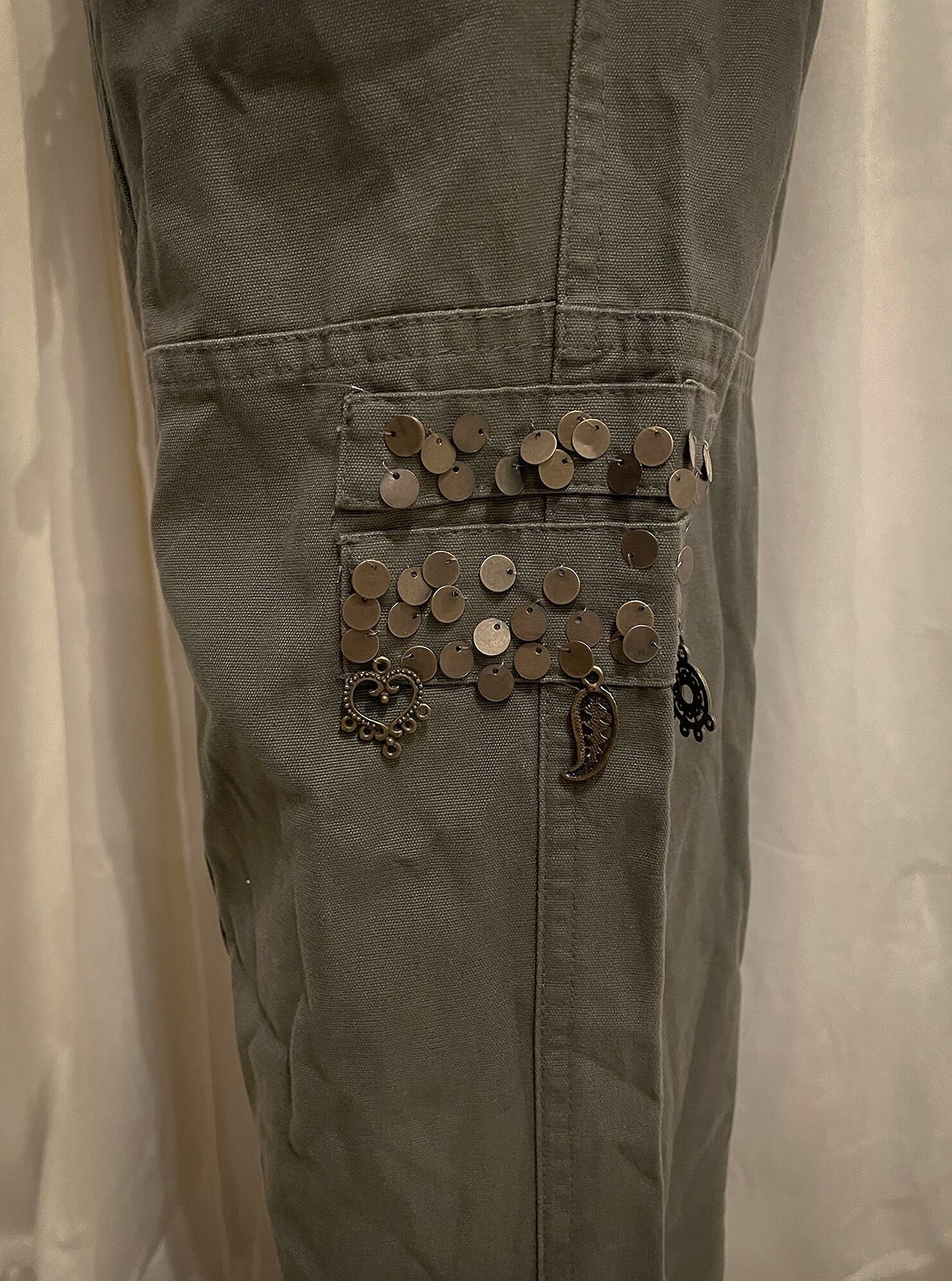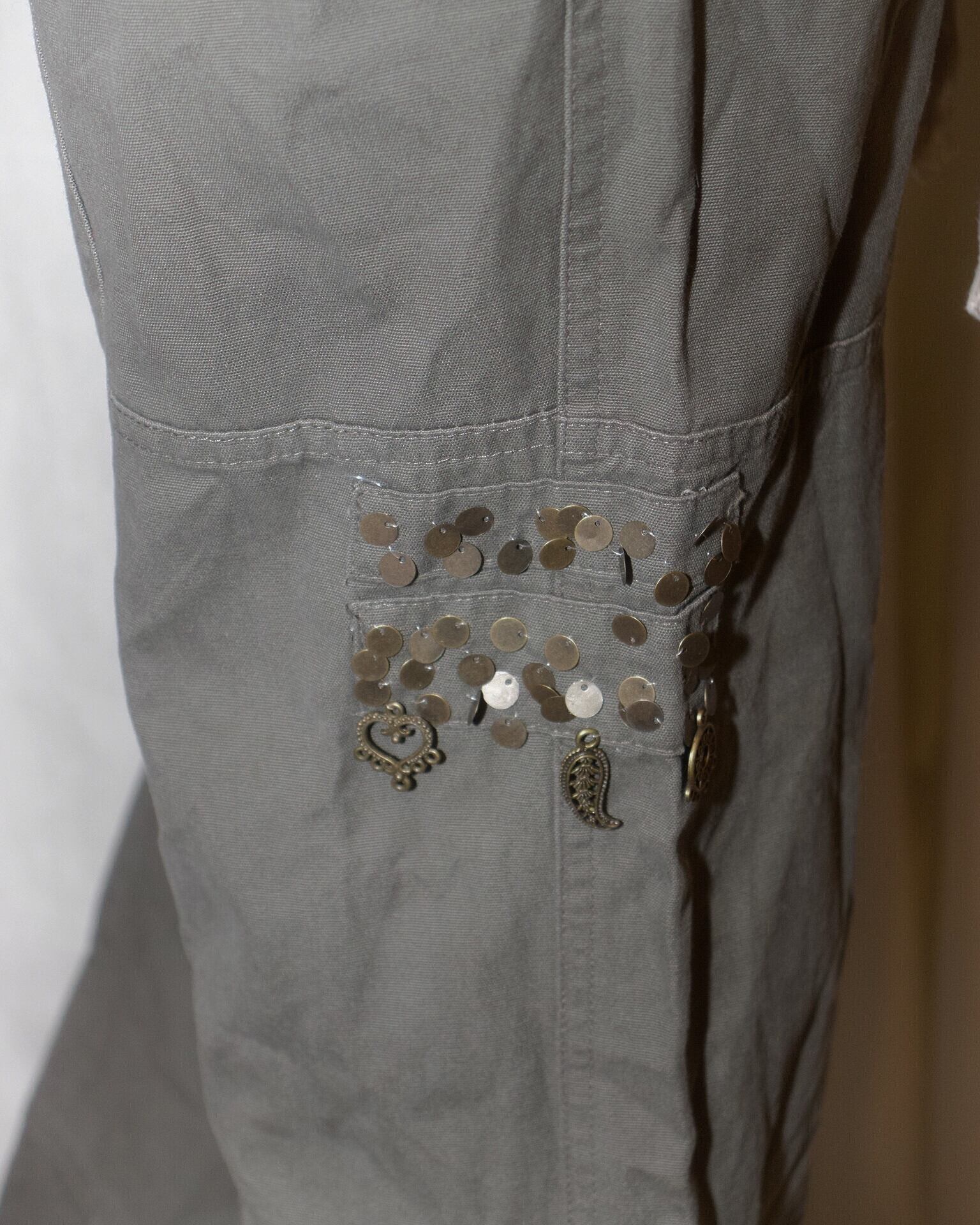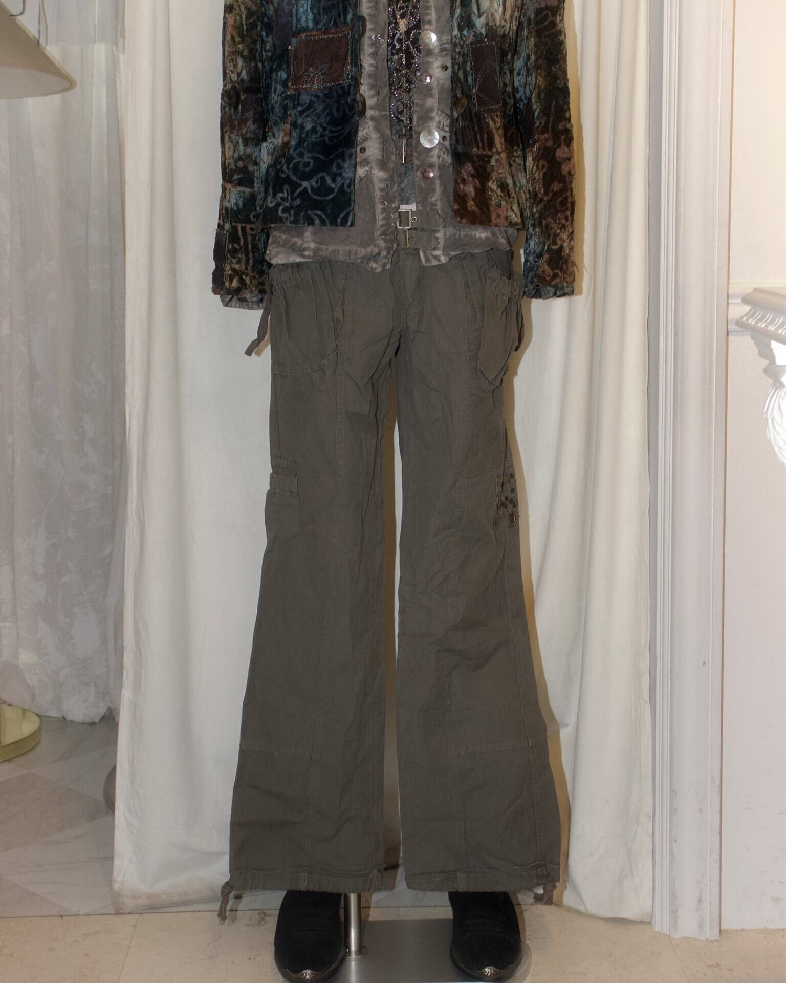Khaki Cargo Double Belt Charm Pants