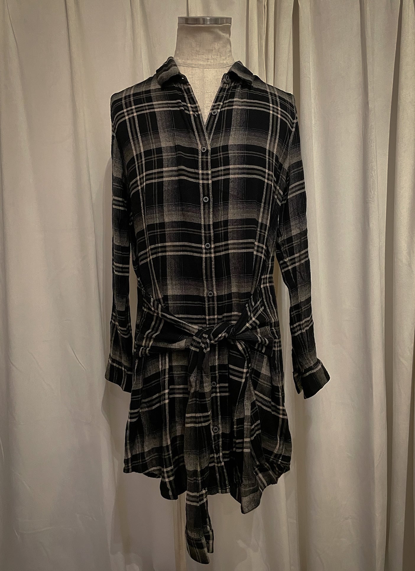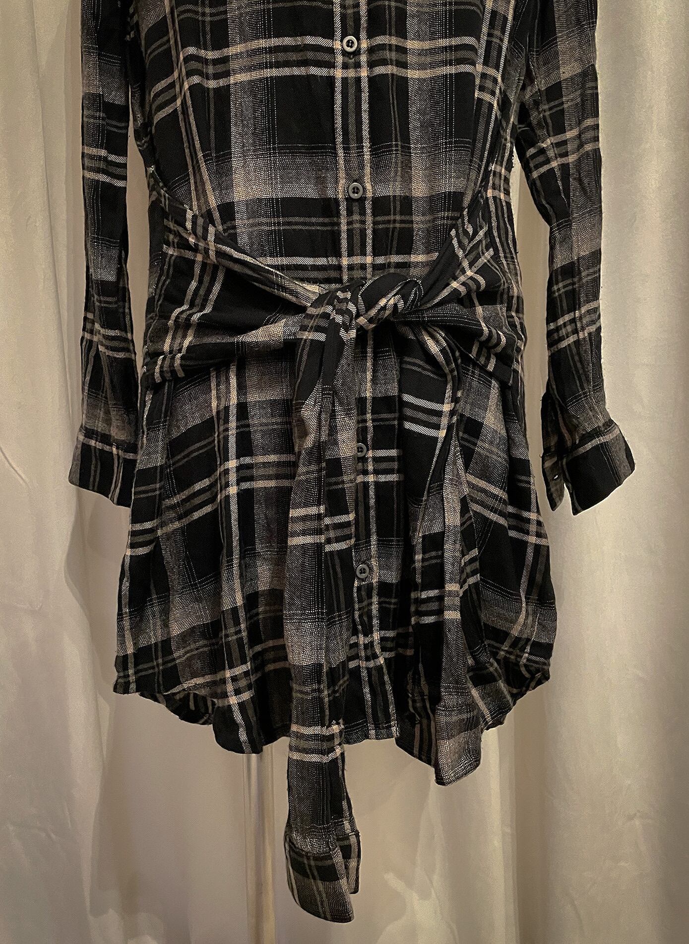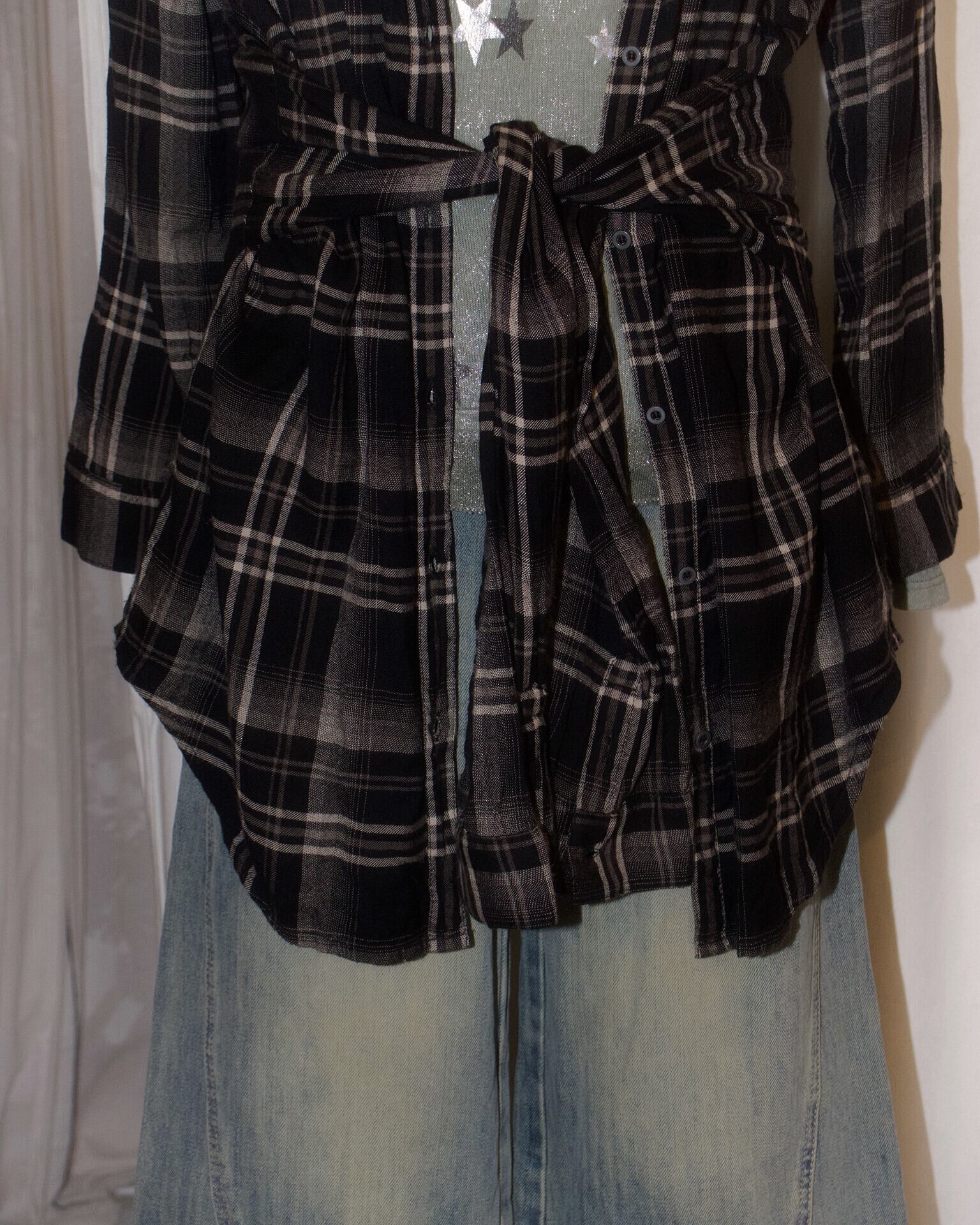 Black Check Long Tie Cardigan