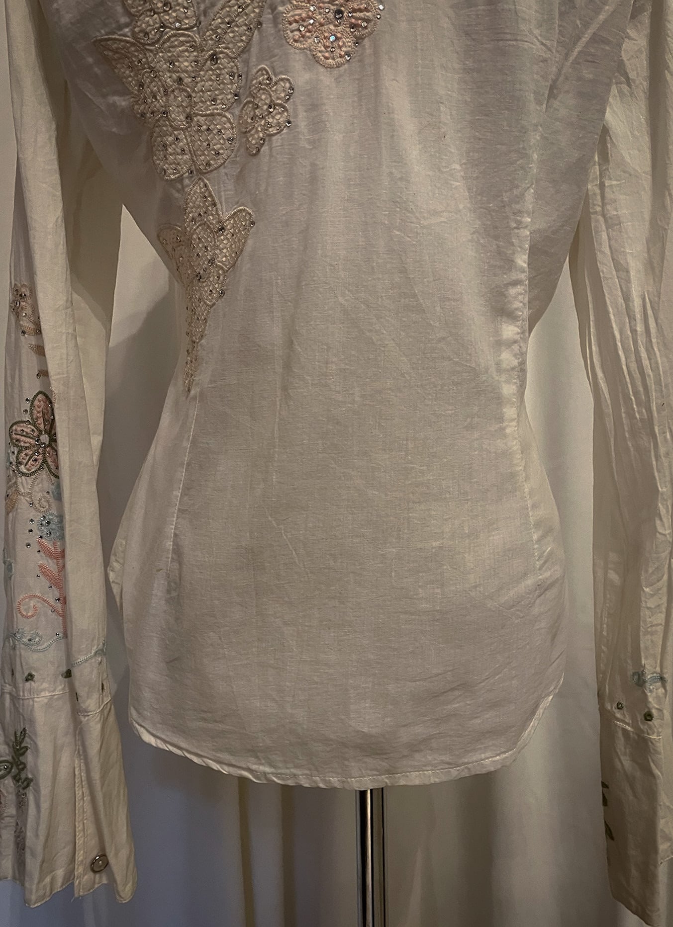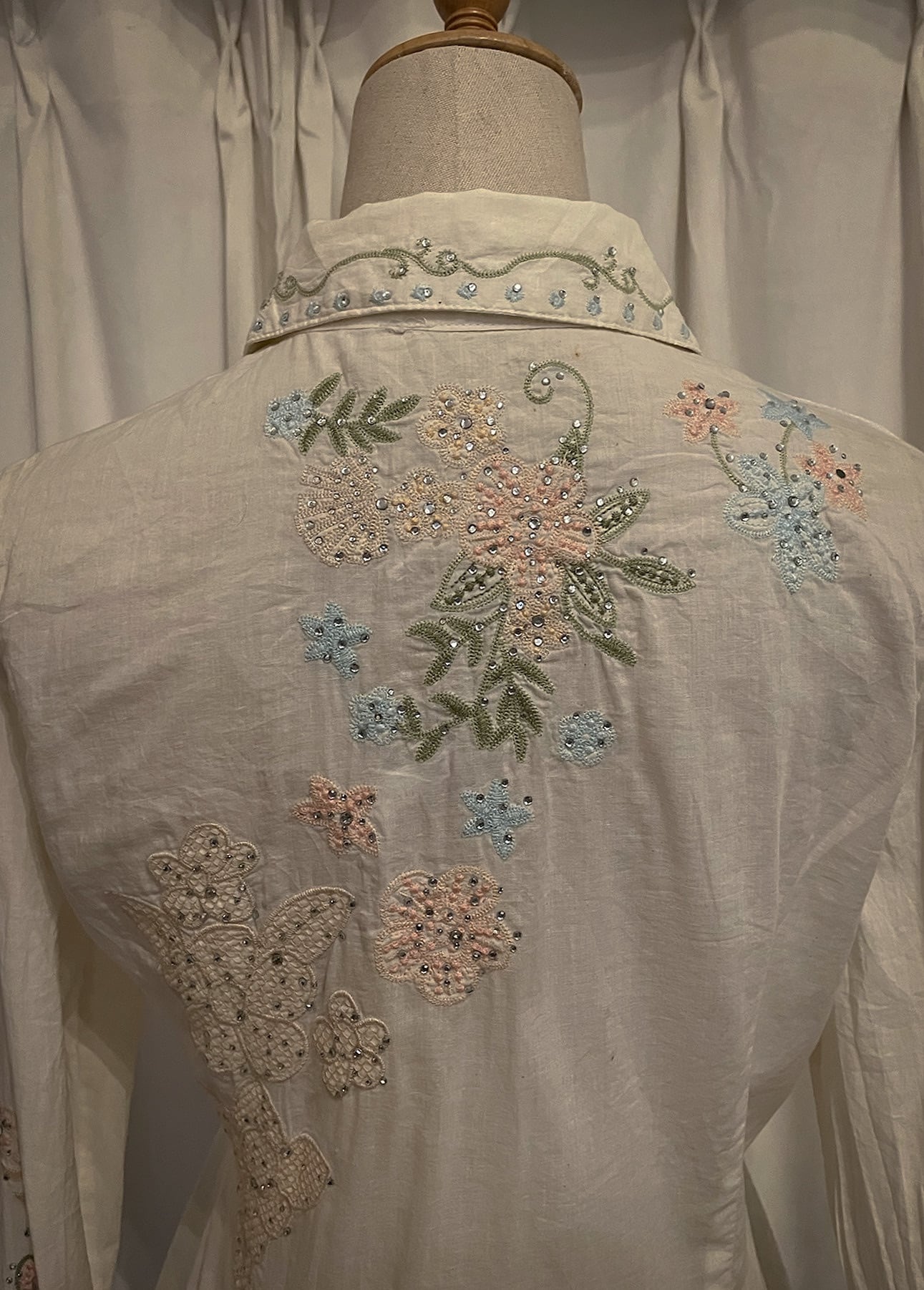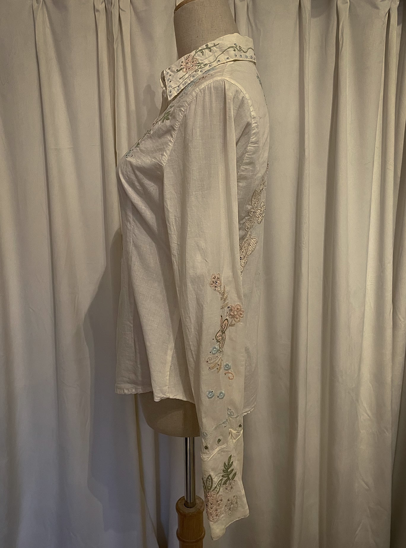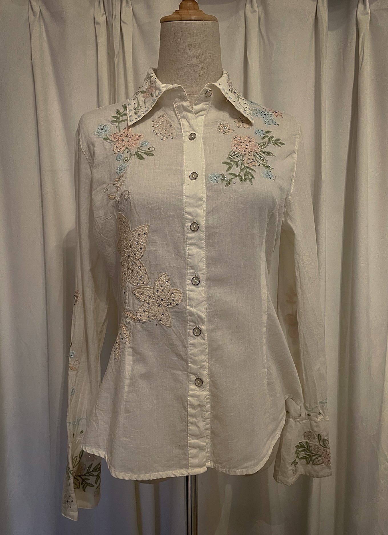 Pastel Floral Embroidery Detail White Shirt