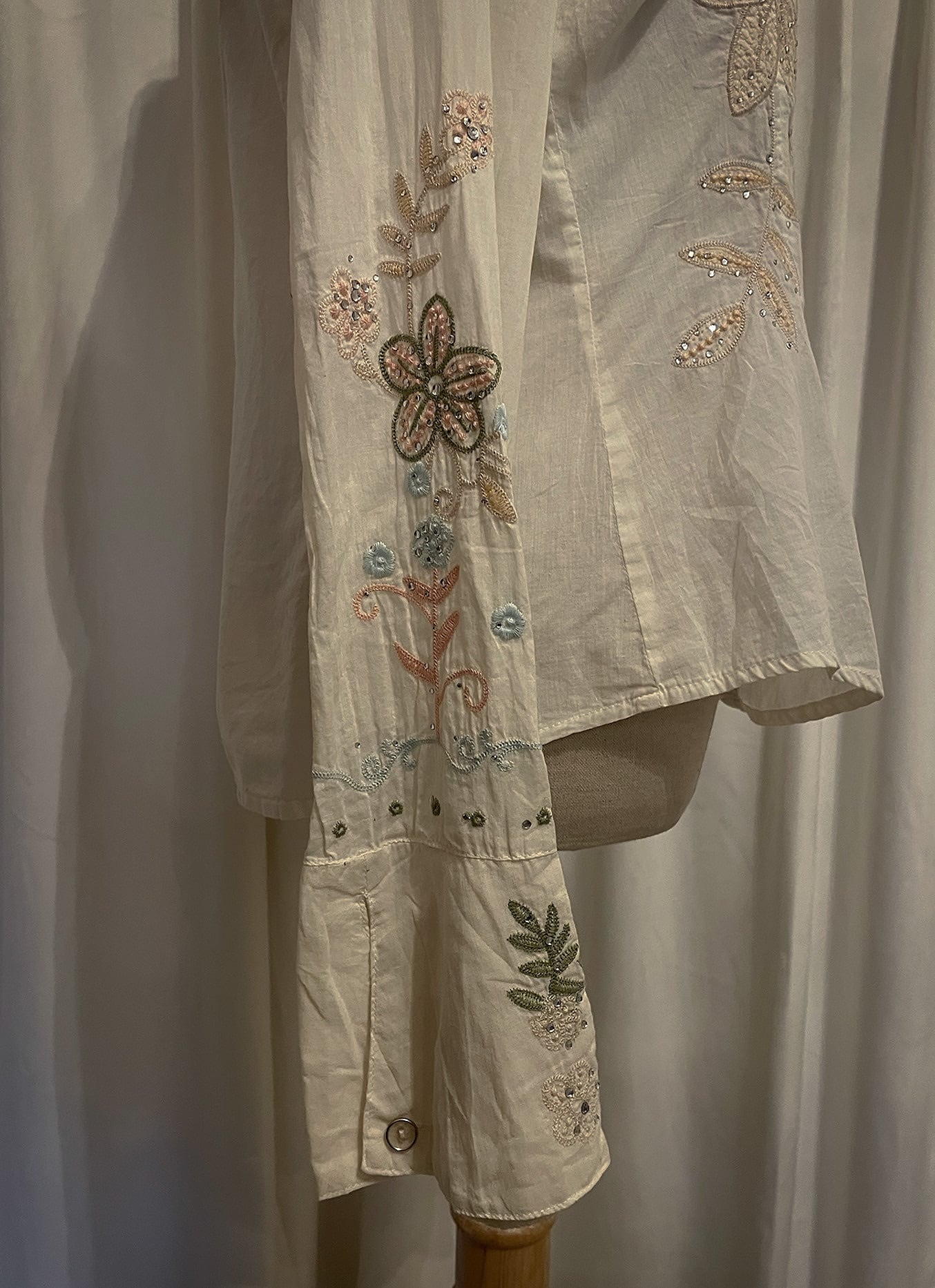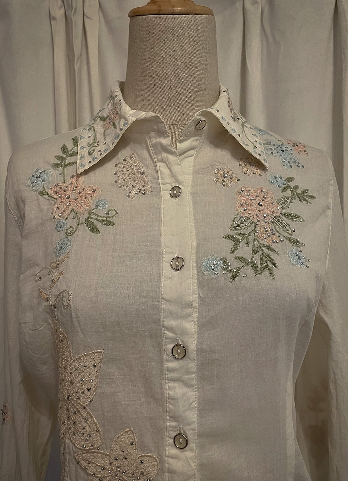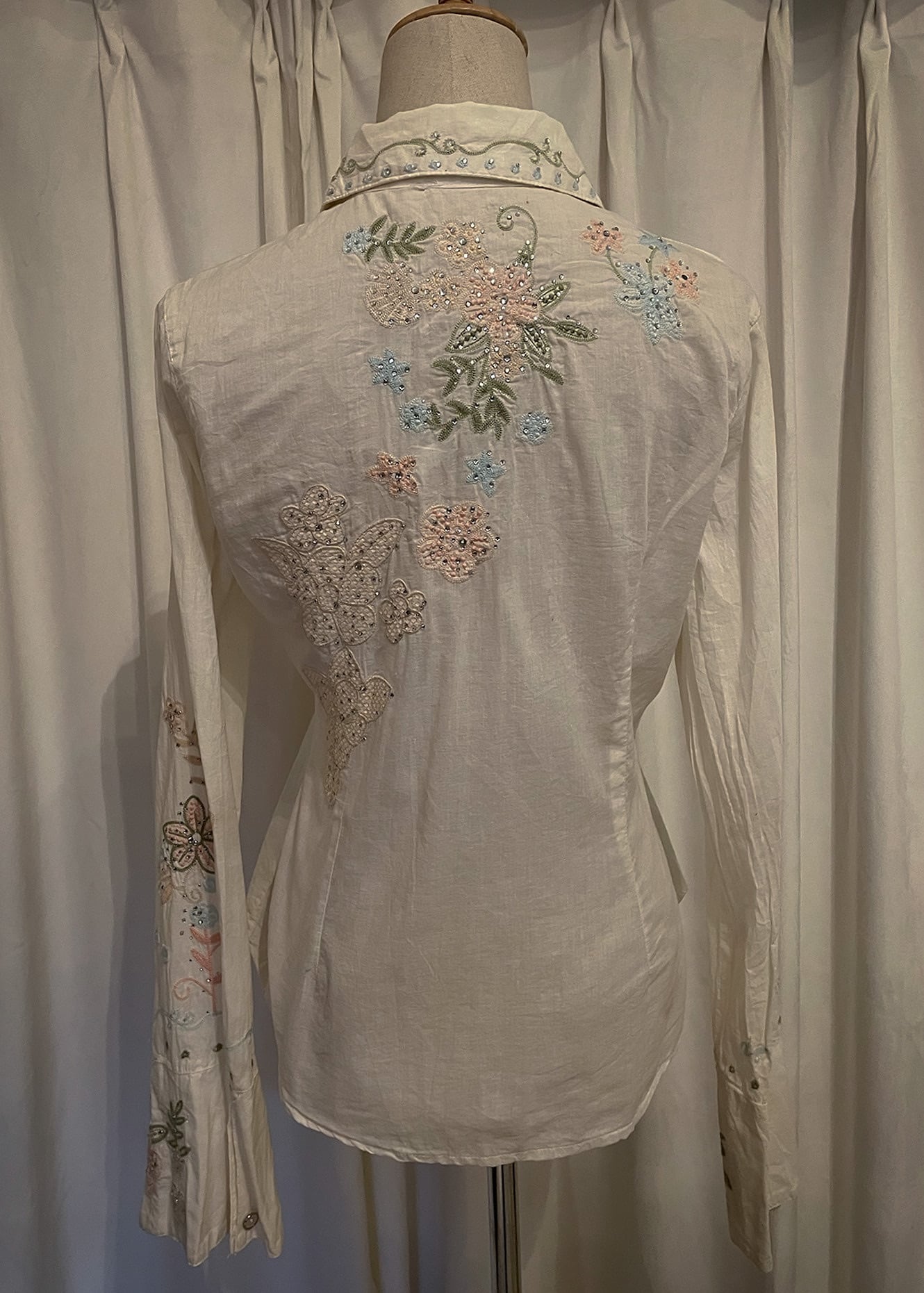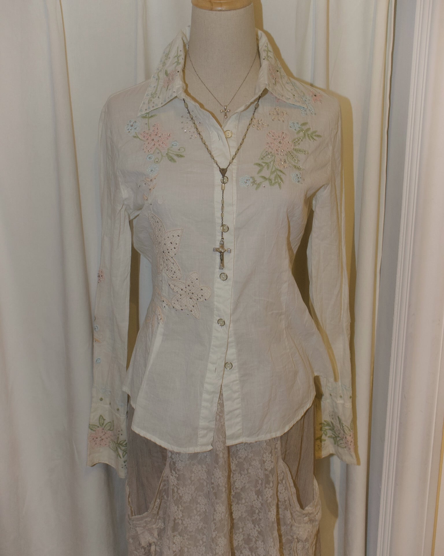 Pastel Floral Embroidery Detail White Shirt