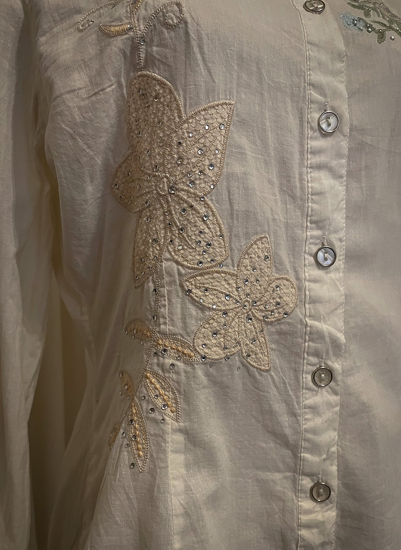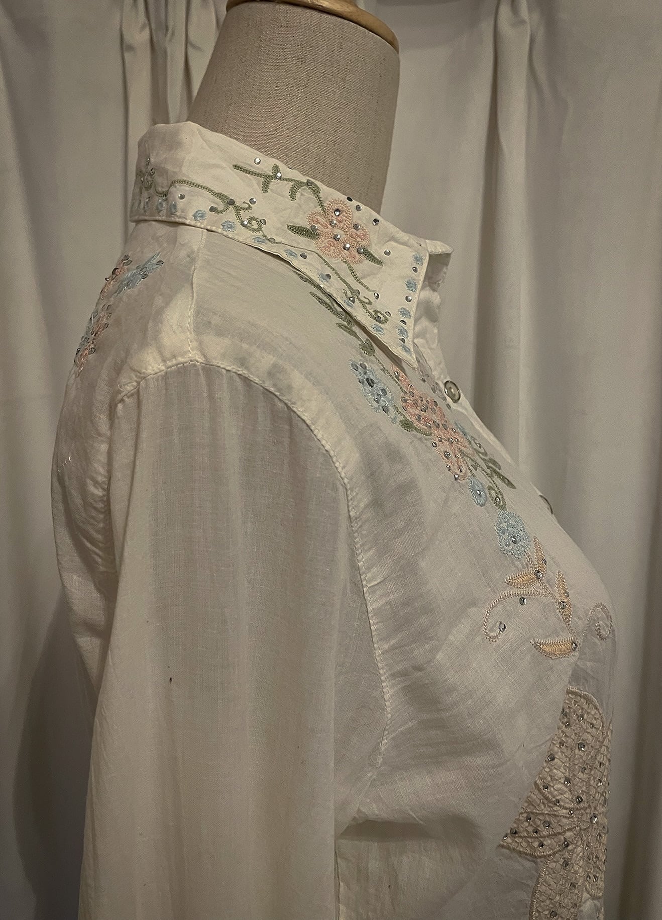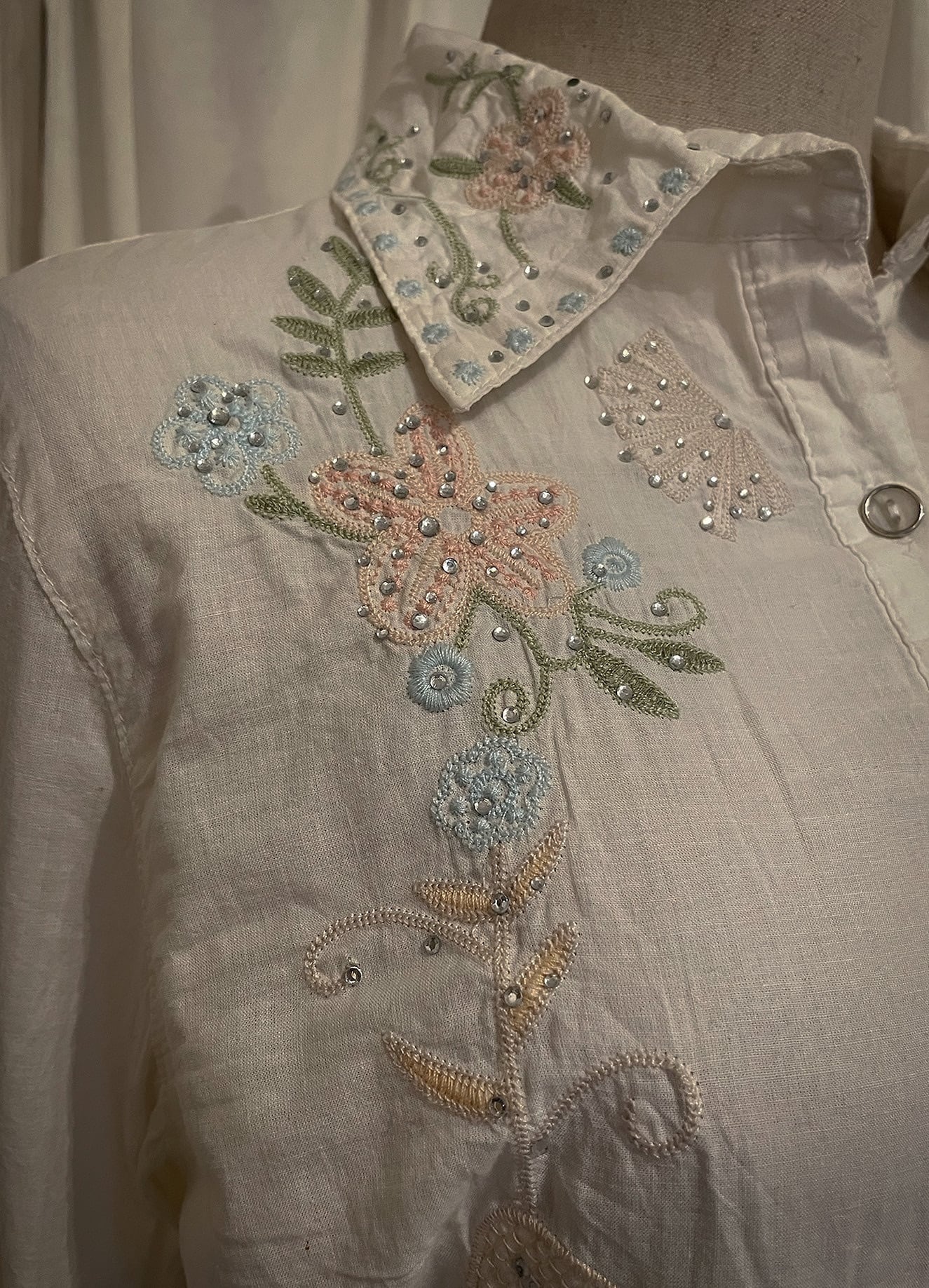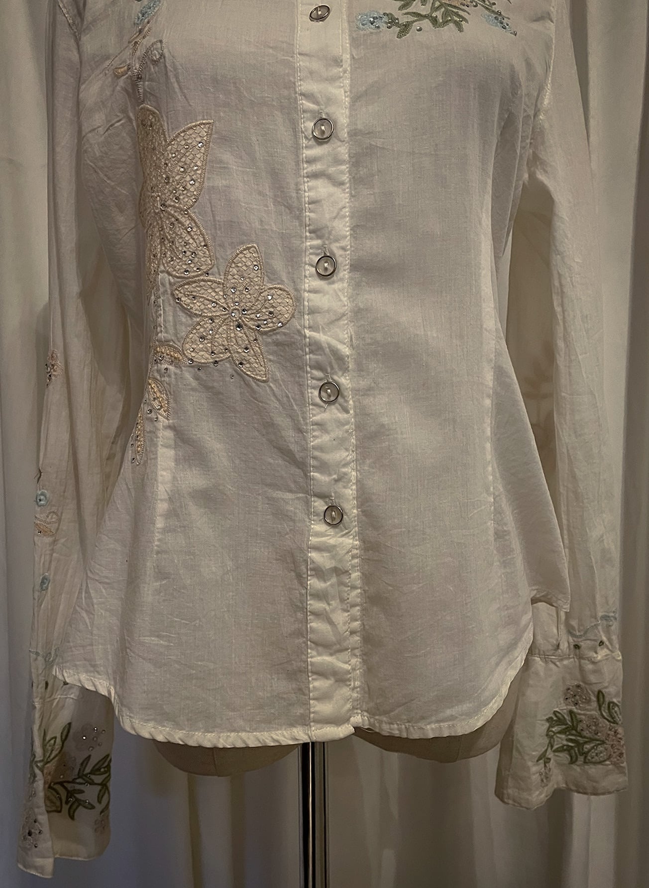 Pastel Floral Embroidery Detail White Shirt