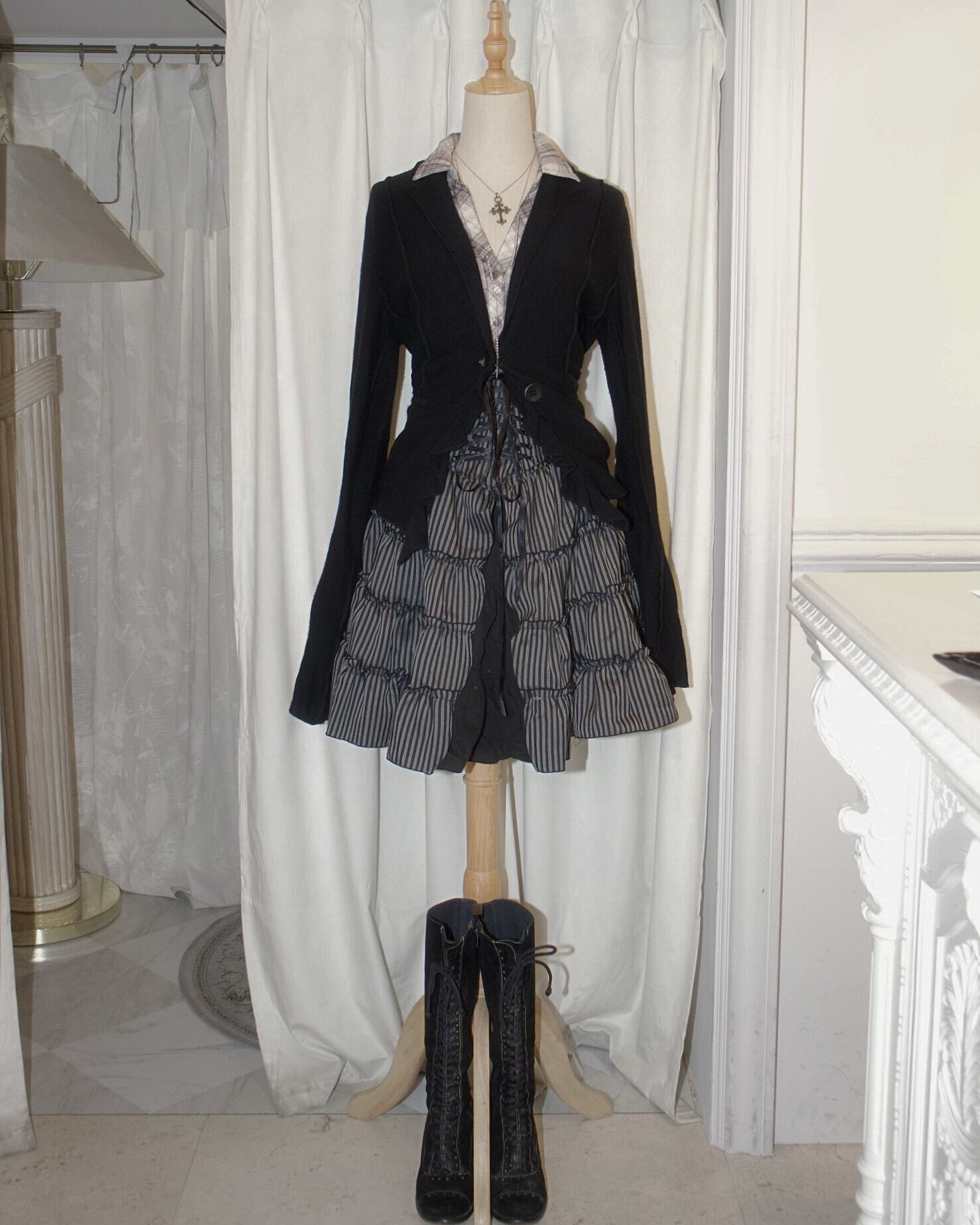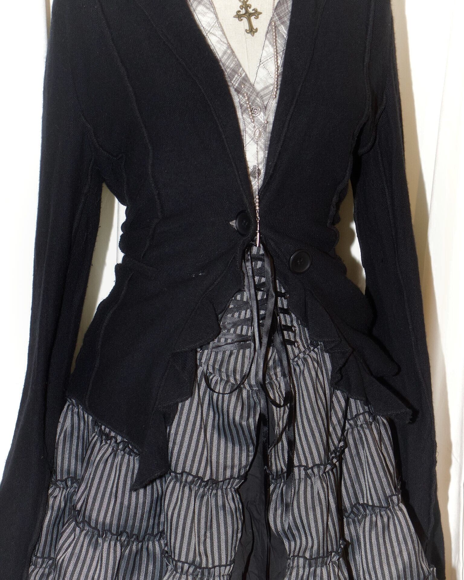 Black Stitch Frill Tailored Jacket Cardigan