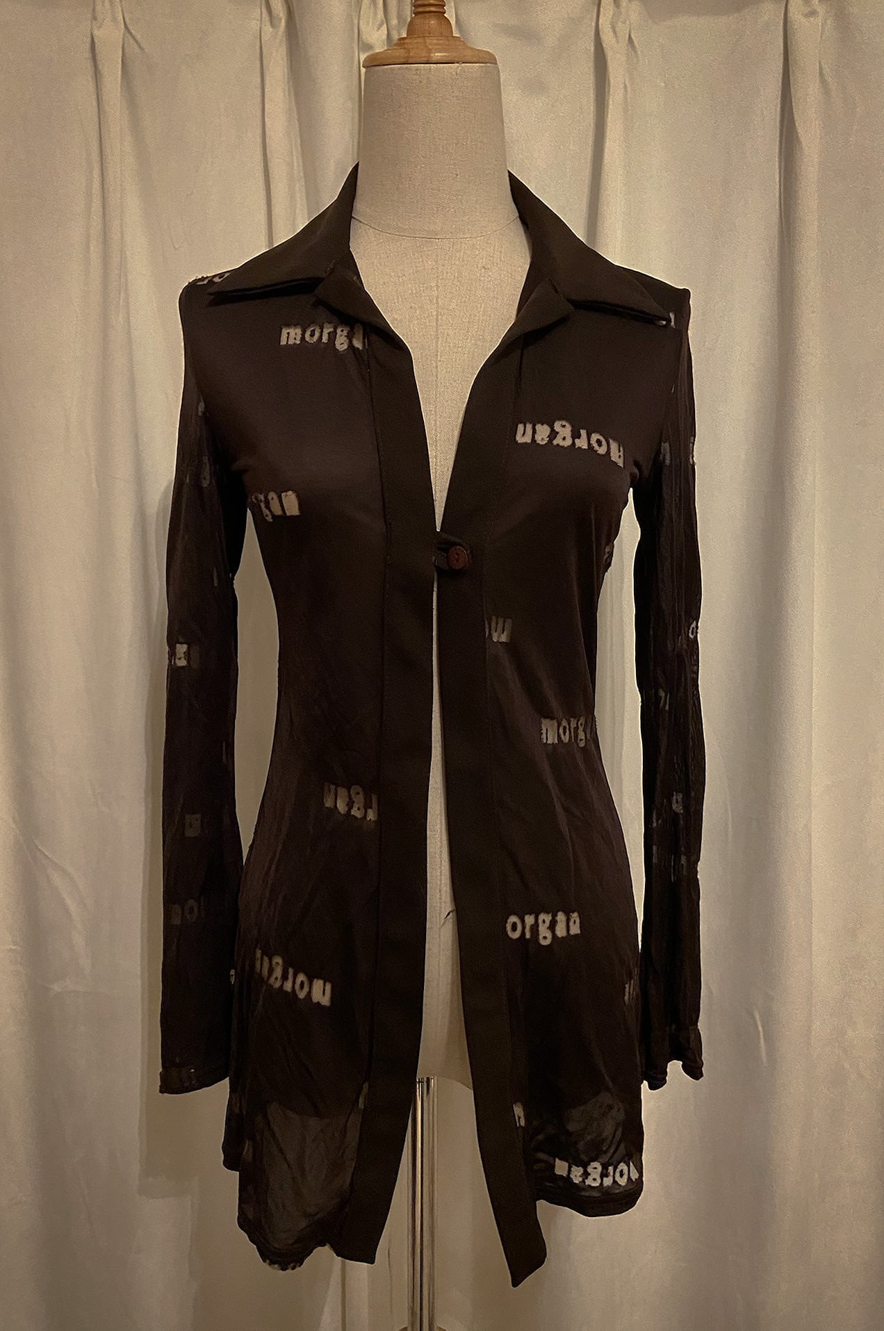 Sheer Lettering Long Shirt Cardigan