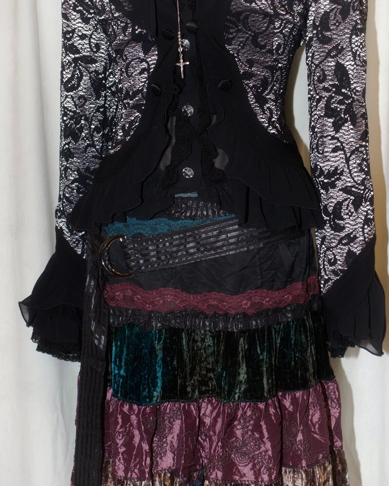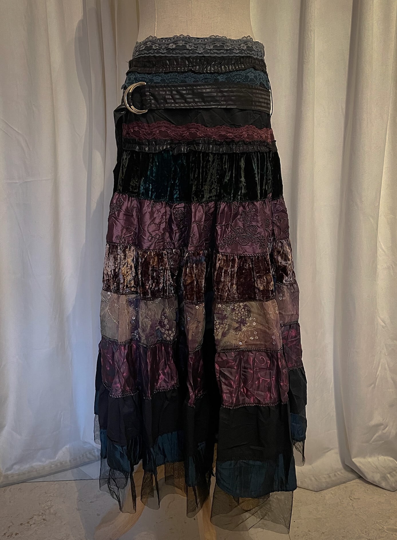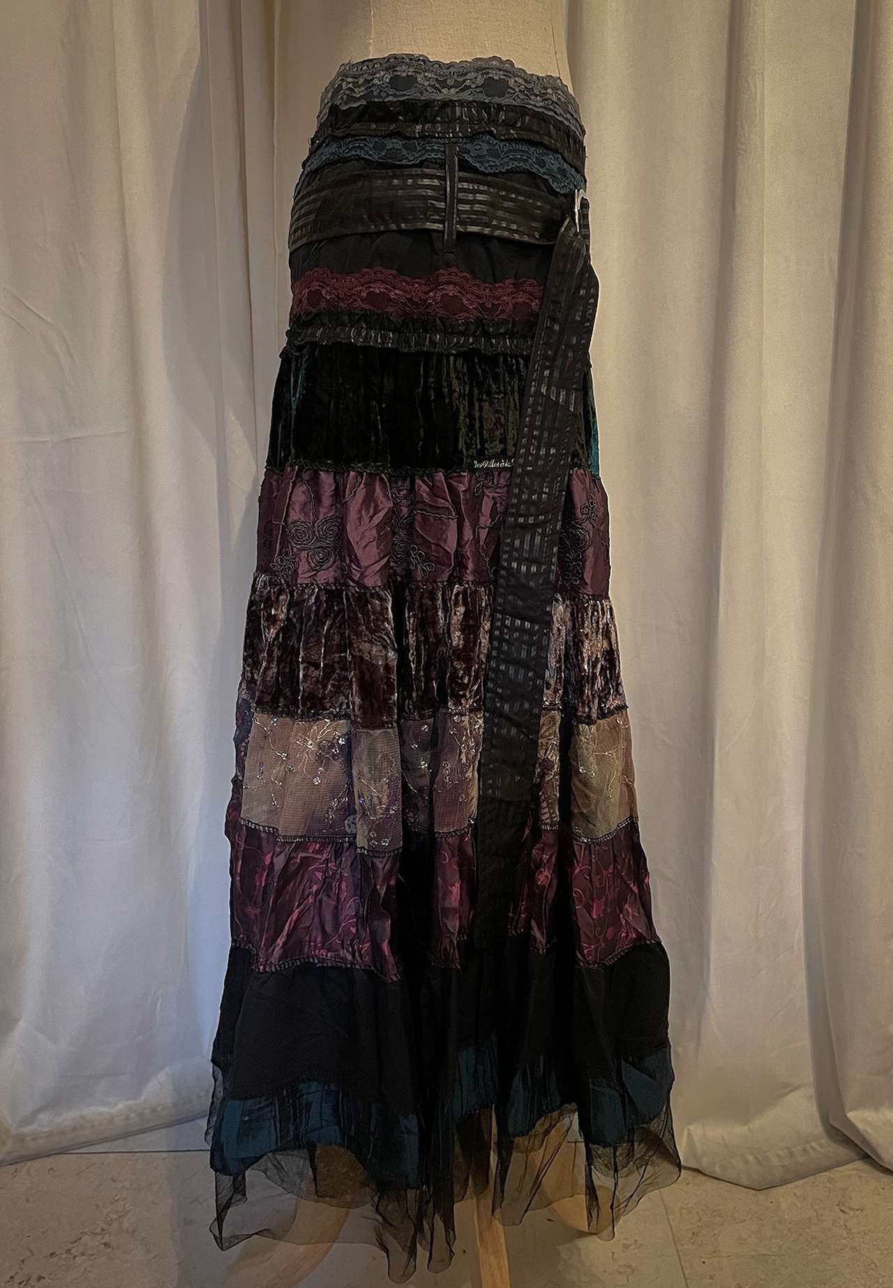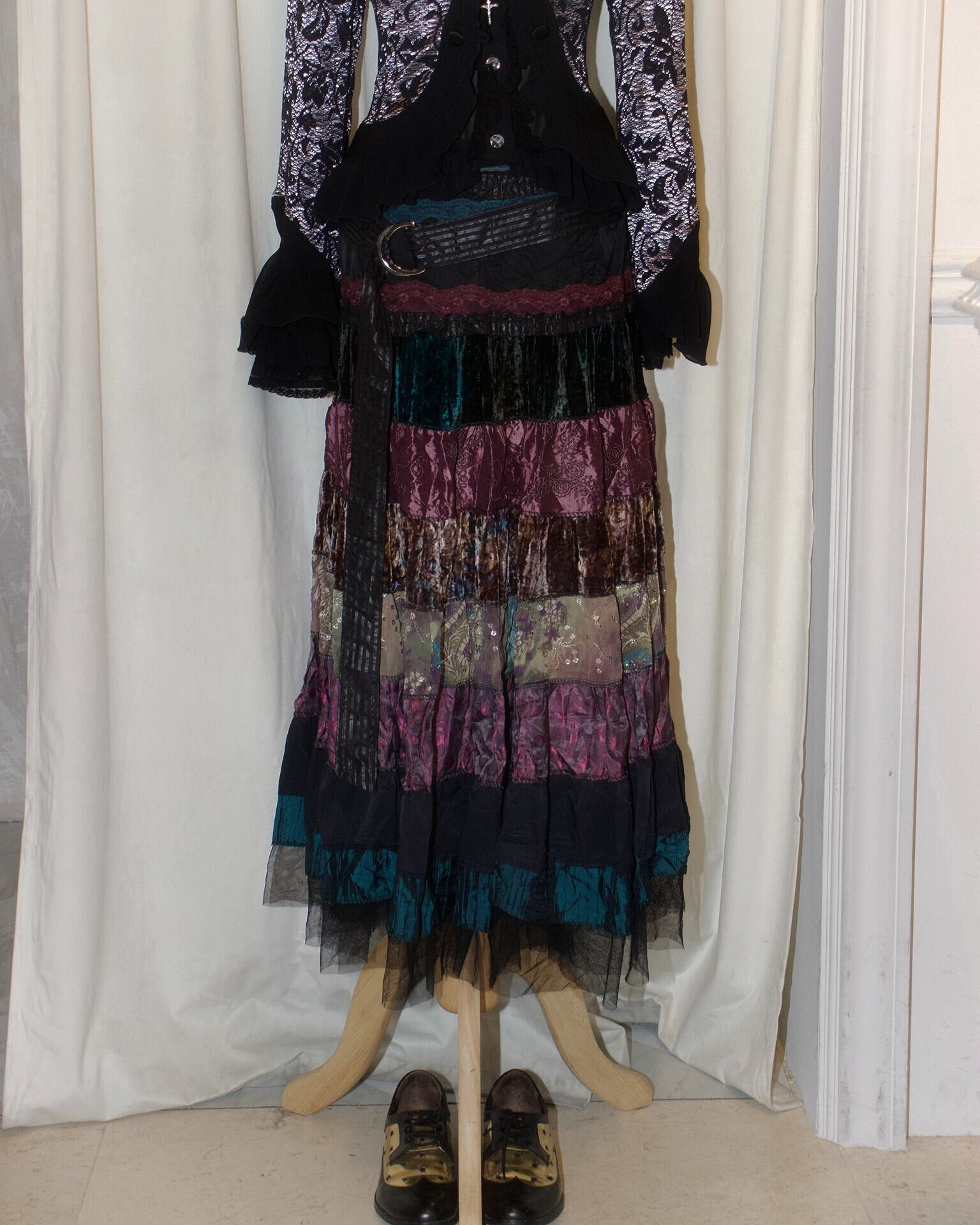 Sparkle Mixed Fabric Tie Long Skirt [France]