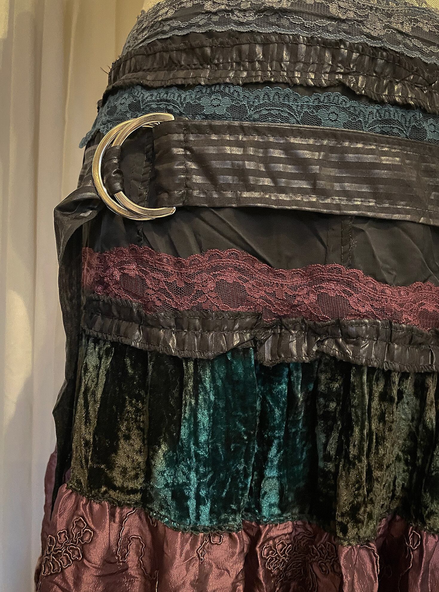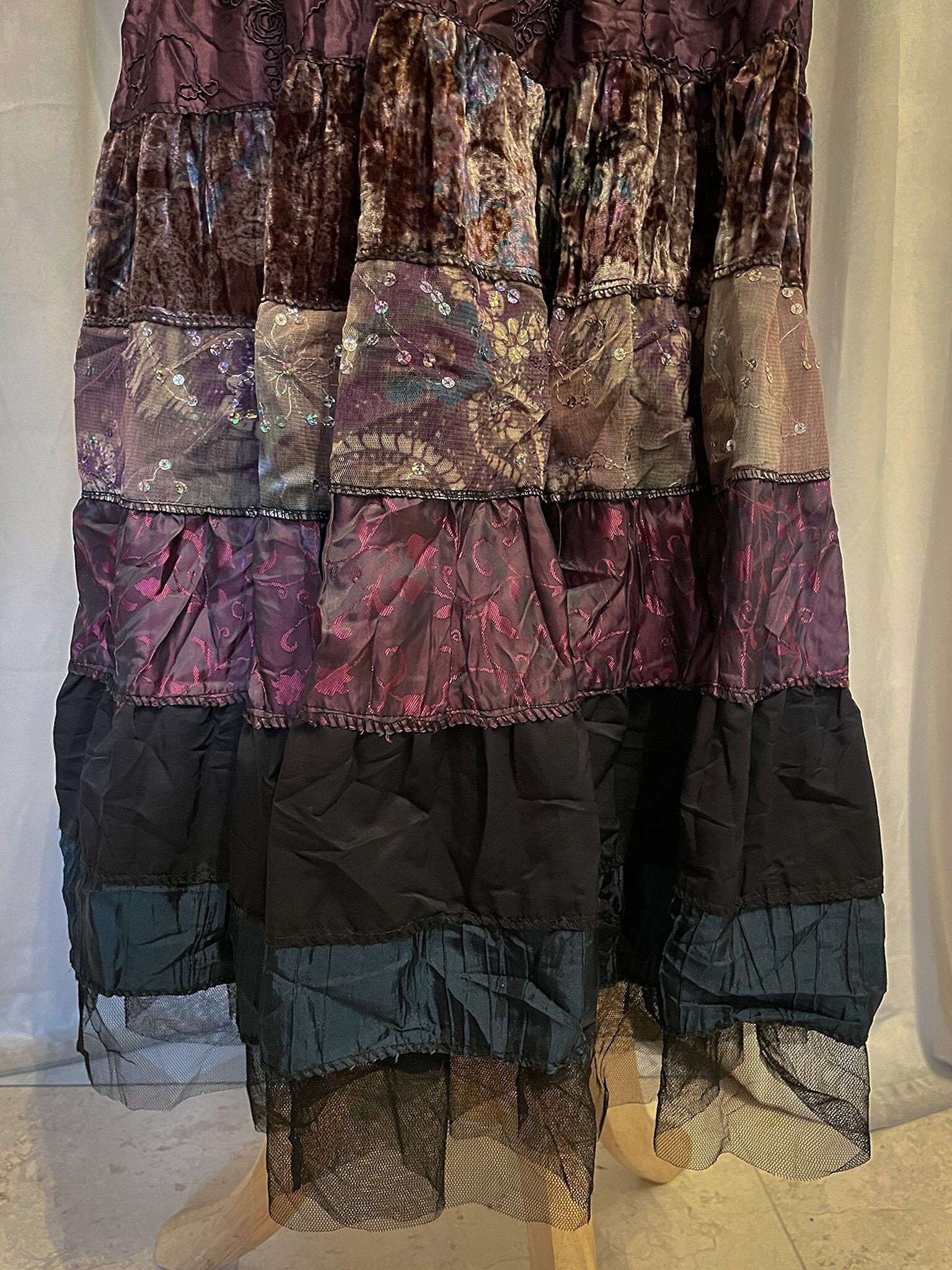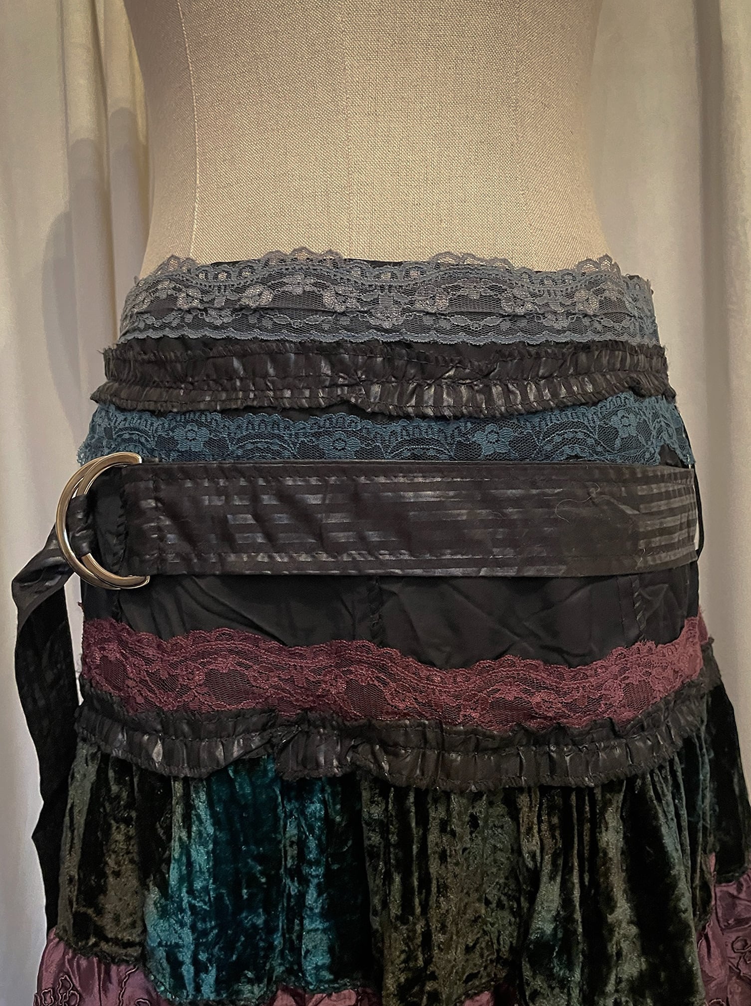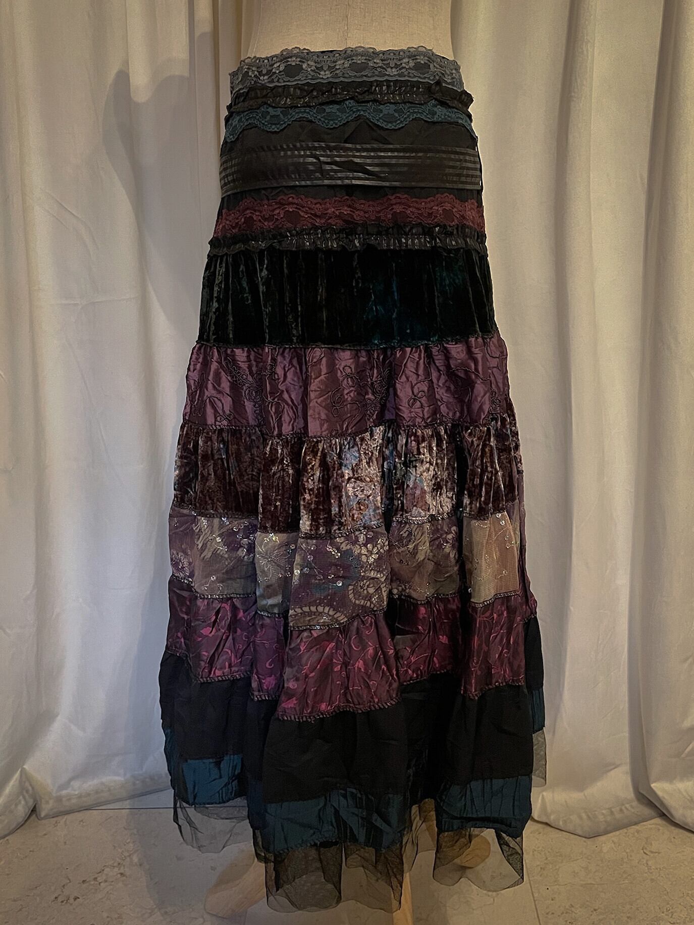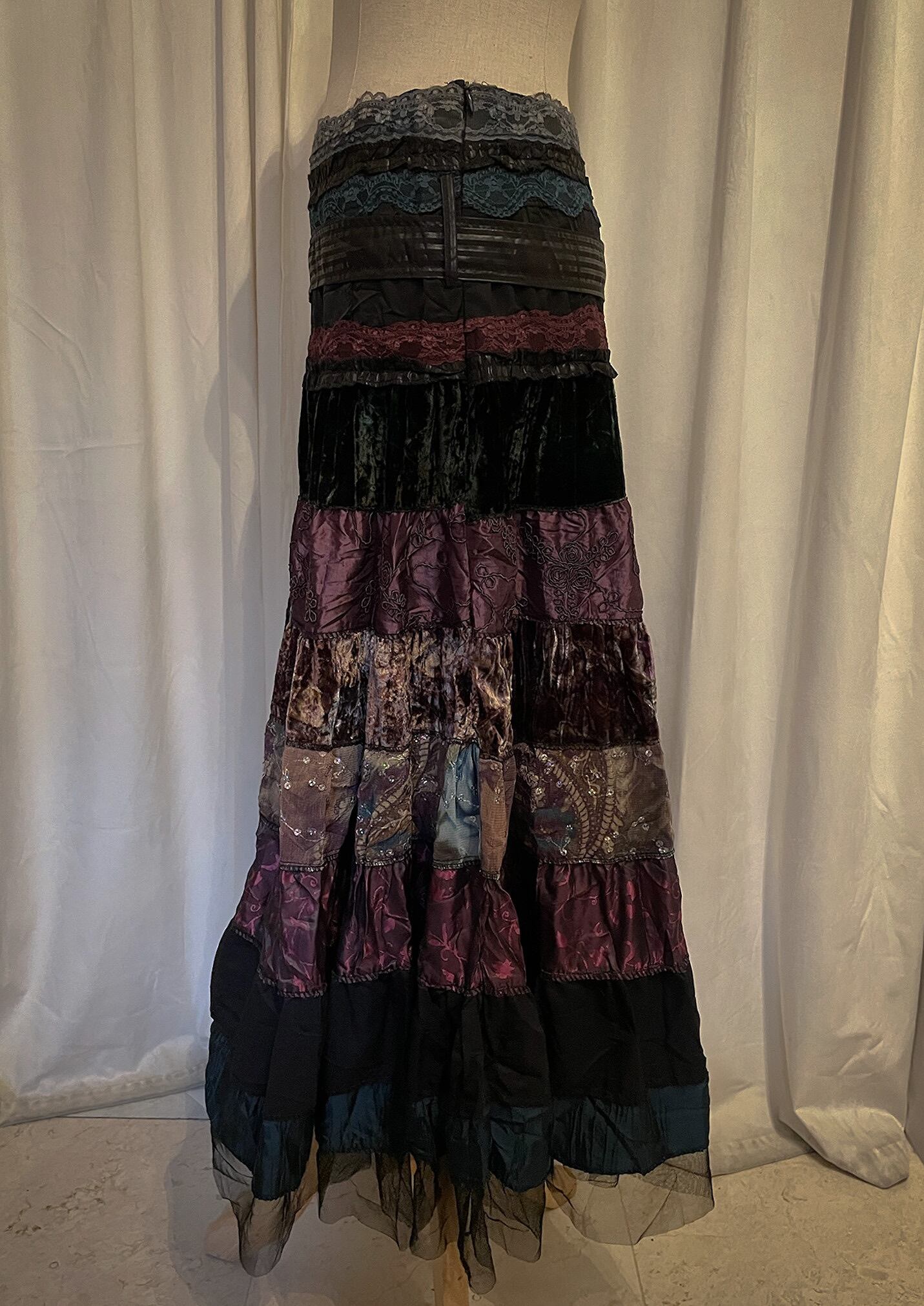 Sparkle Mixed Fabric Tie Long Skirt [France]