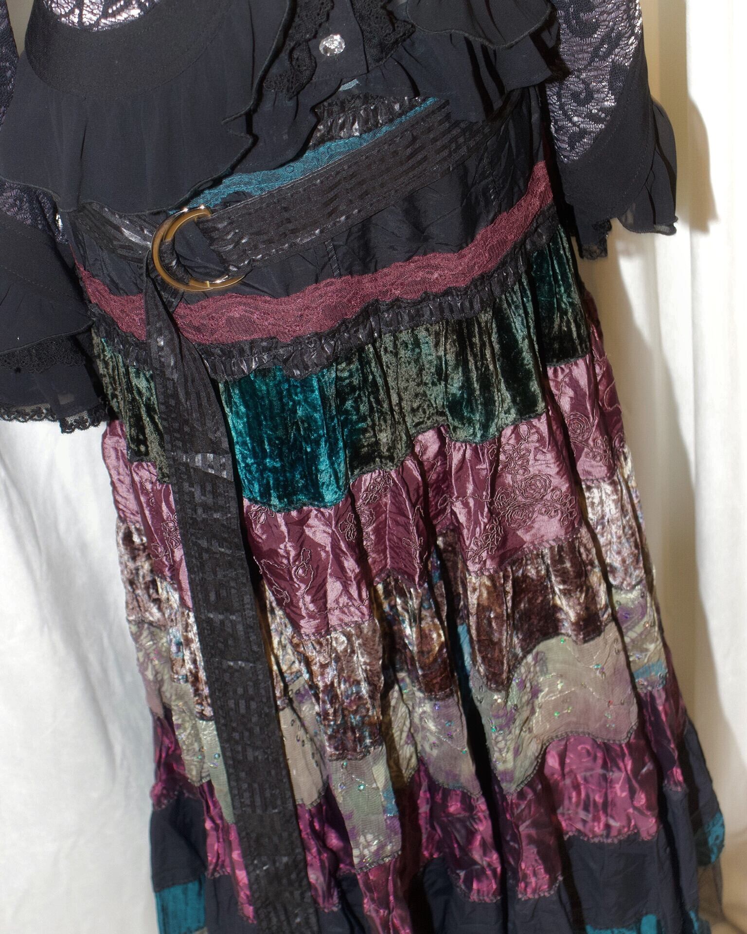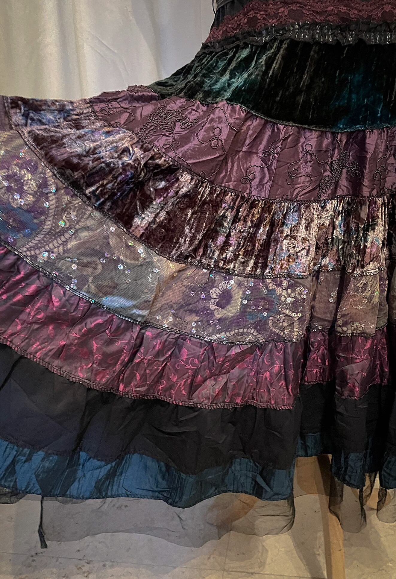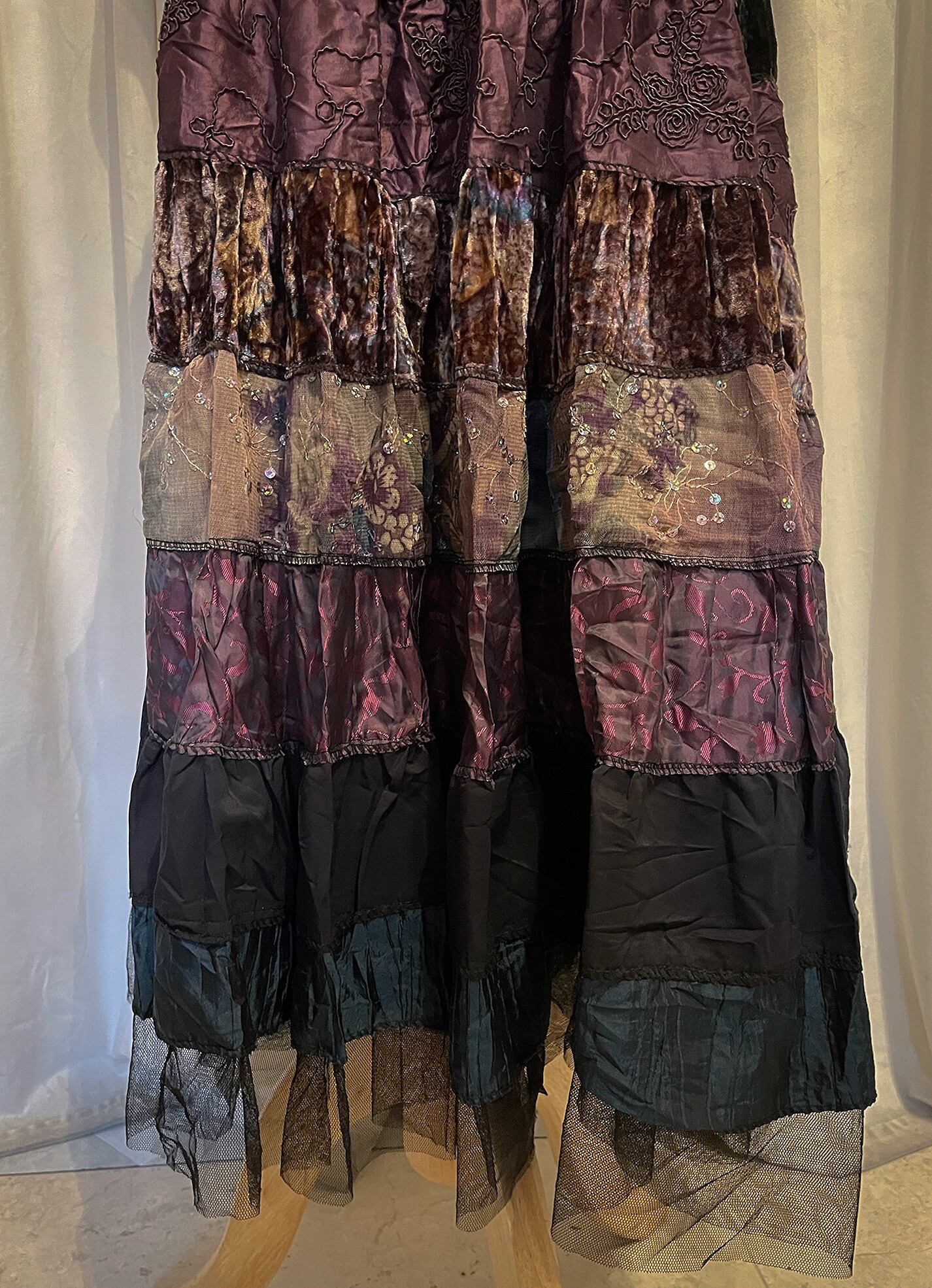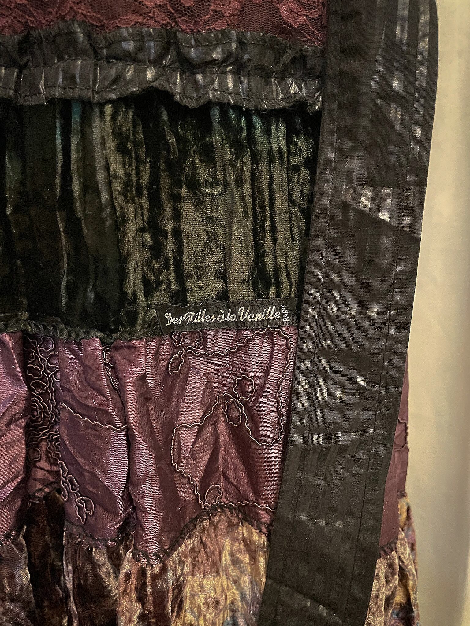 Sparkle Mixed Fabric Tie Long Skirt [France]