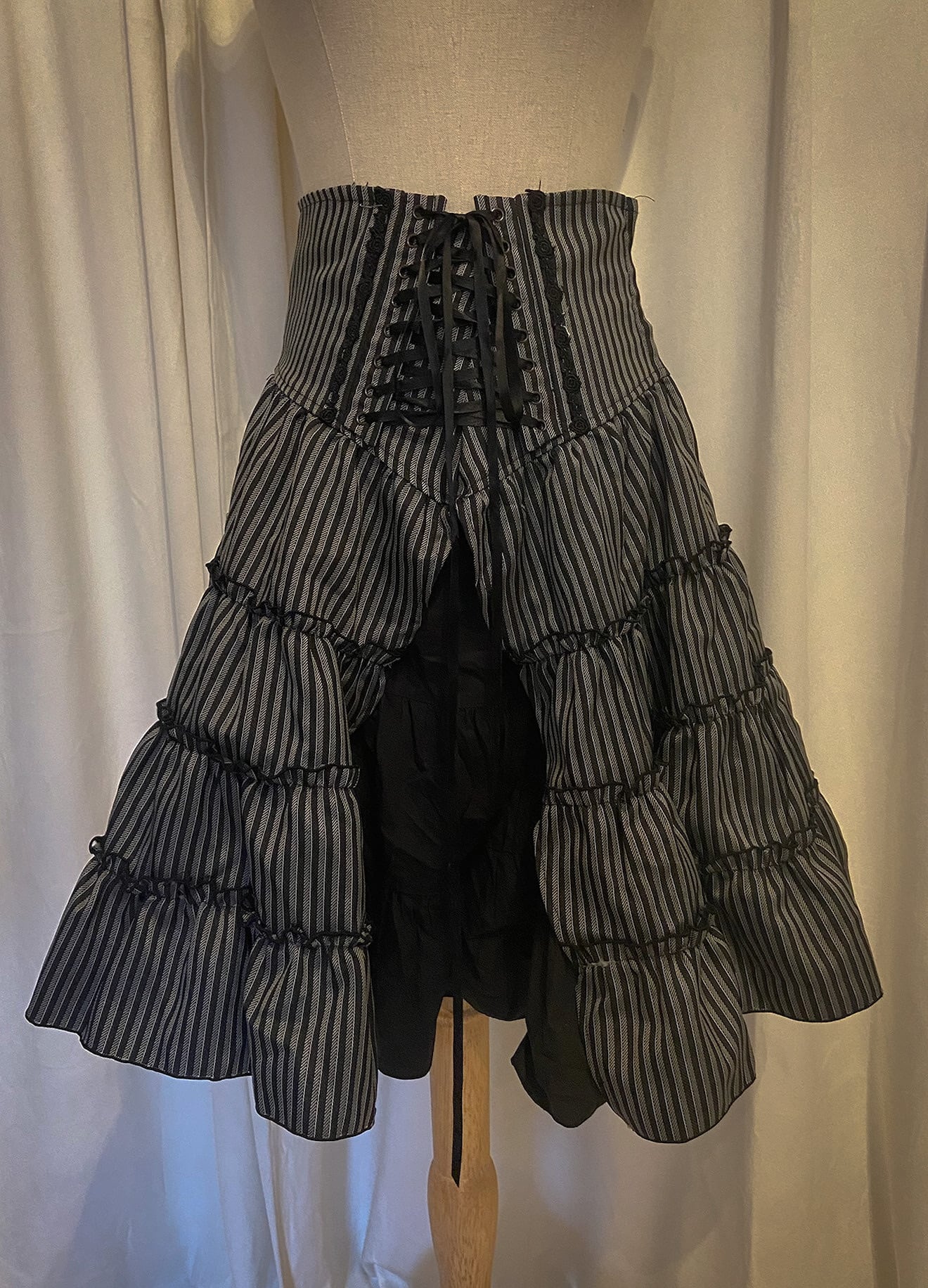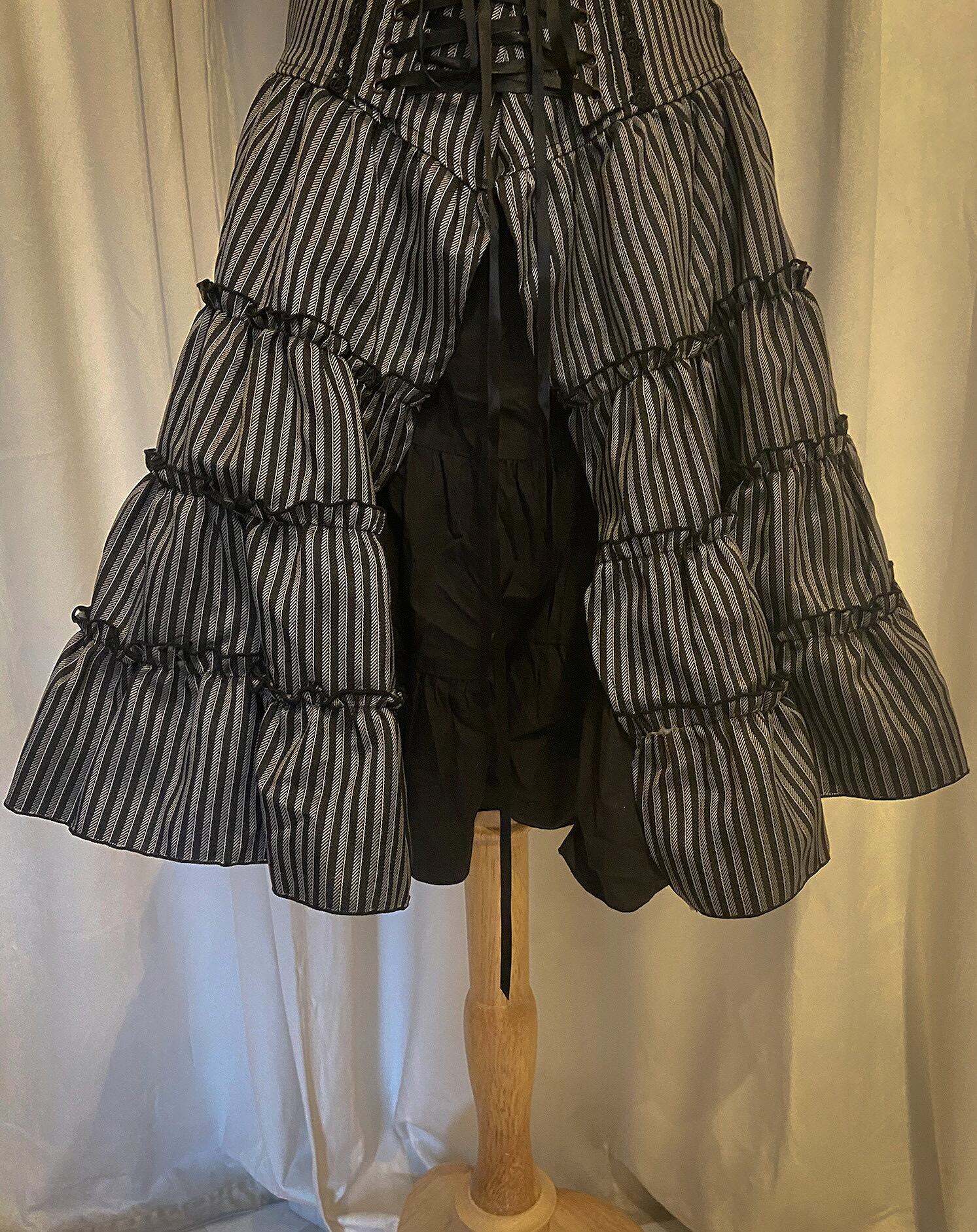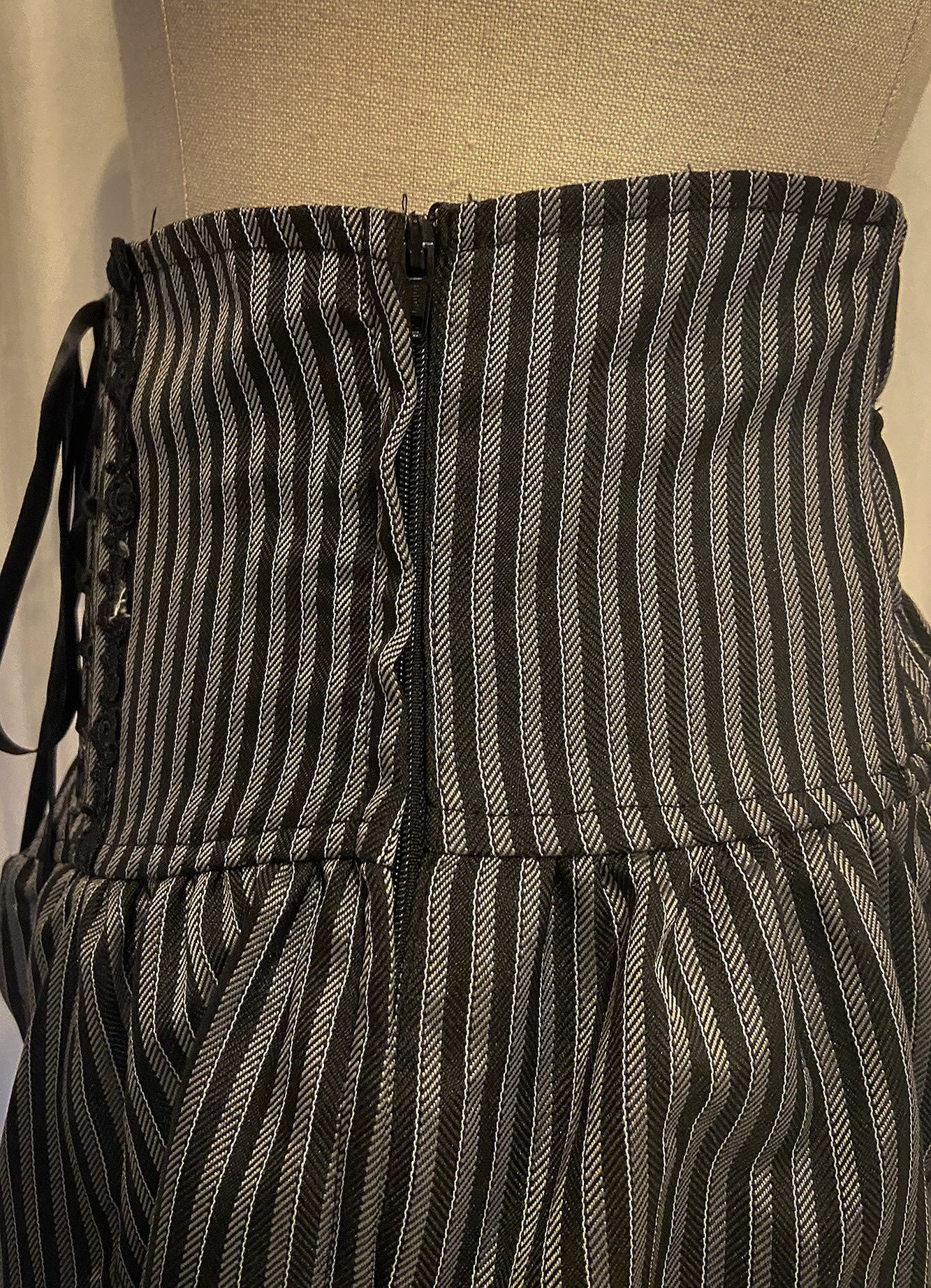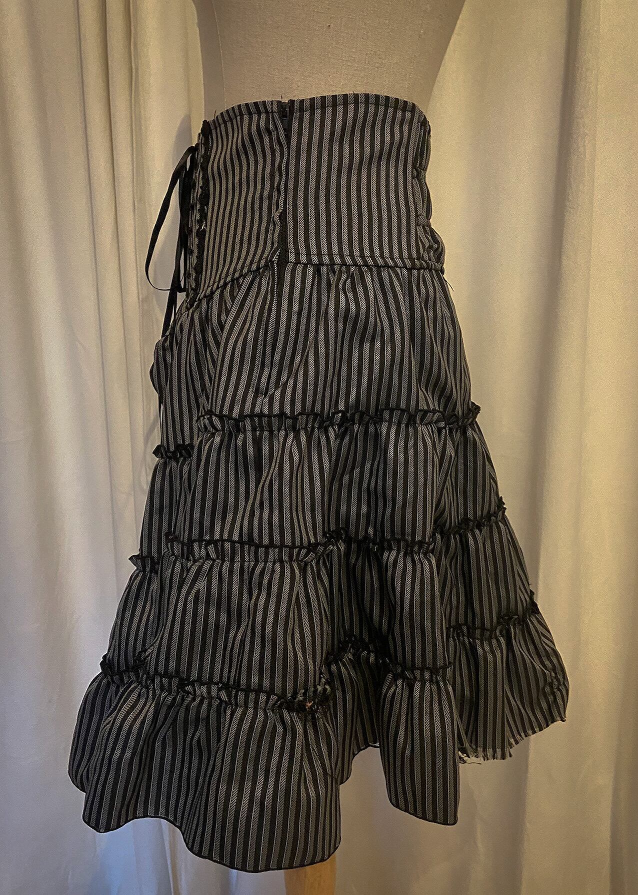 Lace Up Waist Stripe Layered Flare Skirt