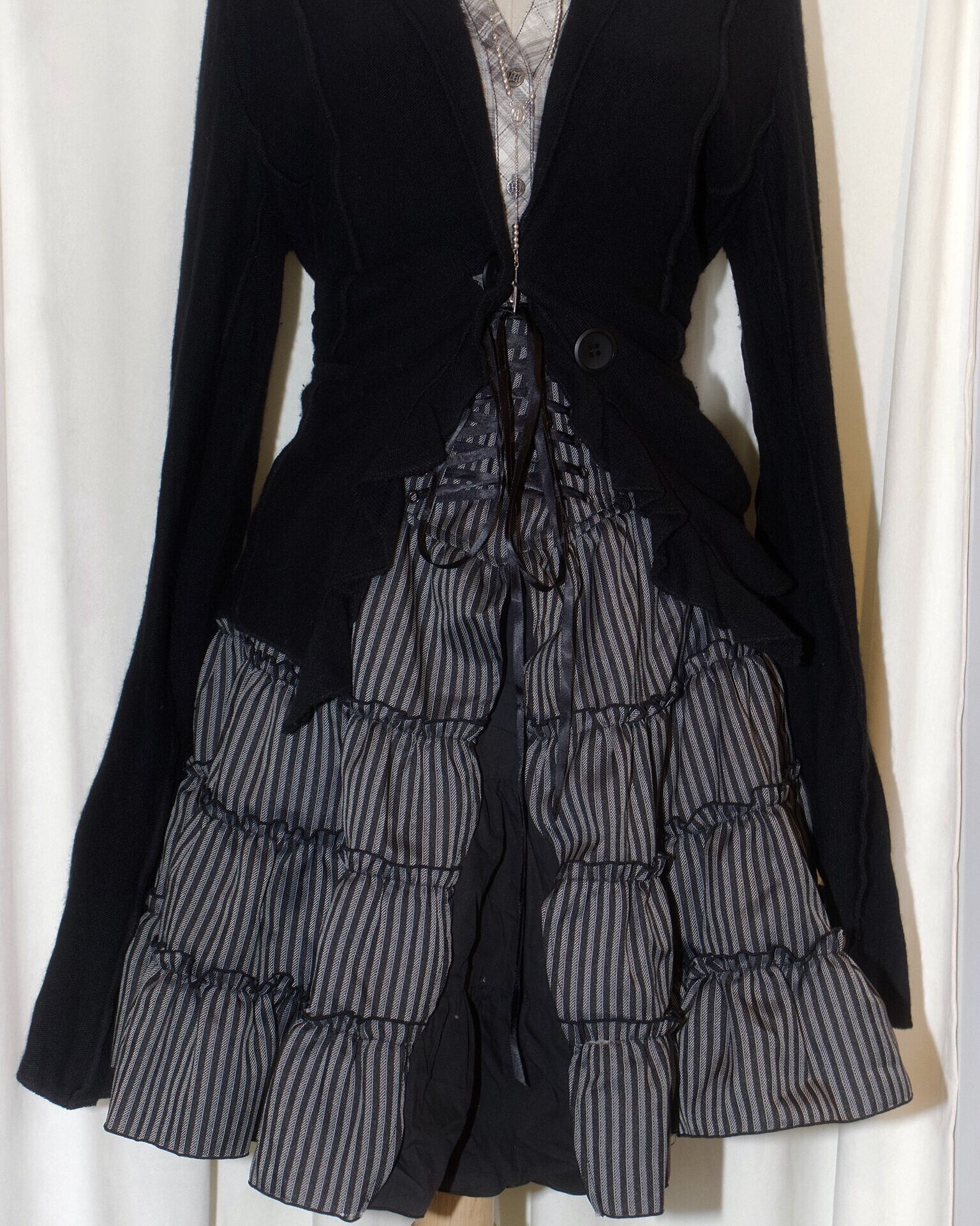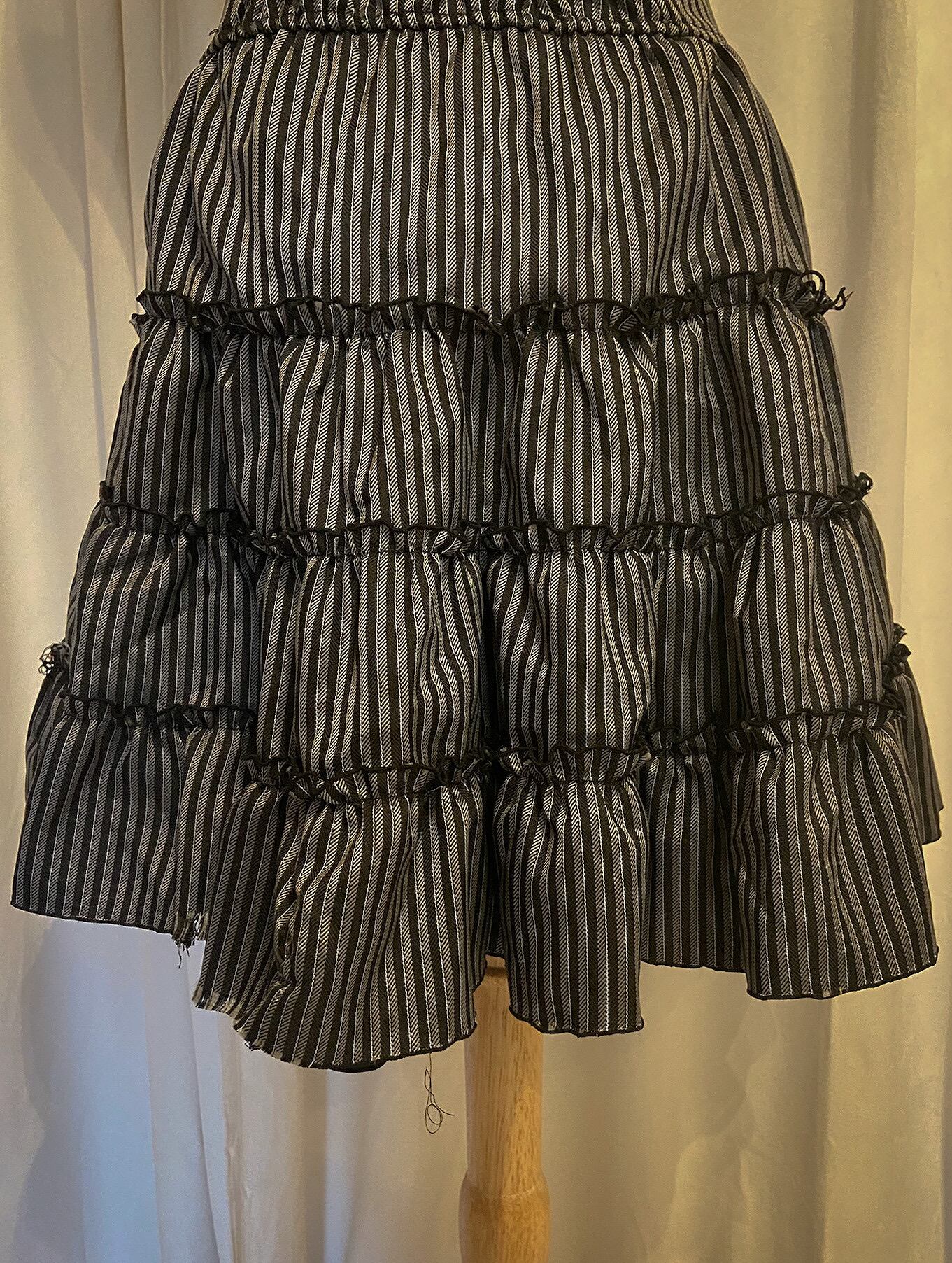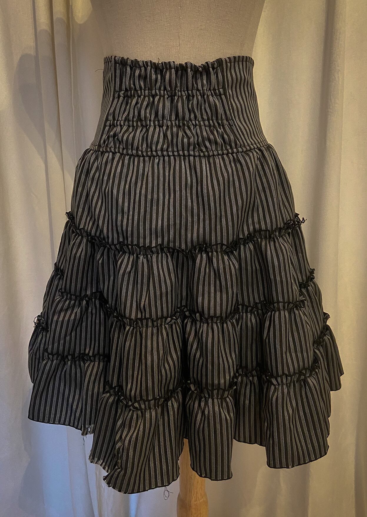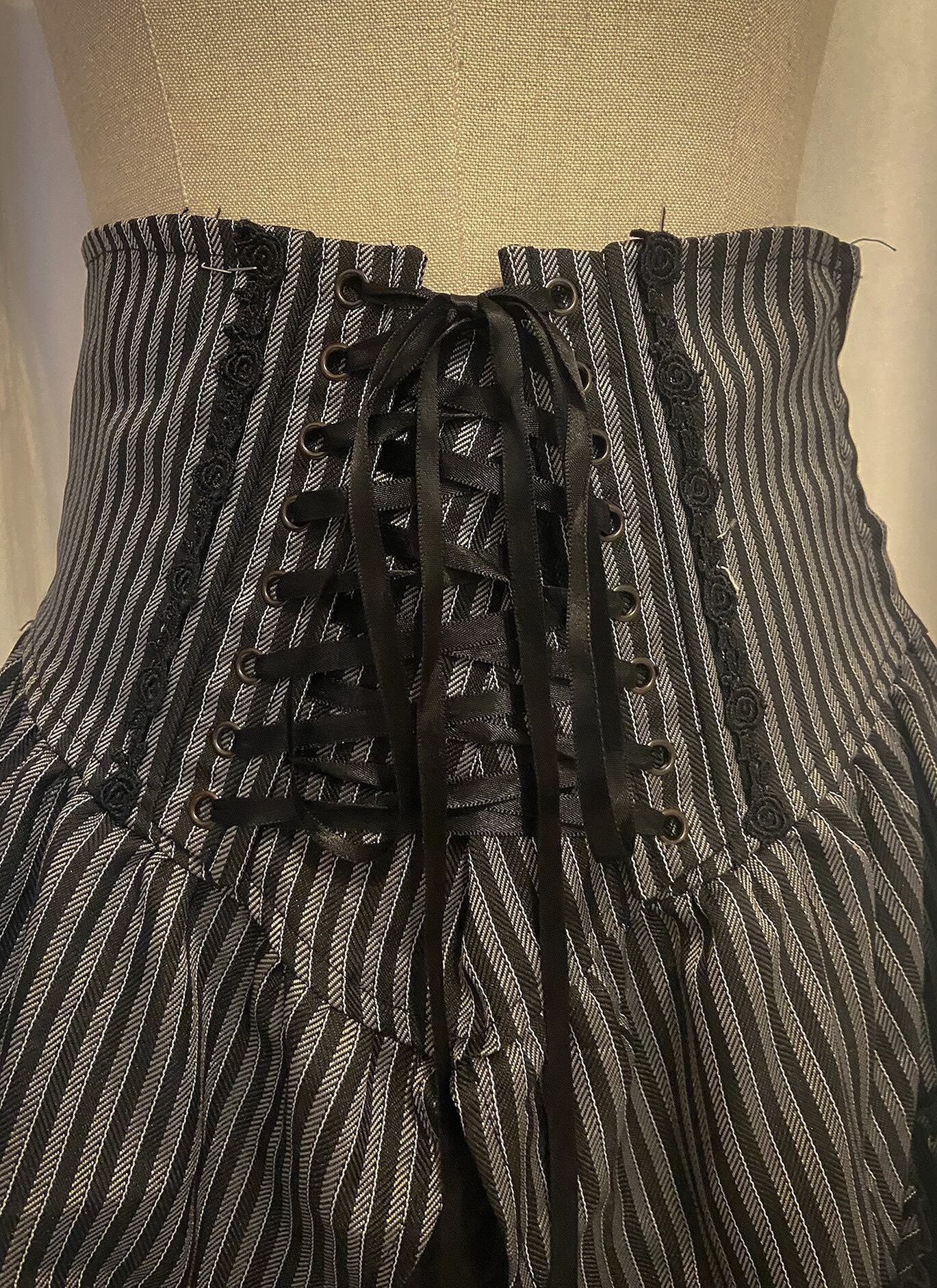 Lace Up Waist Stripe Layered Flare Skirt