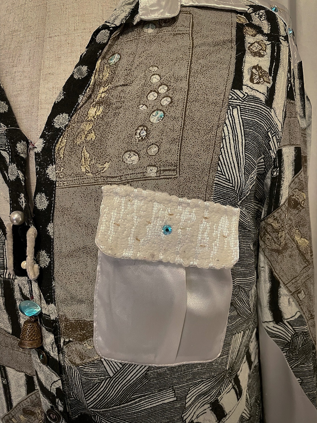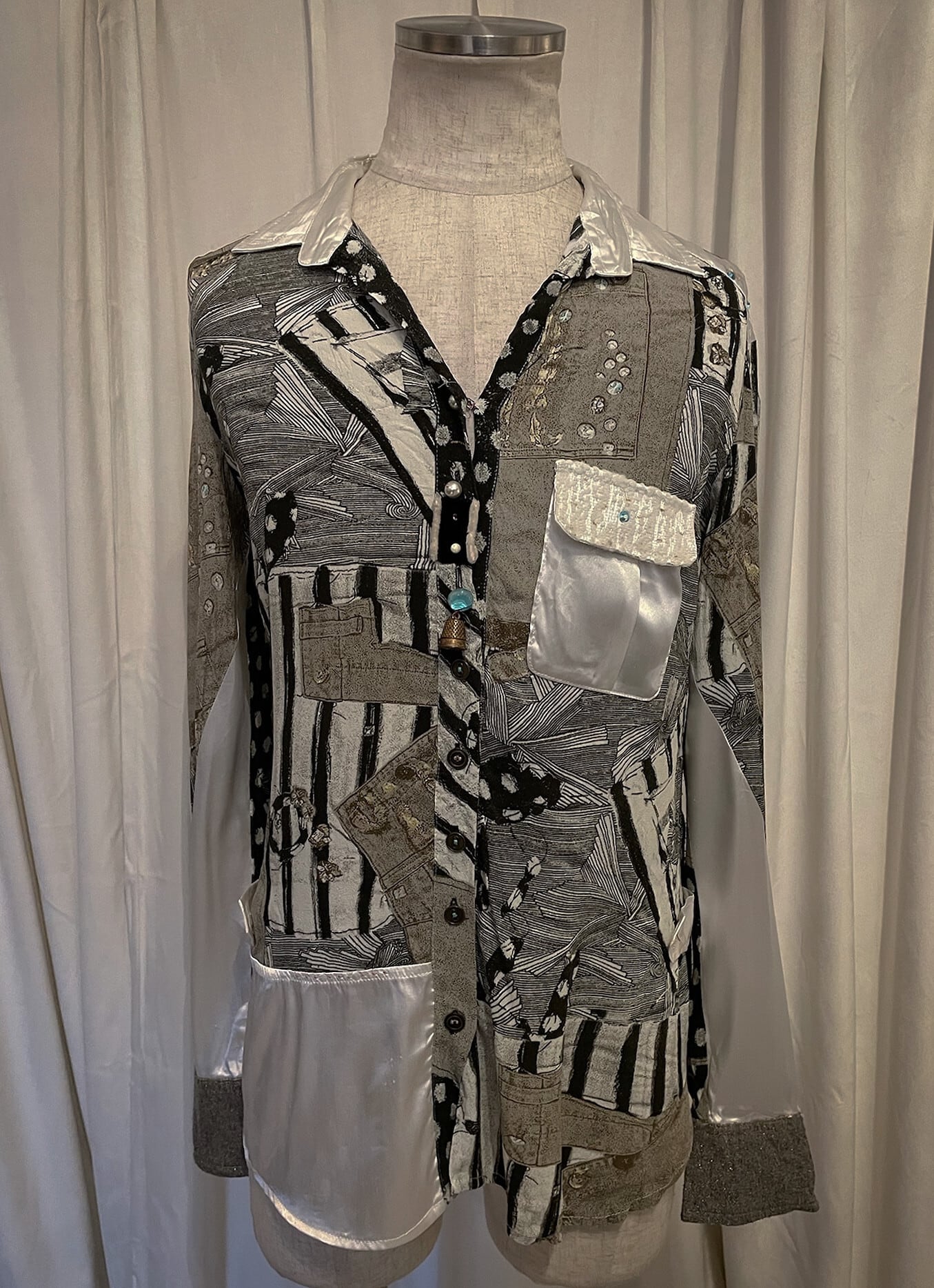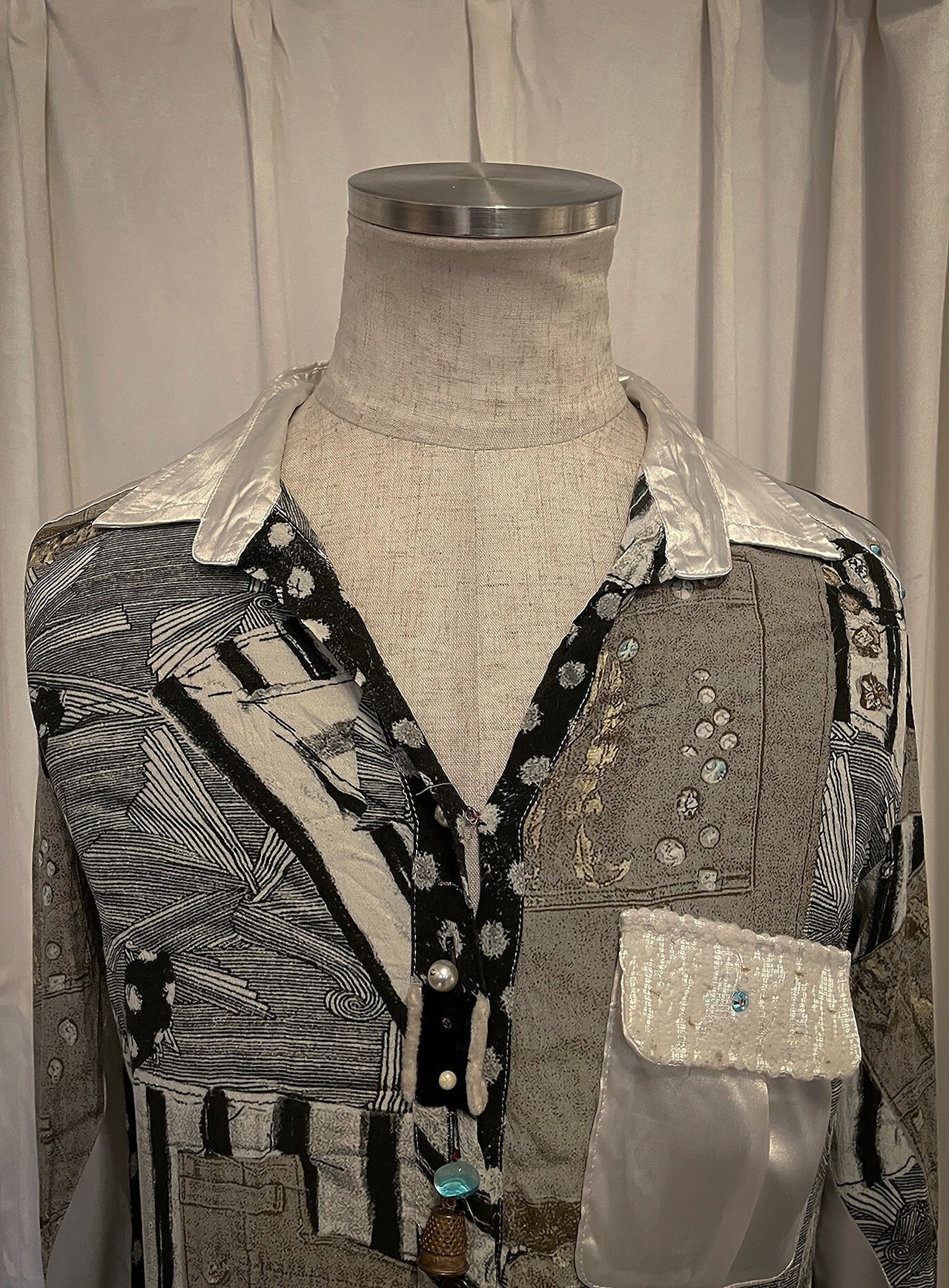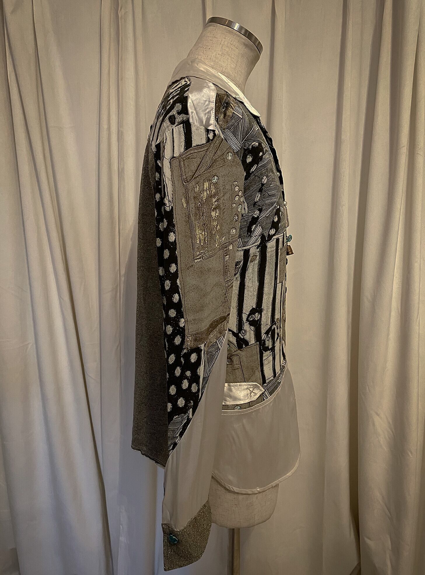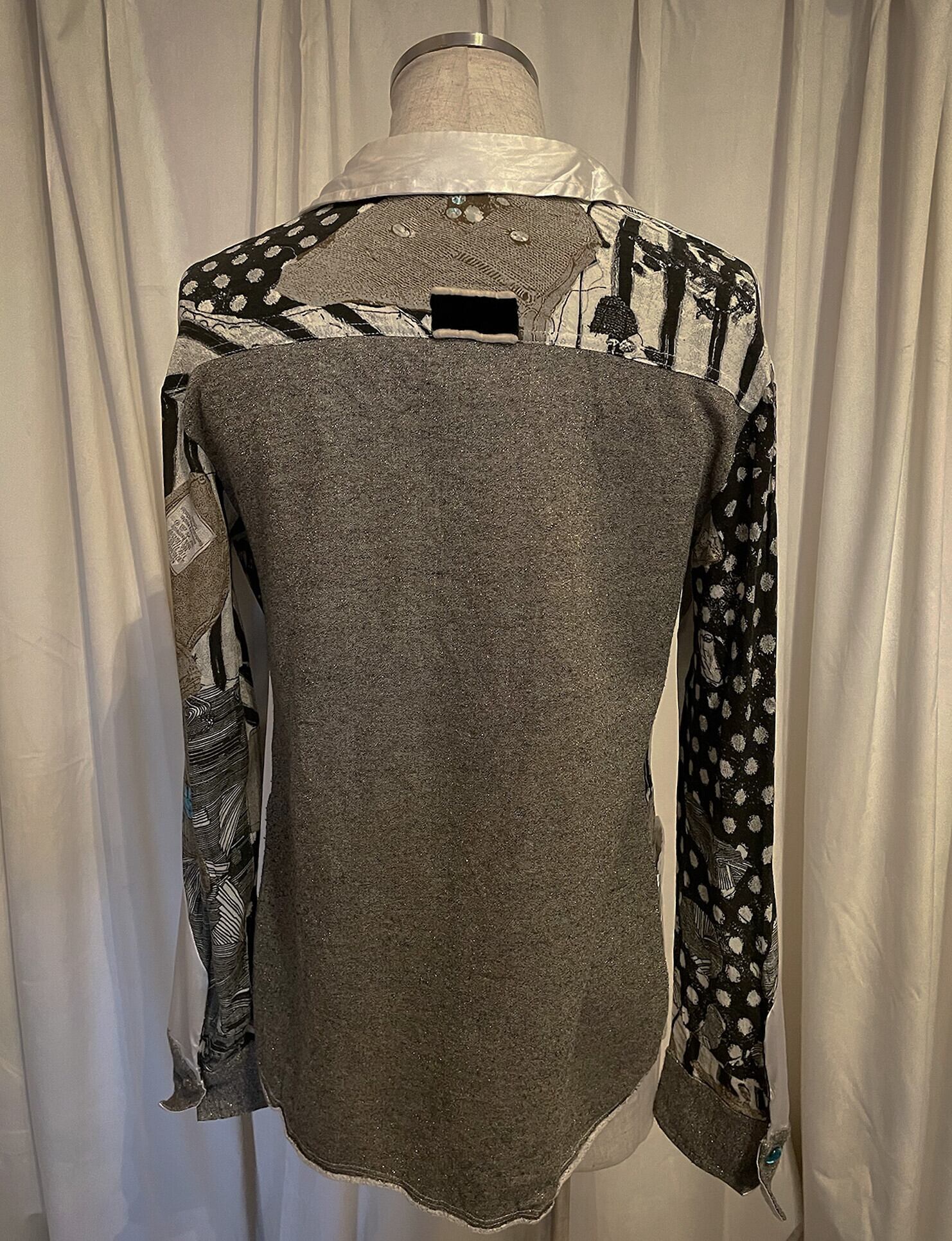 Mixed Fabric Patchwork Print Shirt