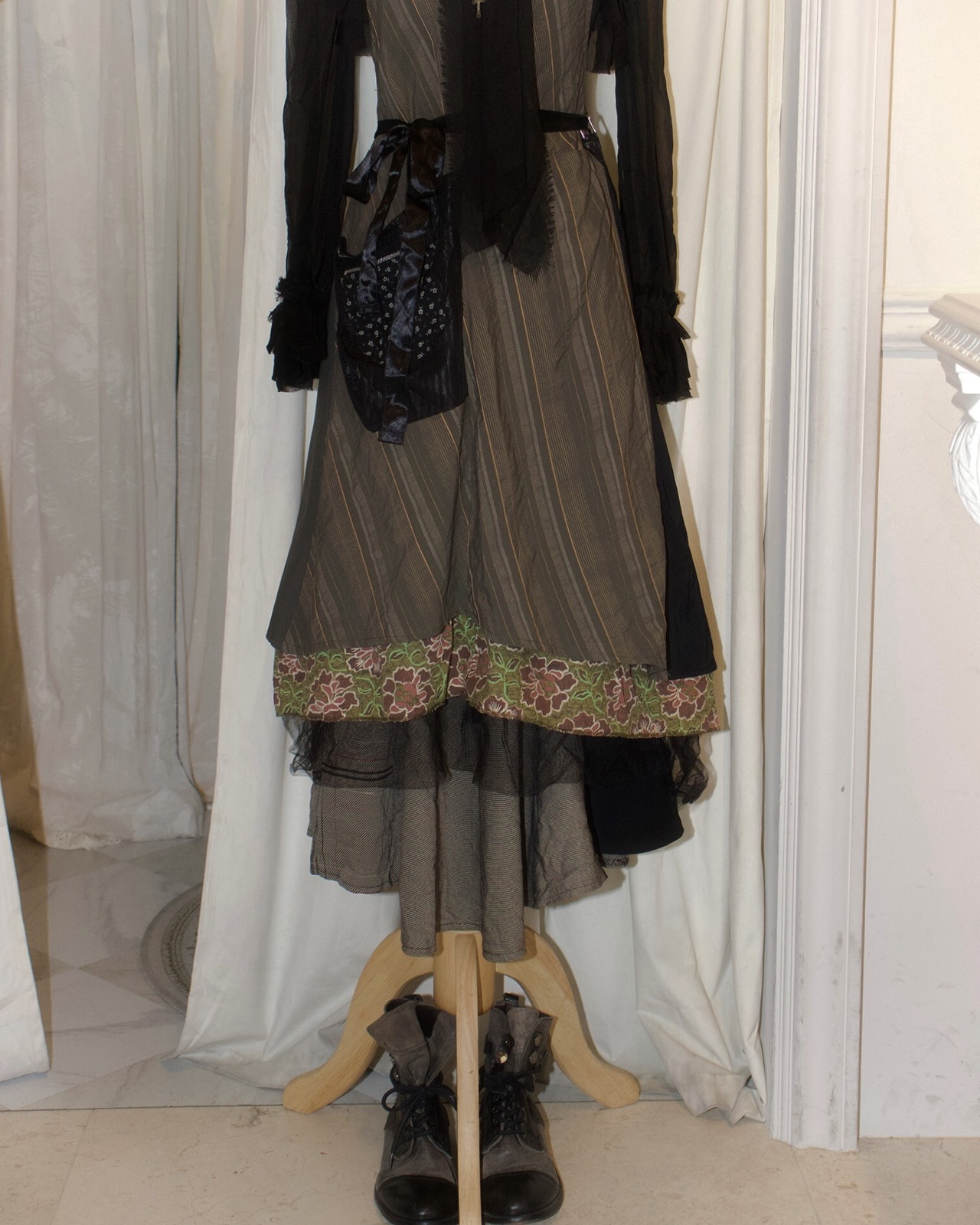 Diagonal Stripe Floral Detail Dress [Paris]