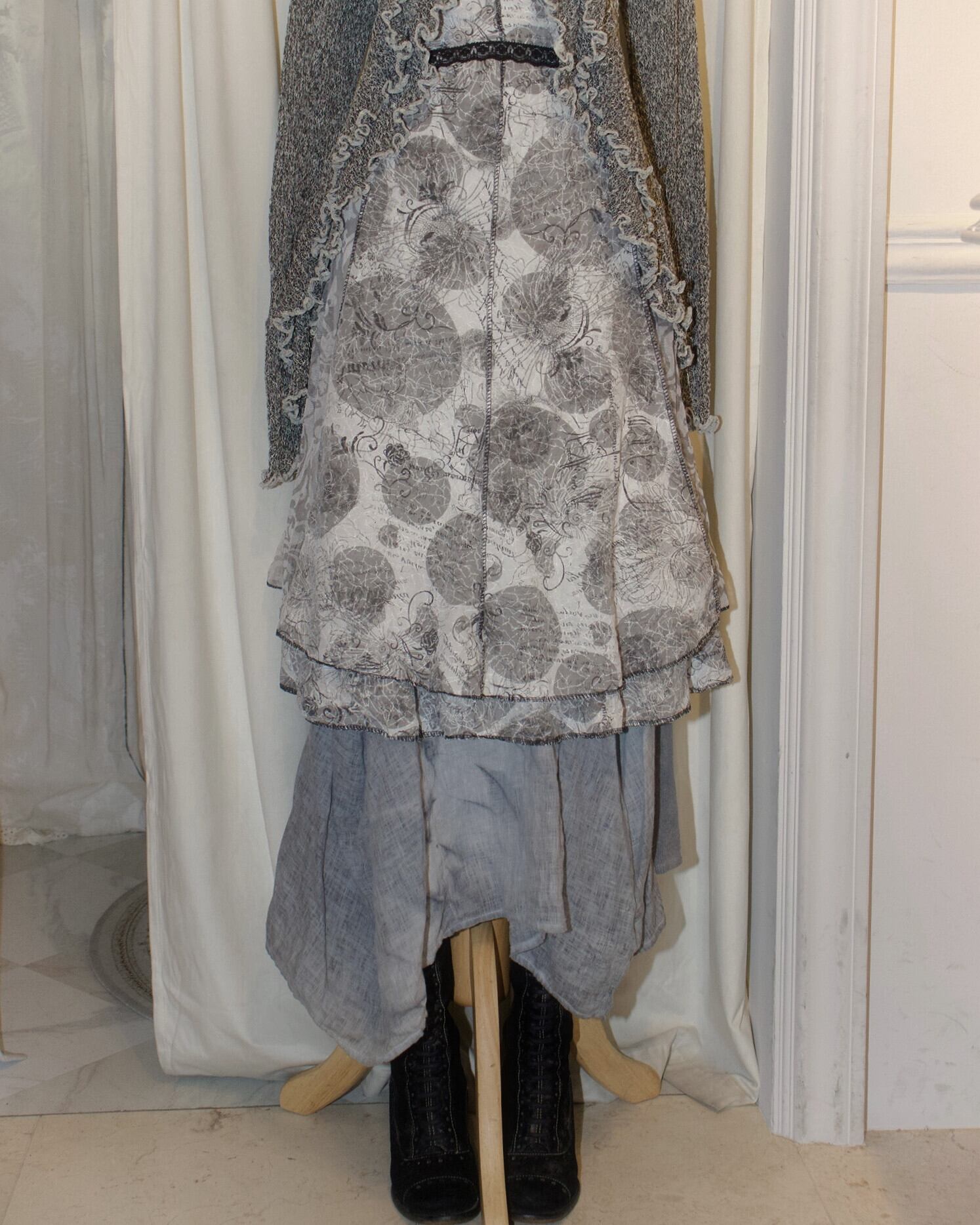 Wash Texture Asymmetric Long Skirt
