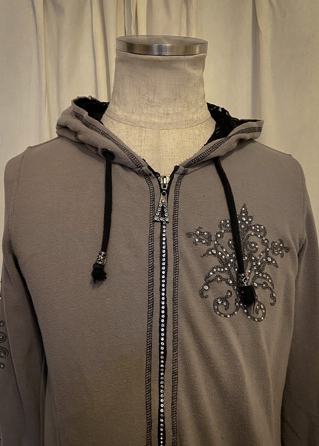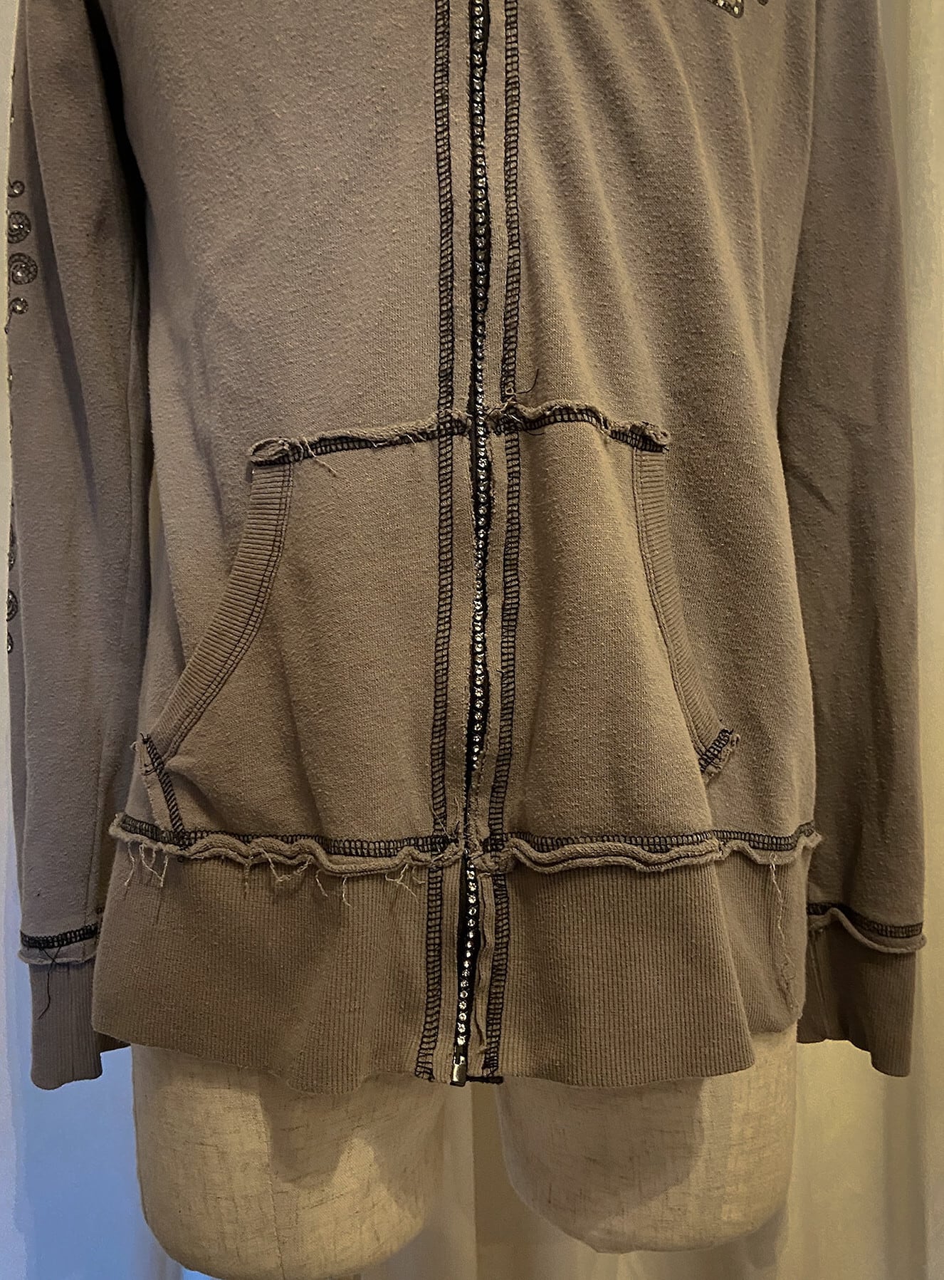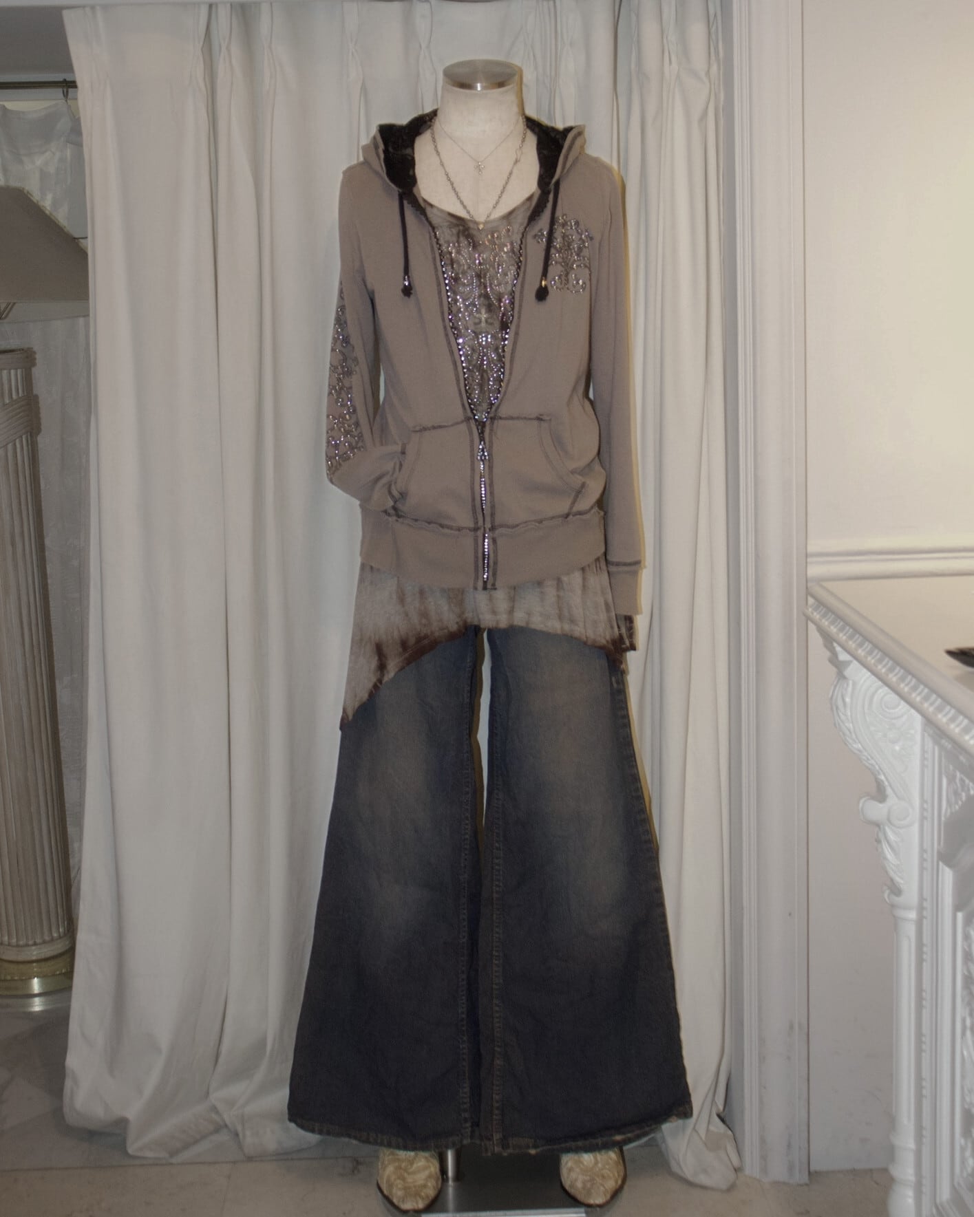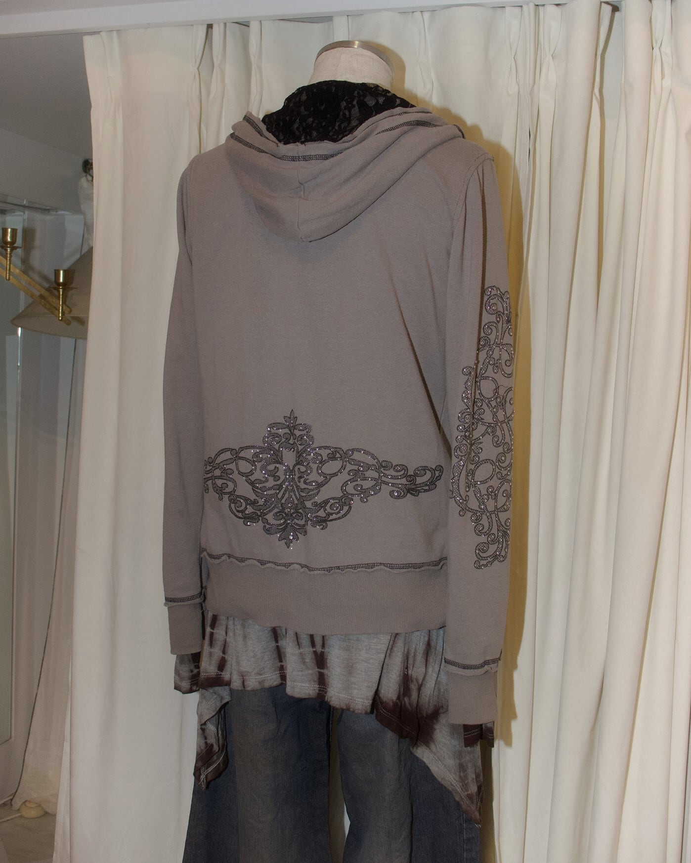 Lame Decoration Brown Hood Long Tee