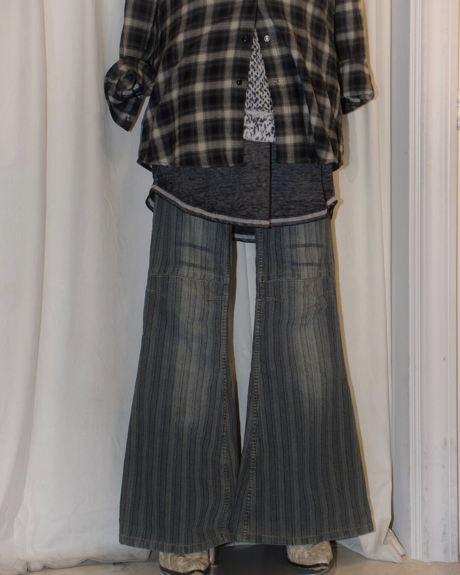 Stripe Blue Flare Denim Pants