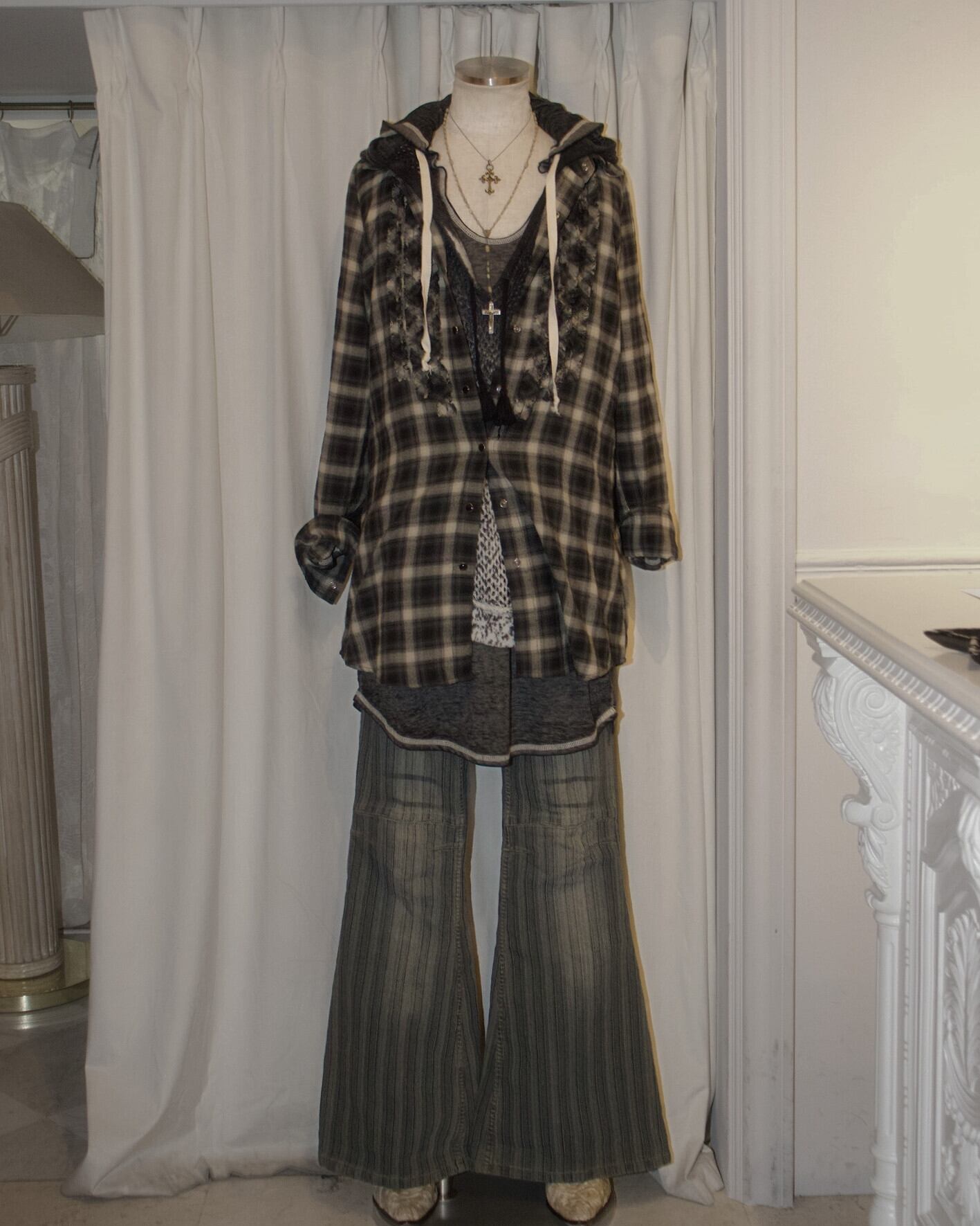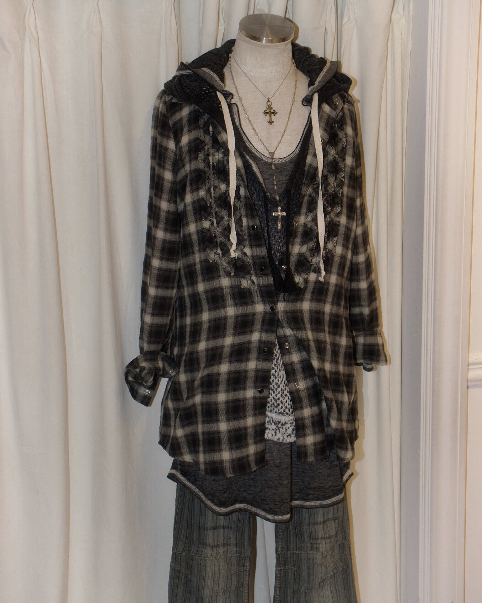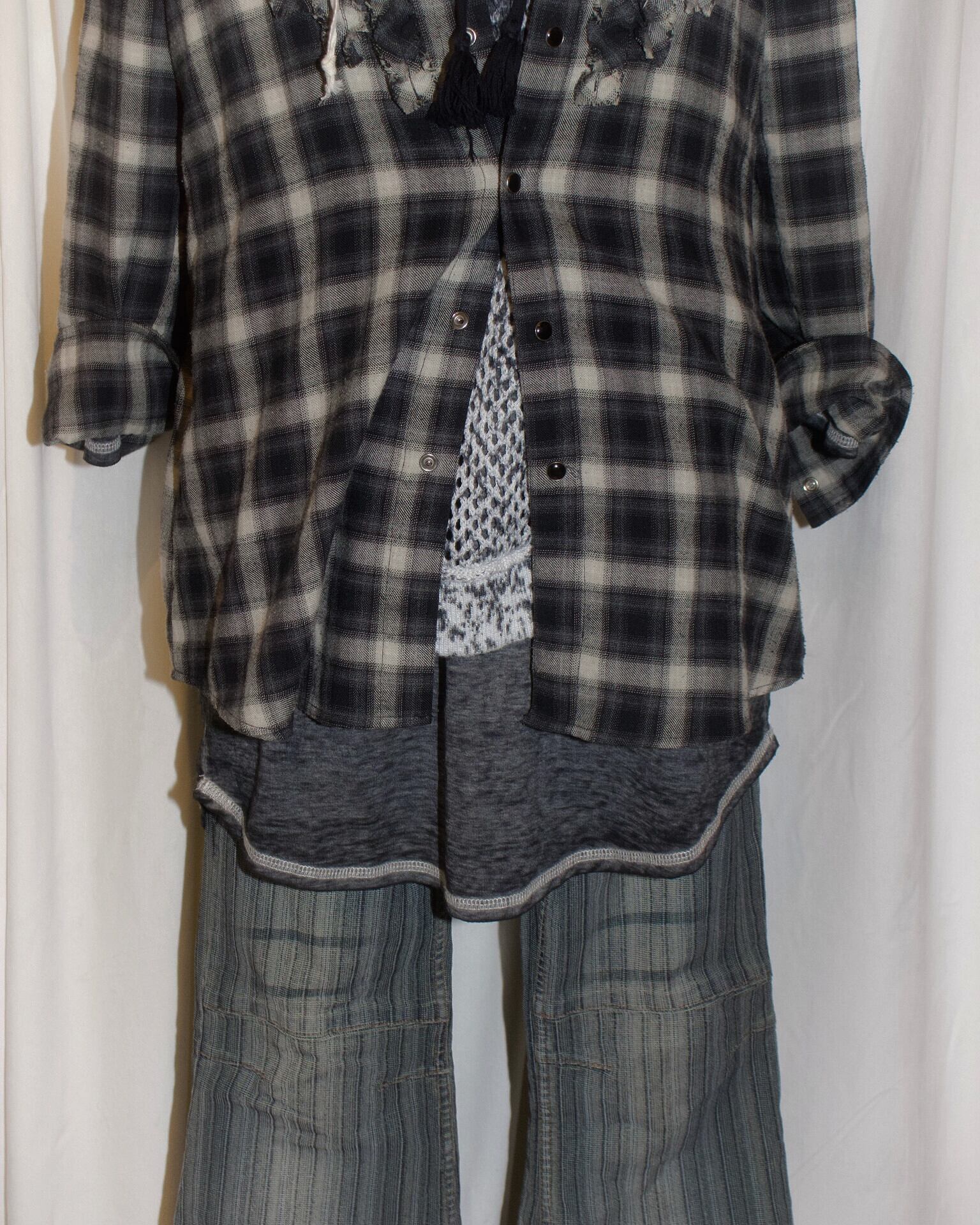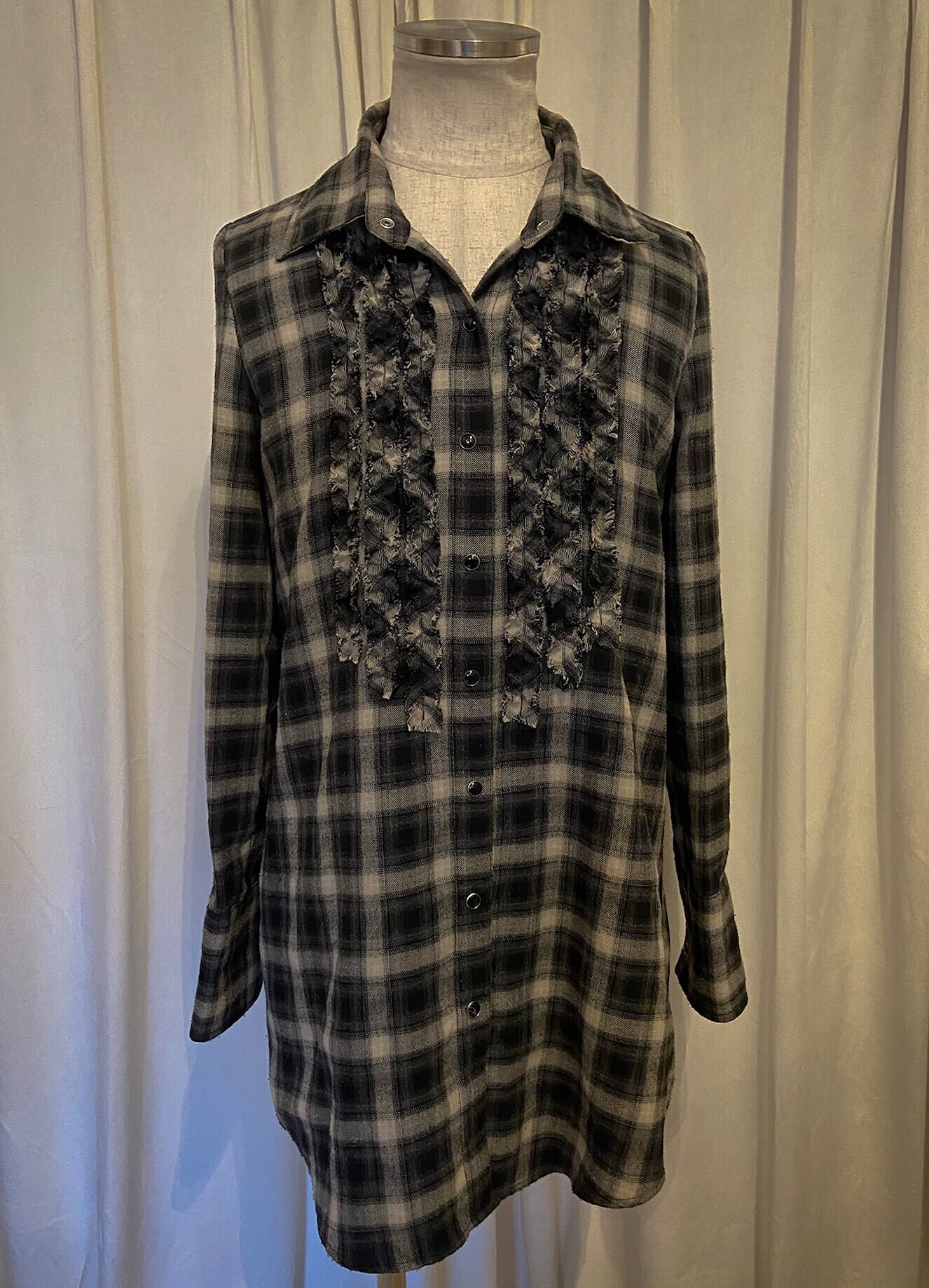 Long Mini Frill Ombre Check Shirt