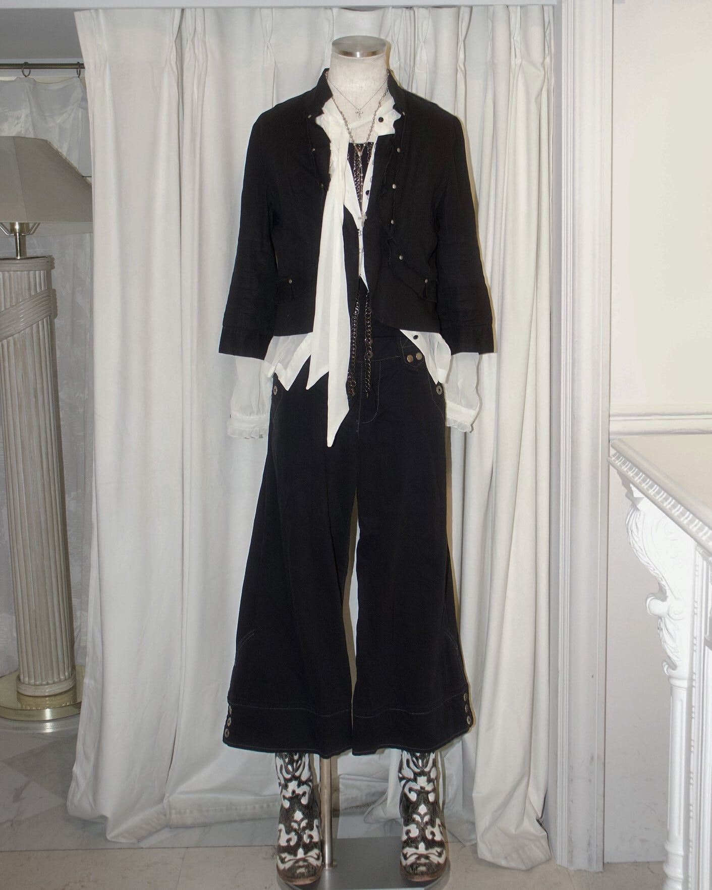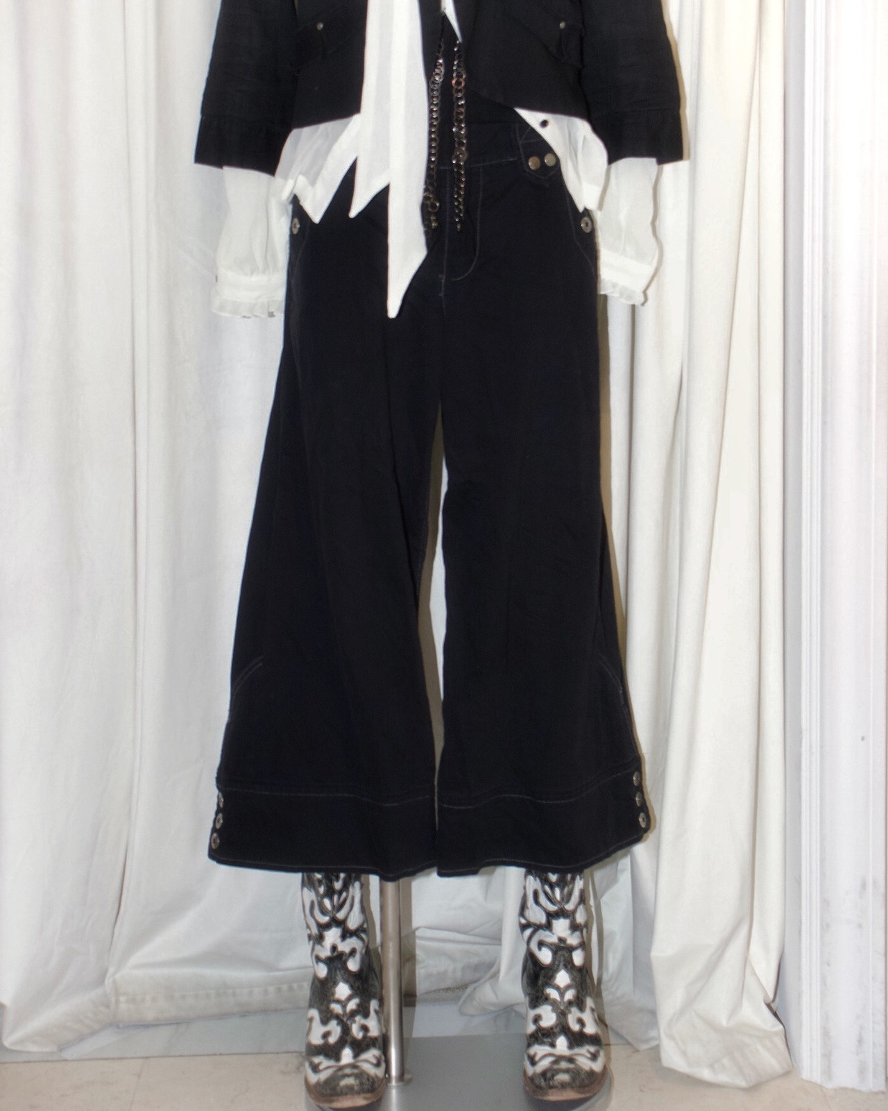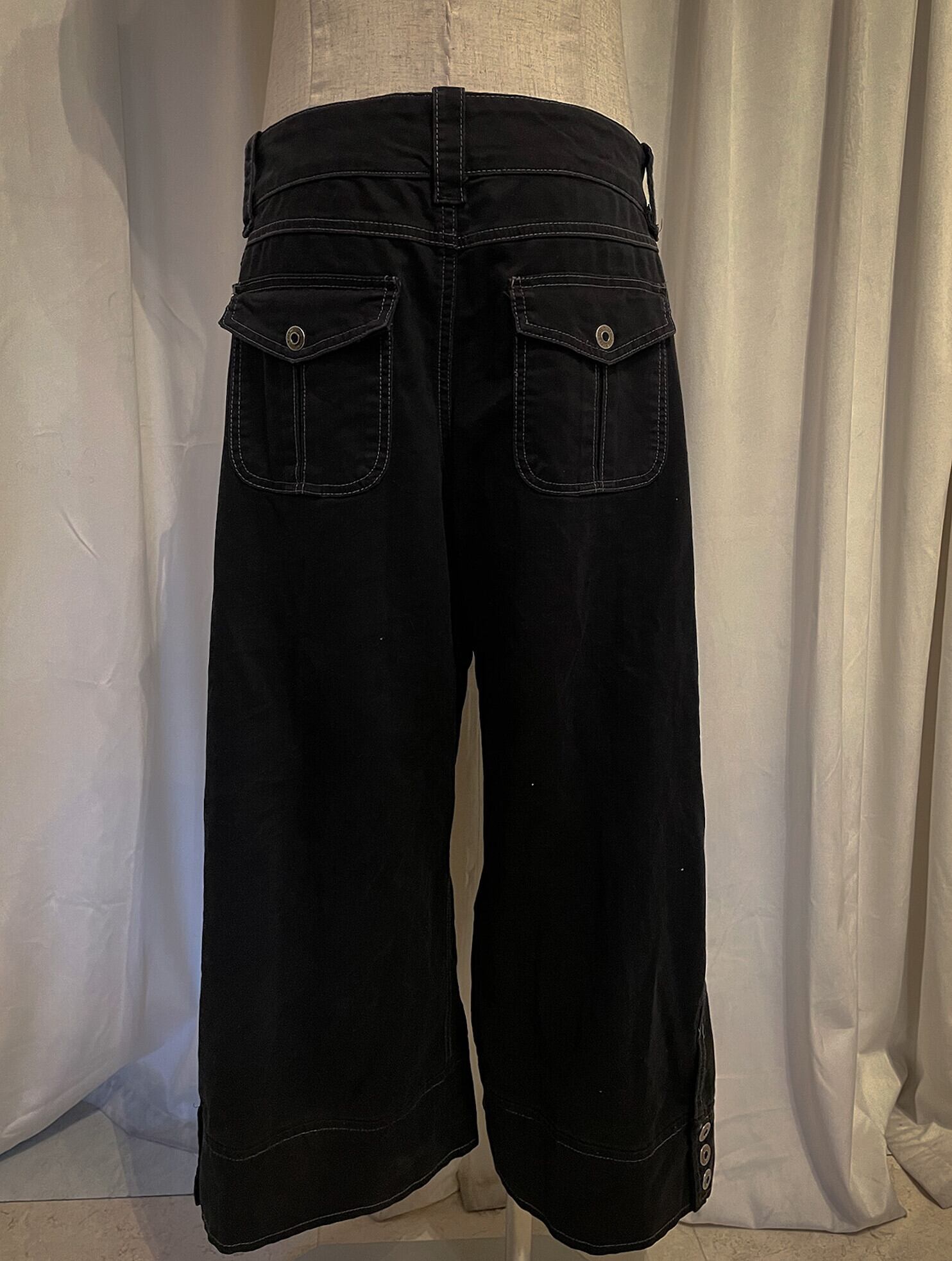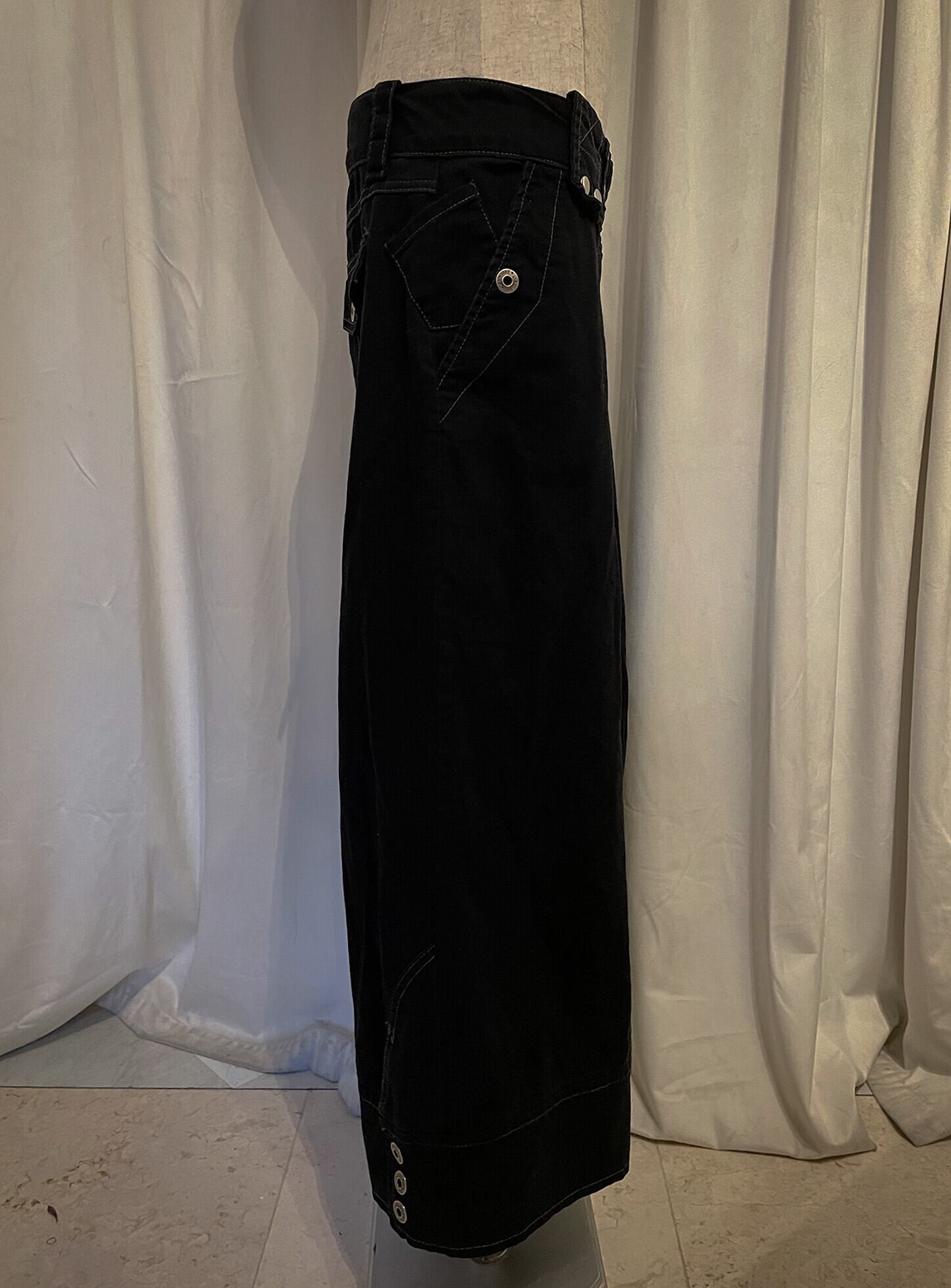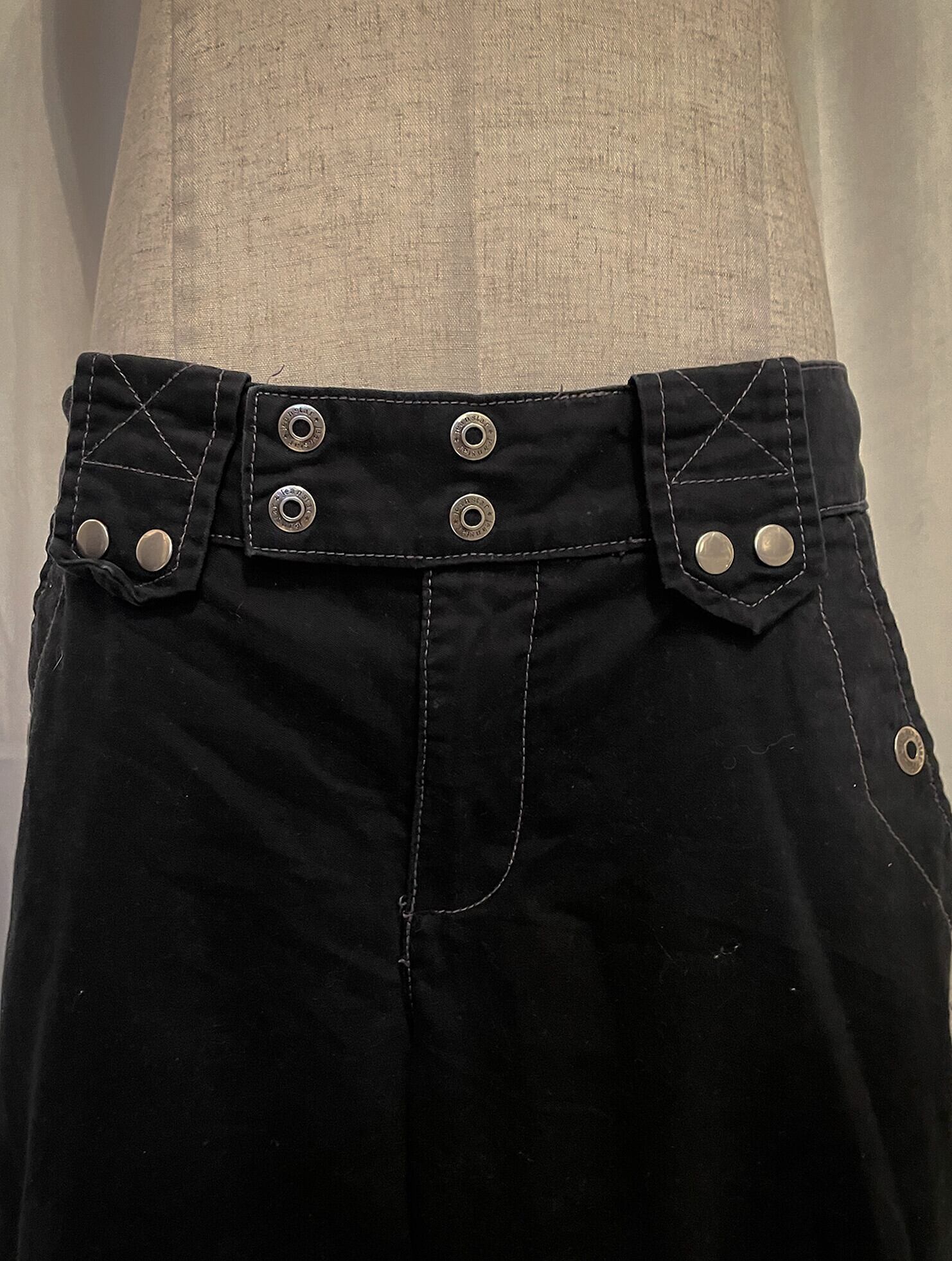 Buttons Belt Black Little Short Length Pants