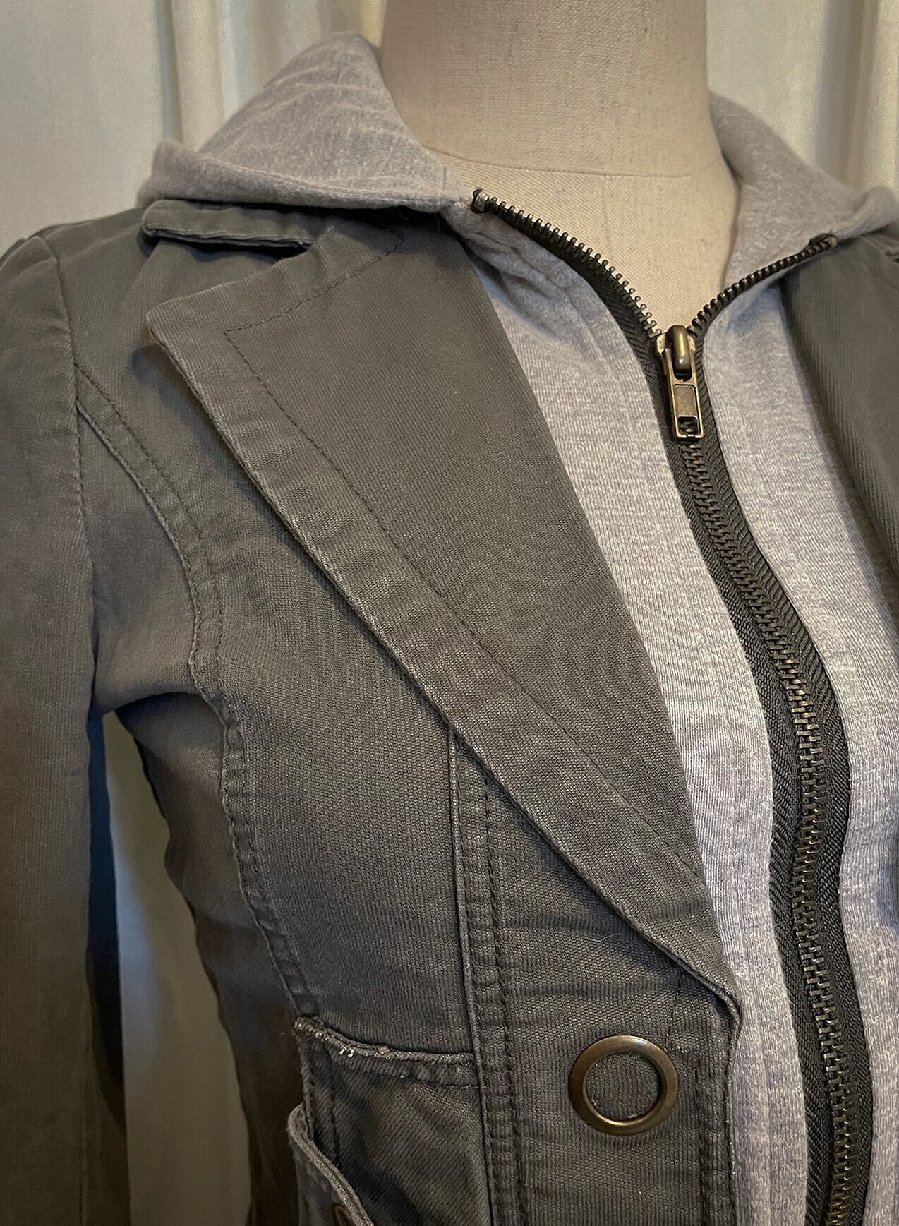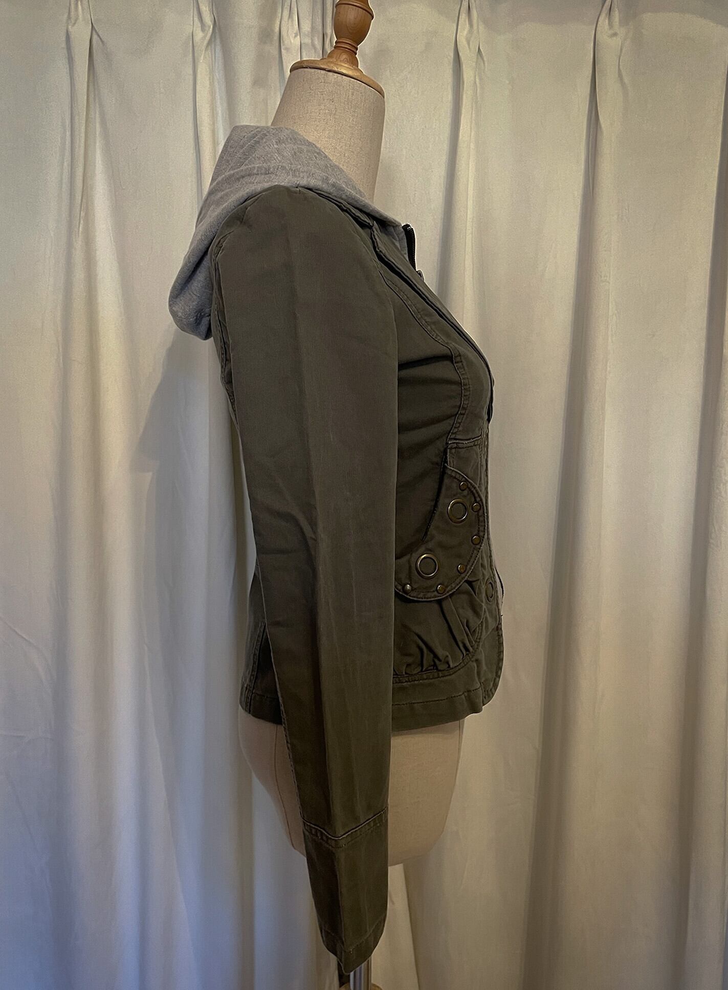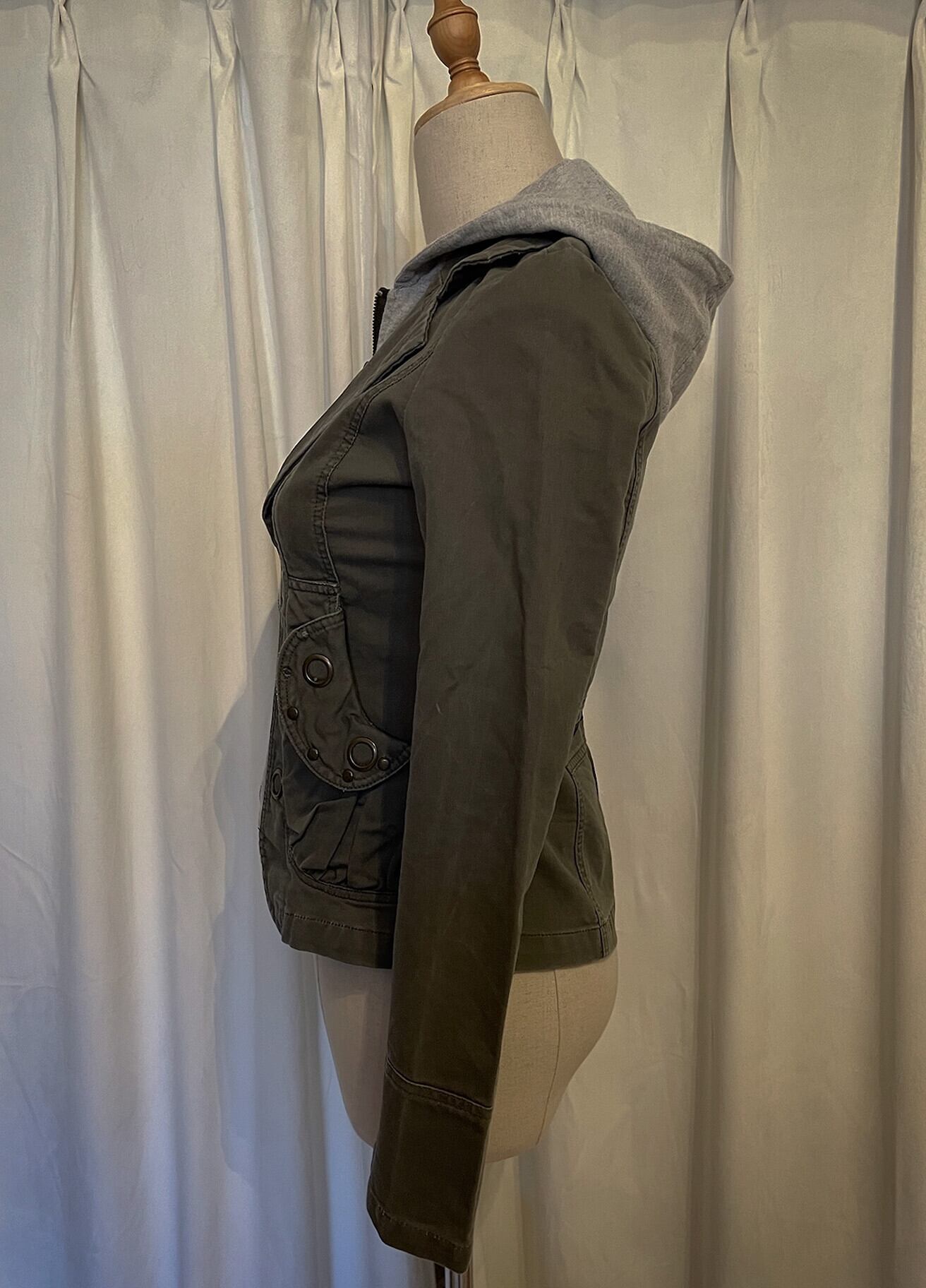 Khaki Docking Hood Zip Short Jacket
