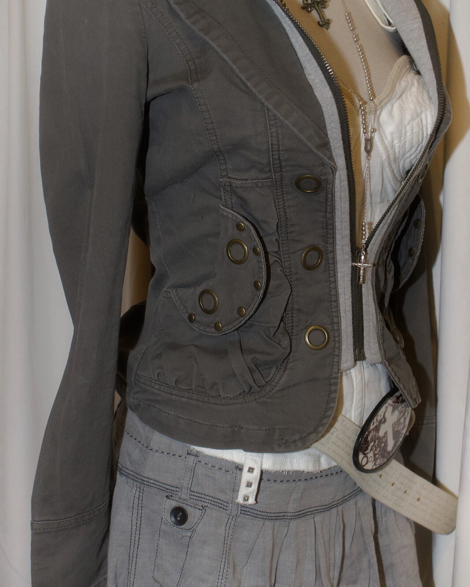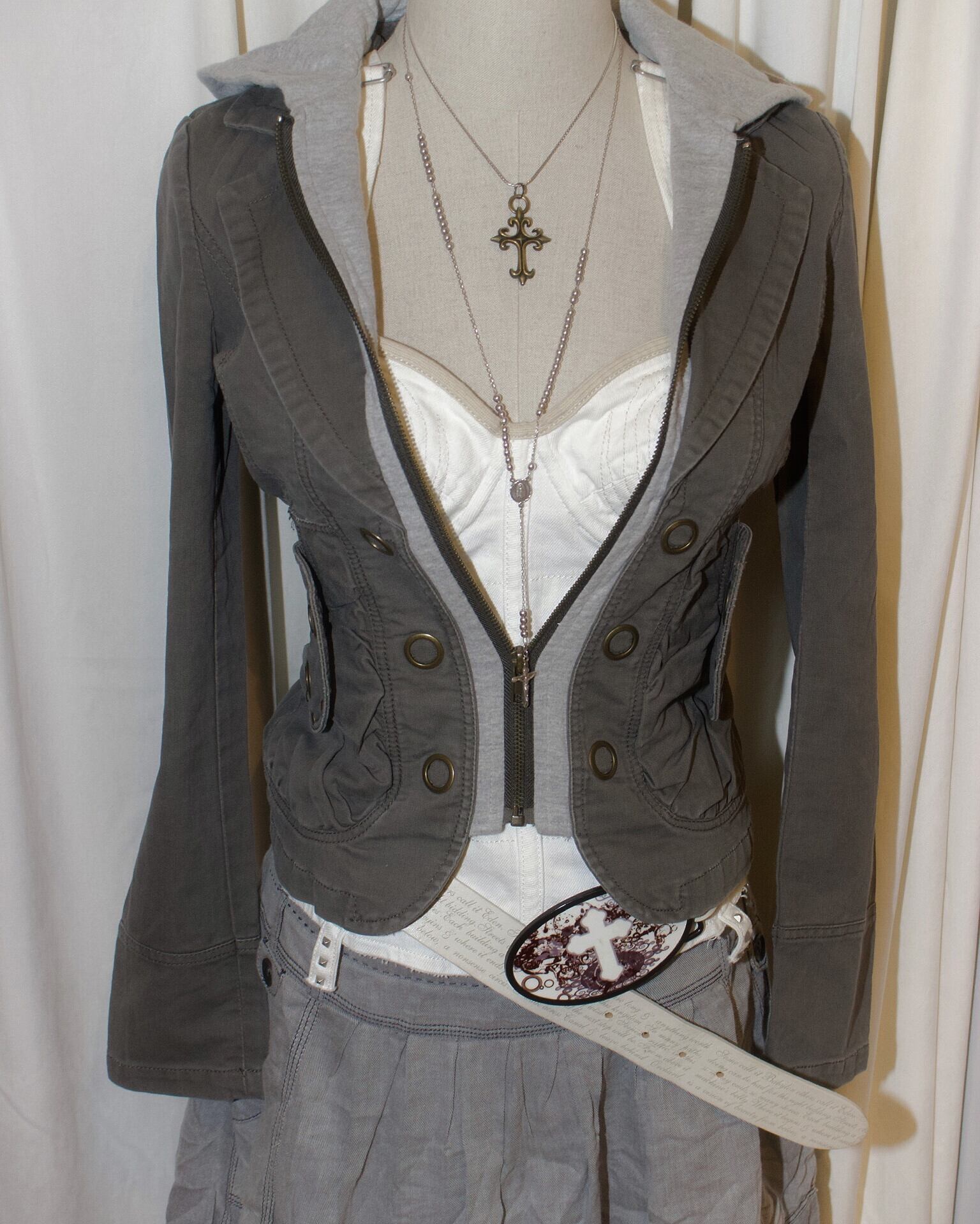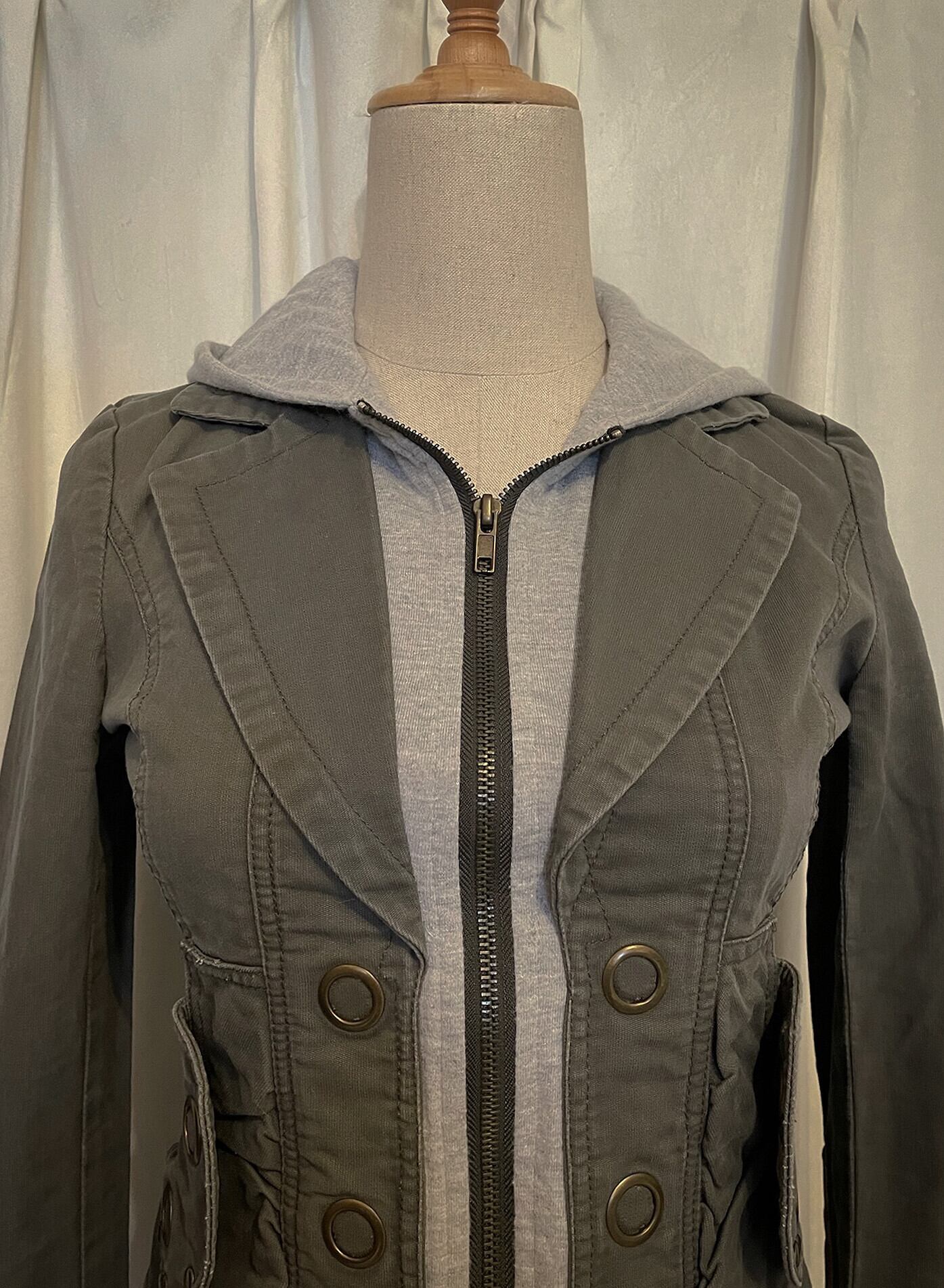 Khaki Docking Hood Zip Short Jacket
