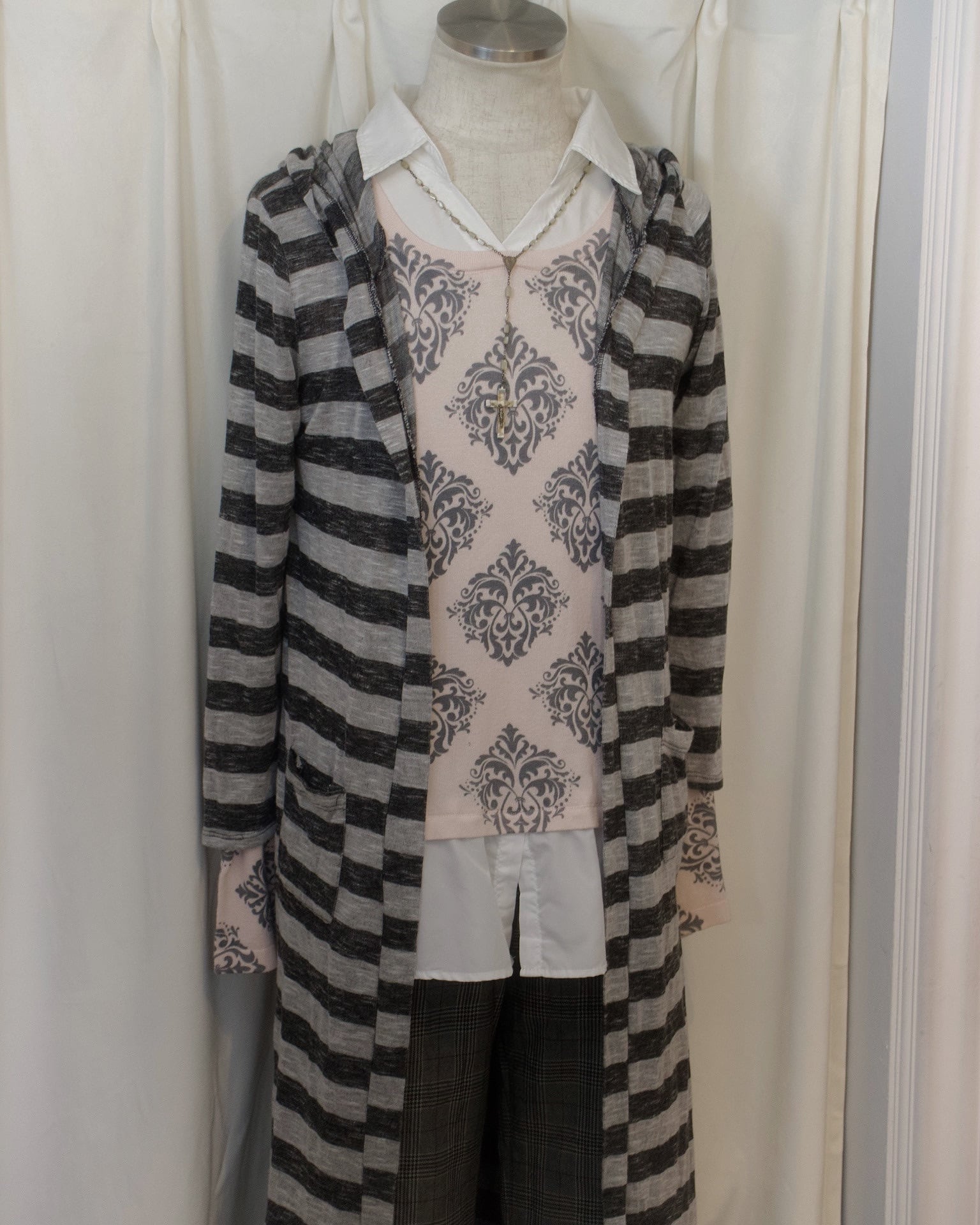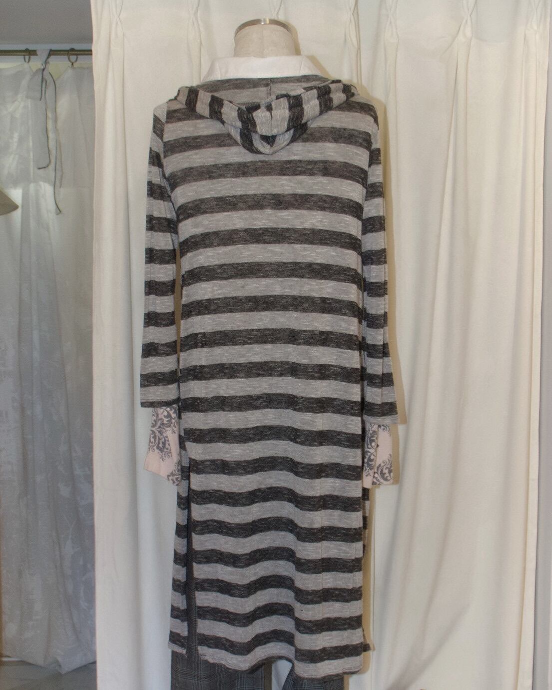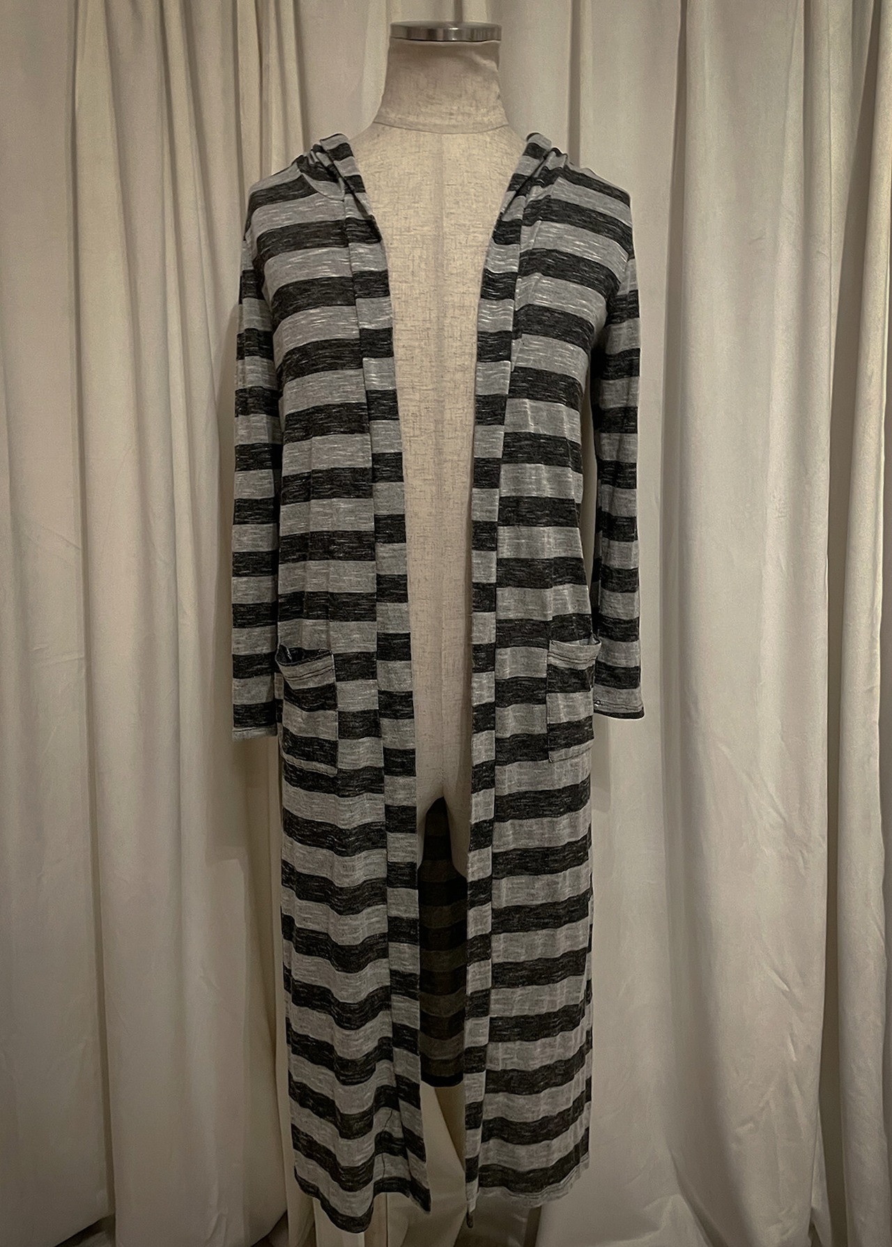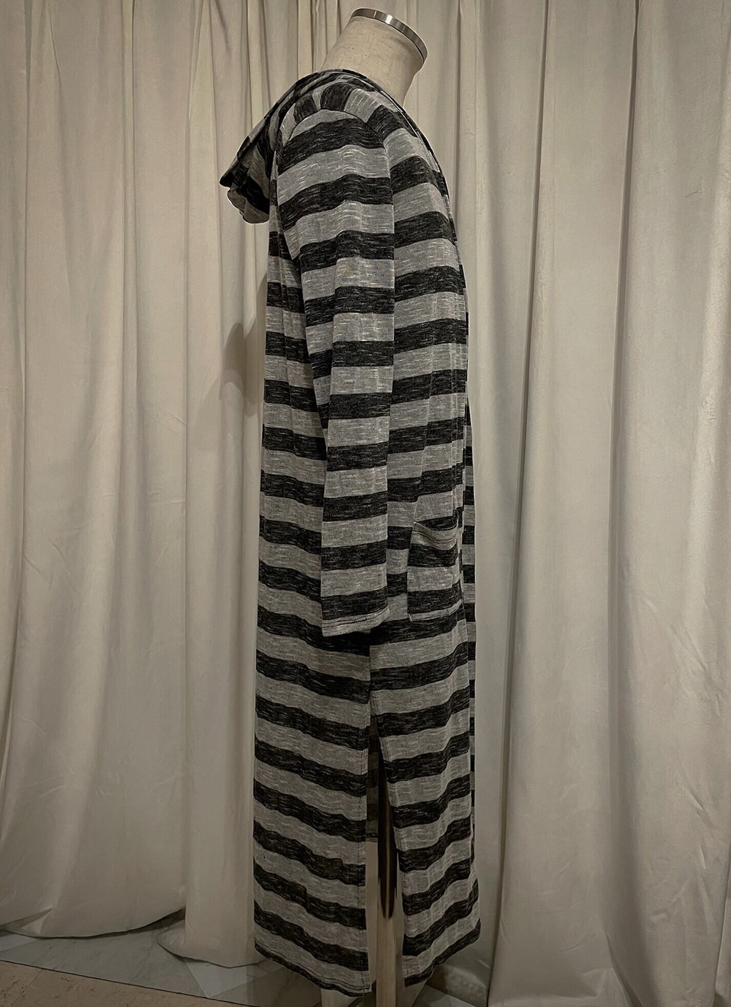 Light Gray Stripe Hood Long Tee