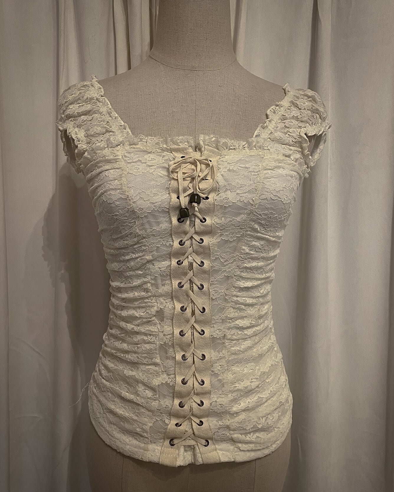 Lace Up Fit Cream Camisole