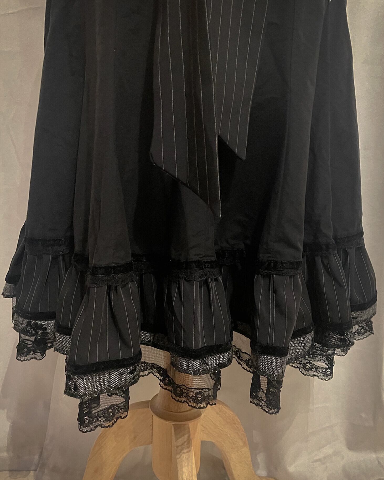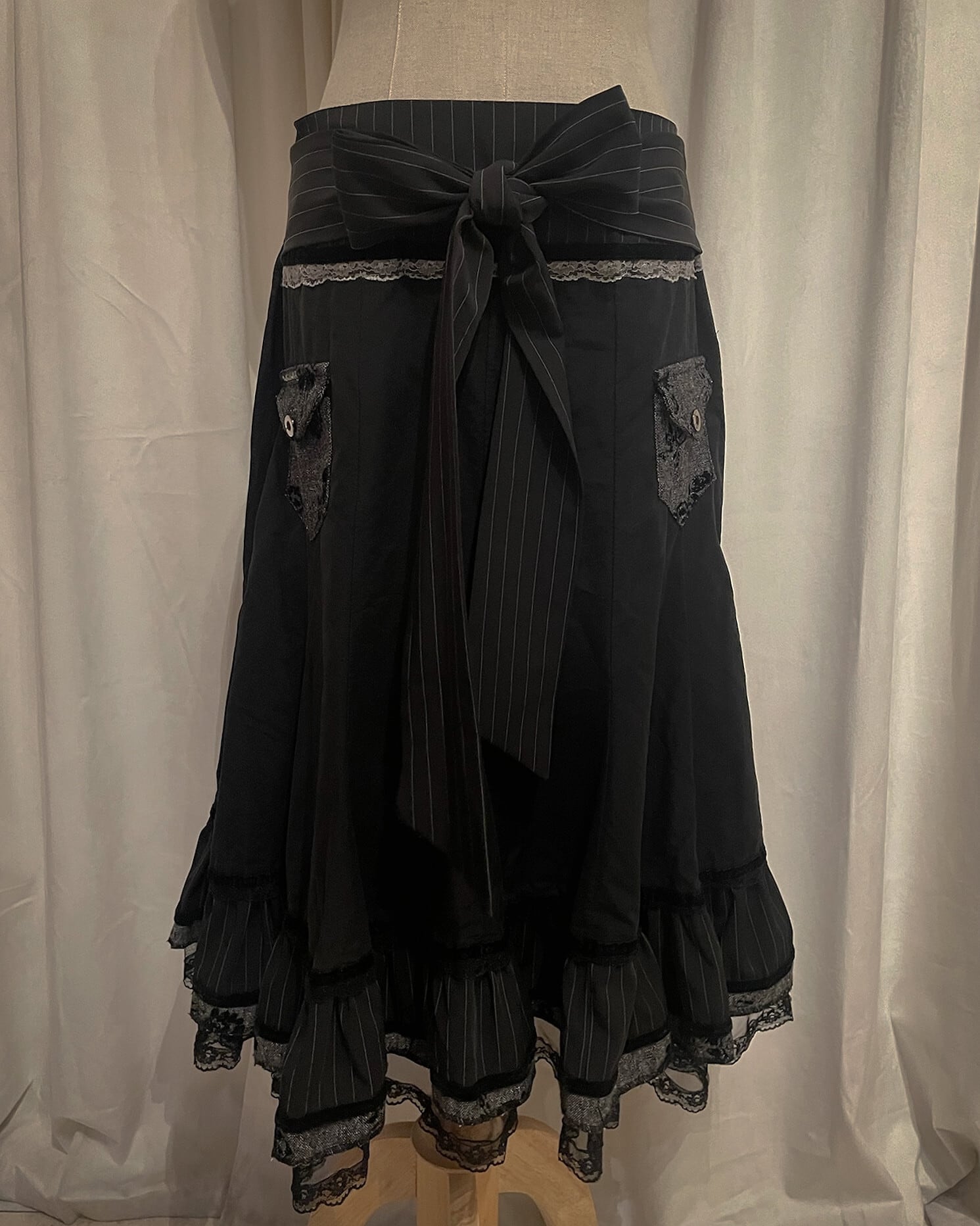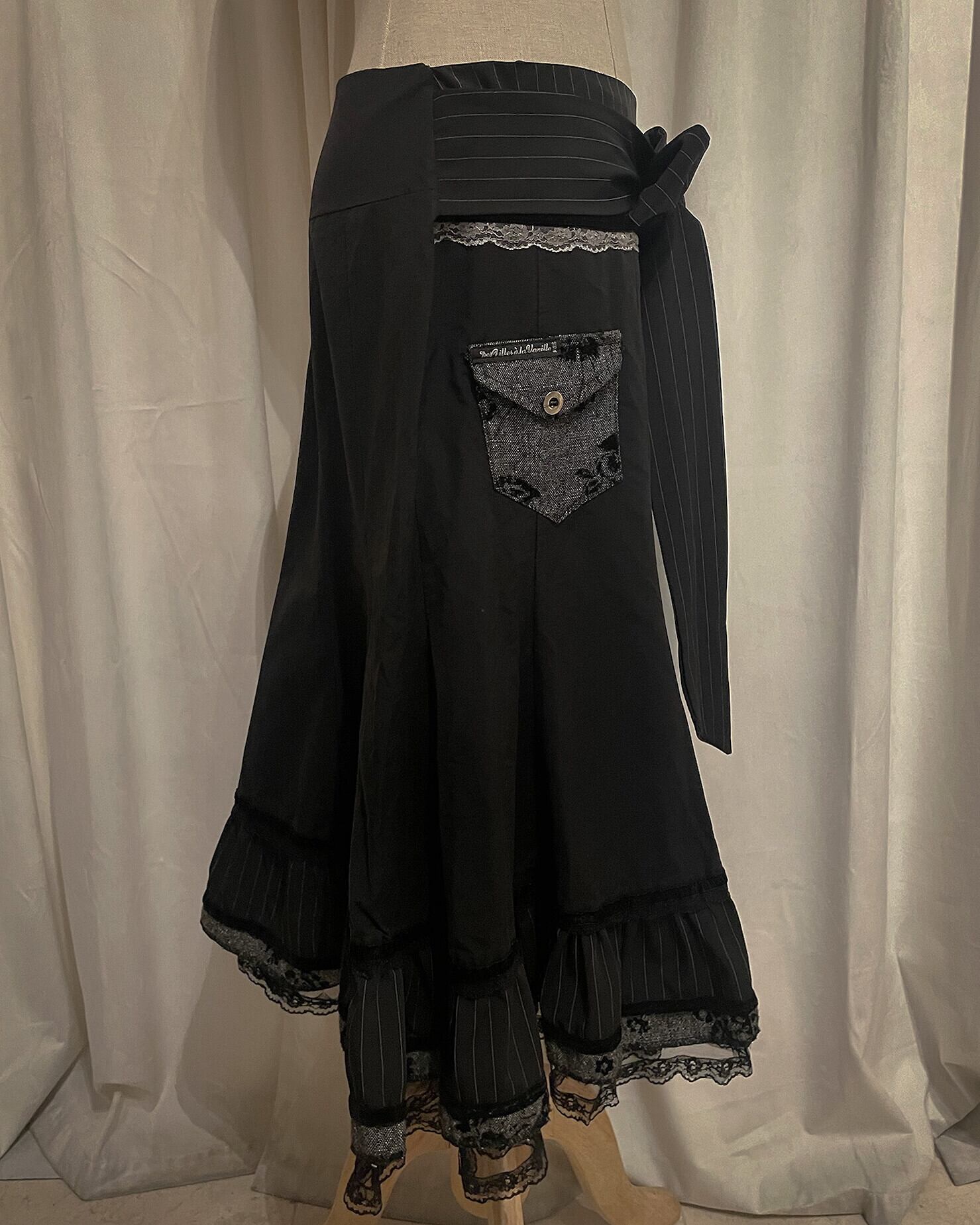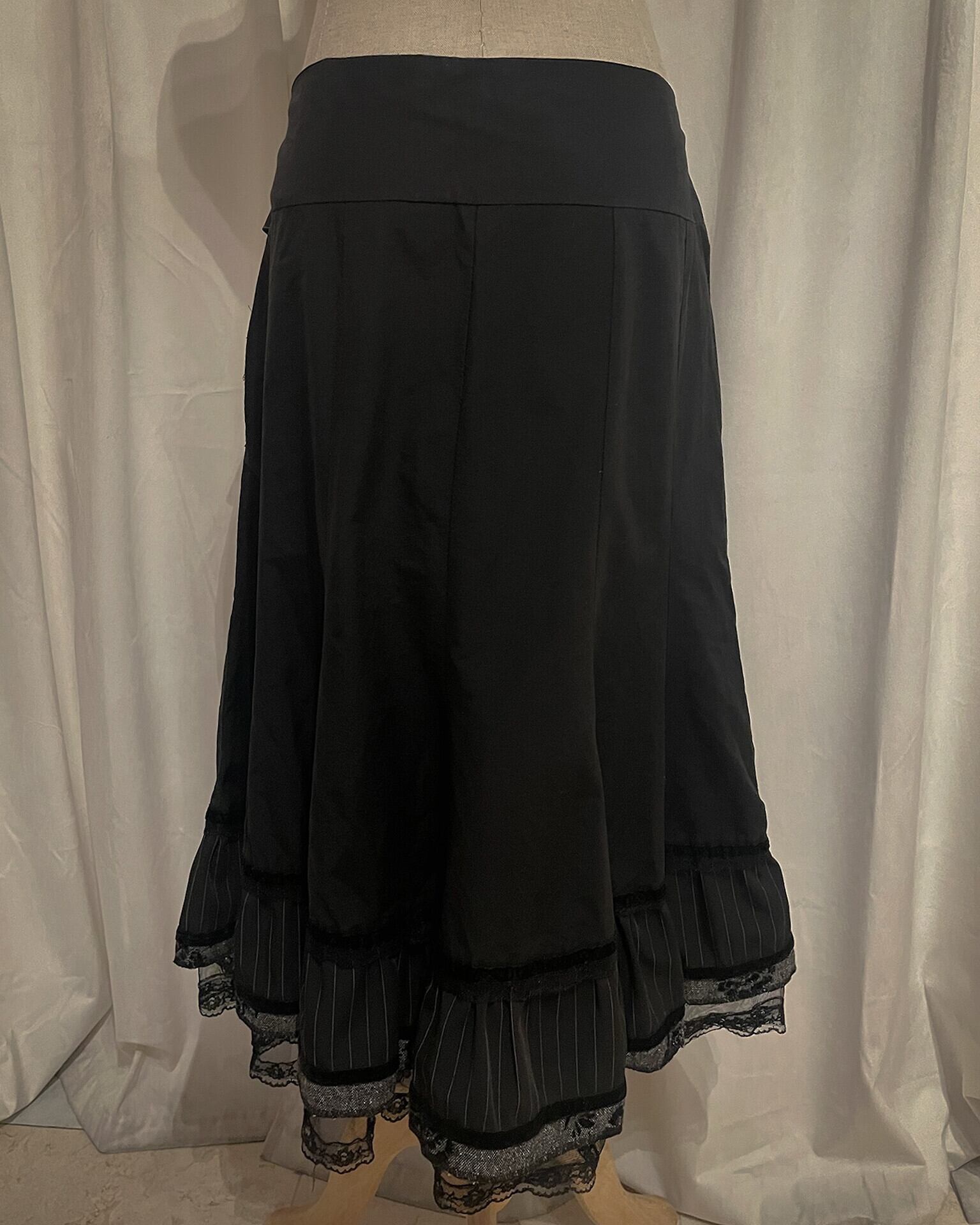 [Paris] Ribbon Stripe Europe Flare Black Skirt