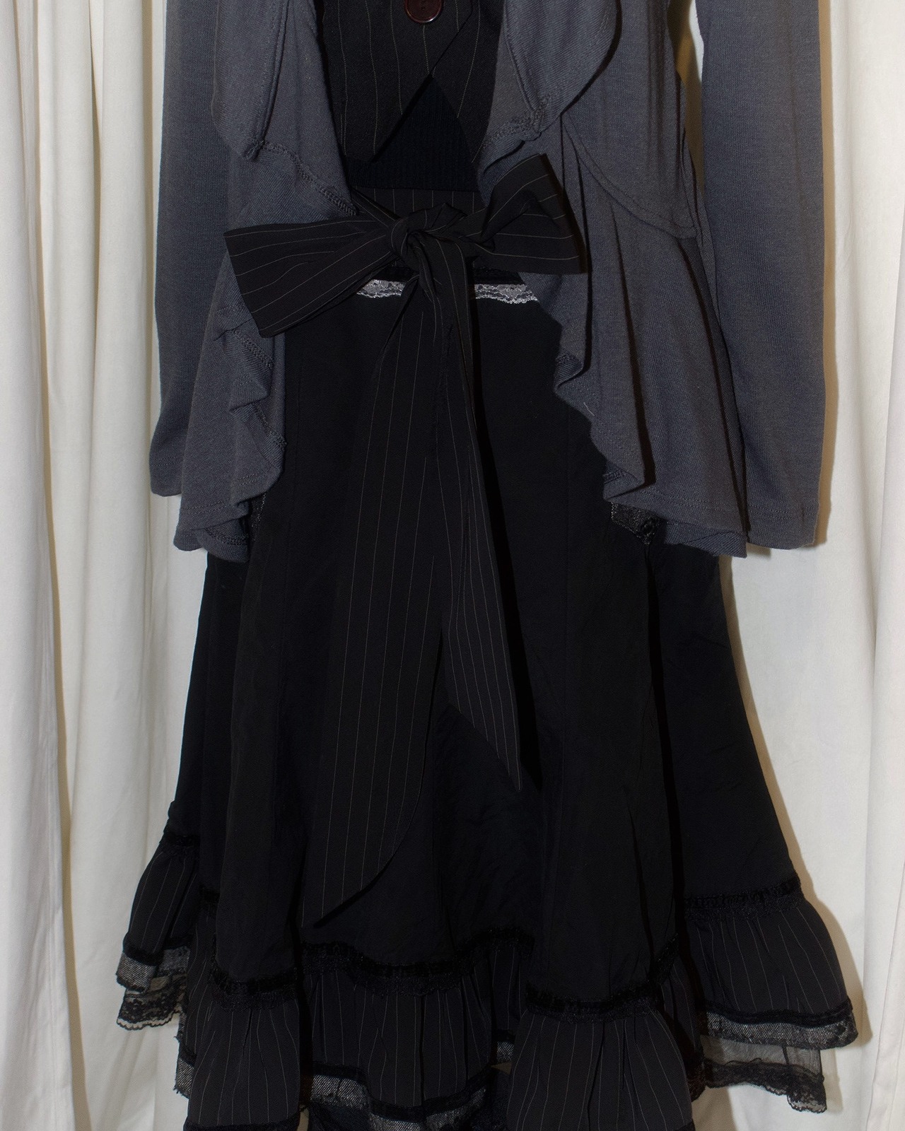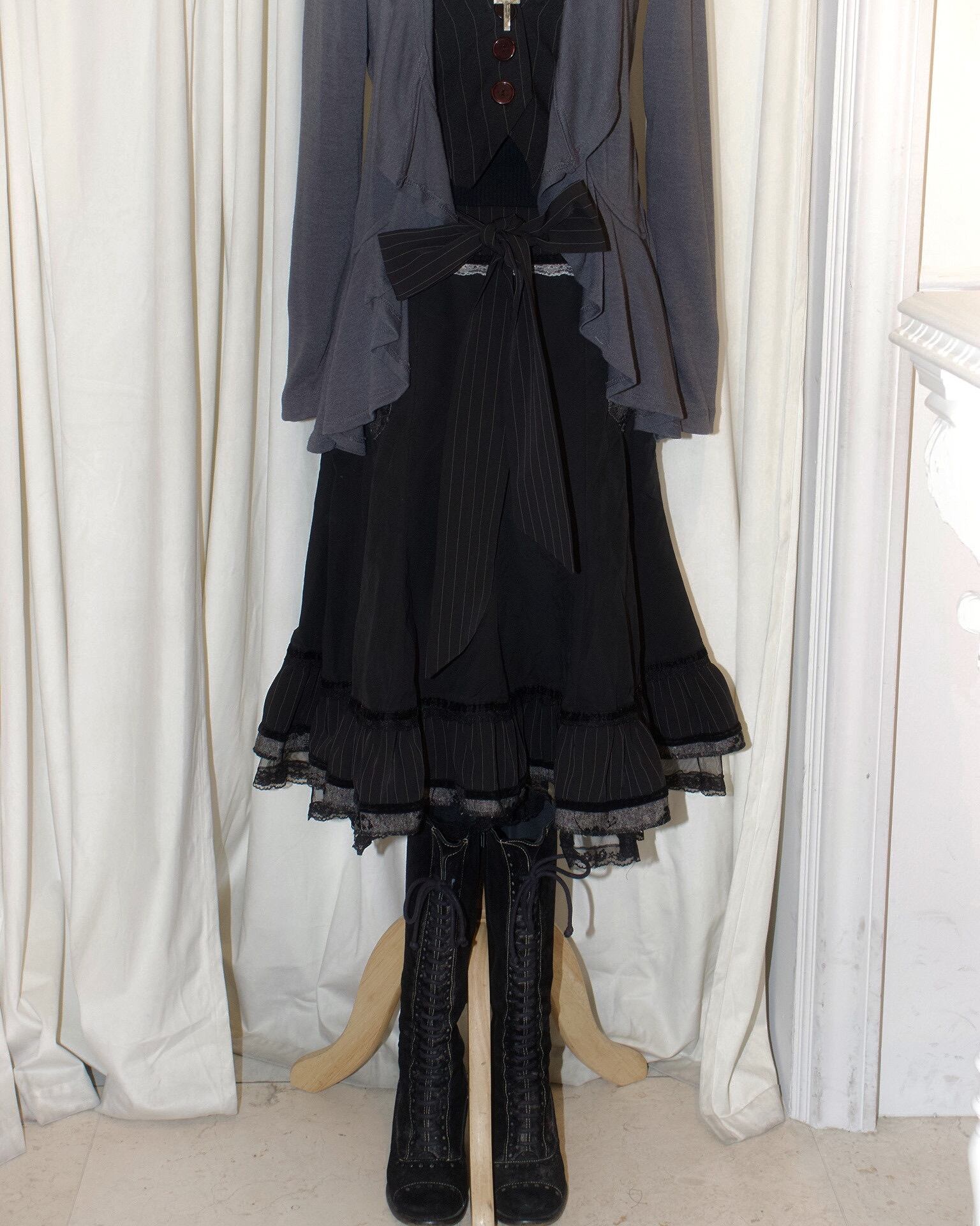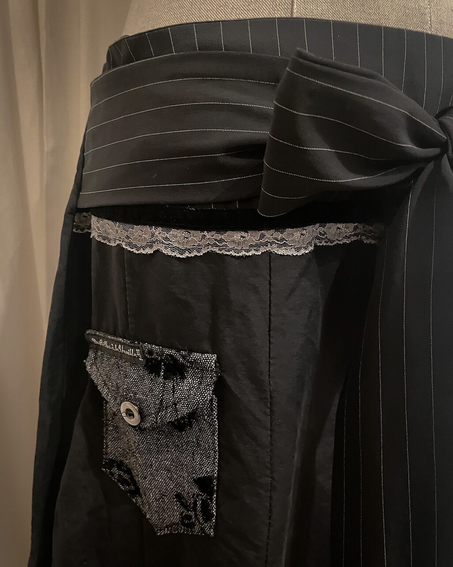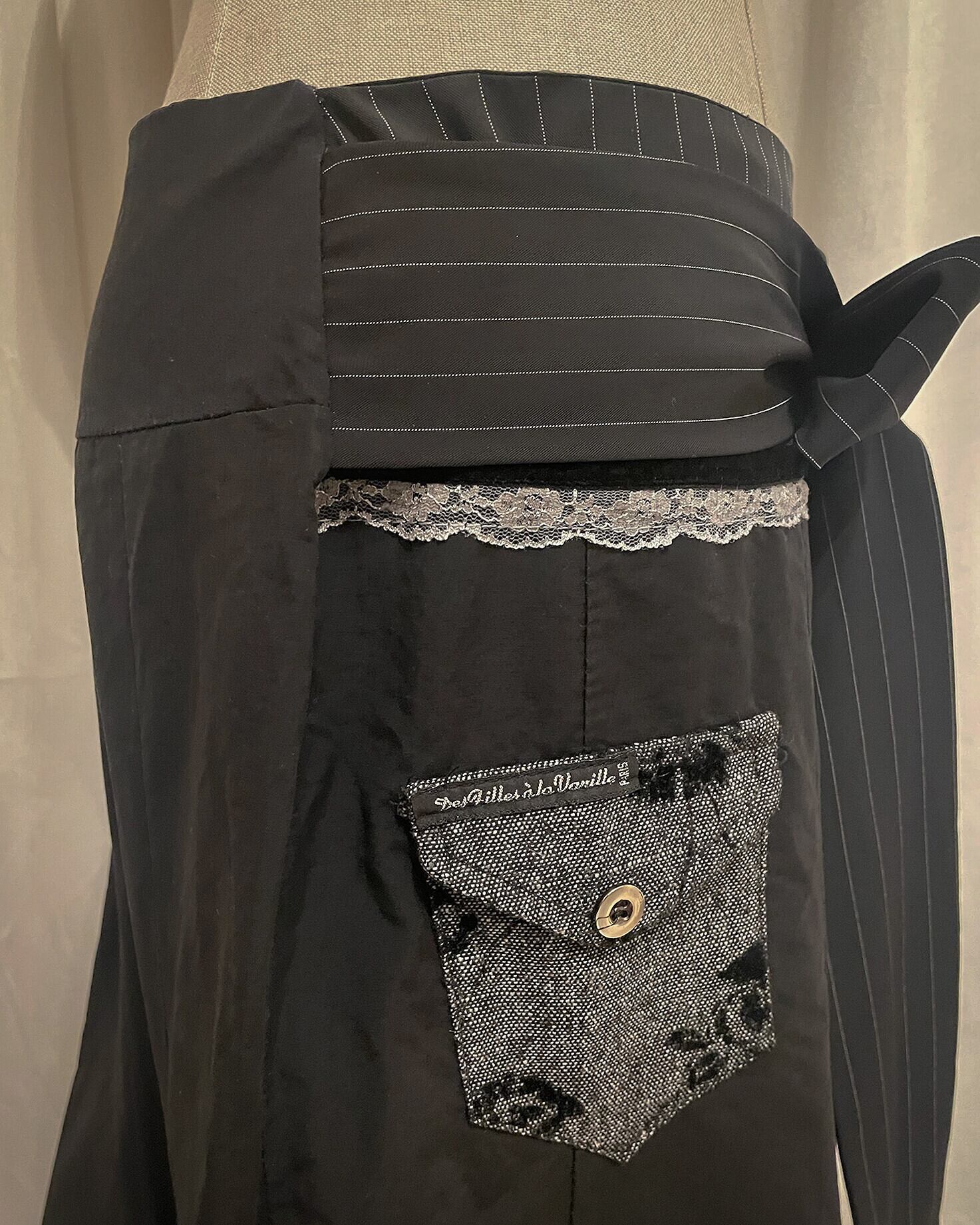 [Paris] Ribbon Stripe Europe Flare Black Skirt