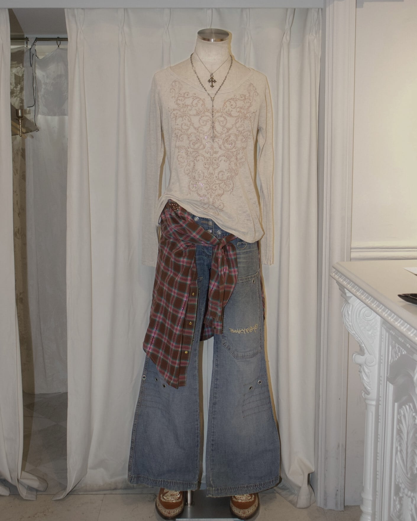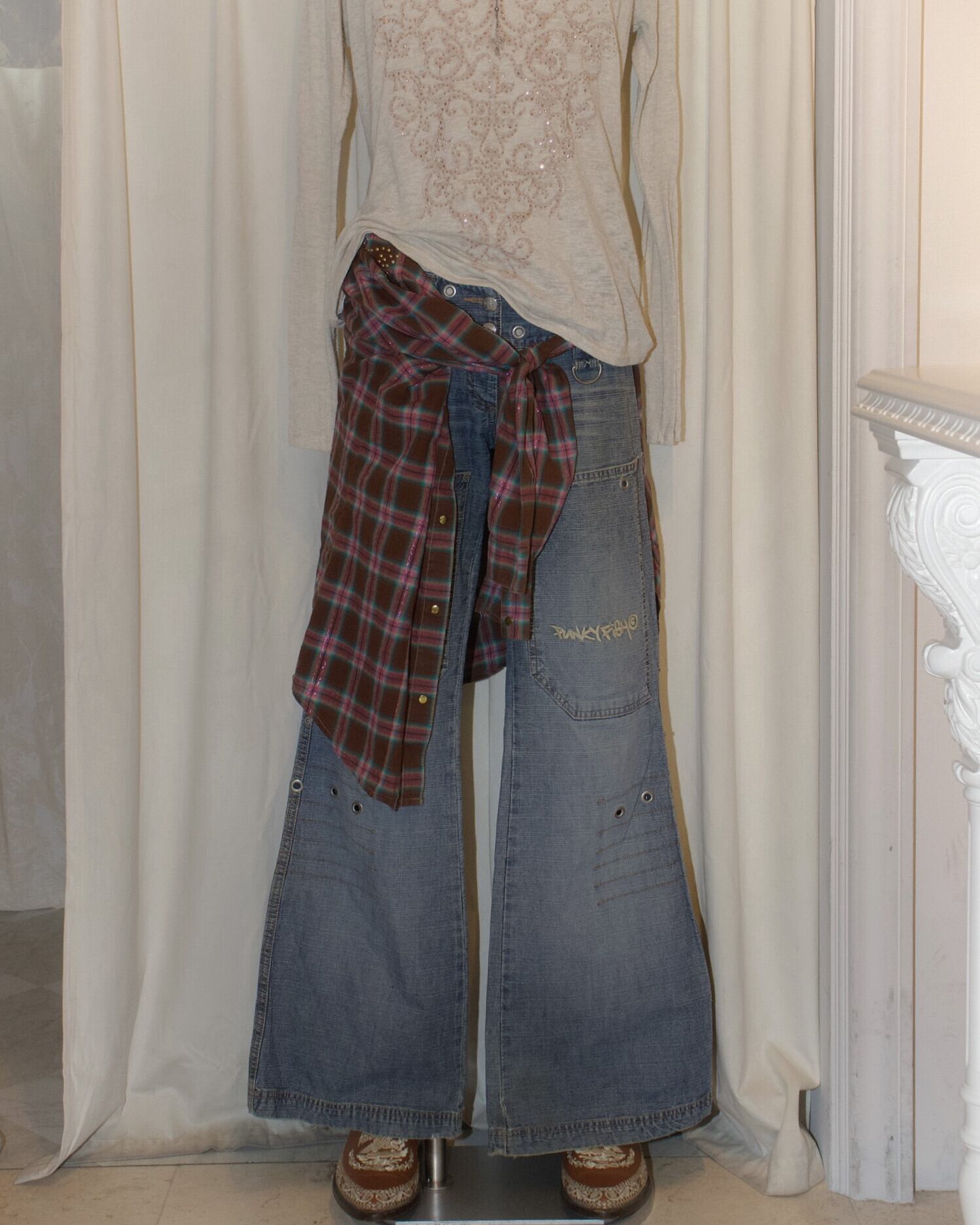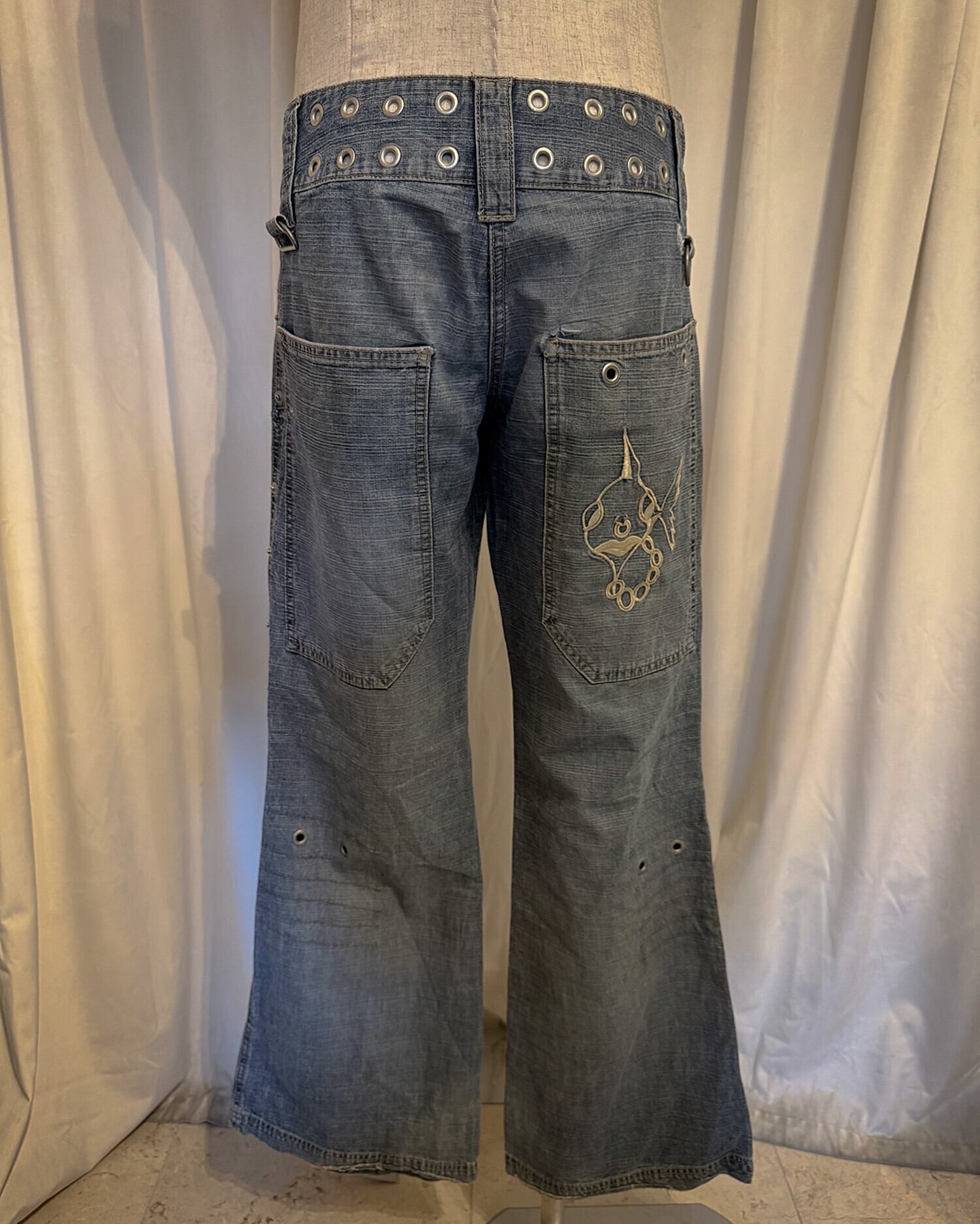 Low Rise Studs Design Denim Pants