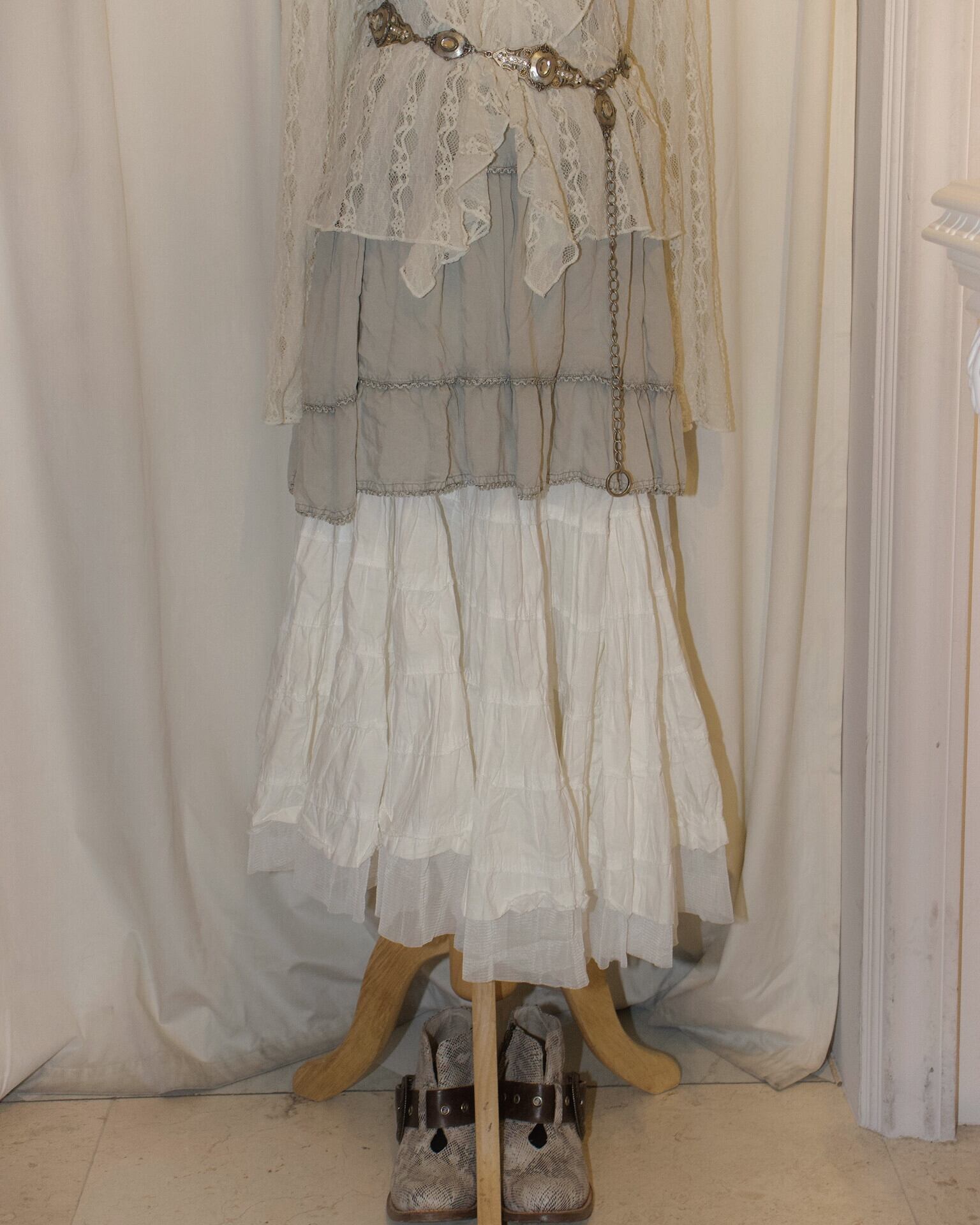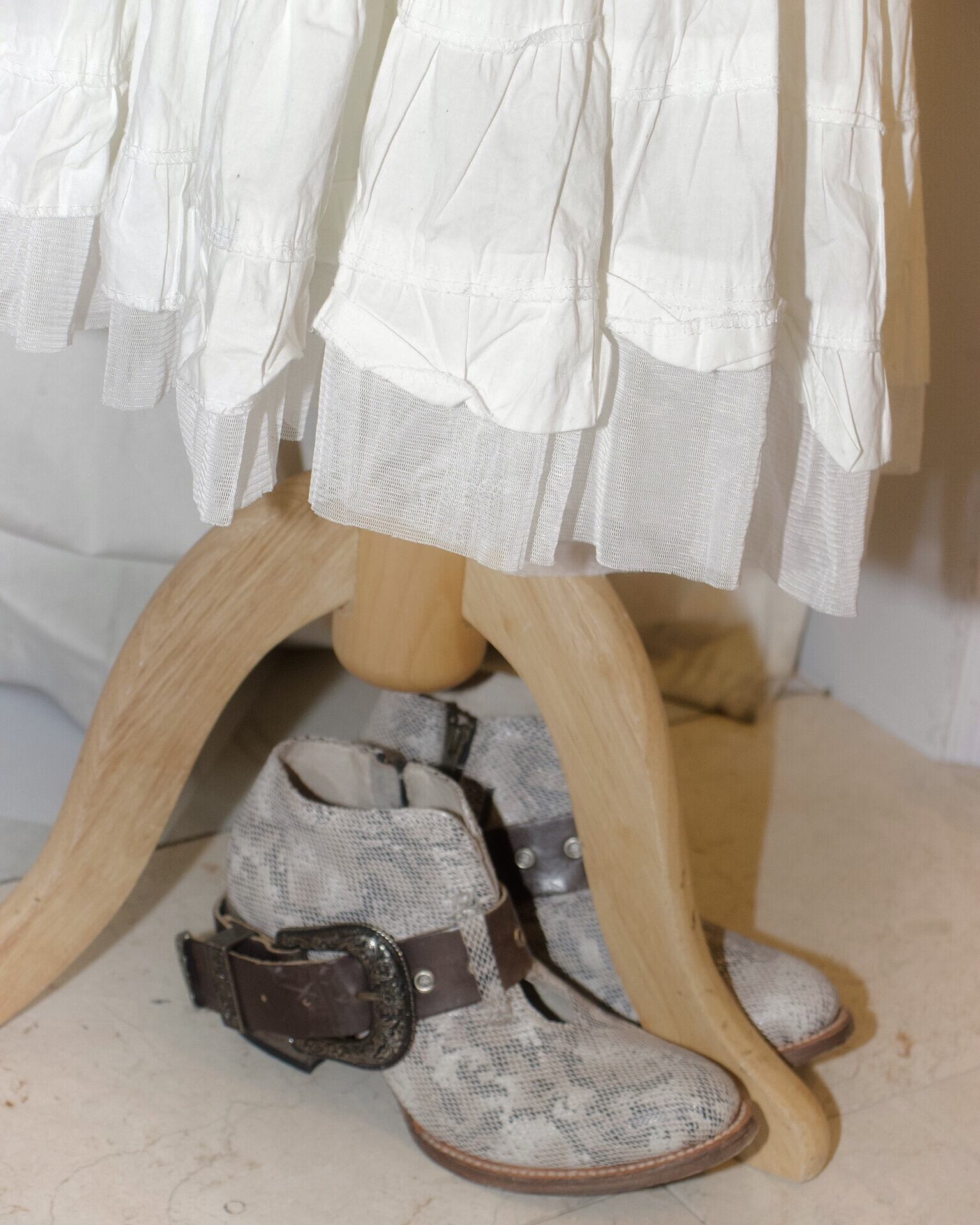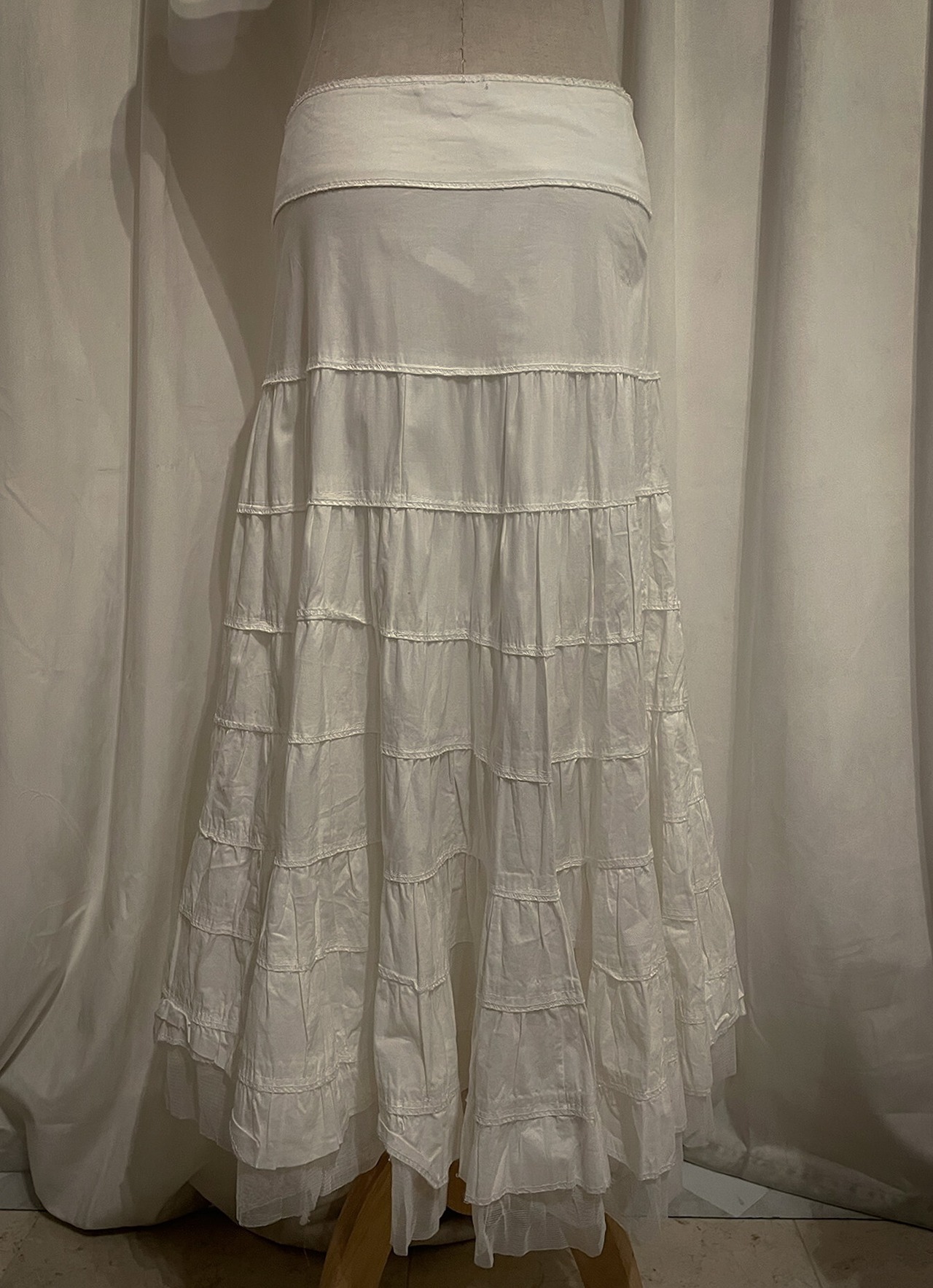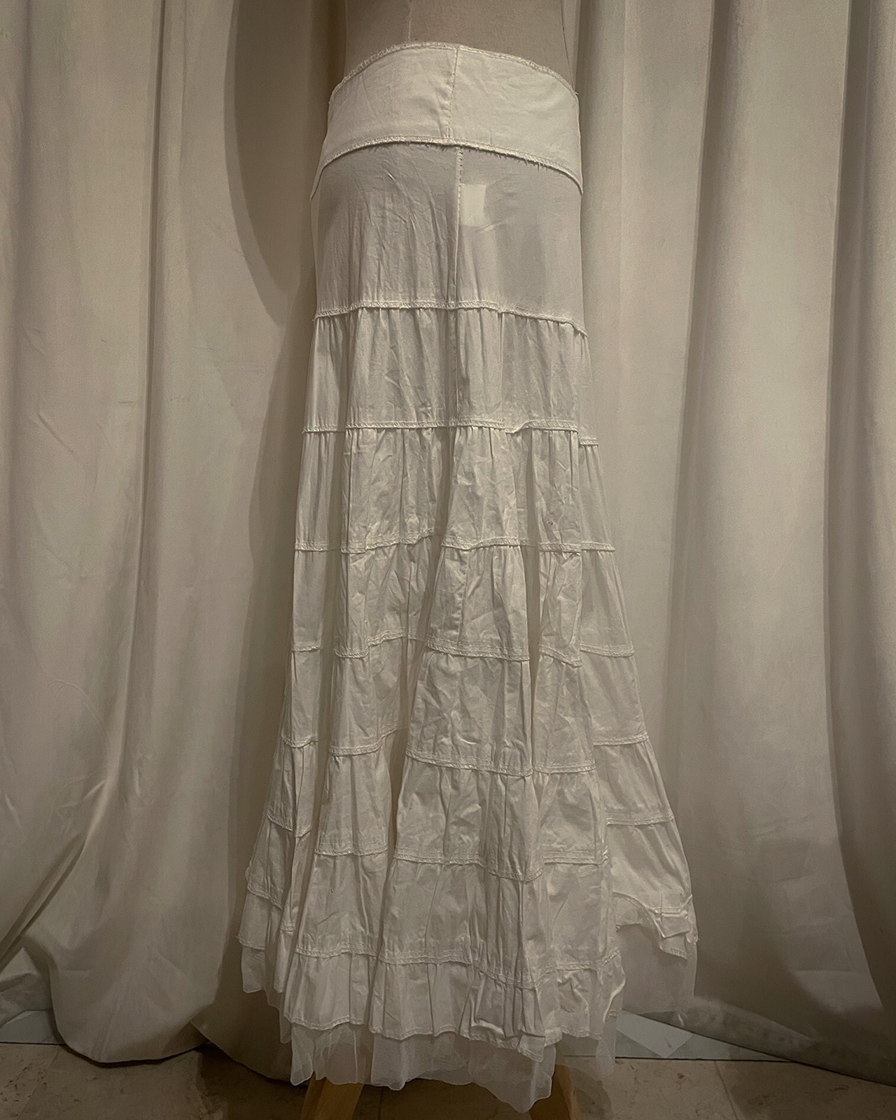 [France] Flare White Volume Low Rise Skirt