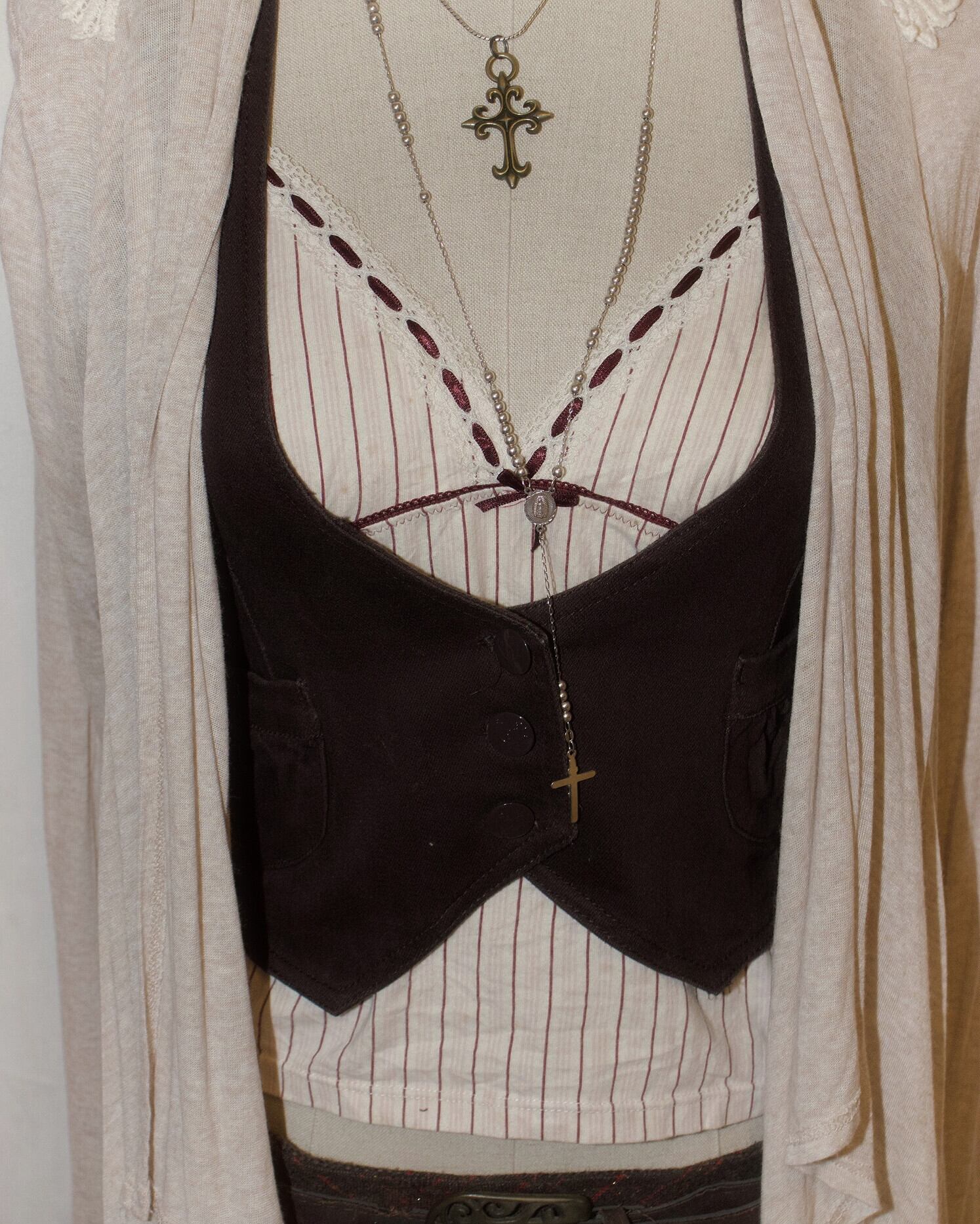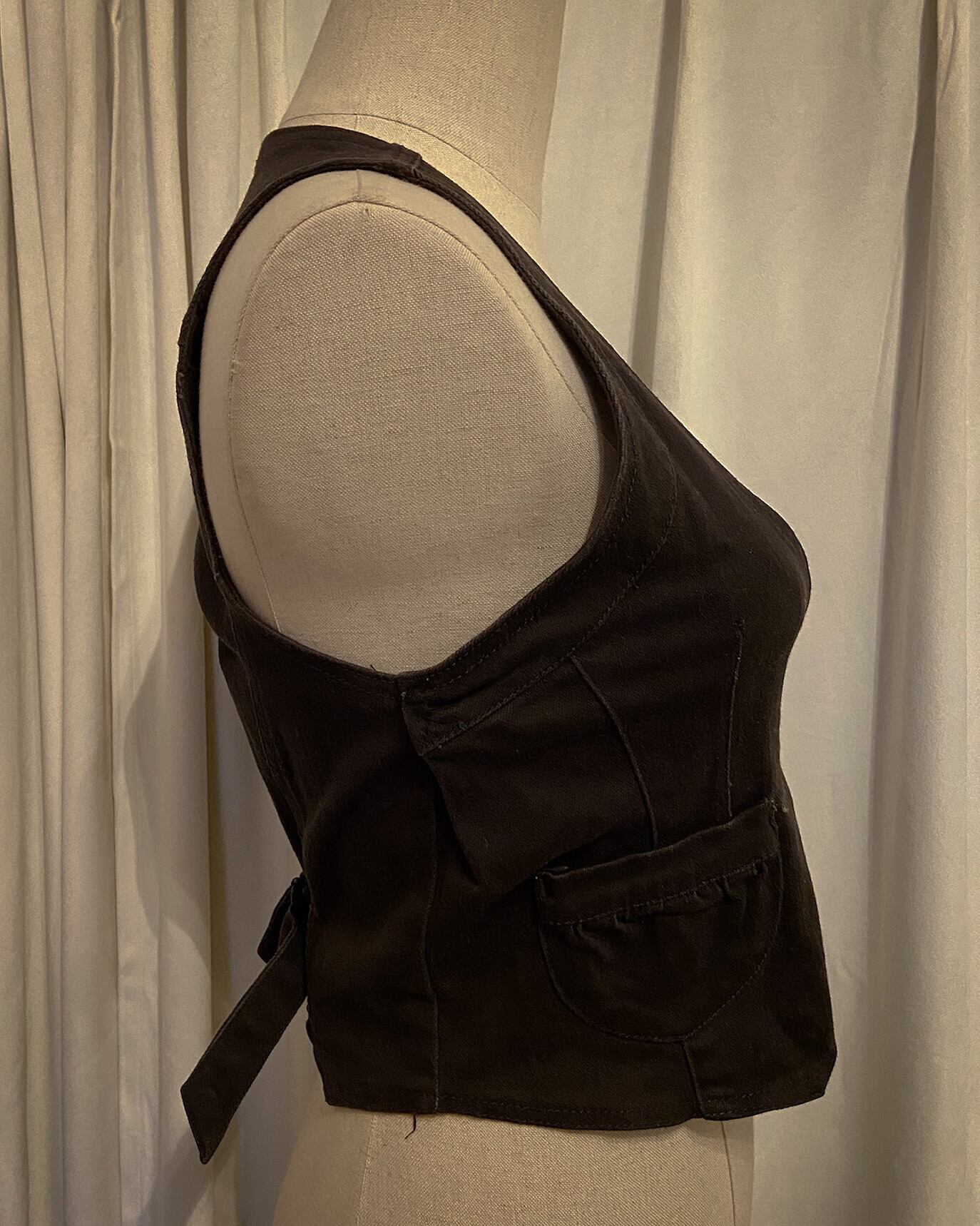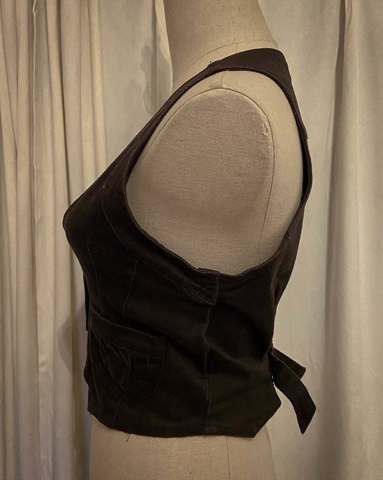 Brown Waist Shape Back Belted Vest