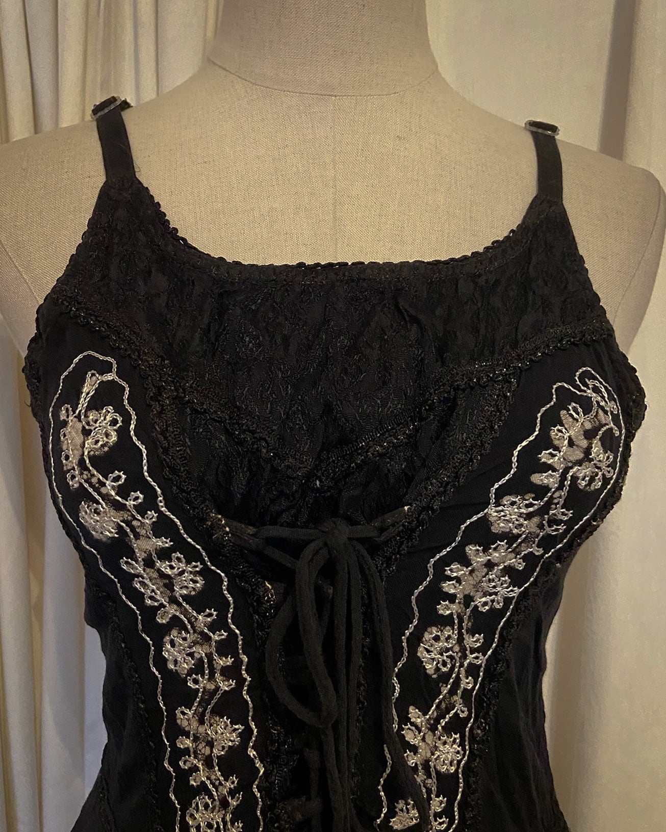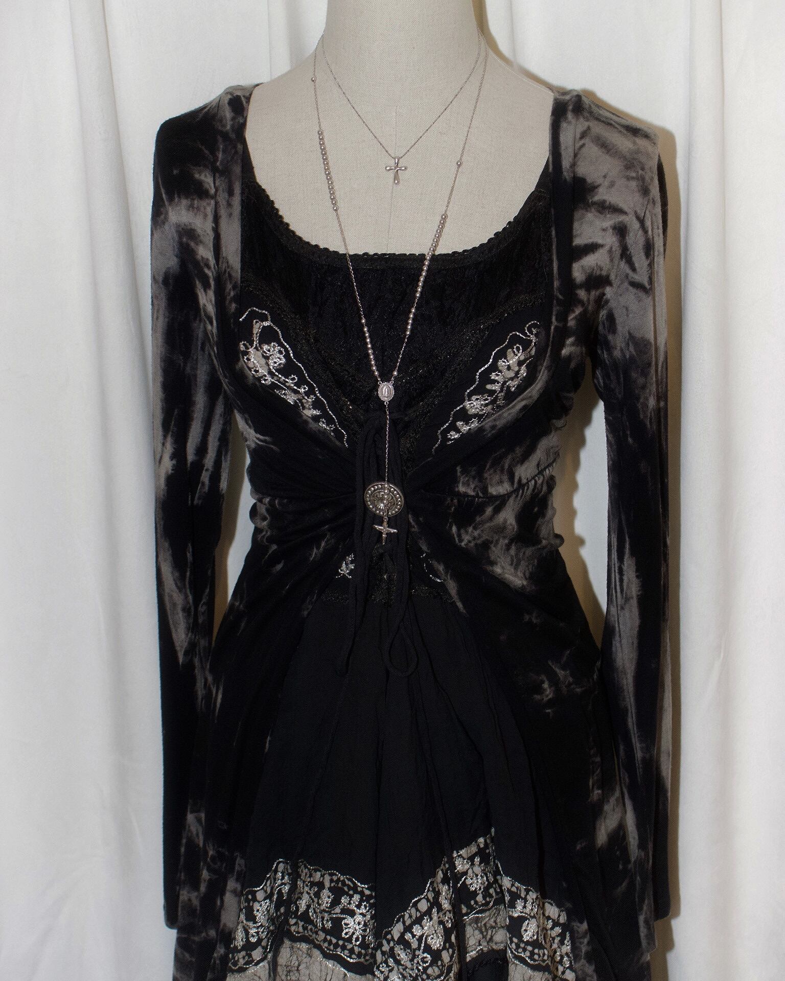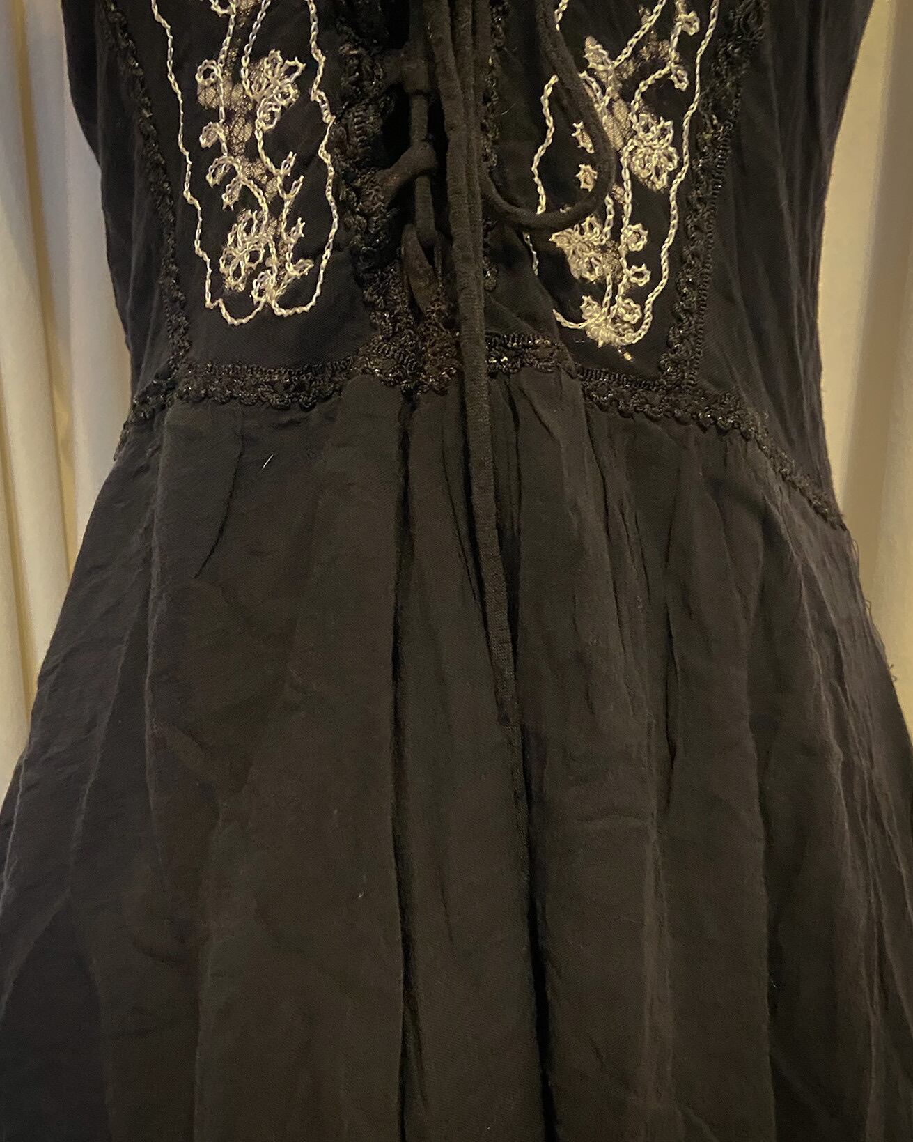 Asymmetry Ethnic Embroidered Black Dress