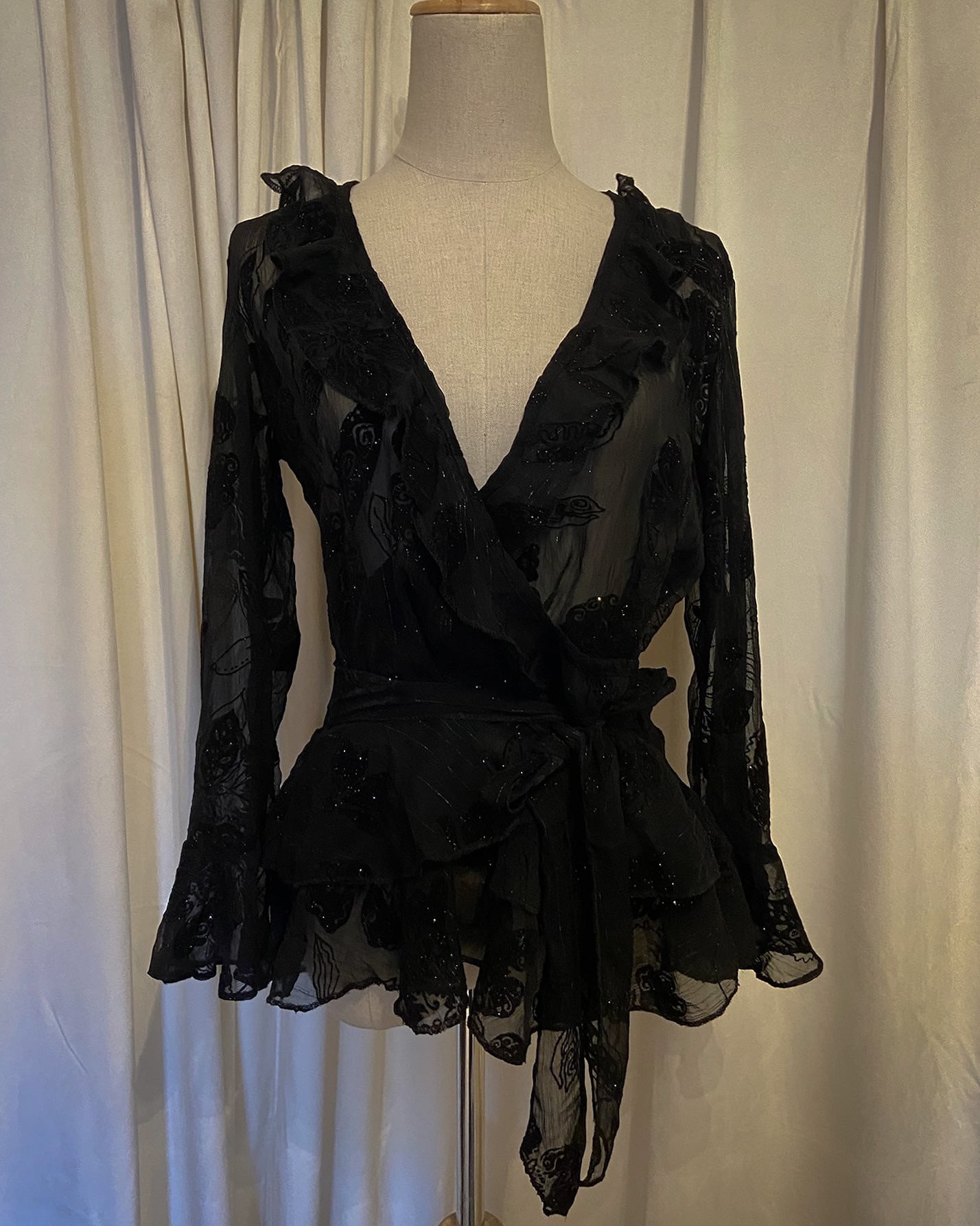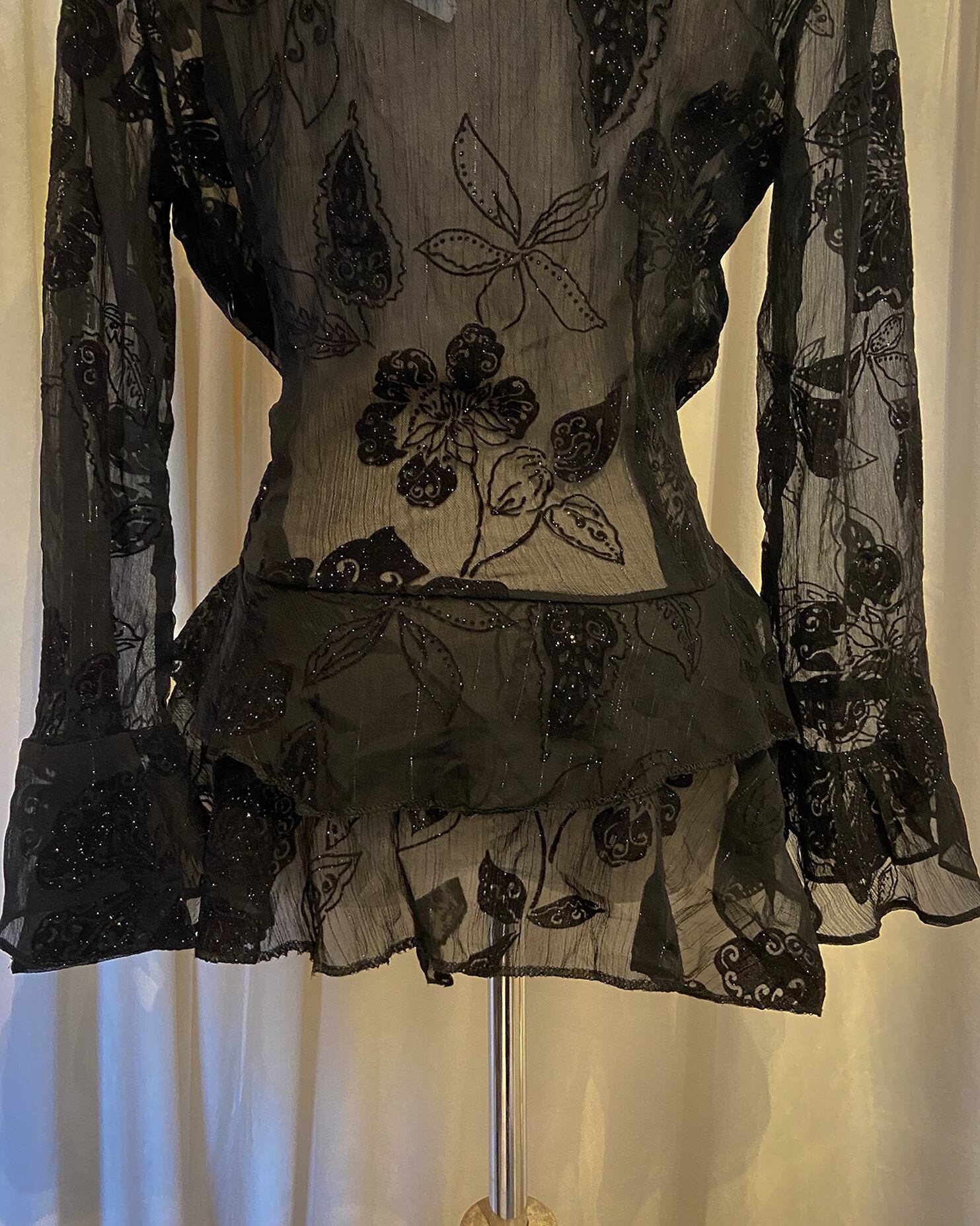 Gold Lame Embroidered Sheer Shirt