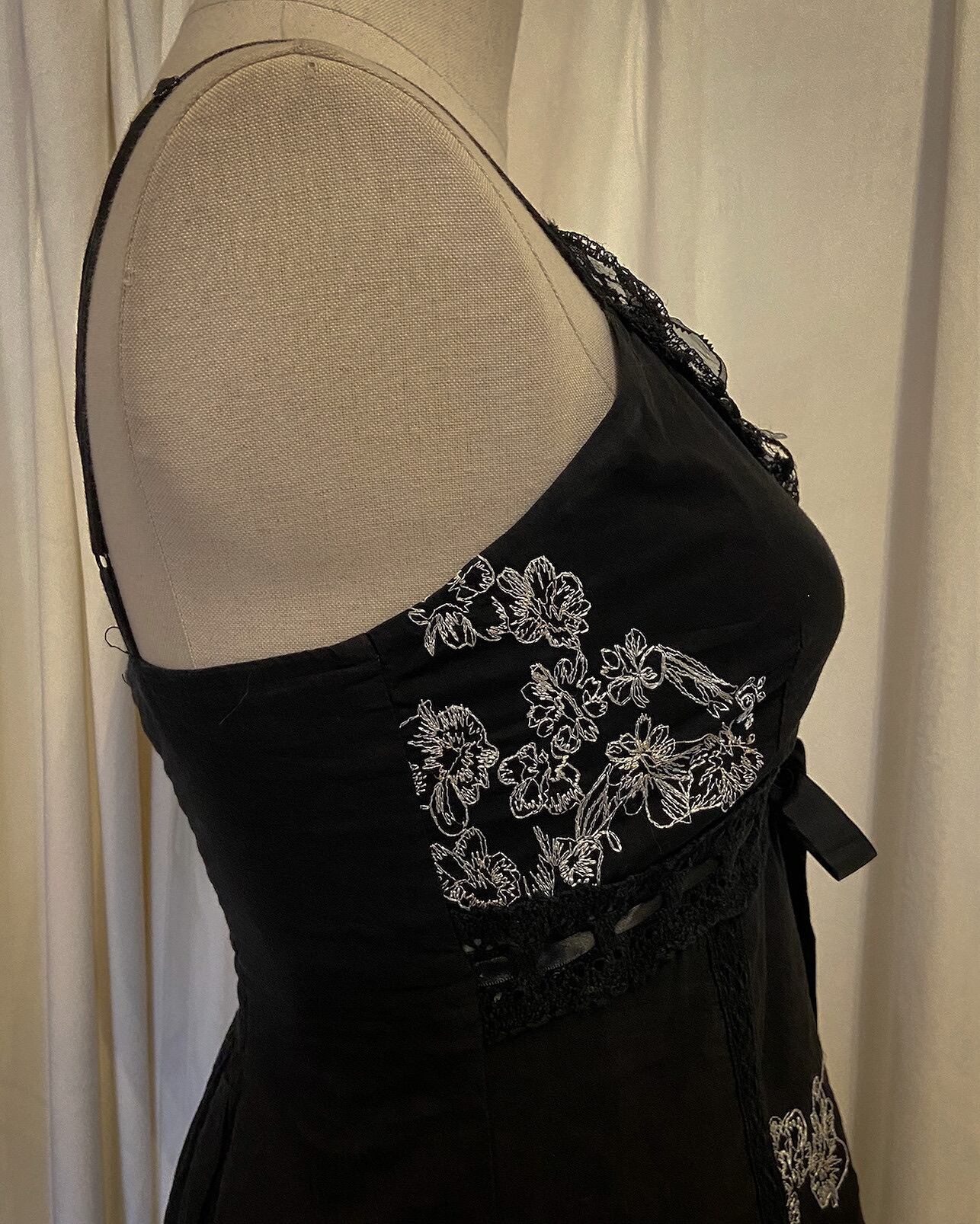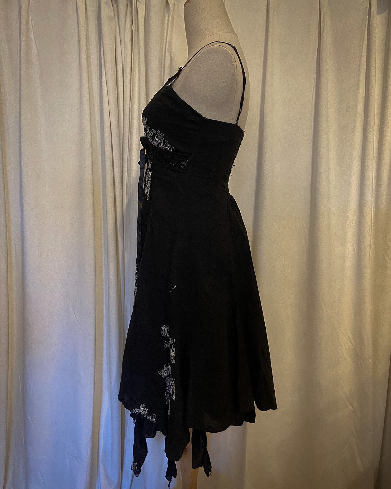 Embroidered Flower High Waist Asymmetry Dress