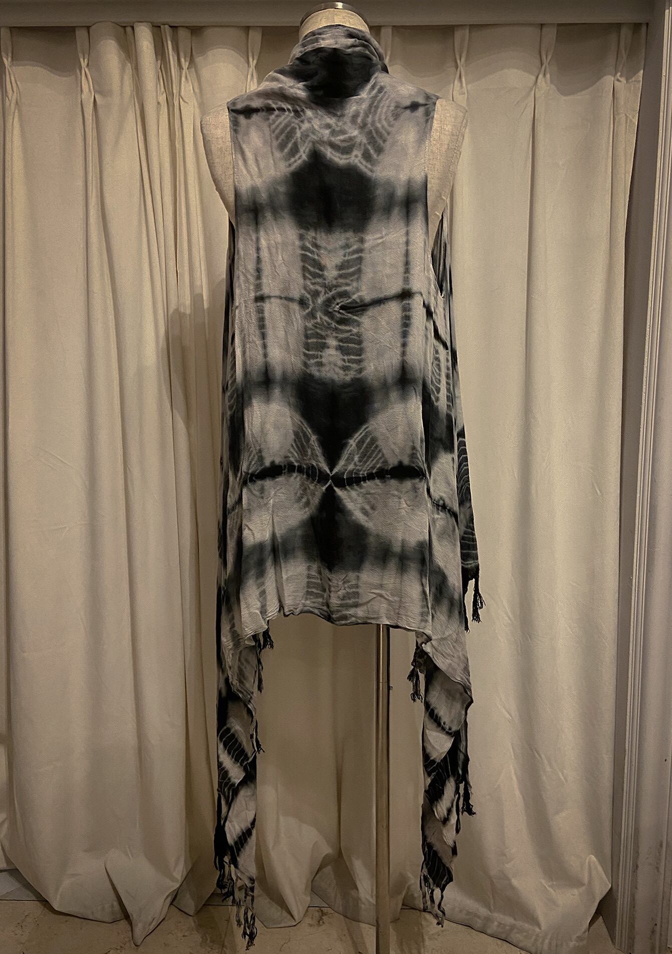 Long Tie Dye Fringe Blue Vest