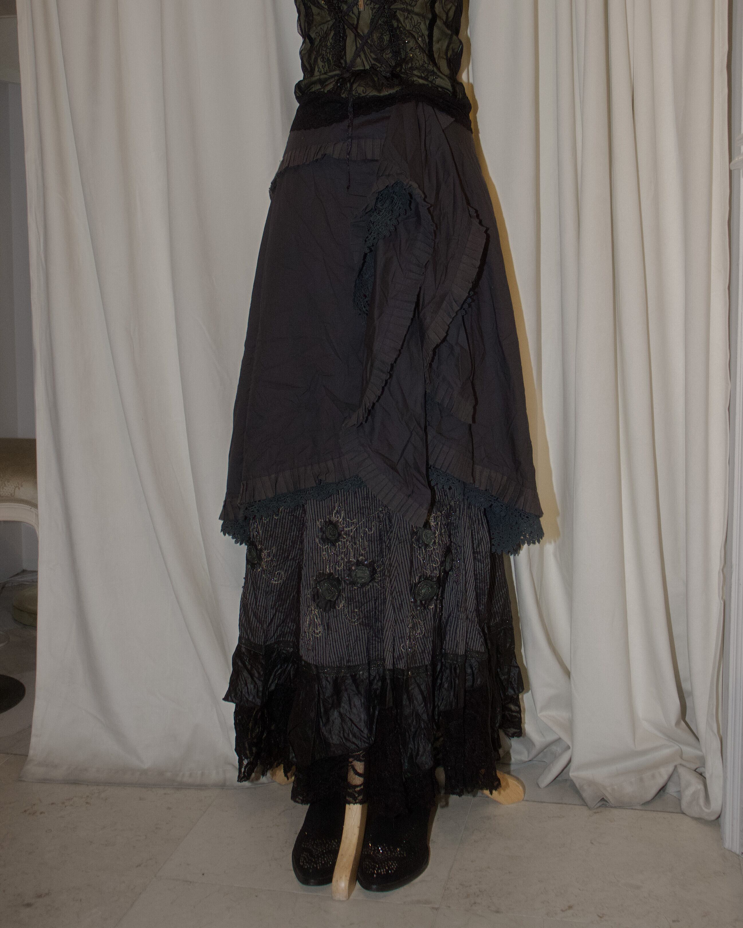Drape Lace Low Rise Dark Gray Skirt