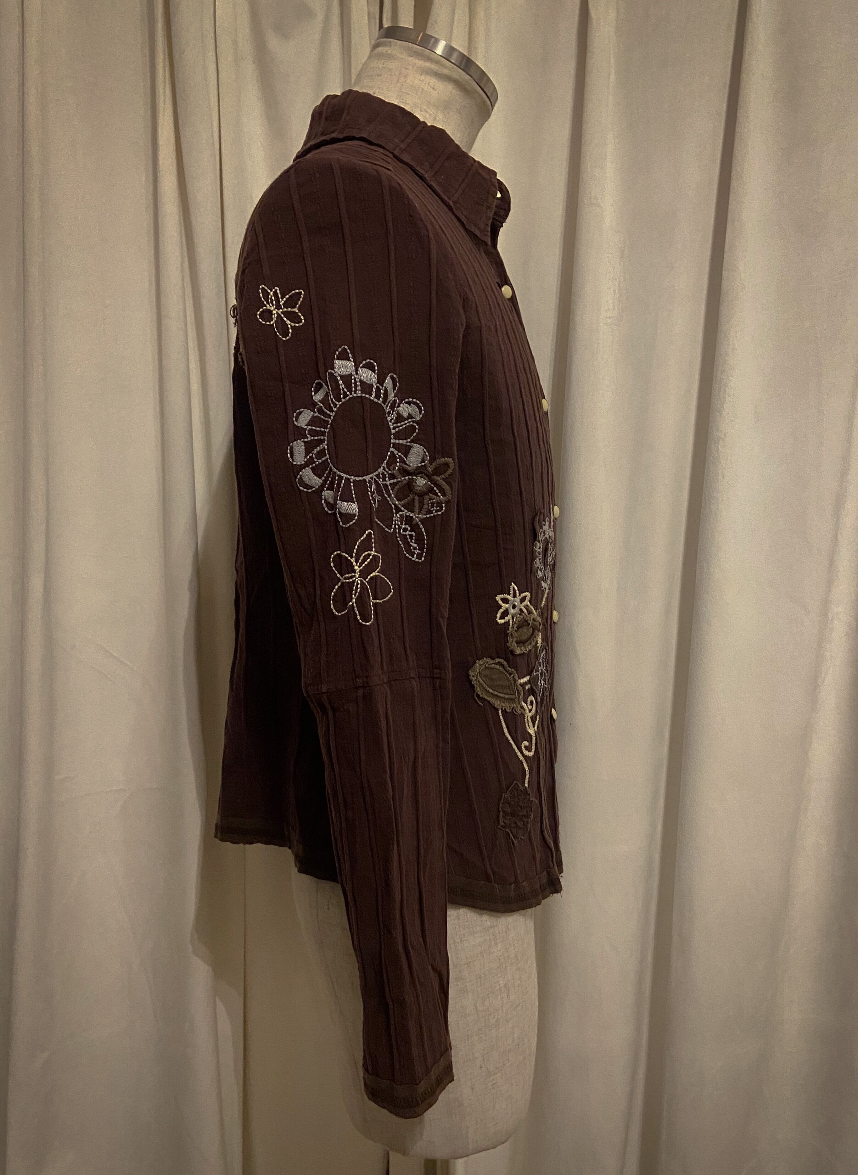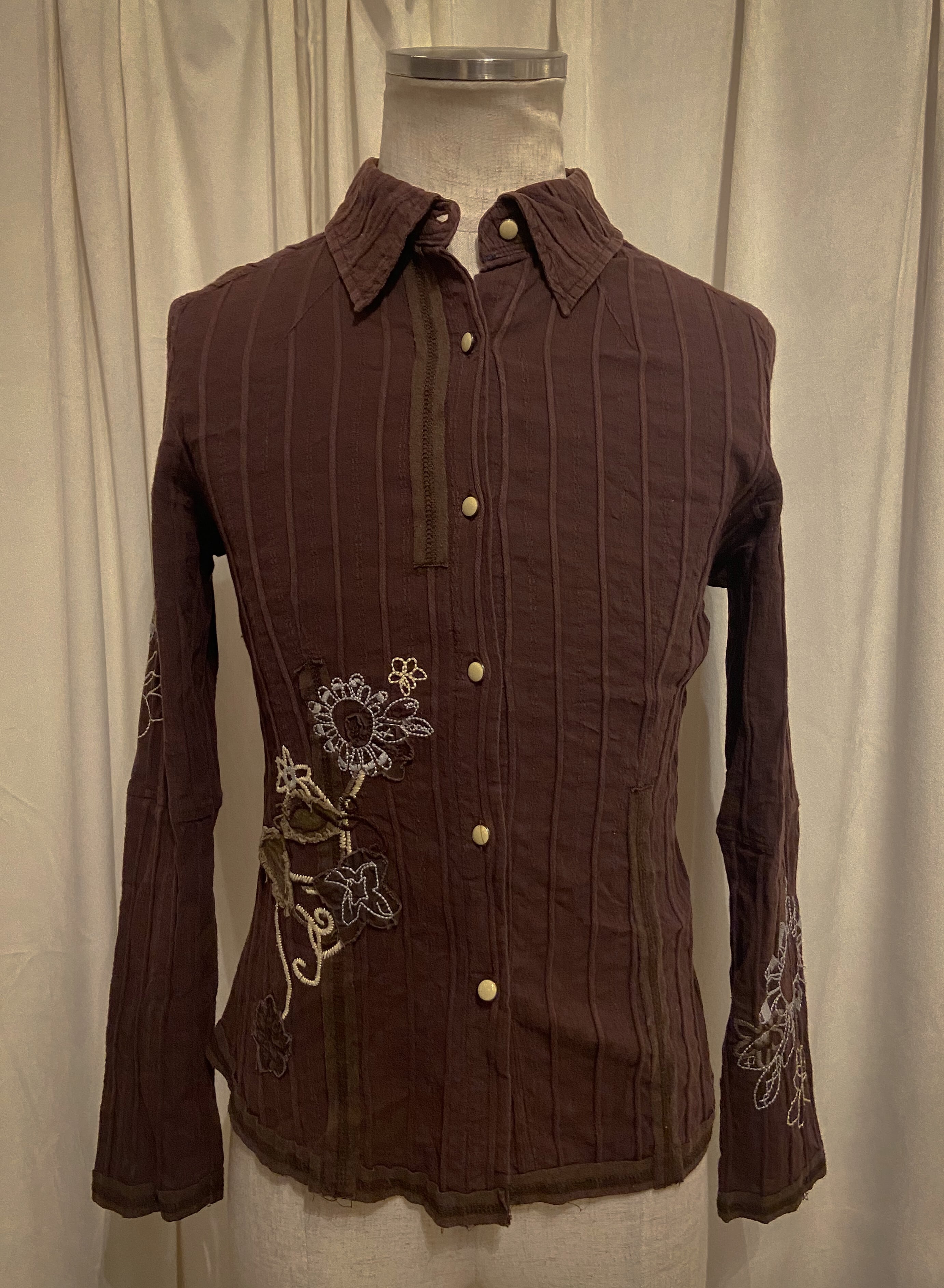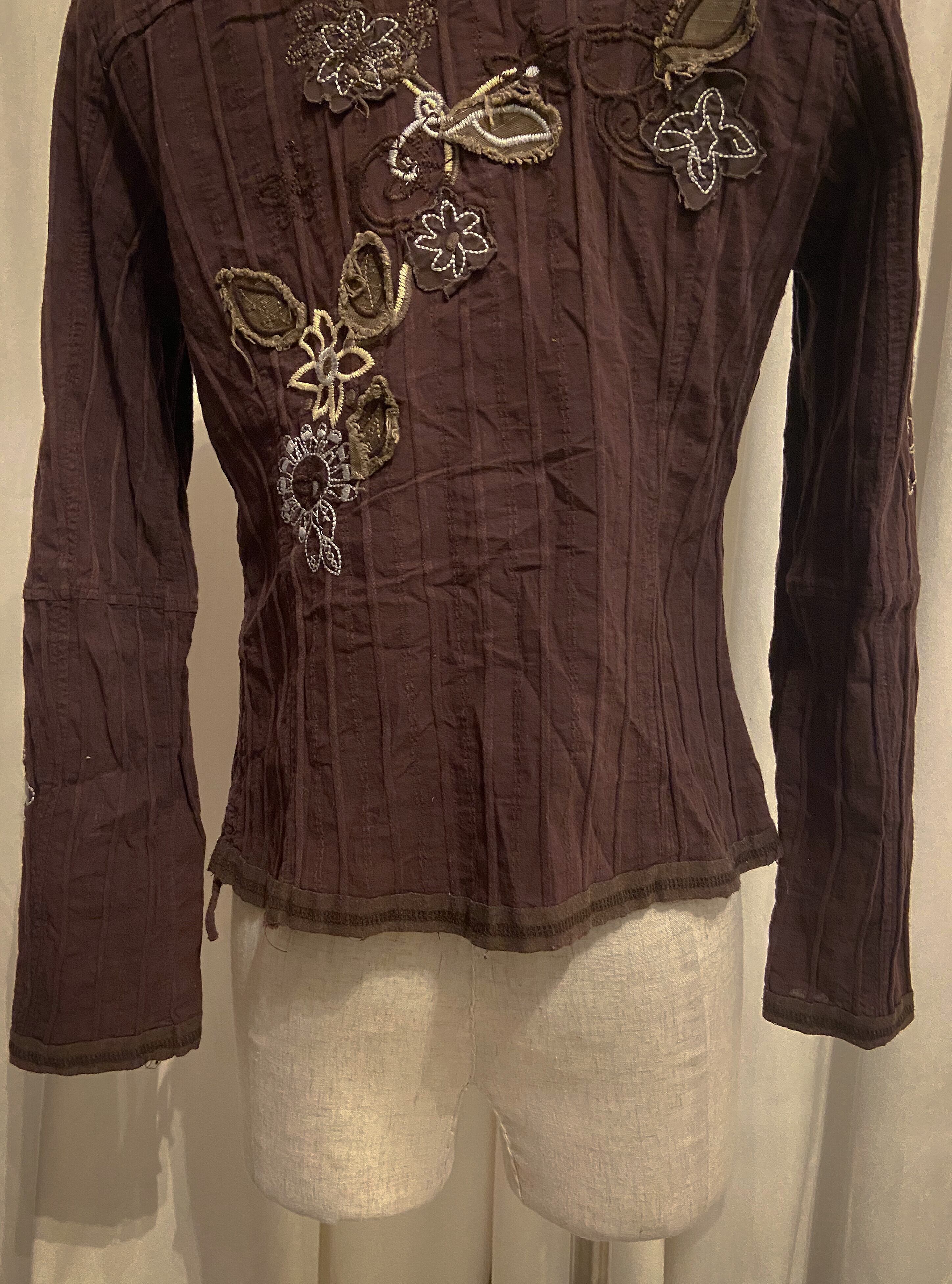 Tight Embroidered Brown Stripe Shirt