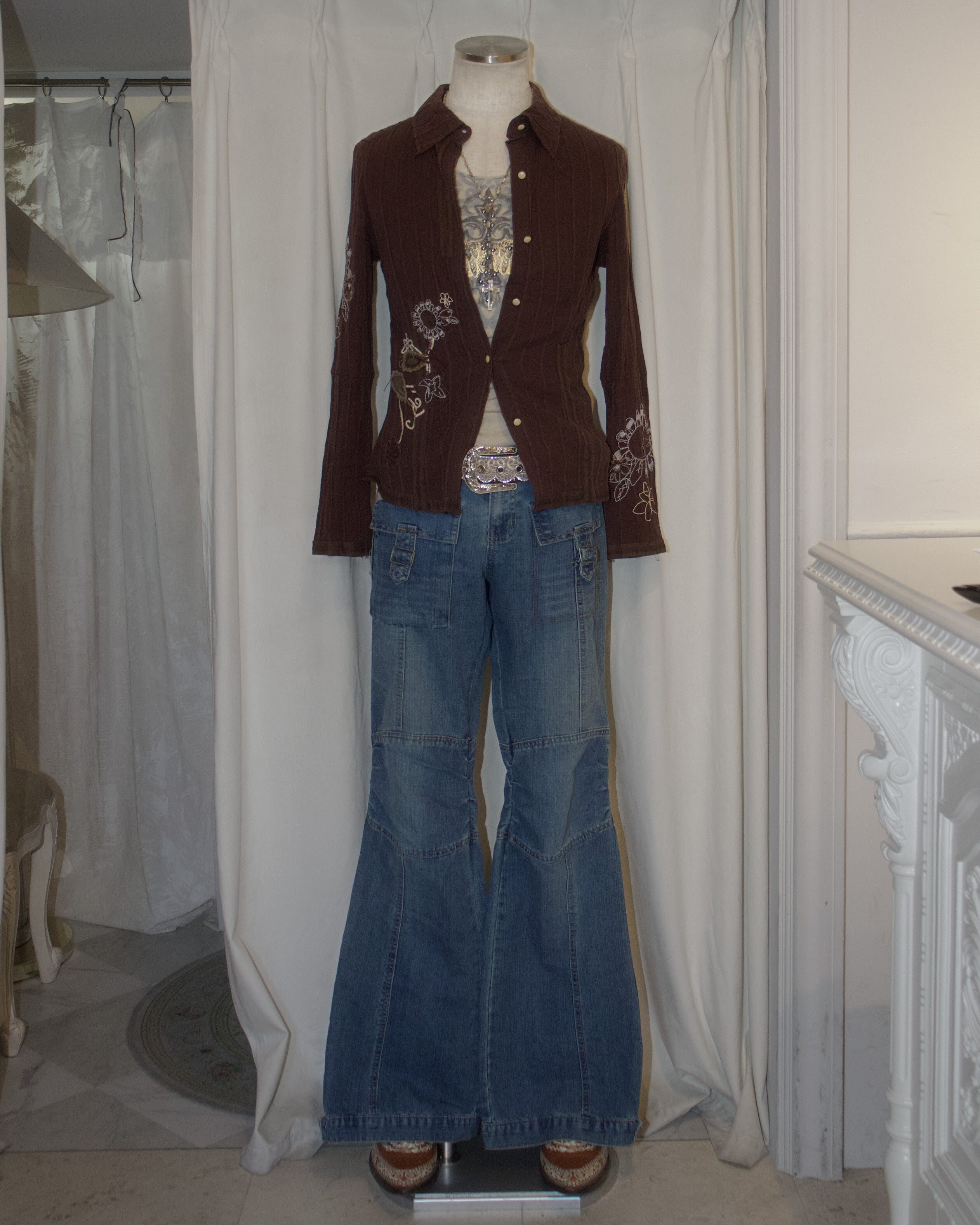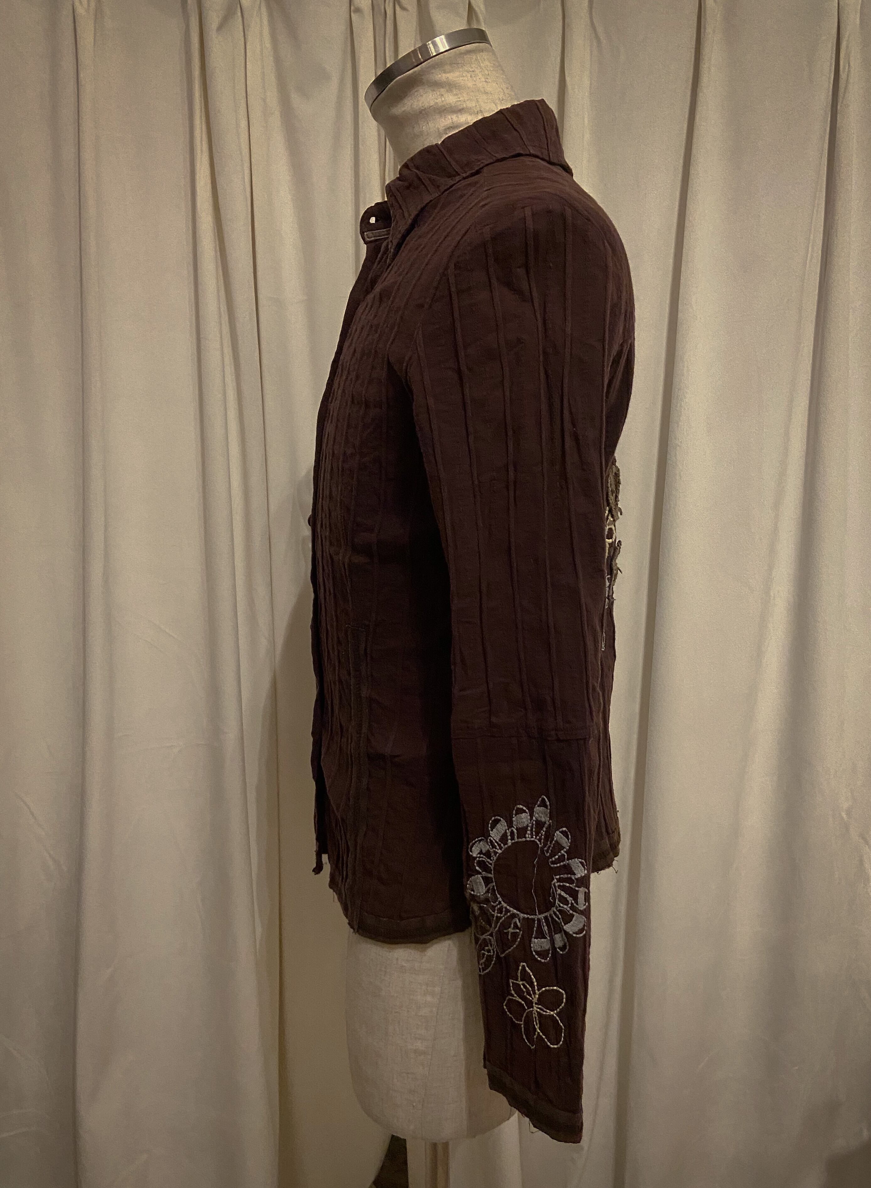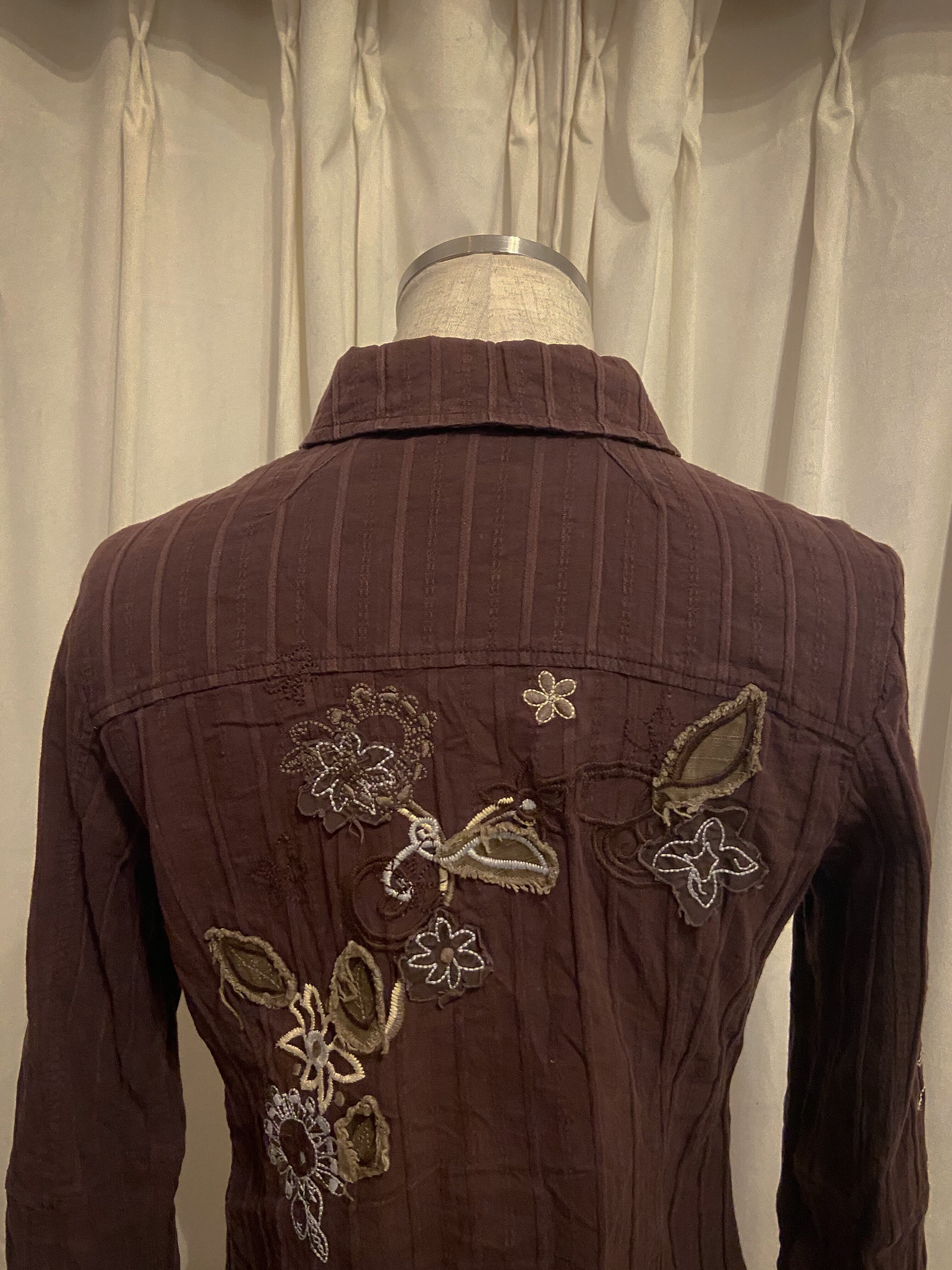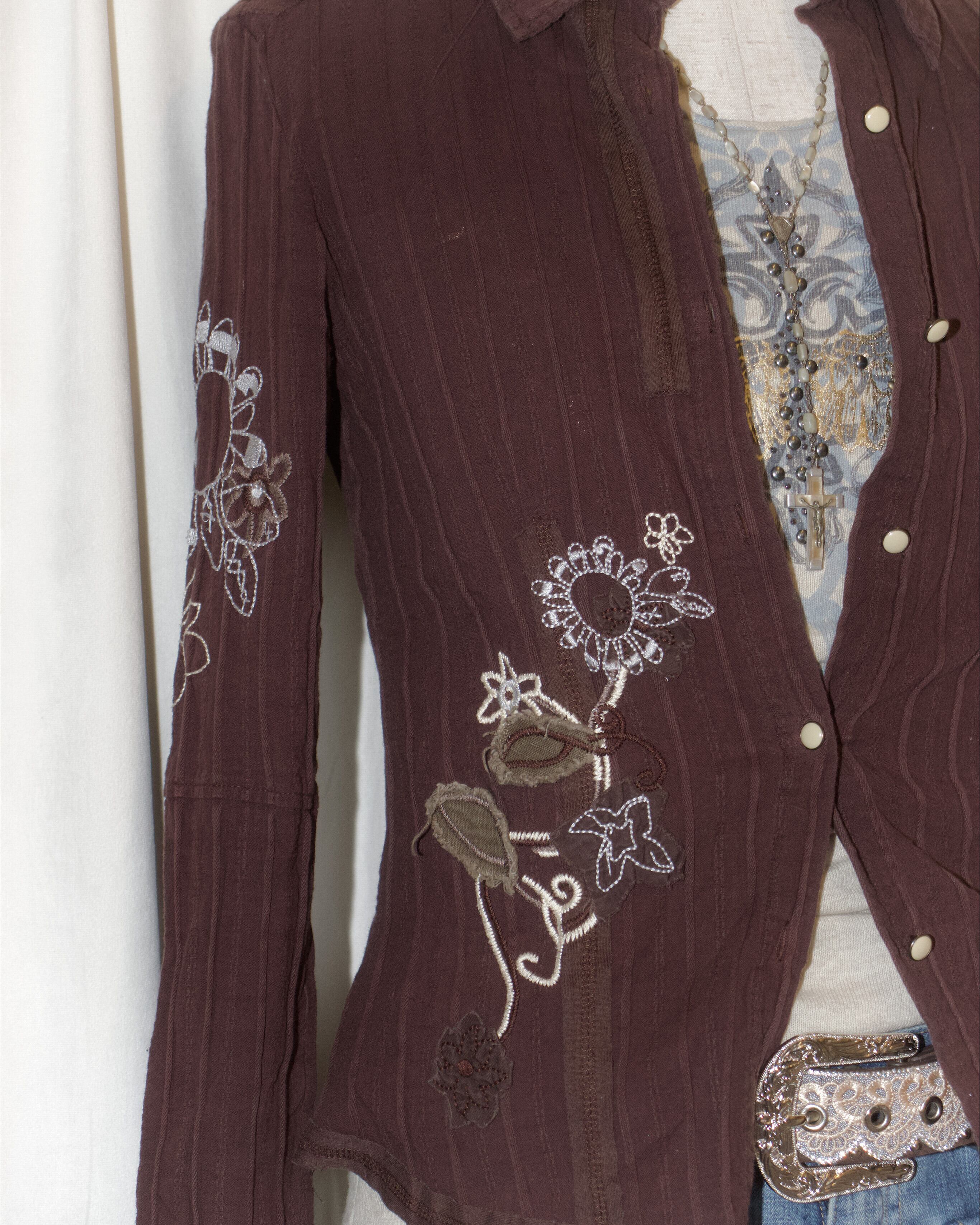 Tight Embroidered Brown Stripe Shirt